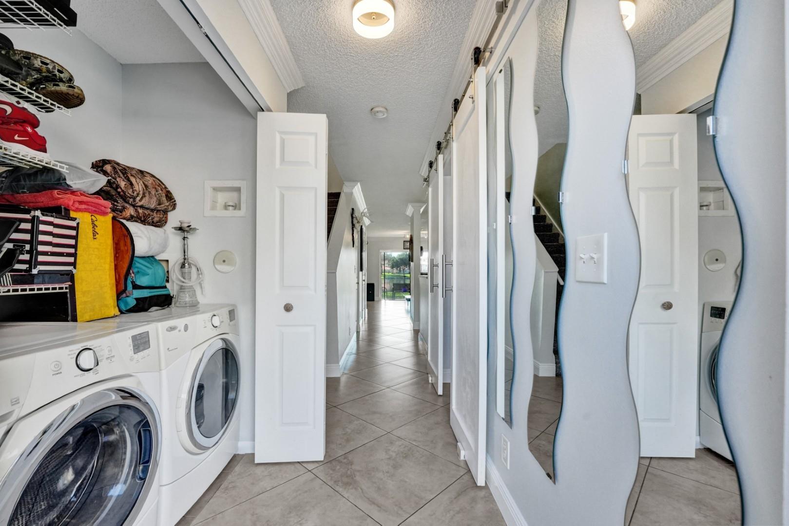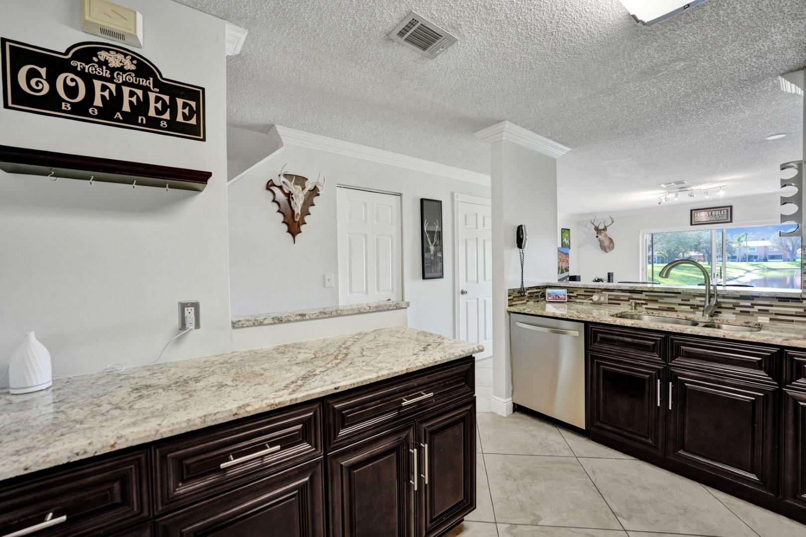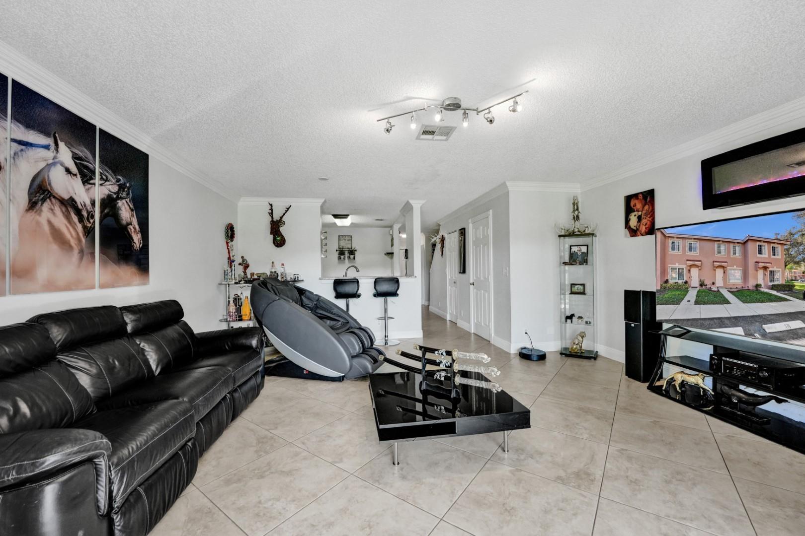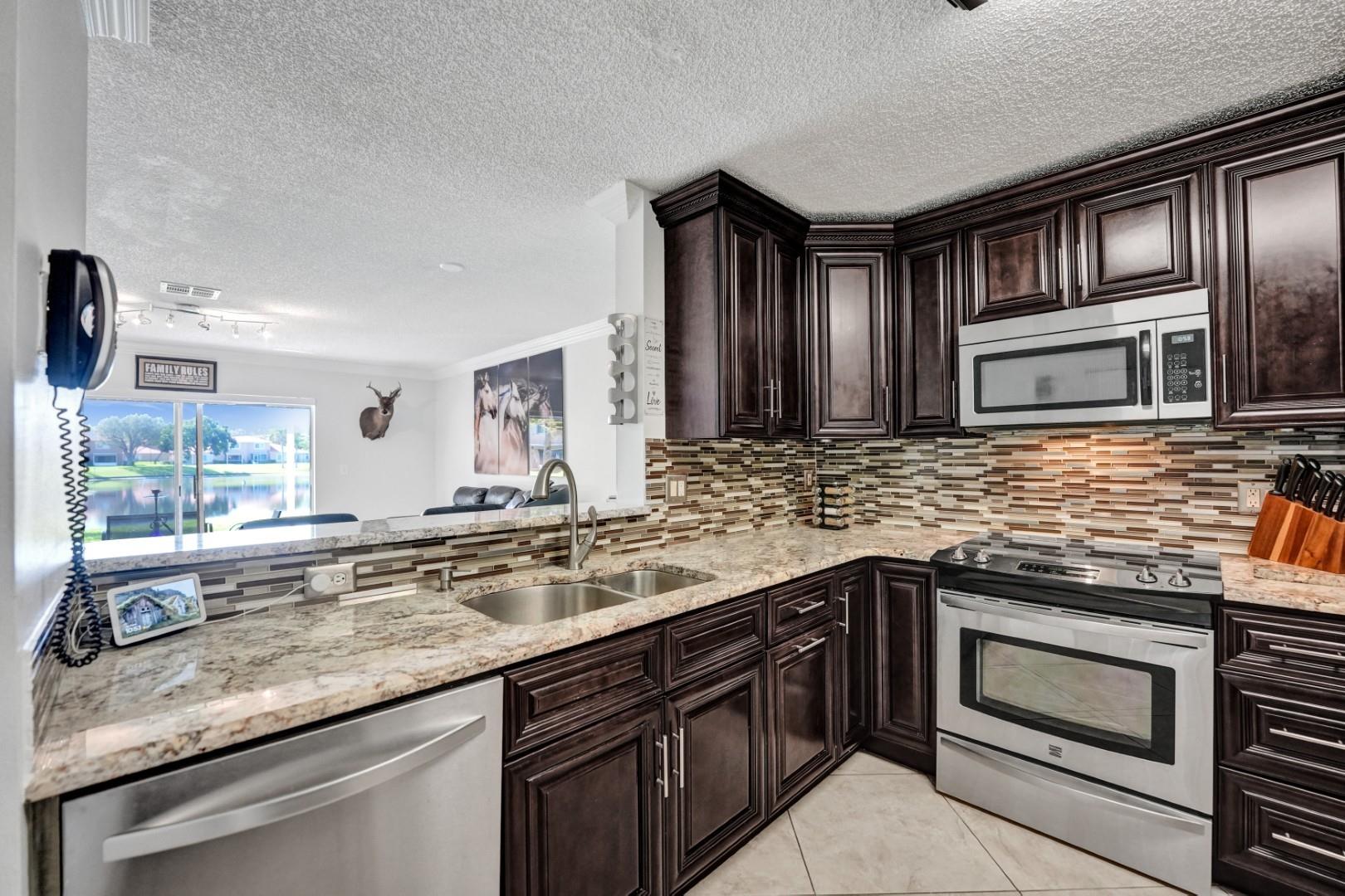 Stunning 3-bed, 2.5-bath townhouse, breathtaking lake views and new roof!! This beautifully remodeled home is FHA-friendly and perfect for modern living. The spacious kitchen boasts dark wood cabinets, granite countertops, stainless steel appliances, and more. The ground floor features large tile, with a convenient half bath. Barn doors lead to a versatile bedroom/den space. The open concept living and dining areas are ideal for entertaining. The master bath features a double-sink vanity and seamless shower doors. HO6 insurance so insurance is very low. Additional highlights include elegant custom blinds, crown molding, hurricane accordion shutters, and an impact-resistant front door. Pets are welcome! Don’t miss out on this gem.