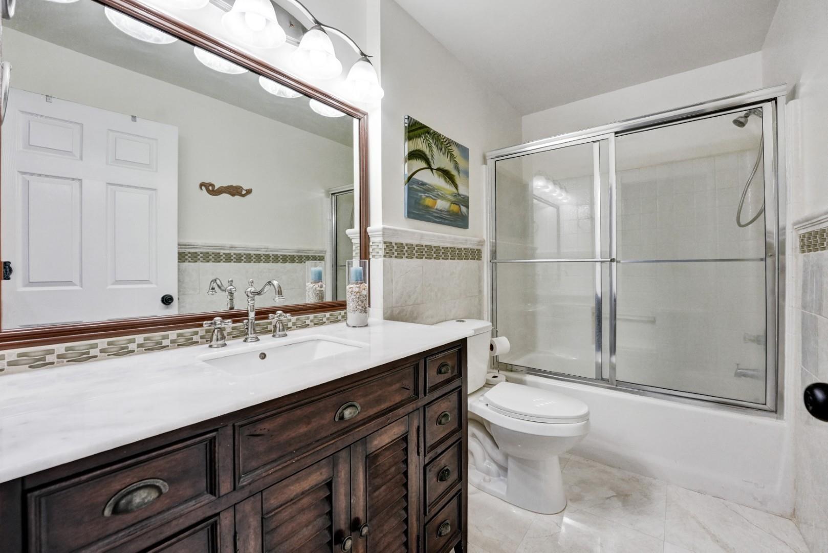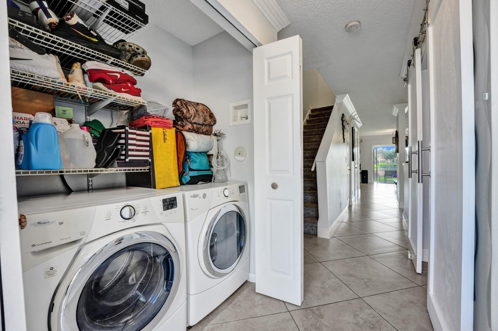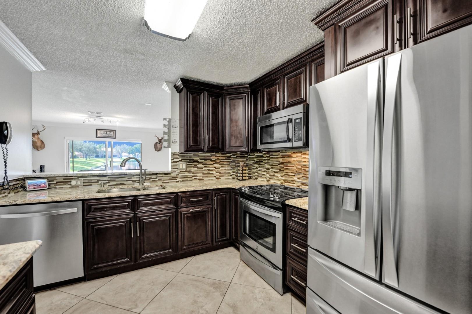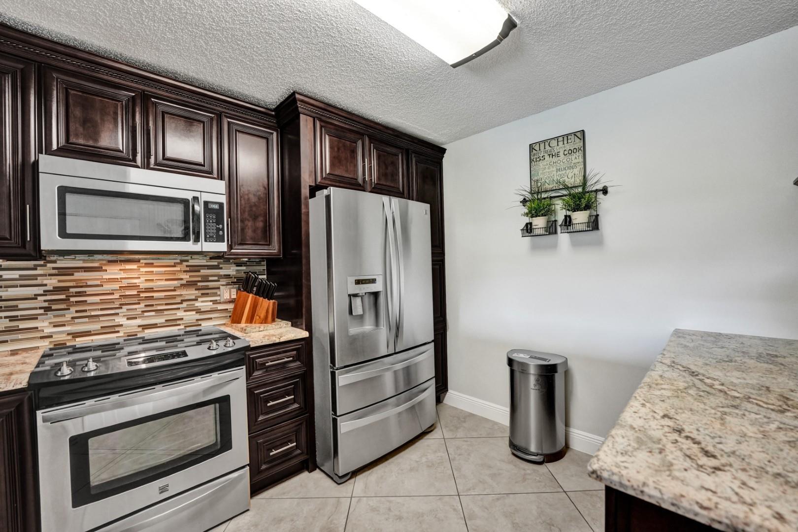 Stunning 3-bed, 2.5-bath townhouse, breathtaking lake views and new roof!! This beautifully remodeled home is FHA-friendly and perfect for modern living. The spacious kitchen boasts dark wood cabinets, granite countertops, stainless steel appliances, and more. The ground floor features large tile, with a convenient half bath. Barn doors lead to a versatile bedroom/den space. The open concept living and dining areas are ideal for entertaining. The master bath features a double-sink vanity and seamless shower doors. HO6 insurance so insurance is very low. Additional highlights include elegant custom blinds, crown molding, hurricane accordion shutters, and an impact-resistant front door. Pets are welcome! Don’t miss out on this gem.
