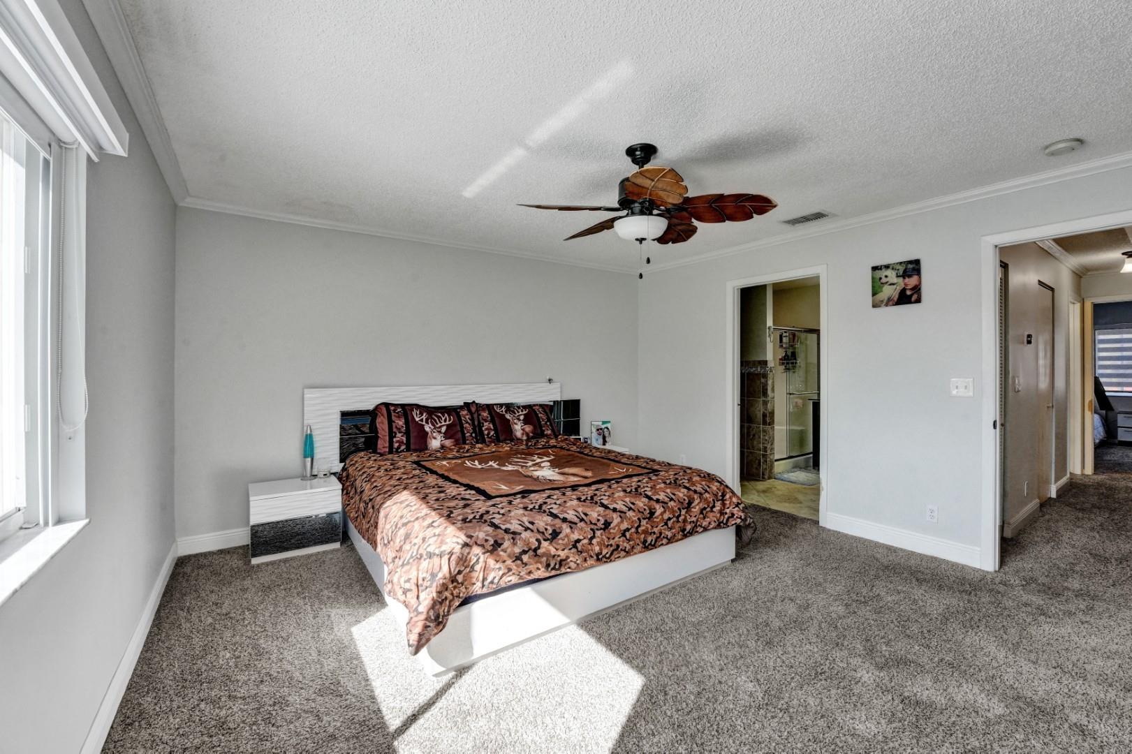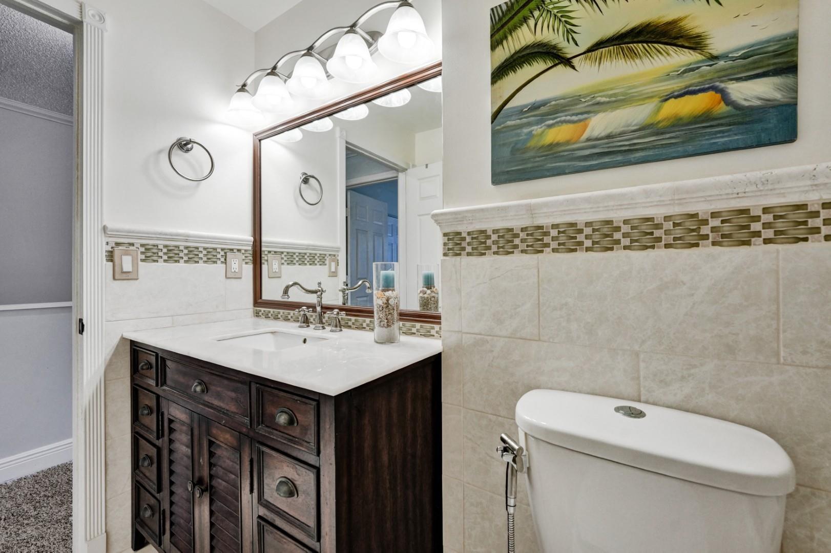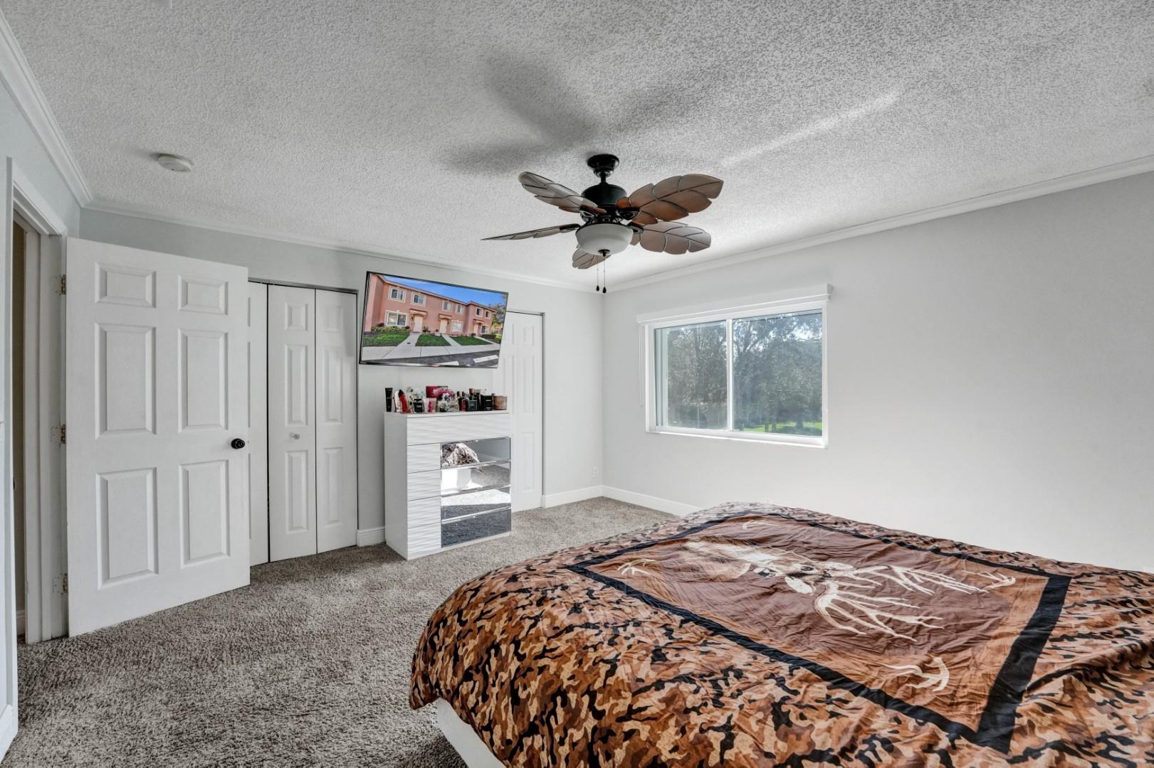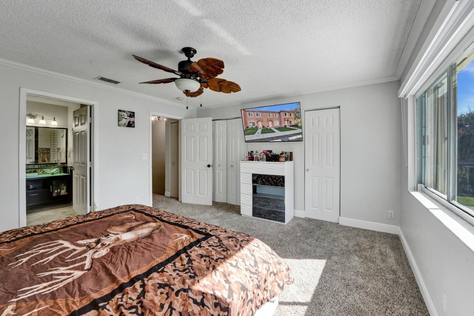 Stunning 3-bed, 2.5-bath townhouse, breathtaking lake views and new roof!! This beautifully remodeled home is FHA-friendly and perfect for modern living. The spacious kitchen boasts dark wood cabinets, granite countertops, stainless steel appliances, and more. The ground floor features large tile, with a convenient half bath. Barn doors lead to a versatile bedroom/den space. The open concept living and dining areas are ideal for entertaining. The master bath features a double-sink vanity and seamless shower doors. HO6 insurance so insurance is very low. Additional highlights include elegant custom blinds, crown molding, hurricane accordion shutters, and an impact-resistant front door. Pets are welcome! Don’t miss out on this gem.