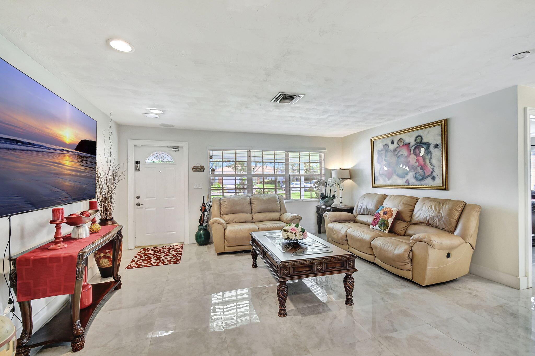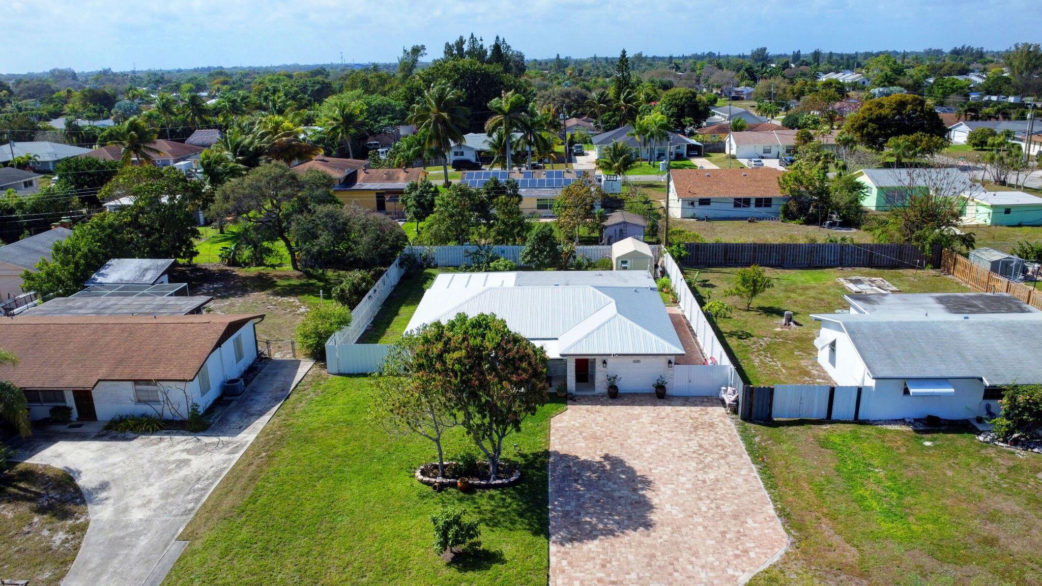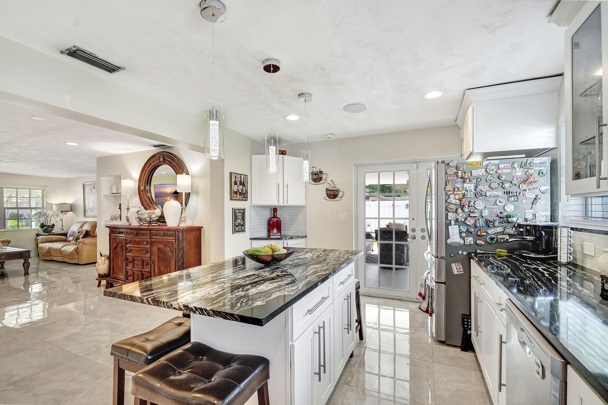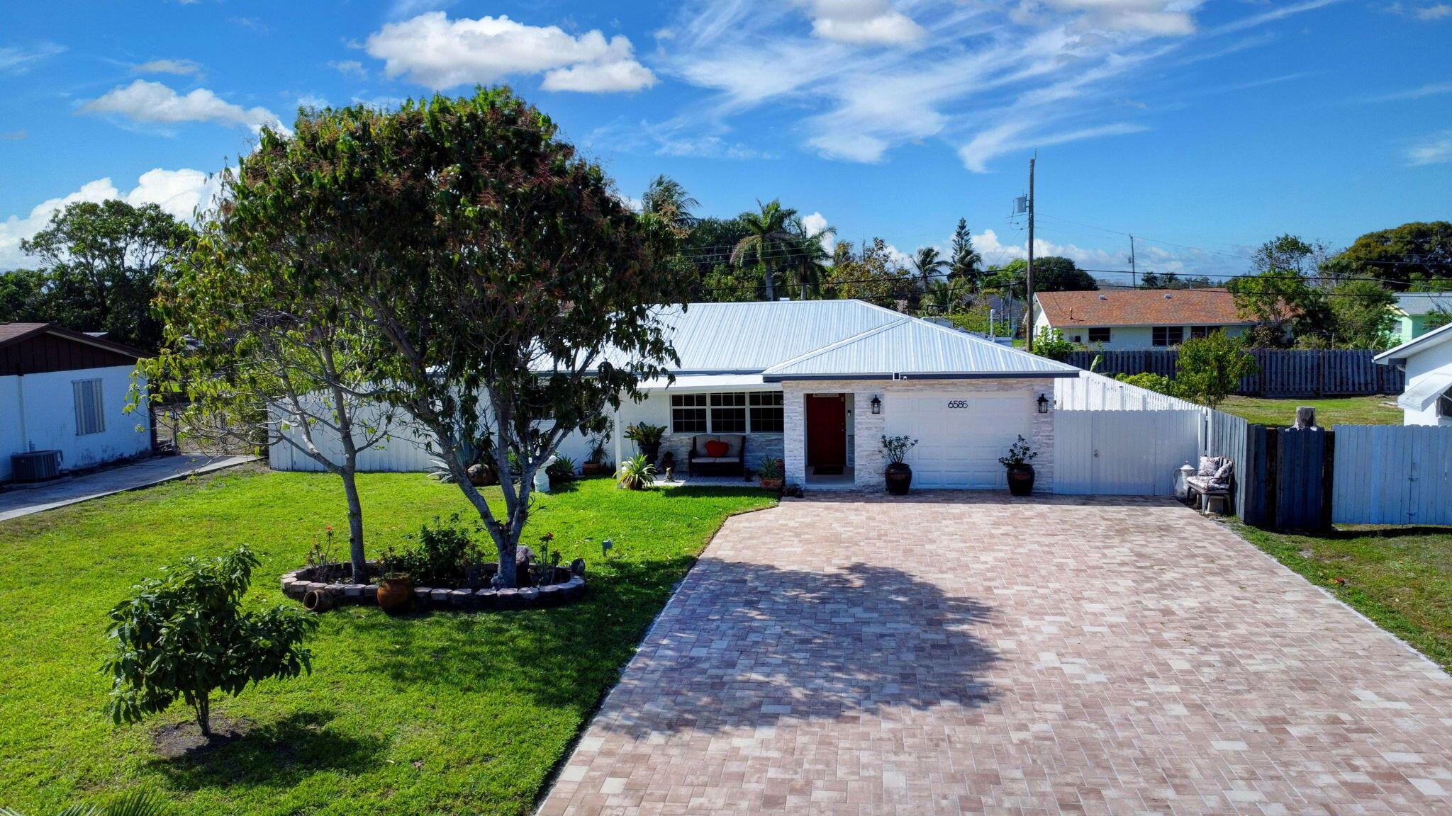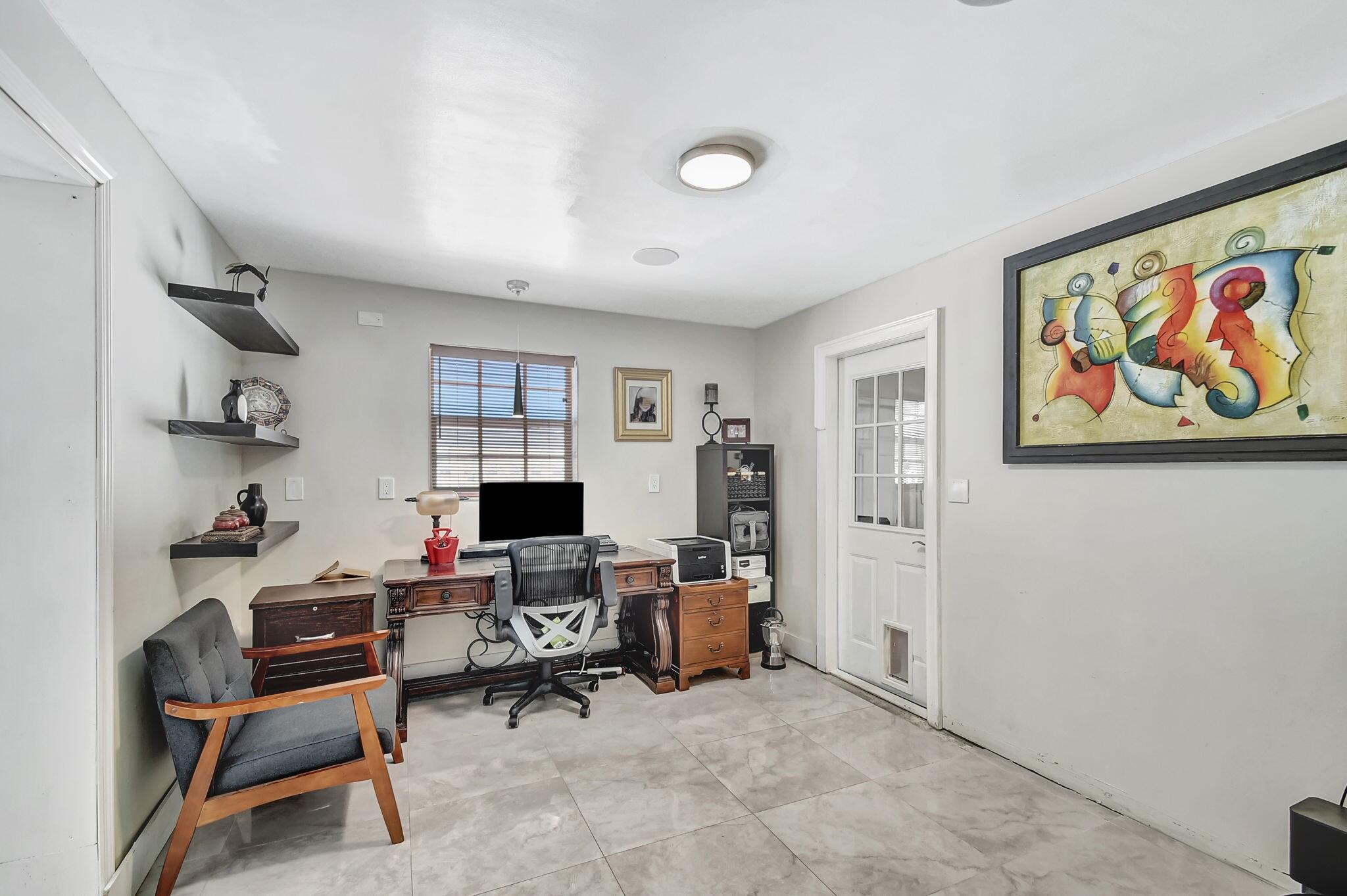 Charming 3-Bedroom, 2-Bathroom Home with Open Floor Plan, Expansive Outdoor Space and 2020 Medal Roof. Located in Floral Park, a Desired No HOA all-age Community. Step into this light, bright, and airy home, featuring 24-inch tiles throughout for a sleek and modern look. The open-floor plan creates an inviting atmosphere, perfect for both relaxing and entertaining. The garage has been expertly converted into a spacious third bedroom with an attached office and bathroom, complete with a separate entrance–an ideal setup for a rental opportunity or an in-law suite. The updated kitchen boasts elegant white shaker cabinets, exotic granite countertops, and an oversized island, all complemented by hurricane windows for peace of mind. Step outside to the newly tiled,