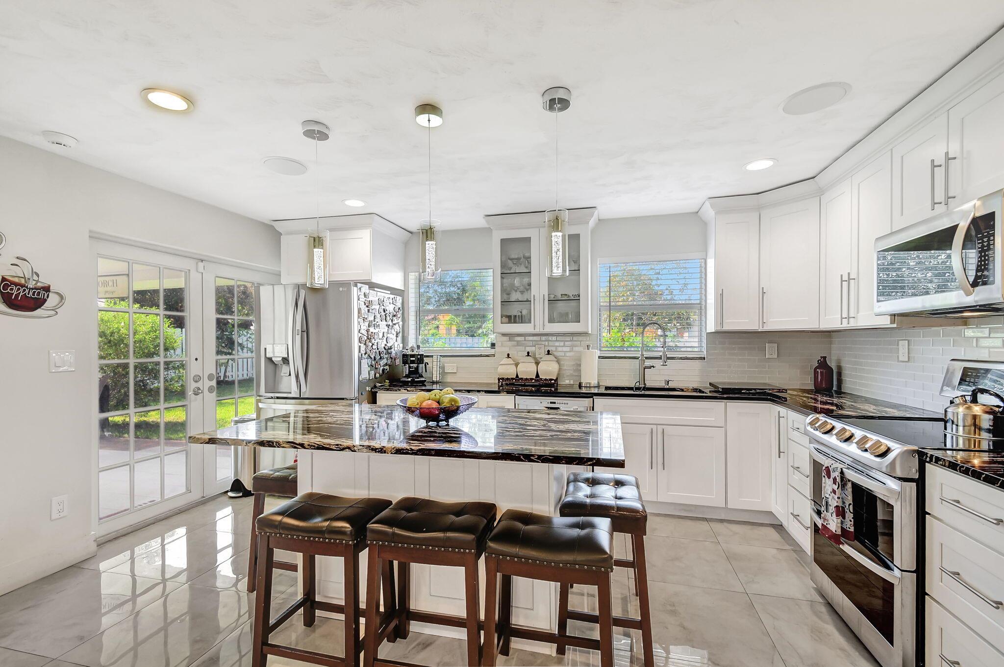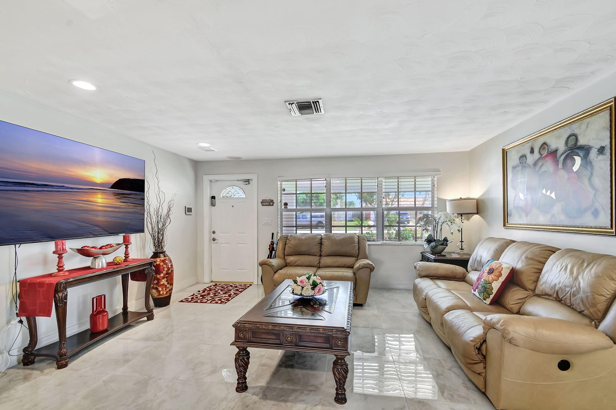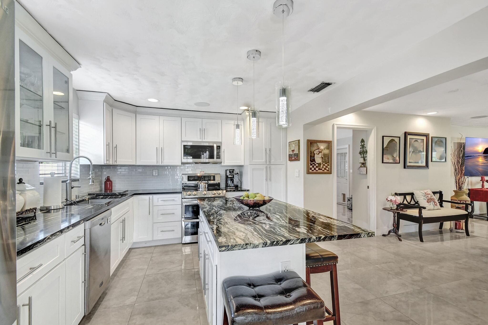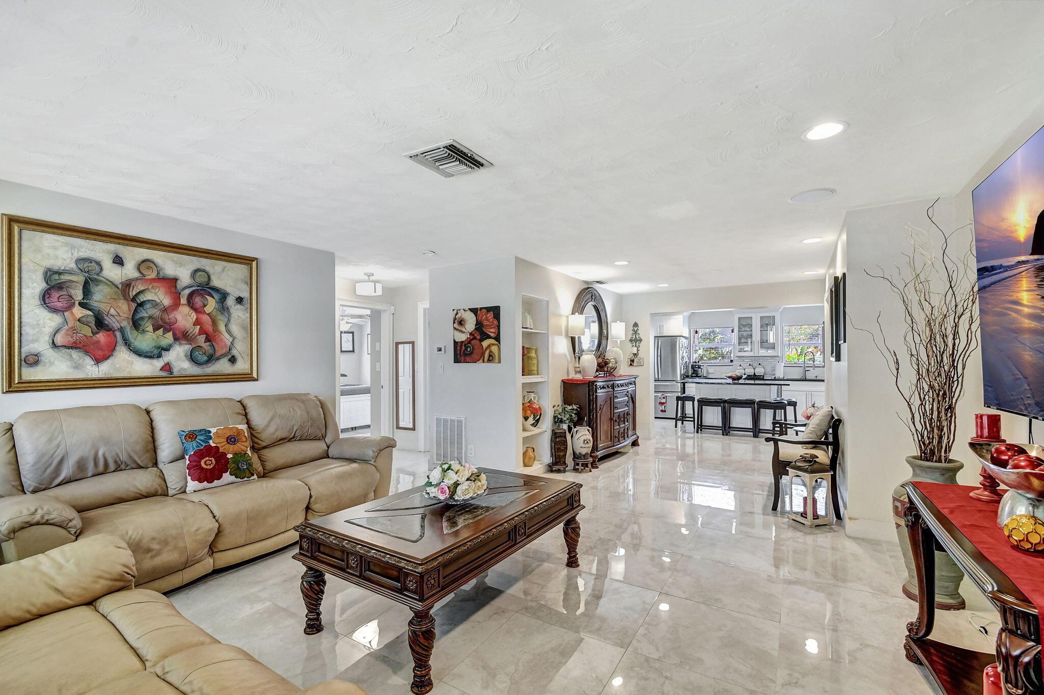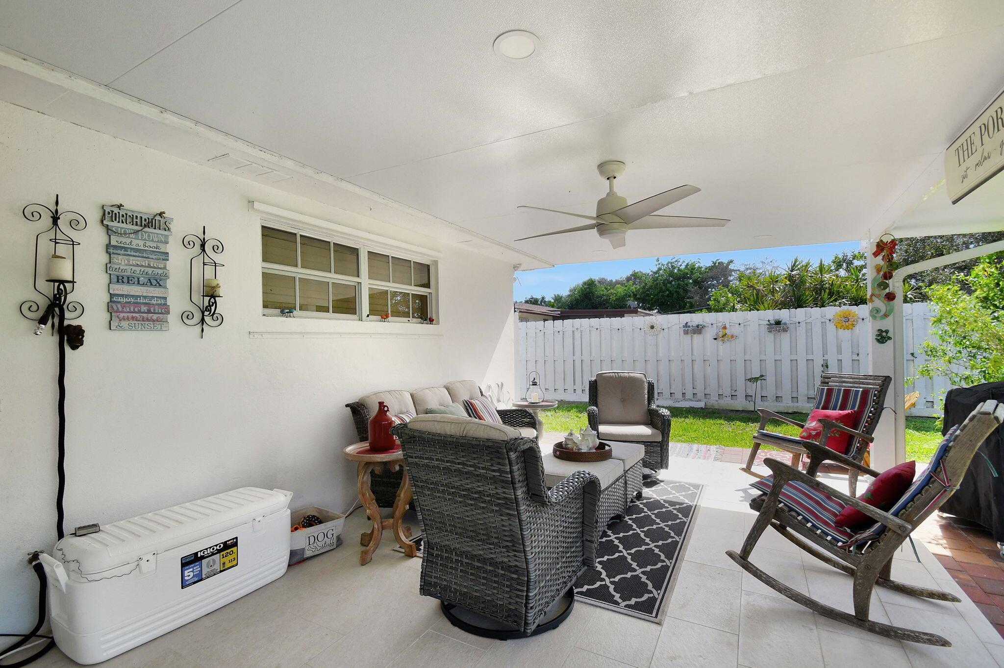 Charming 3-Bedroom, 2-Bathroom Home with Open Floor Plan, Expansive Outdoor Space and 2020 Medal Roof. Located in Floral Park, a Desired No HOA all-age Community. Step into this light, bright, and airy home, featuring 24-inch tiles throughout for a sleek and modern look. The open-floor plan creates an inviting atmosphere, perfect for both relaxing and entertaining. The garage has been expertly converted into a spacious third bedroom with an attached office and bathroom, complete with a separate entrance–an ideal setup for a rental opportunity or an in-law suite. The updated kitchen boasts elegant white shaker cabinets, exotic granite countertops, and an oversized island, all complemented by hurricane windows for peace of mind. Step outside to the newly tiled,