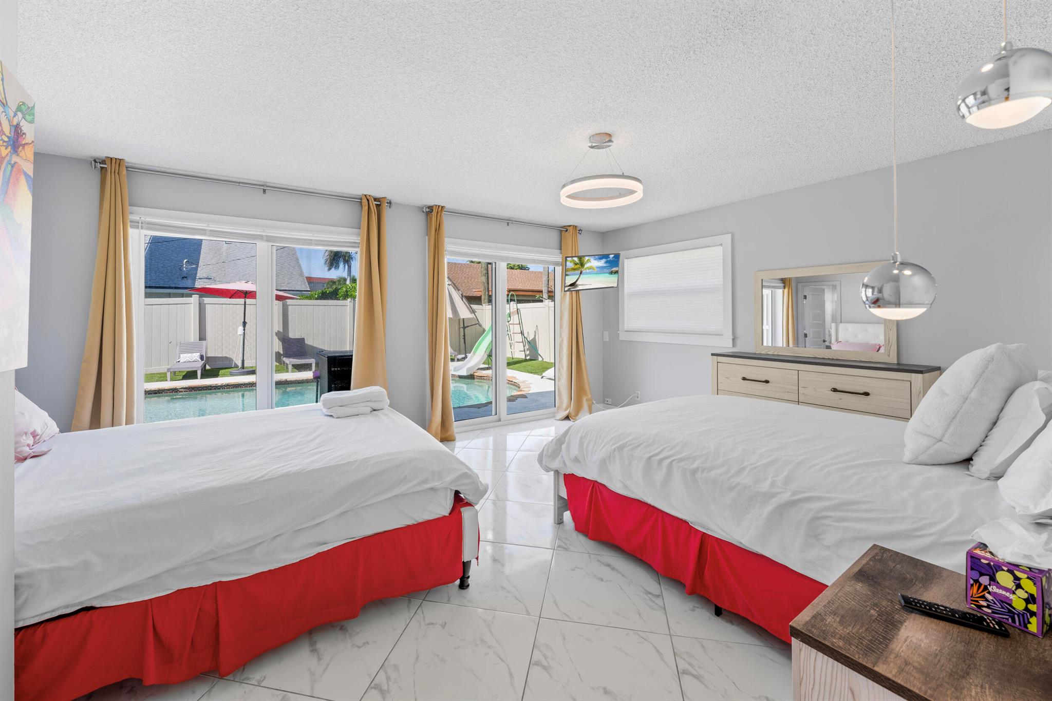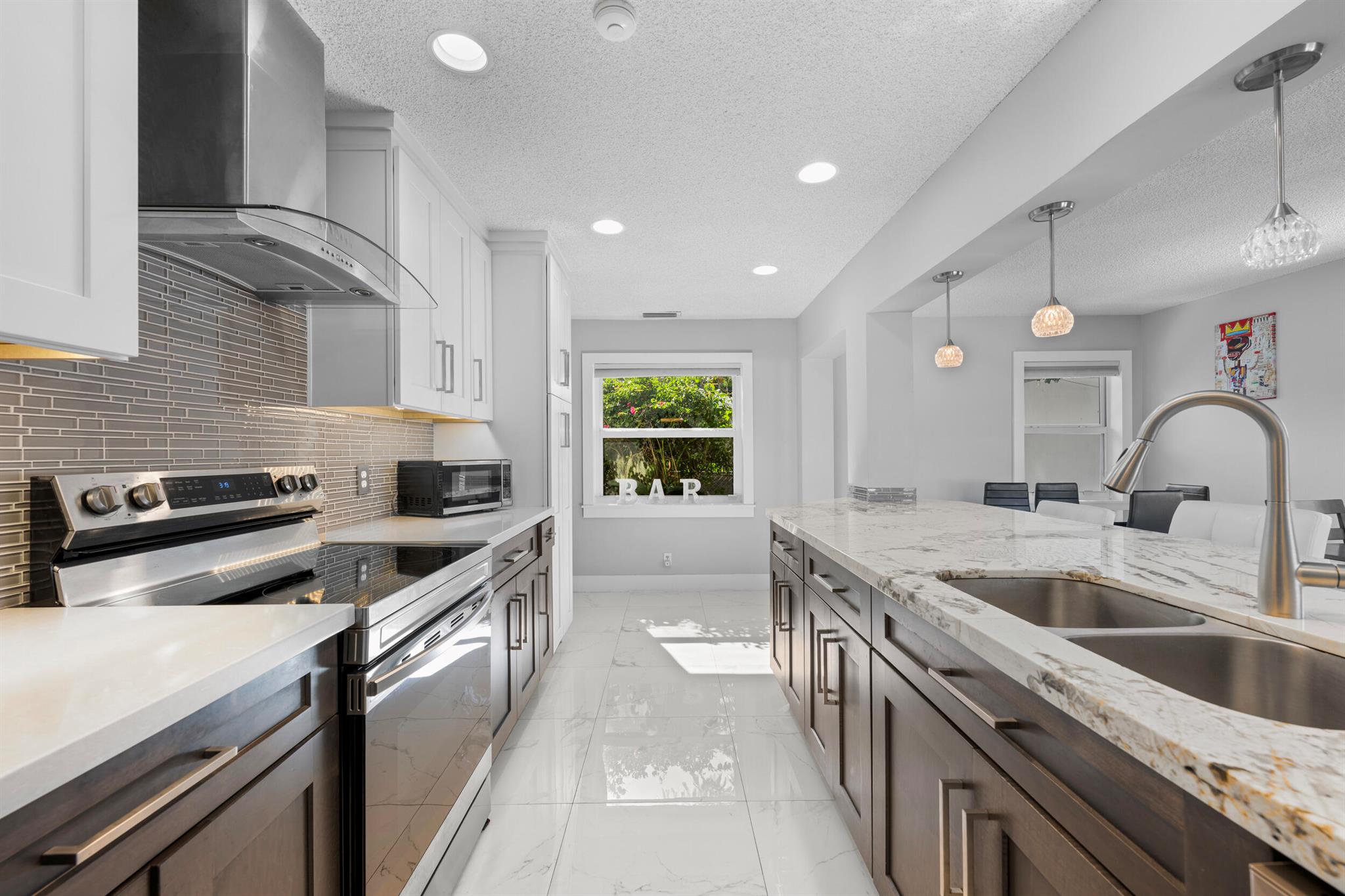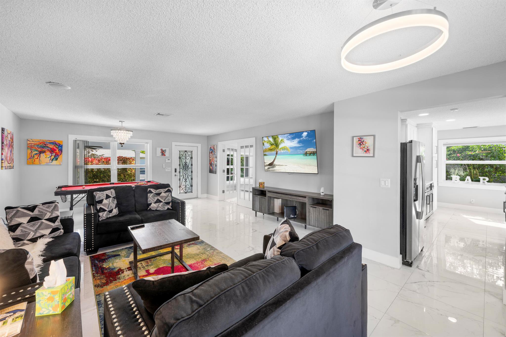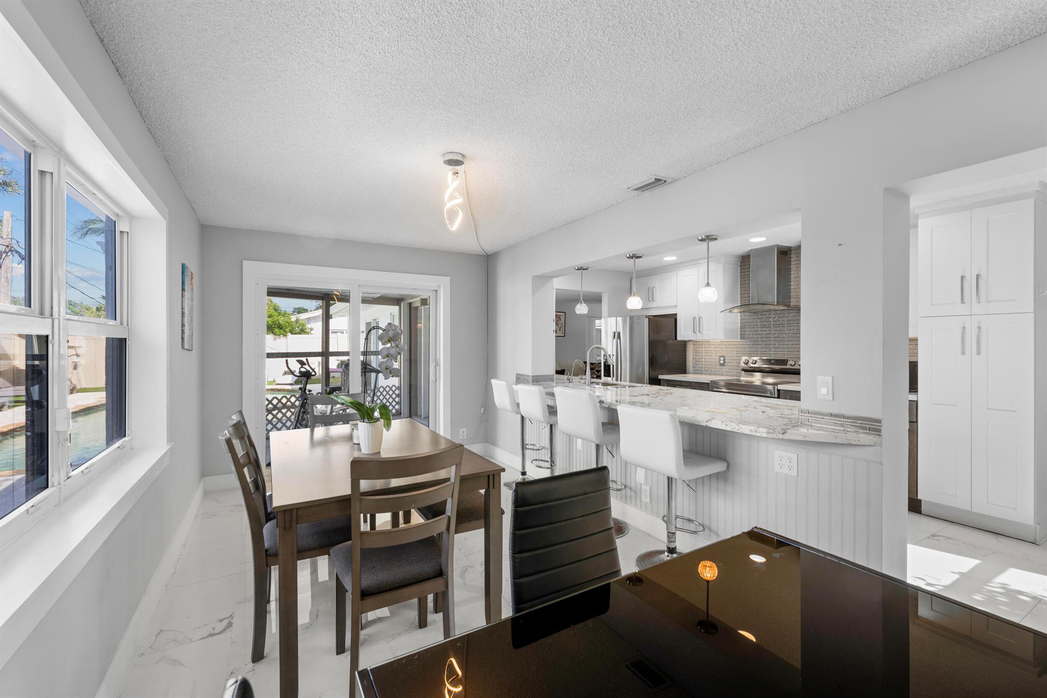 Welcome to 729 Heron Dr, where tropical resort-style living meets modern luxury in the heart of East Delray Beach! Safe, family friendly neighborhood with a fantastic location close to Atlantic Ave, Downtown Beach and Beach. This beautifully updated home features a freeform heated pool and spa, complete with a designer illuminated mosaic wall that sets the perfect ambiance for evening relaxation. The raised wood deck with a pergola provides the ideal space for unwinding, while the covered screened porch is perfect for entertaining or enjoying quiet moments. Inside, the open floor plan is highlighted by elegant tile flooring throughout, a newly remodeled kitchen with stunning granite countertops, and shaker-style soft-close cabinets and drawers. Pendant lighting adds a touch of