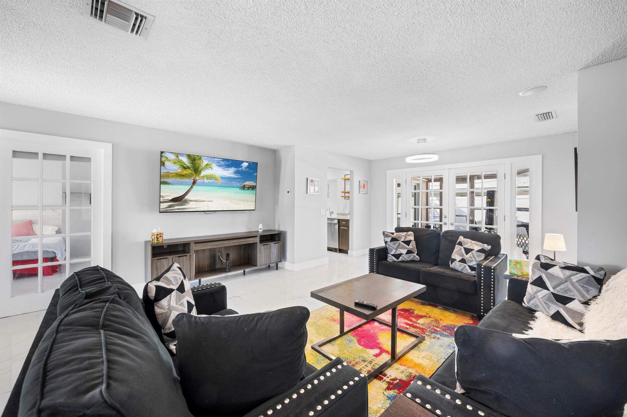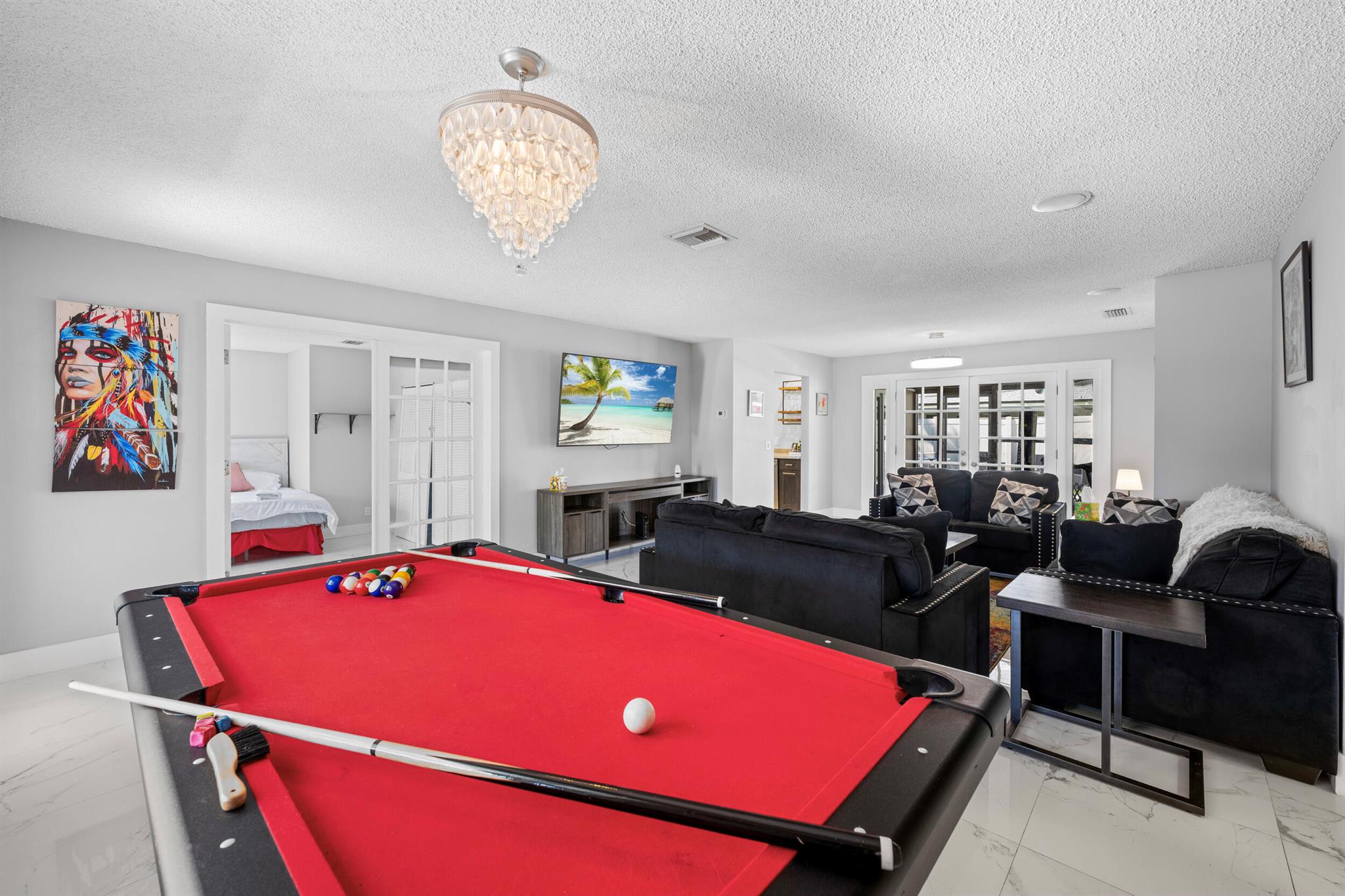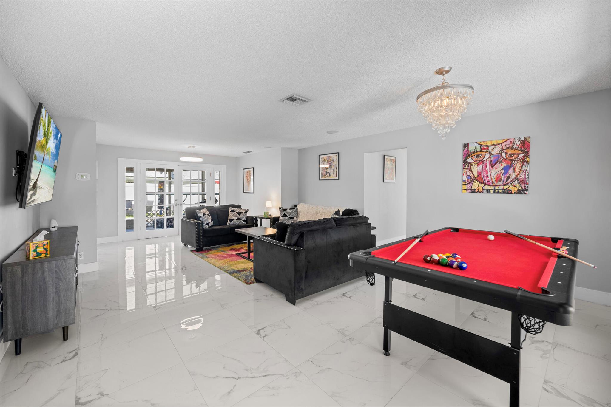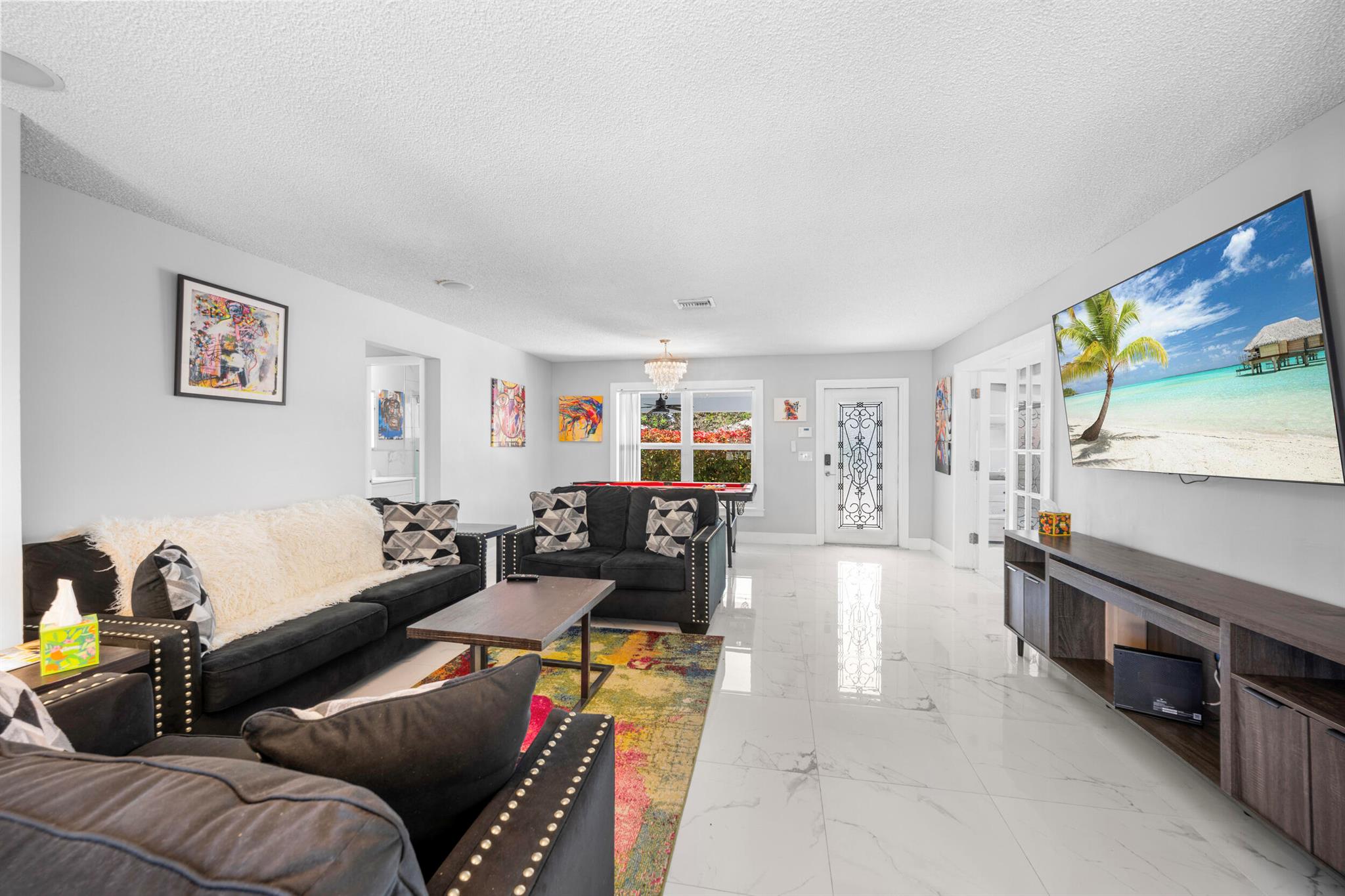 Welcome to 729 Heron Dr, where tropical resort-style living meets modern luxury in the heart of East Delray Beach! Safe, family friendly neighborhood with a fantastic location close to Atlantic Ave, Downtown Beach and Beach. This beautifully updated home features a freeform heated pool and spa, complete with a designer illuminated mosaic wall that sets the perfect ambiance for evening relaxation. The raised wood deck with a pergola provides the ideal space for unwinding, while the covered screened porch is perfect for entertaining or enjoying quiet moments. Inside, the open floor plan is highlighted by elegant tile flooring throughout, a newly remodeled kitchen with stunning granite countertops, and shaker-style soft-close cabinets and drawers. Pendant lighting adds a touch of