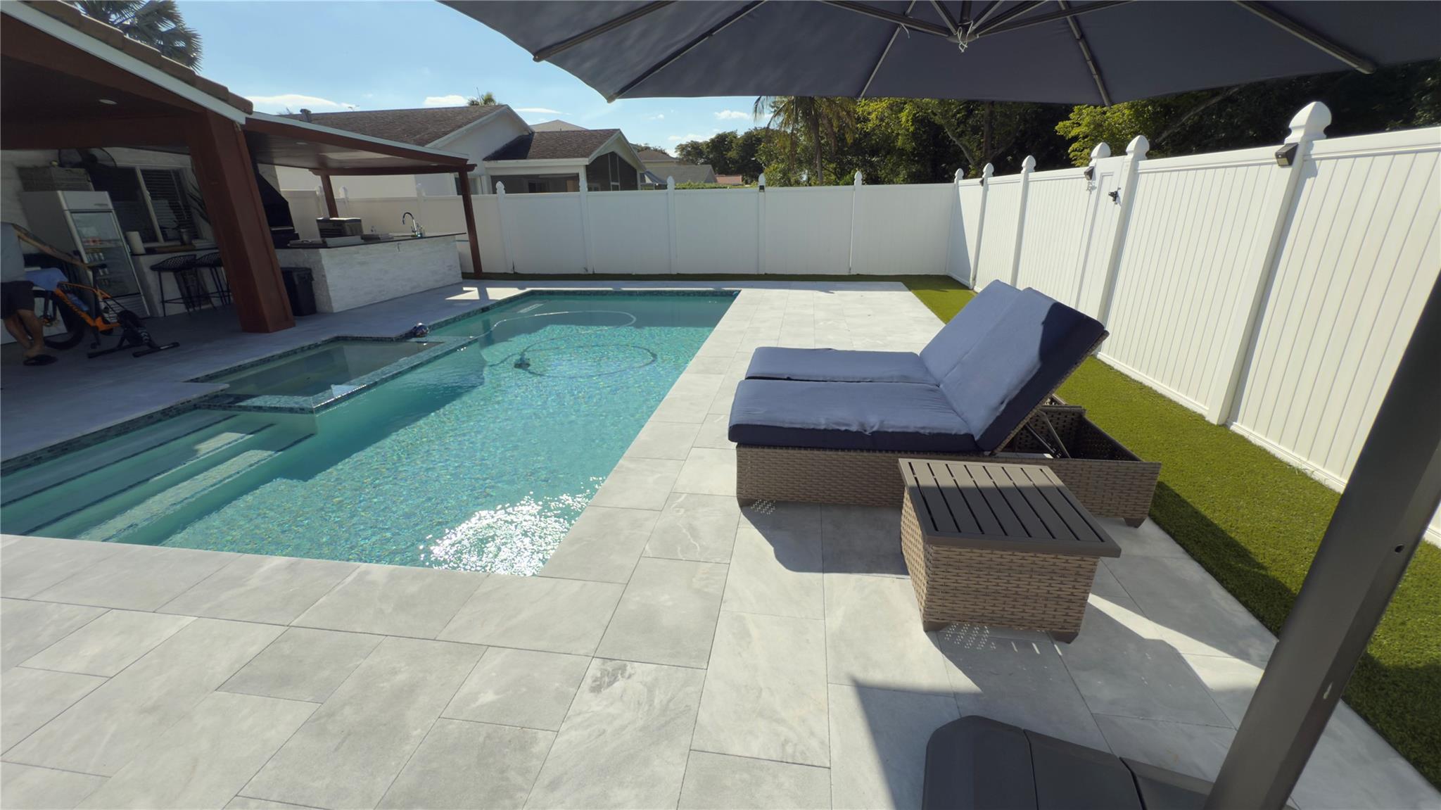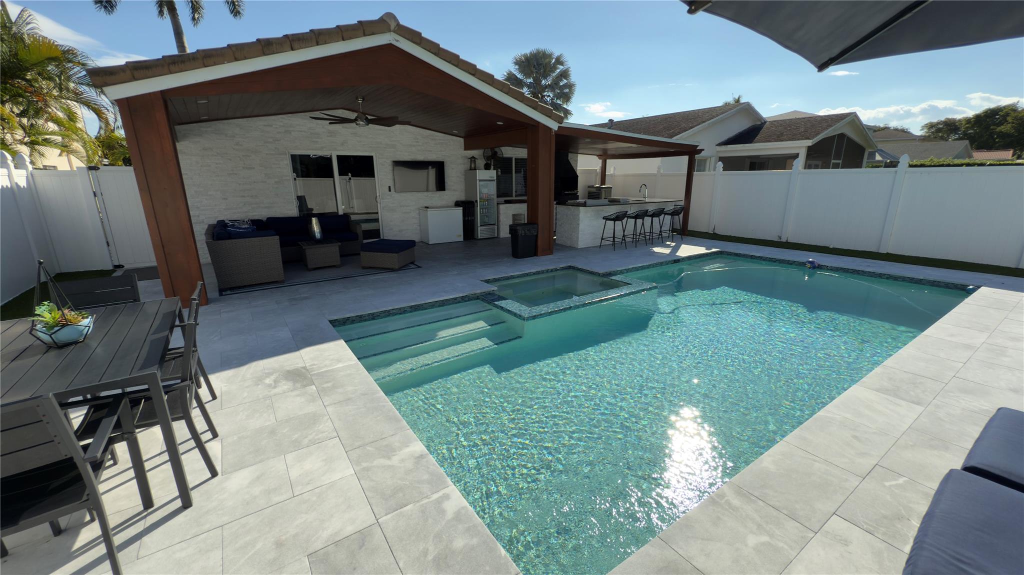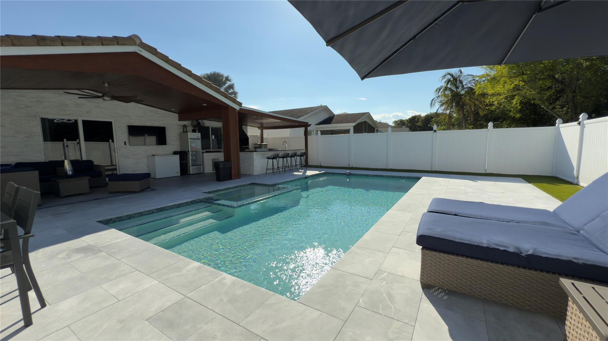 Beautifully remodeled one-story home in the desirable Waterways community of Deerfield Beach, Florida. This stunning 3-bedroom 2-bath residence features an open layout, modern finishes featuring kitchen with island, cook top and nice counter top. The backyard is like an oasis with a sparkling pool, relaxing Jacuzzi, and a barbecue area perfect for entertaining. Enjoy a prime location in a great neighborhood, close to beaches, dining, casino and top amenities. Miami is half hour driving south. This is a turn key property ready for you to move in. HOA has a clubhouse with community pool, tennis courts, fitness center, spa/hot tub. Gate guarded with security patrol and management on site. Call now to schedule your visit as seller needs 24hr notice.