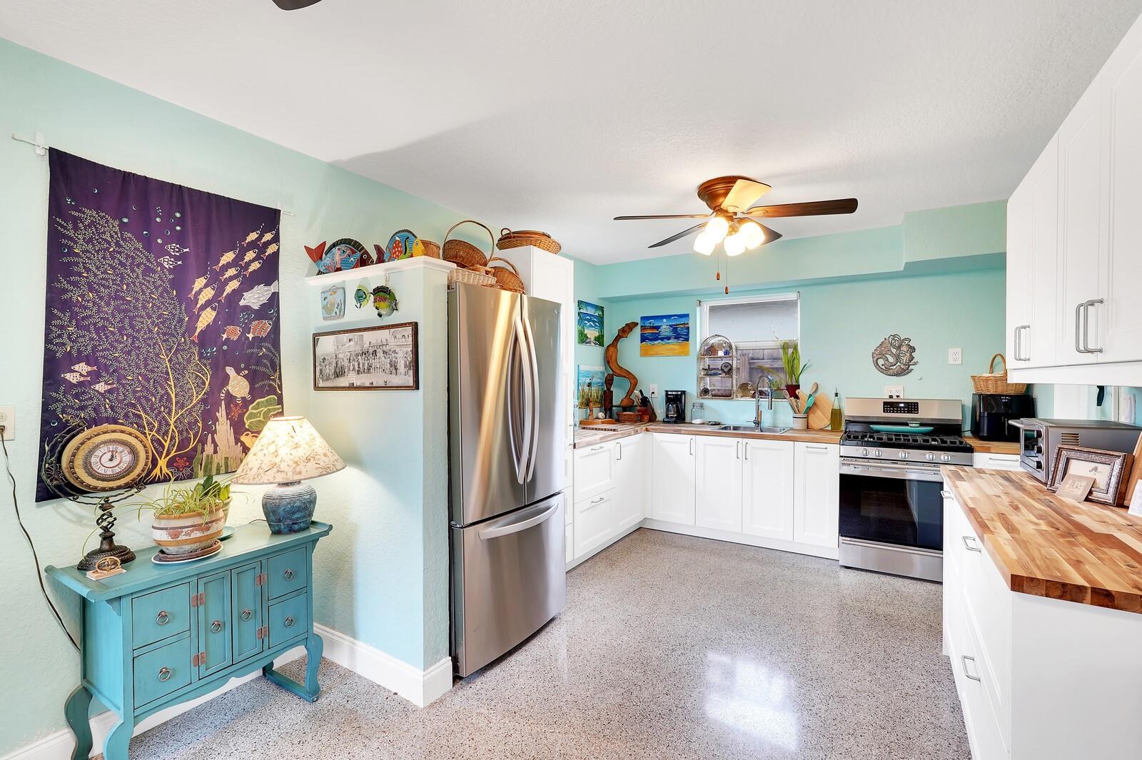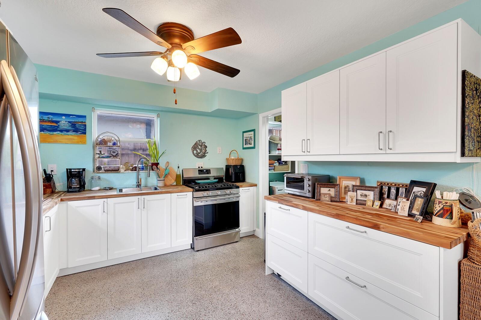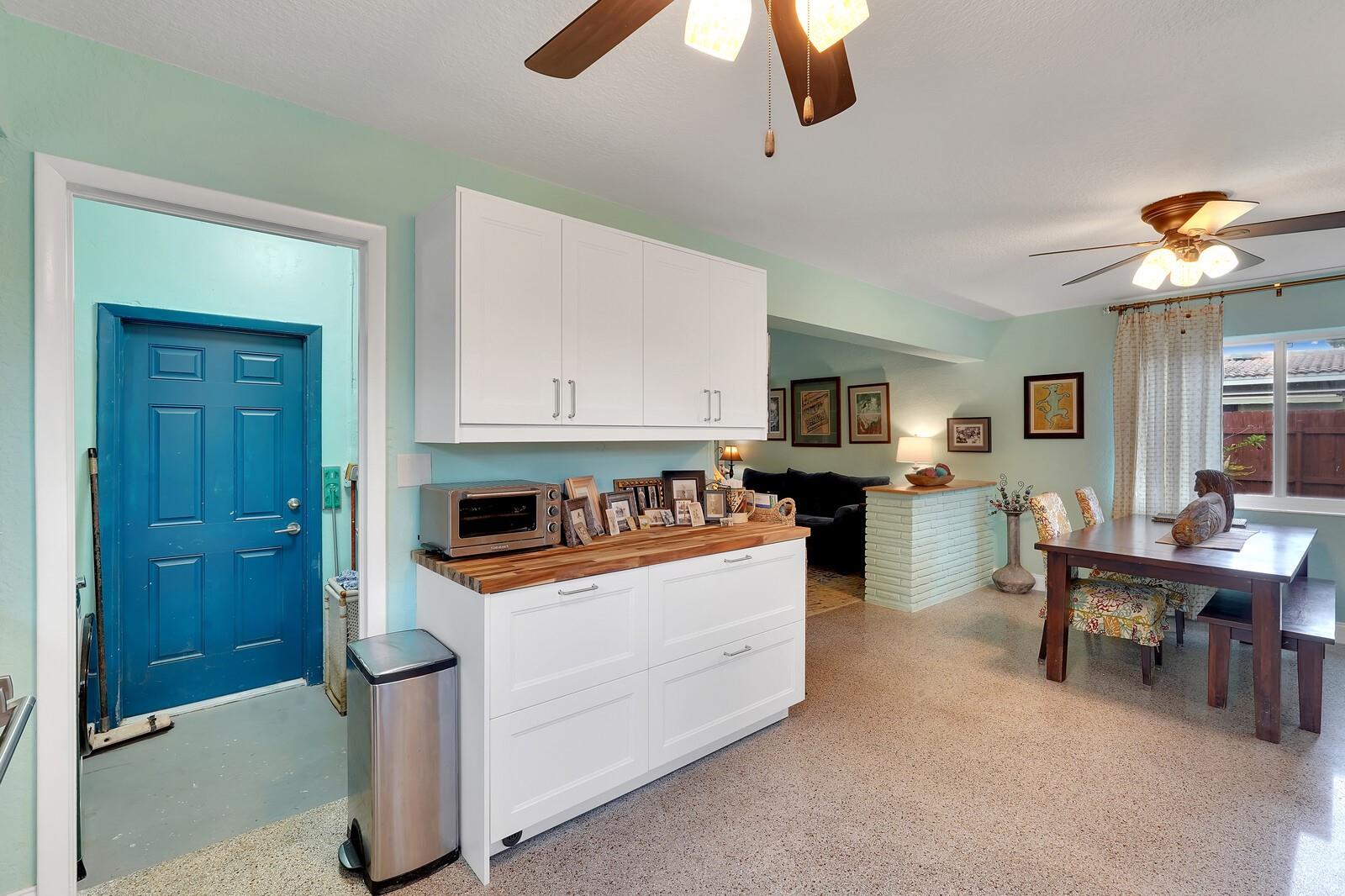 Charming 2/1 single-family home in the heart of Hollywood. Prime location near US1, 95, and FLL International Airport. Brand new kitchen with butcher block counters, spacious cabinetry, gas range, refrigerator, and hidden dishwasher. 1,024 sq ft. with fenced backyard, carport, and screened patio, perfect for outdoor relaxation. Meticulous updates feature a new roof and cold A/C system installed in 2022. Newer impact windows and doors, double electric panel, washer/dryer combo. Terrazzo floors, crown molding with mood lighting in bedroom. Tropical paradise with landscaping including canary island palm, fig, and sweet mango trees in the backyard. Washington native Florida palm and 2 foxtails in front yard.
