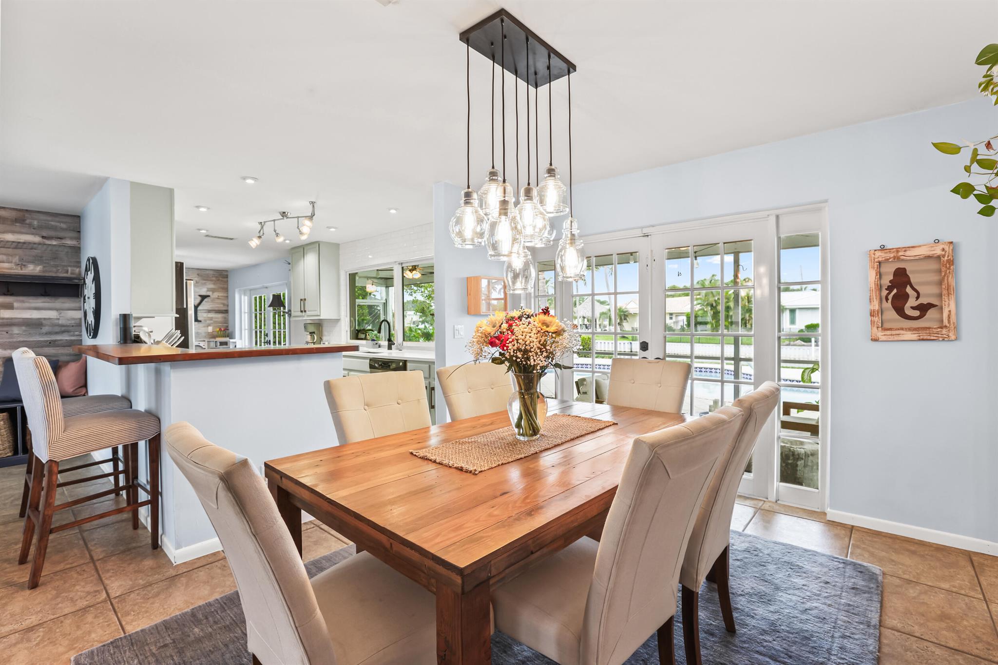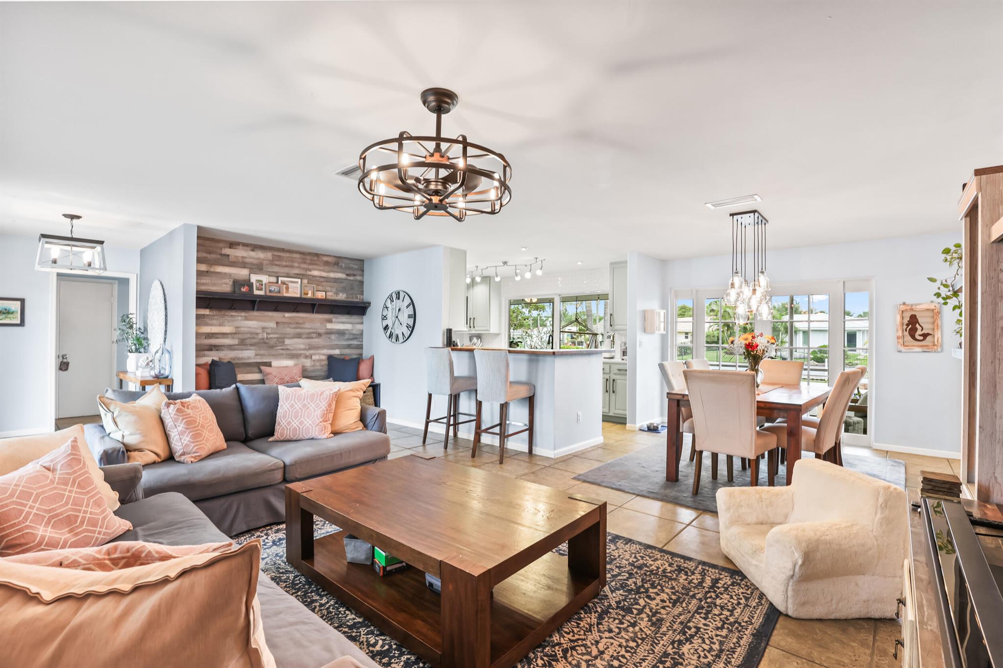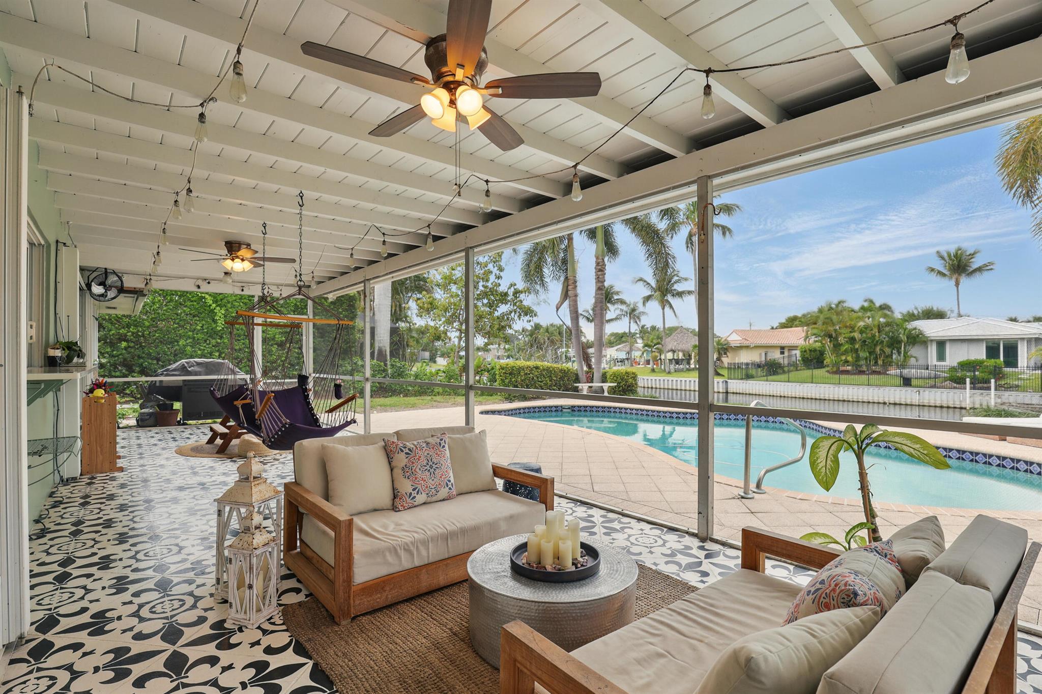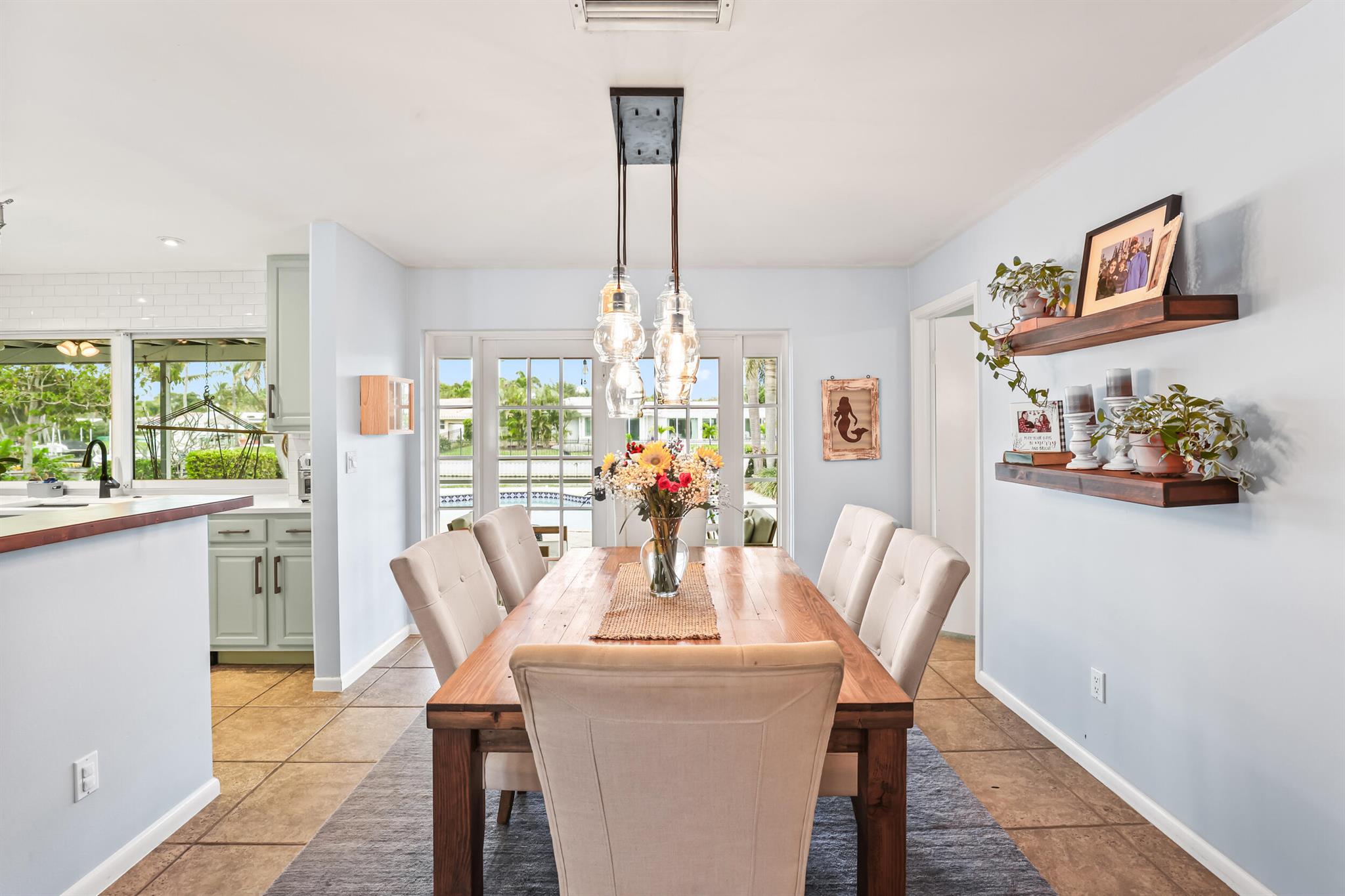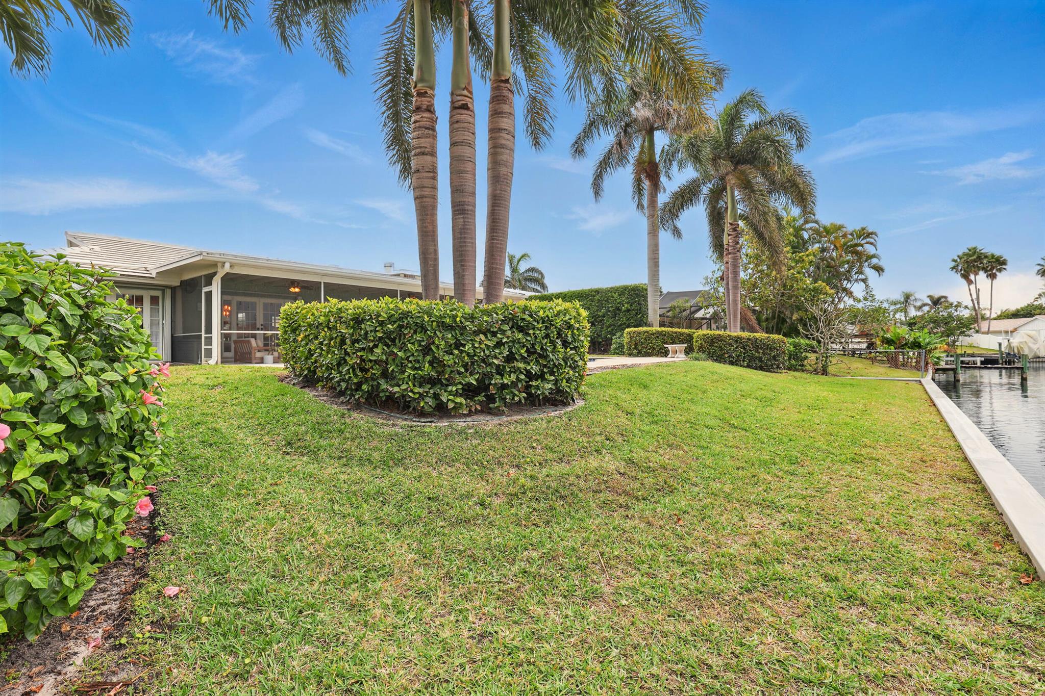 Intracoastal access from your private dock and a short one mile walk or bike ride to the white sands of Juno Beach. Or stay home to enjoy the view from your 40 foot screened patio, take a dip in the heated pool, relax on your boat dock or cruise around on a kayak or paddle board. Located on the border of NPB and Juno Beach, the tight knit community of Juno Isles is a rare exception to offer such an ideal location at an affordable price point. The interior features a split floor plan with open kitchen layout complete with breakfast bar and oversized window overlooking the back yard. The main living area is open to the kitchen and adjacent informal dining area with french doors to the patio. A second living area with fireplace is a perfect flex space also with french doors to the patio.