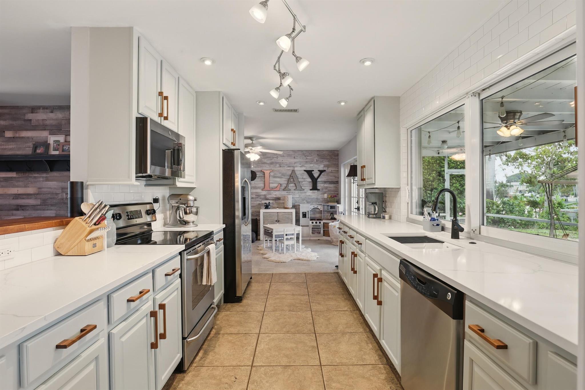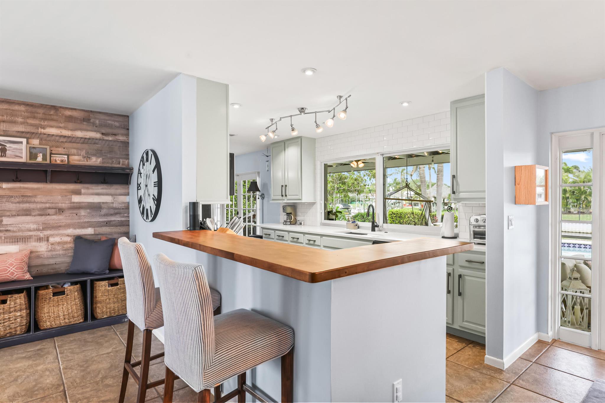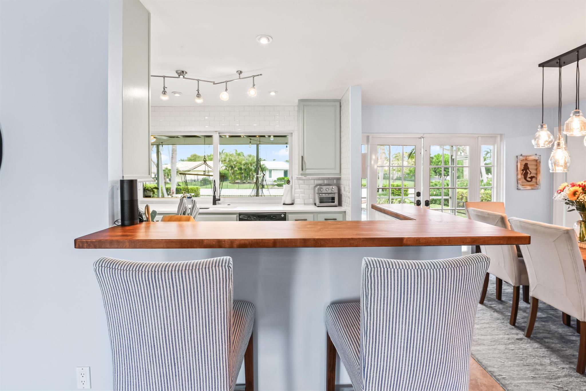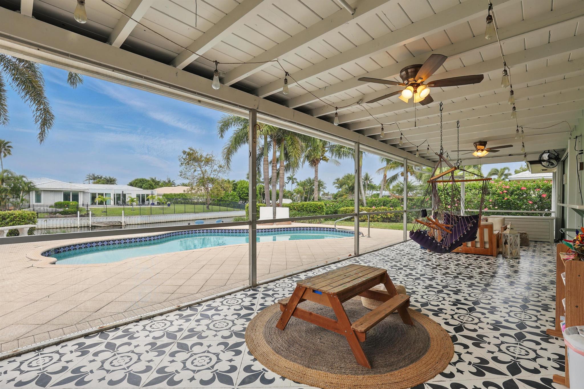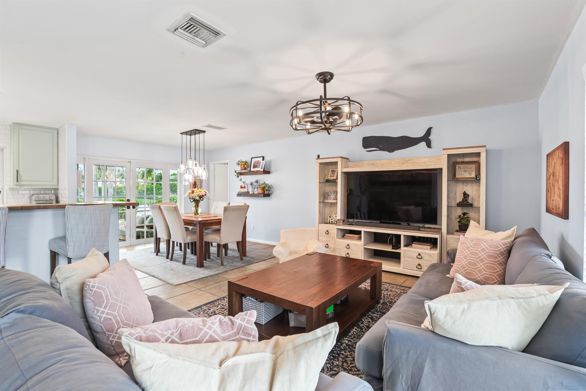 Intracoastal access from your private dock and a short one mile walk or bike ride to the white sands of Juno Beach. Or stay home to enjoy the view from your 40 foot screened patio, take a dip in the heated pool, relax on your boat dock or cruise around on a kayak or paddle board. Located on the border of NPB and Juno Beach, the tight knit community of Juno Isles is a rare exception to offer such an ideal location at an affordable price point. The interior features a split floor plan with open kitchen layout complete with breakfast bar and oversized window overlooking the back yard. The main living area is open to the kitchen and adjacent informal dining area with french doors to the patio. A second living area with fireplace is a perfect flex space also with french doors to the patio.
