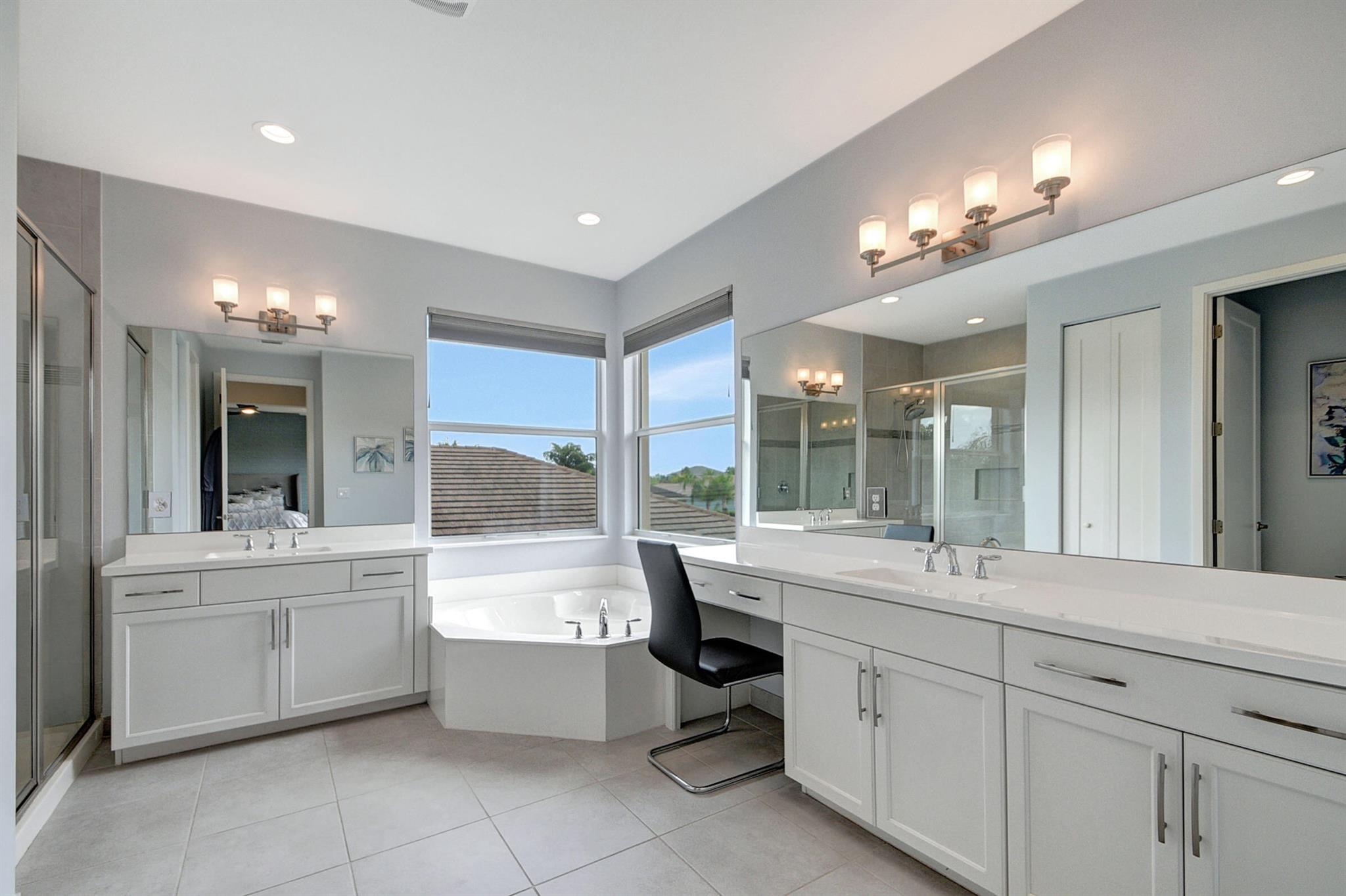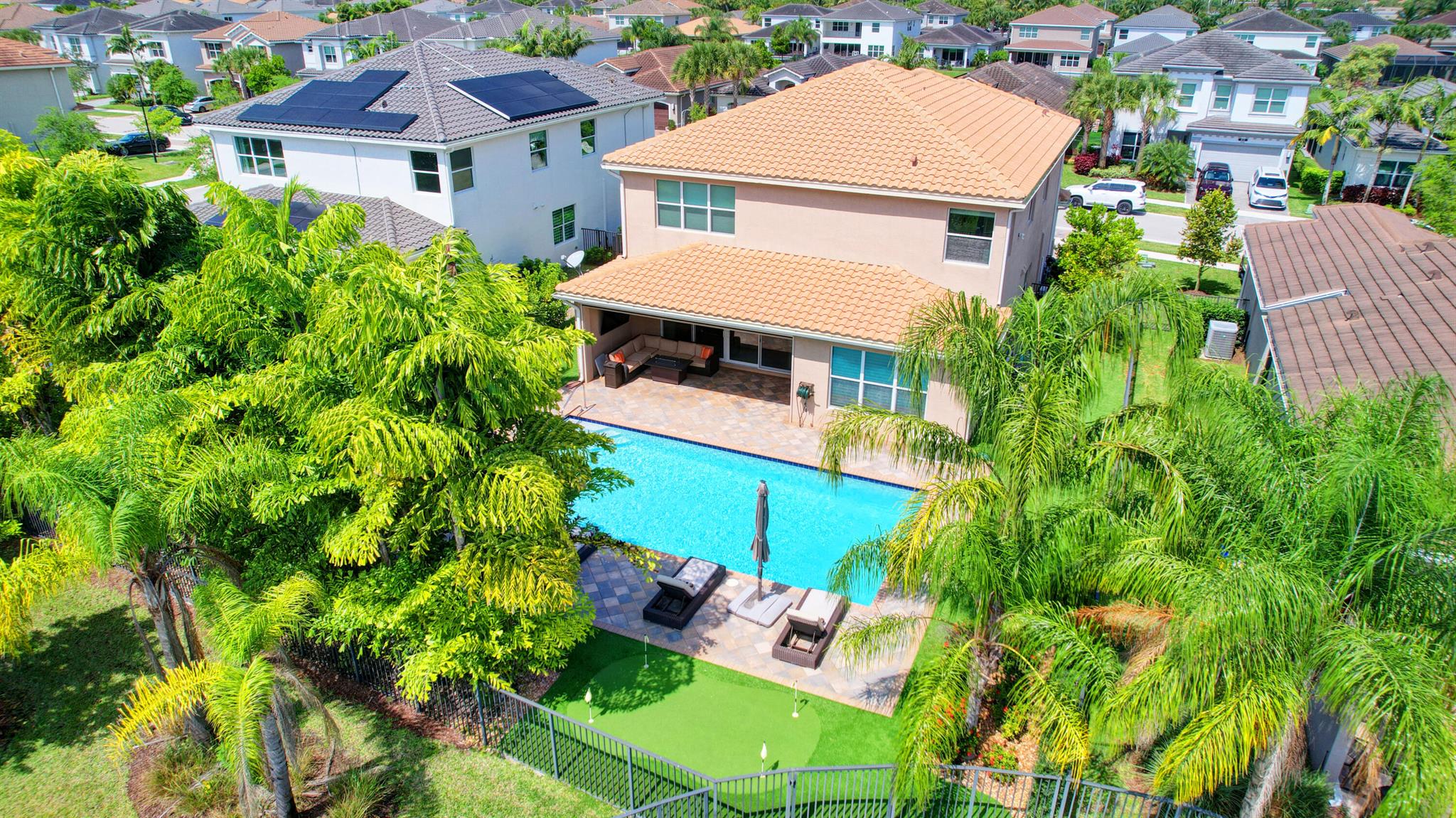 WELCOME TO PARADISE! THIS BEAUTIFUL SIENA GRANDE IS ON ONE OF THE LARGEST PREMIUM LOTS IN THE COMMUNITY WITH A WATER VIEW! Loaded with upgrades with custom high end landscaping front and back, whole house generator and much more! The family will all enjoy the oversized saltwater pool, putting green, fenced in turf backyard/sides and electric phantom patio screen! So much space! Consists of 6 bedrooms and 5 bathrooms! 4 bedrooms and 3 full bathrooms upstairs, 2 bedrooms & 2 full baths on the main floor. Kitchen features upgraded double oven, white shaker cabinets, quartz countertops, upgraded gourmet ss appliances, new backsplash plus expanded pantry, huge island and large dining area. Expansive family room with built ins. (click more)