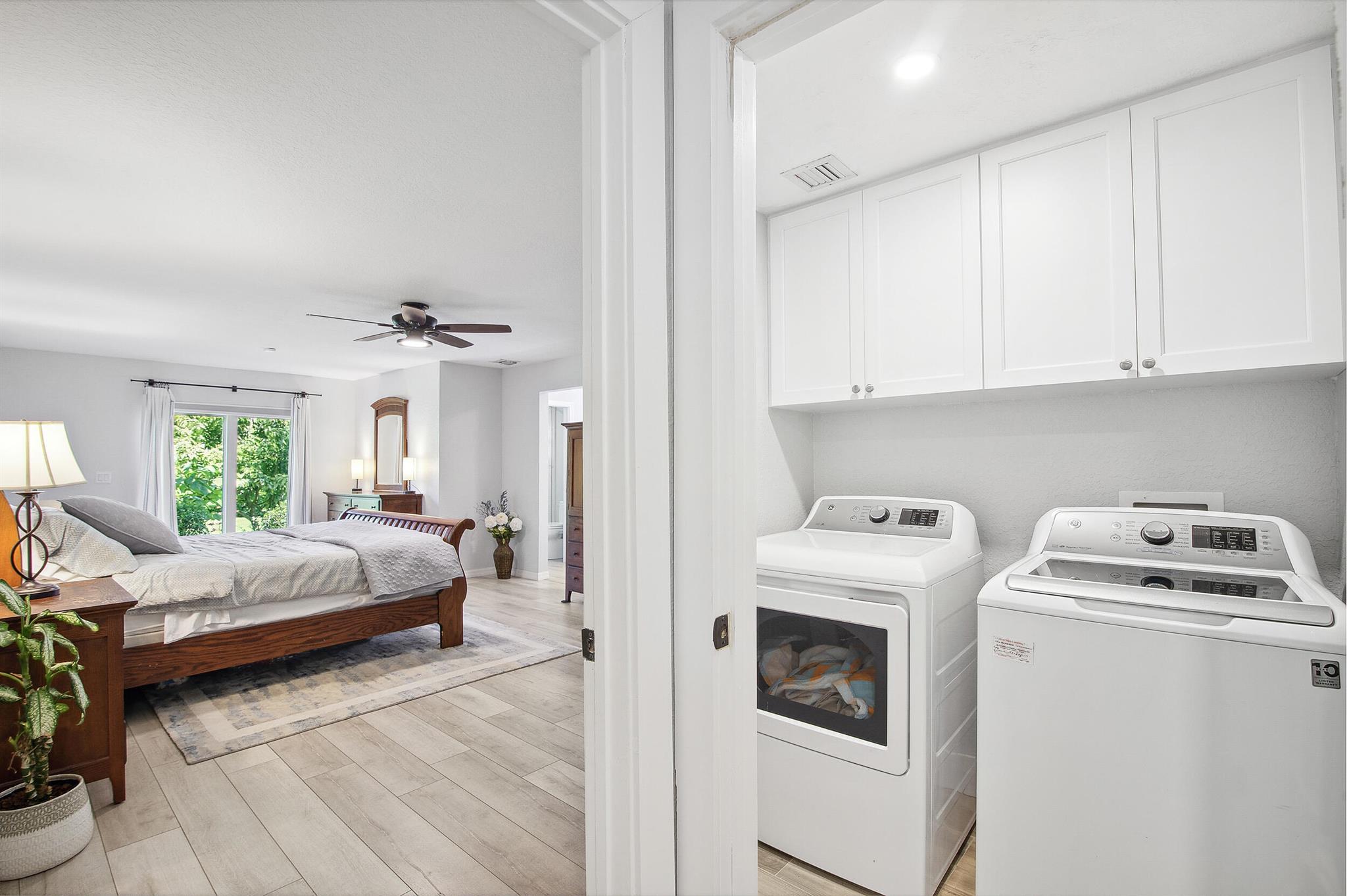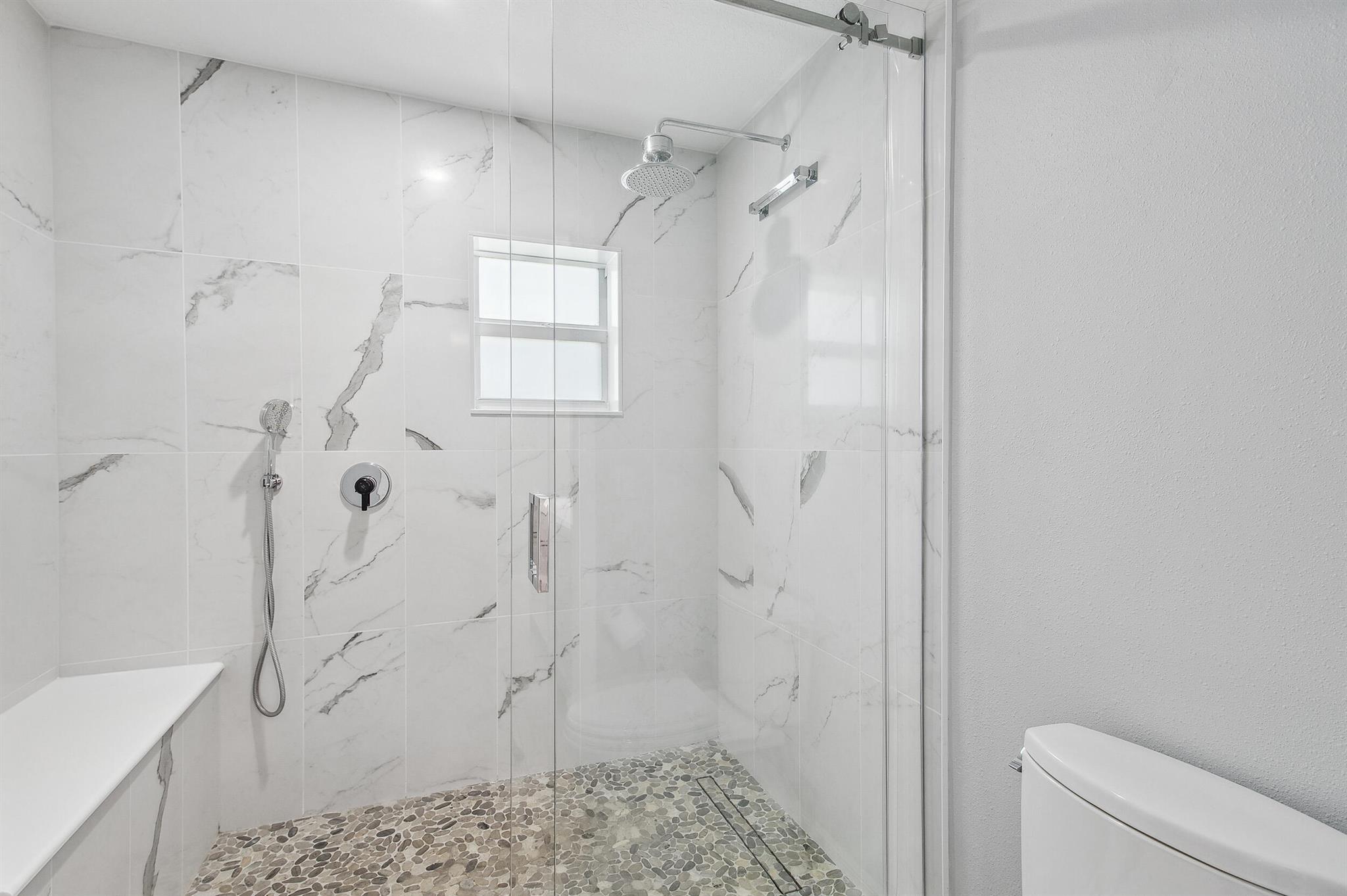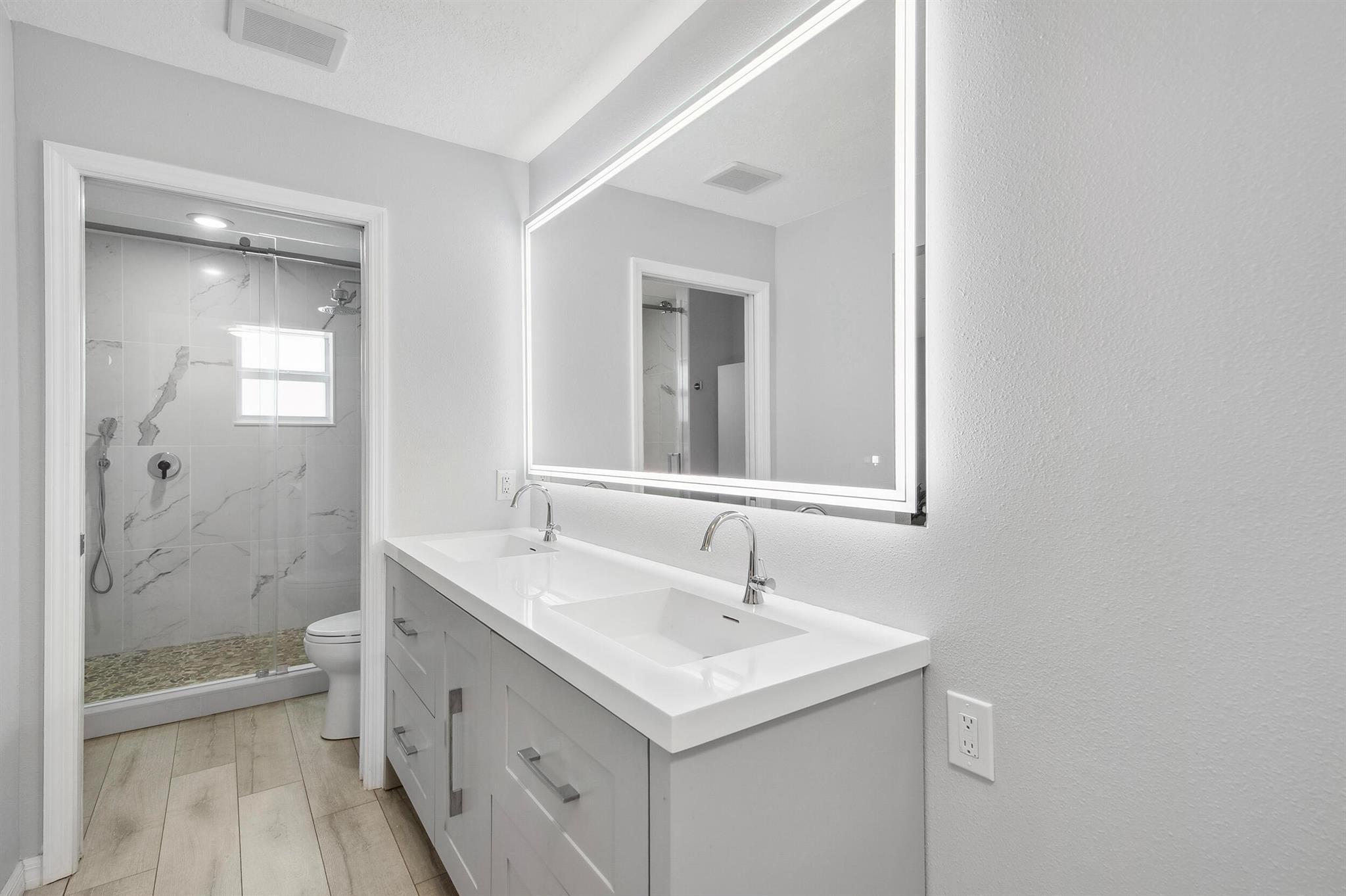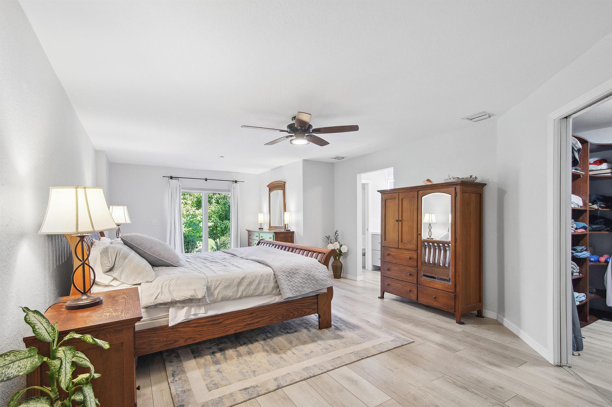 Nestled in a quiet cul-de-sac on an expansive 0.87-acre lot, this stunning 4-bedroom, 2.5-bath home offers 2,593 sq. ft. of thoughtfully designed living space. A huge concrete driveway provides ample parking for up to 10 cars or an RV, while the beautifully landscaped surroundings create a peaceful retreat.Step inside to find porcelain tile flooring in the living areas, soaring 20+ ft. ceilings, and automated blinds enhancing the home’s modern appeal. The fully remodeled kitchen boasts stainless steel appliances (2023), a large vent hood over the stove, Porcelain countertops, a wine cooler, extra bar cabinet space, and recessed lighting.The spacious master suite, located on the ground floor, features engineered laminate flooring, a luxurious en-suite bathroom with dual sinks, and