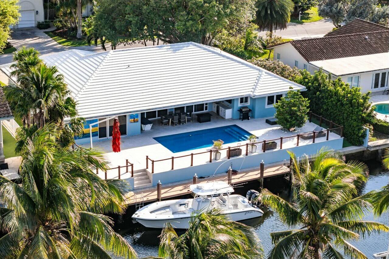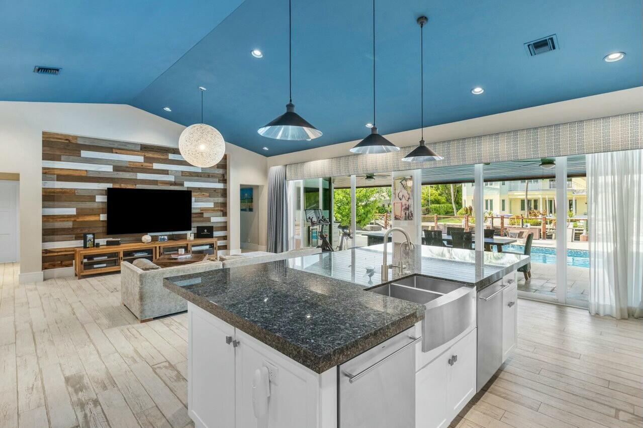 A rare opportunity to own a stunning single-story waterfront residence in the prestigious enclave of Tropical Isles. This beautifully renovated 4-bedroom, 5-bathroom home offers 90 feet of water frontage, a 3-car garage, and an impressive list of upgrades completed in 2018.Boaters will appreciate the 50′ PVC dock equipped with water, electric, and wired for a lift–plus an additional 18′ floating dock. Relax poolside in the saltwater, heated pool and enjoy the peace of mind provided by hurricane-impact windows and doors, as well as a full-house generator.