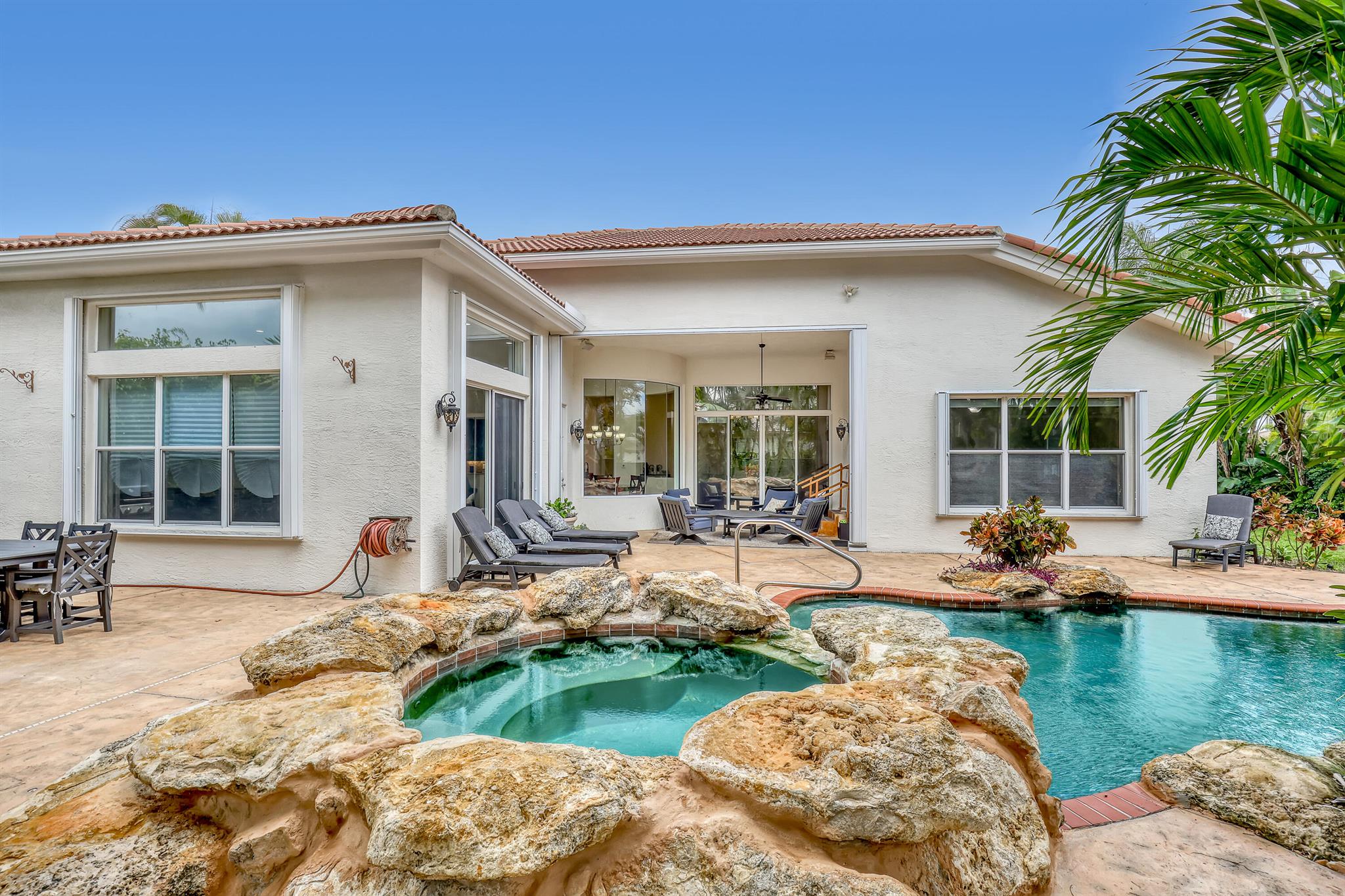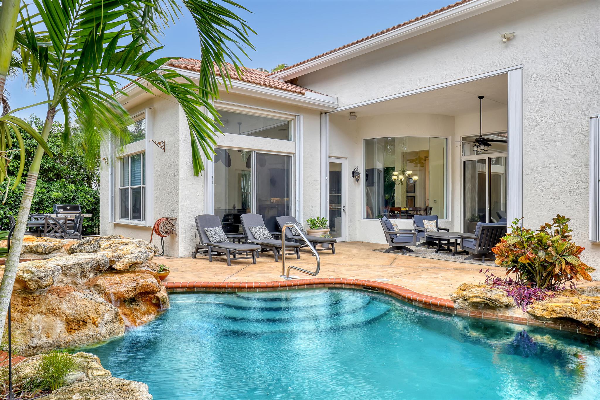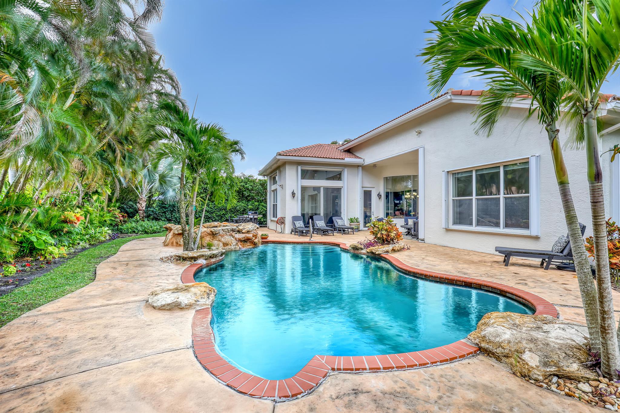 Welcome to paradise! Being offered for the first time, this single story Sienna model 5/3/2 pool home has everything you could want. Featuring 3321 living square feet and over 4000 total, this has plenty of room. The recently upgraded chefs kitchen has high end solid wood cabinetry, newer top of the line stainless appliances, granite counter tops, and custom backsplash. Large neutral tile floors throughout give a nice light and bright feel and the extra high ceilings give a massive feel to this expansive home. Featuring large bathrooms and closets and a full built in custom office (5th bedroom) this is perfect for the work at home crowd. Relax and enjoy life by the fully custom built pool with hot tub and rock waterfall. Get out of the sun under the large covered patio and stret