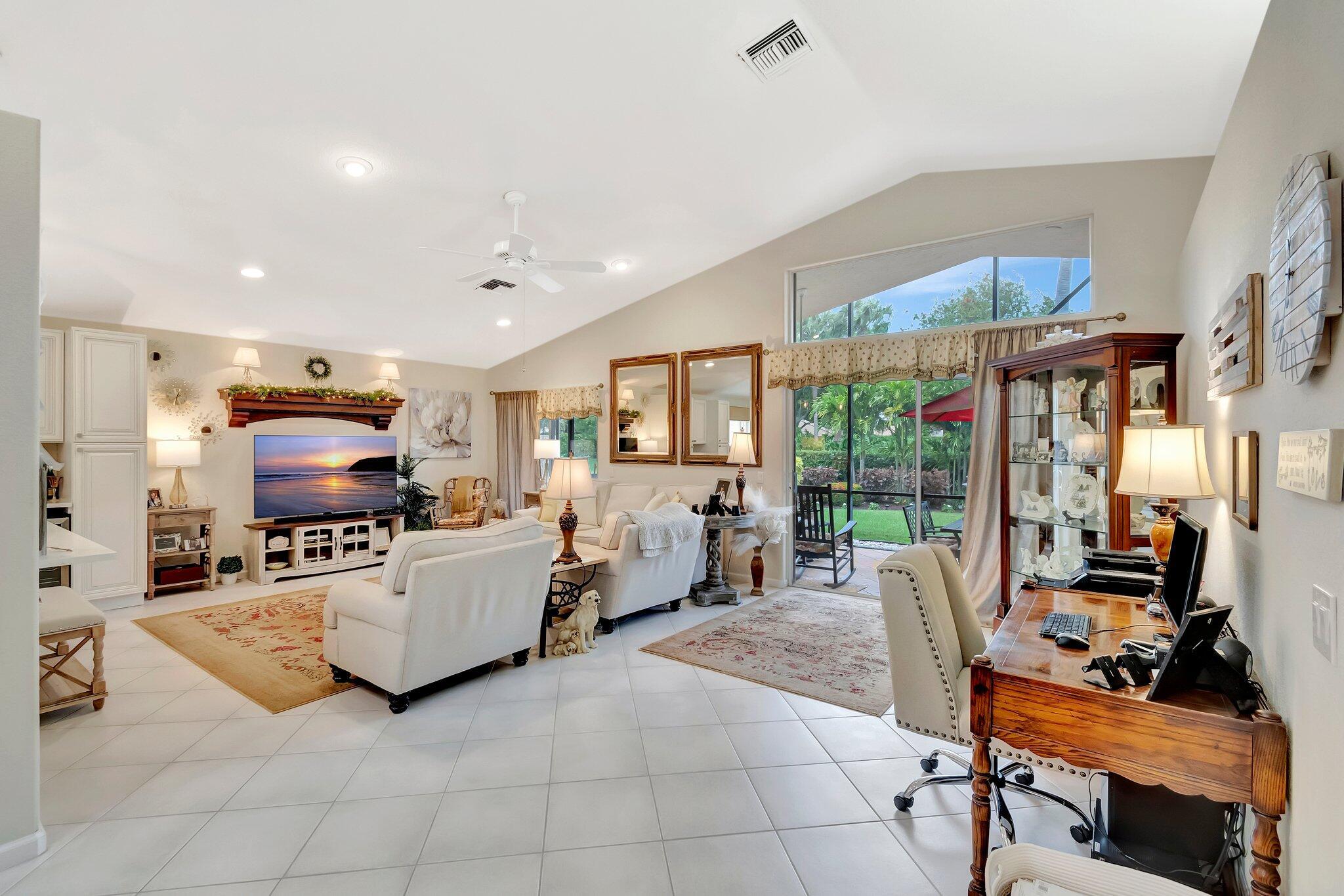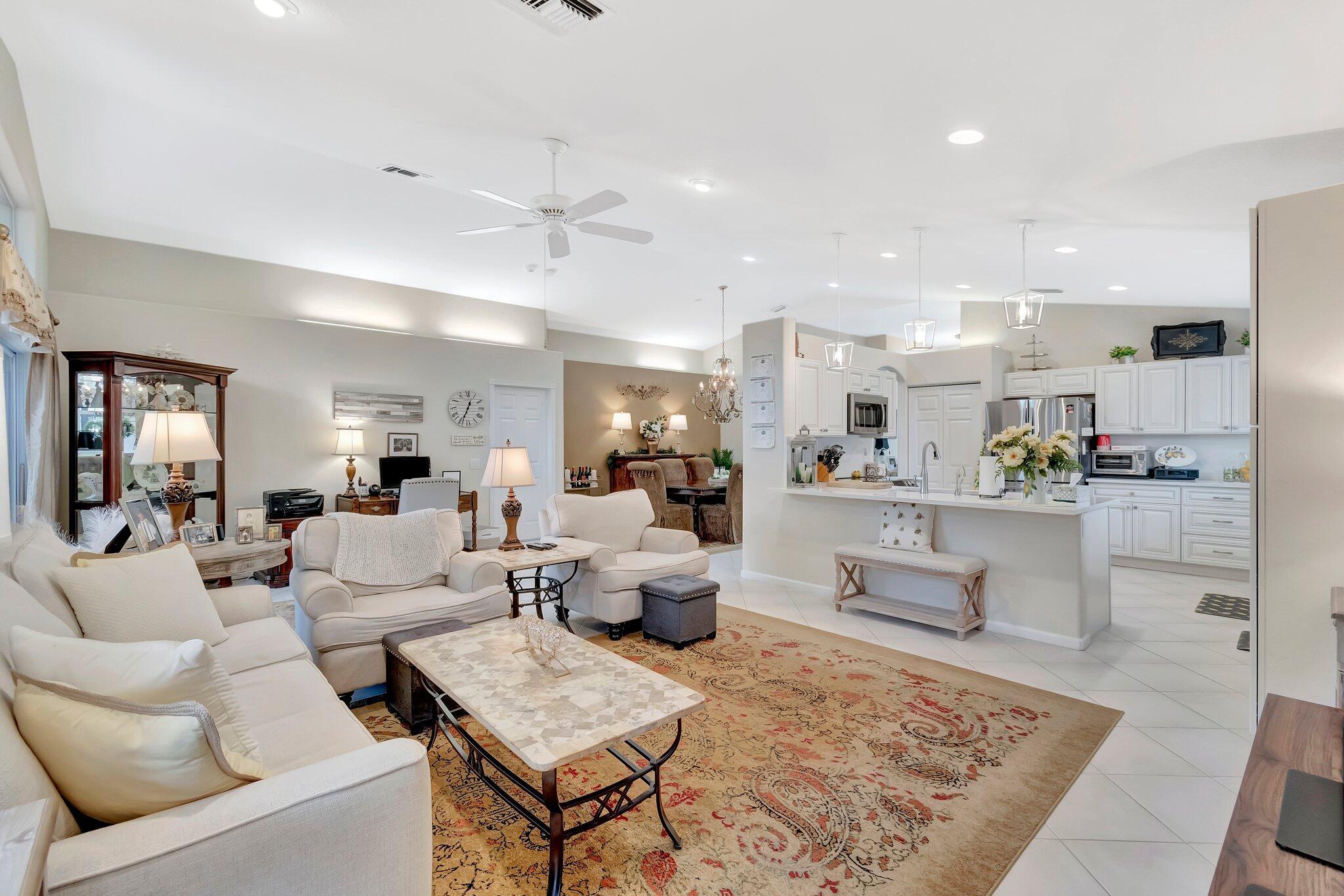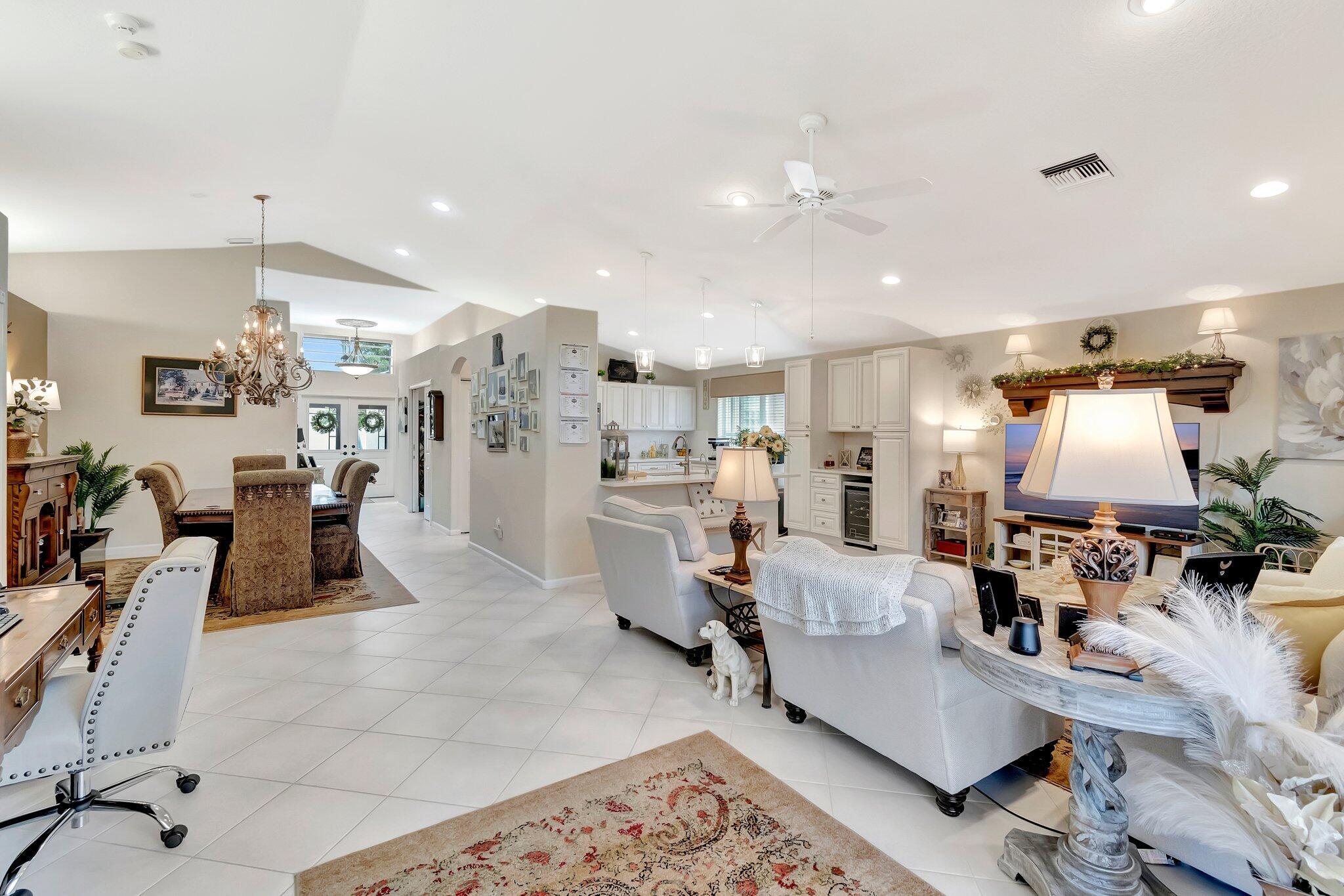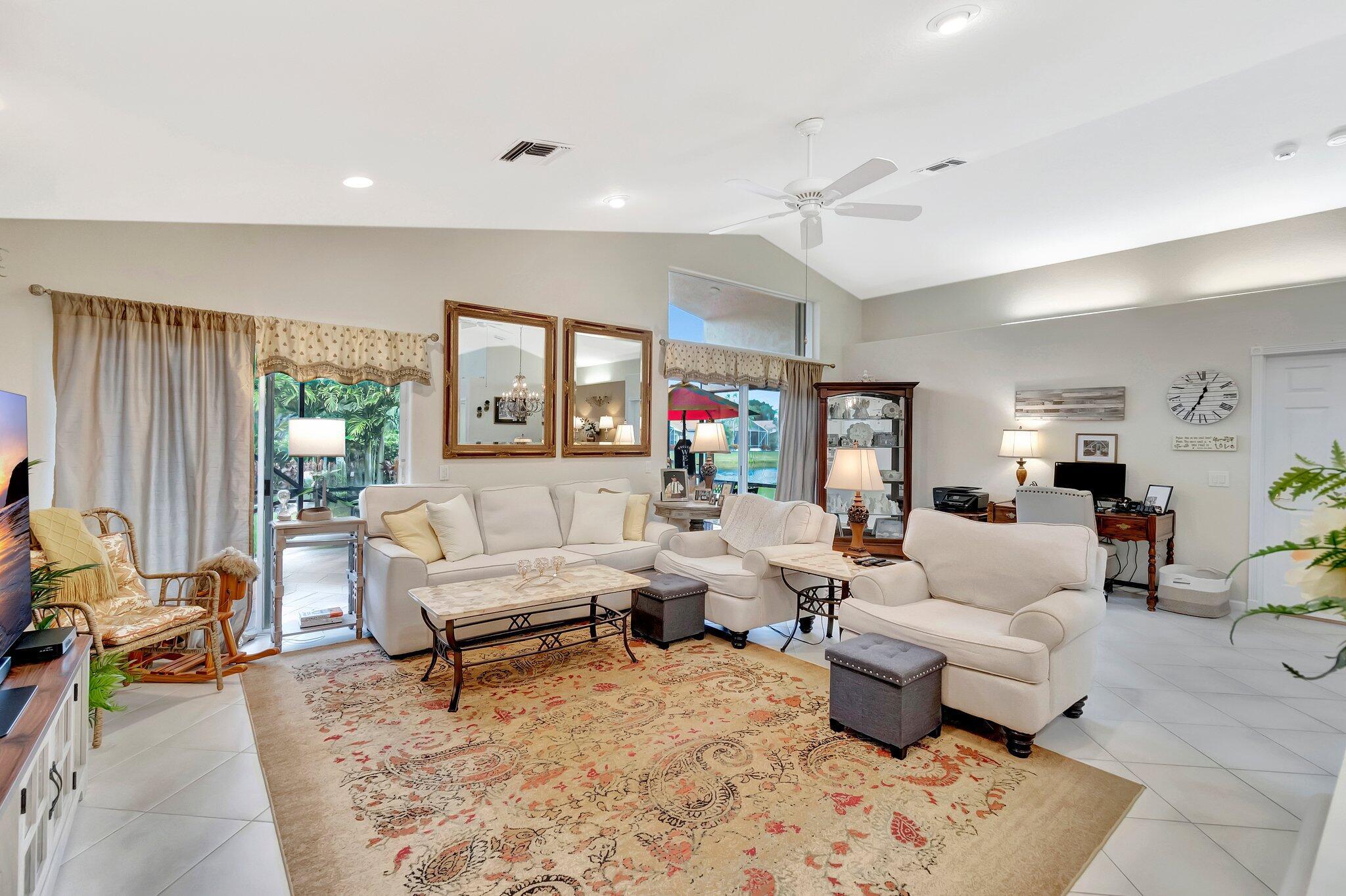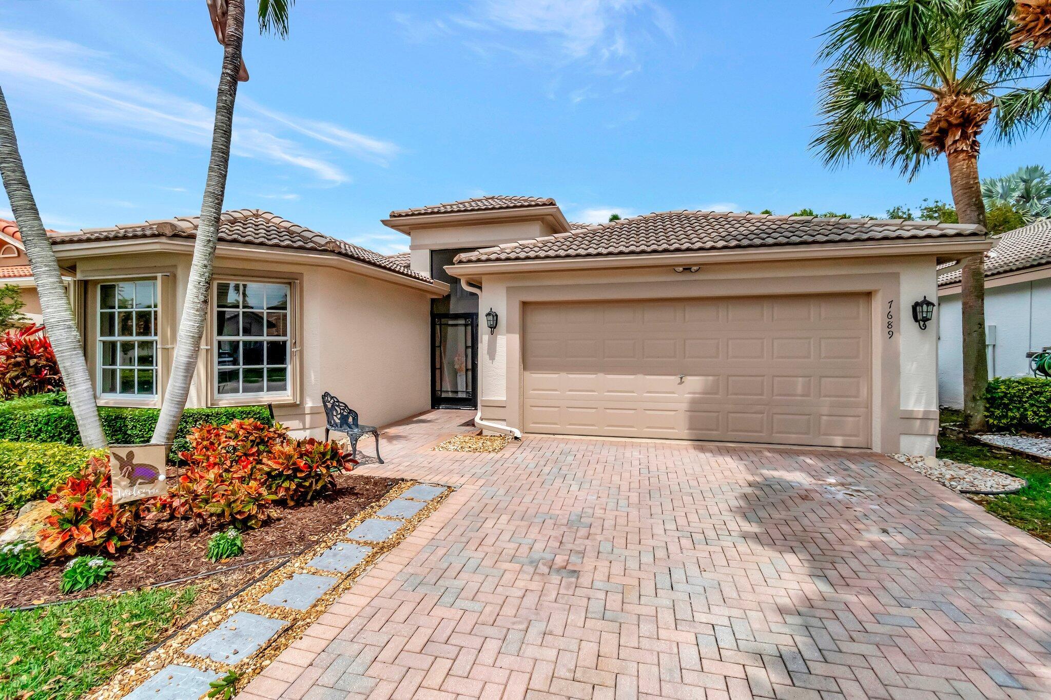SELLER WILL CREDIT TOWARDS A NEW ROOFThis is a meticulously renovated Coral model home located at 7689 Las Cruces Ct, Boynton Beach, Florida. Situated in a calm lakefront setting with room for a pool, it provides a respite from city noise while still affording easy commute access. The home invites you through custom glass doors into an interior boasting remarkable lake views from the living room, dining room, family room, and even the kitchen. The master suite is accentuated with bay windows, offering tranquil views of the lake. This serene space showcases an inherent design for relaxation and alleviation from the daily grind. The property is equipped with a recently updated air conditioning system (2018) assuring optimal, year-round comfort. Hot Water Heater(2024)