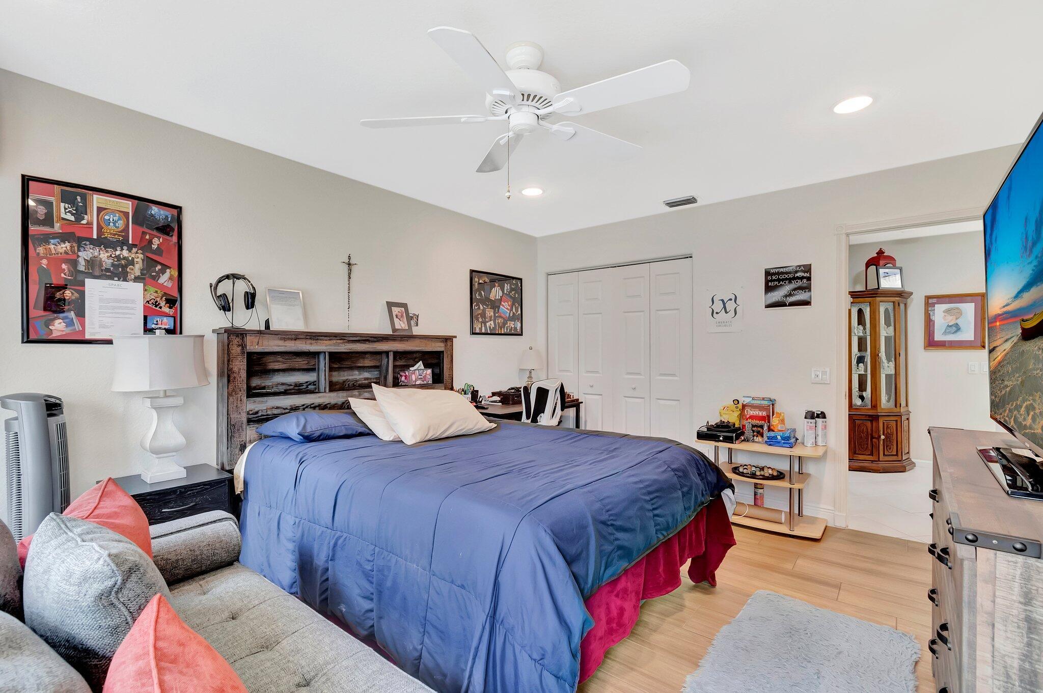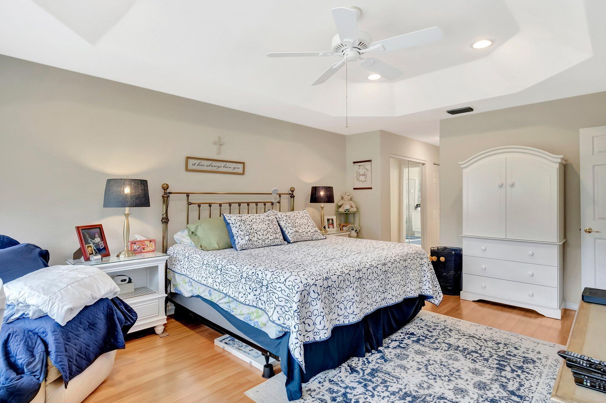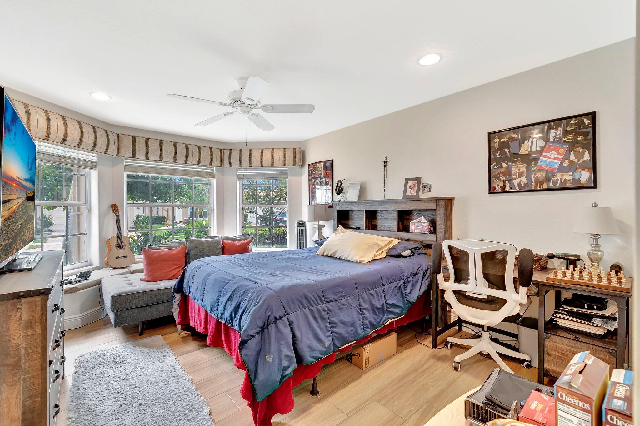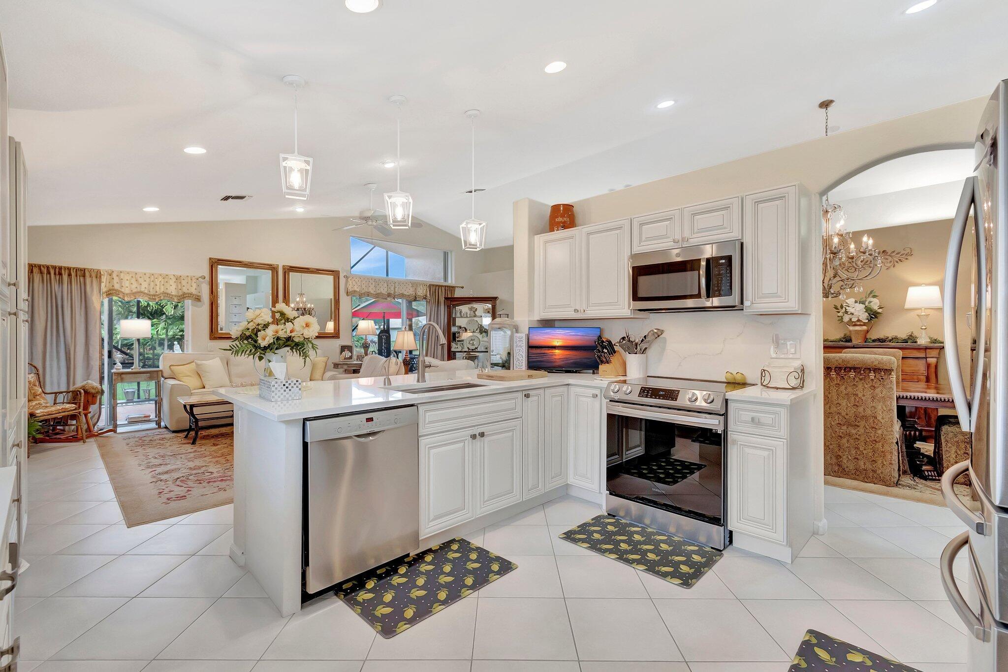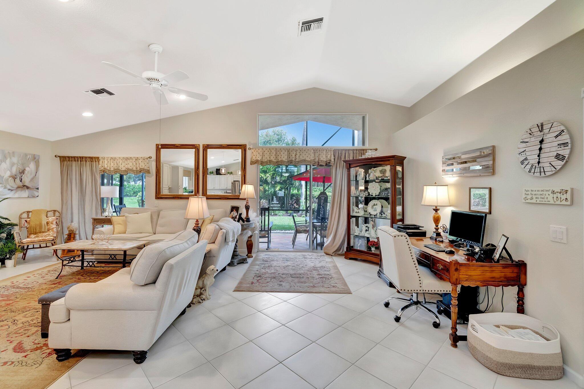 SELLER WILL CREDIT TOWARDS A NEW ROOFThis is a meticulously renovated Coral model home located at 7689 Las Cruces Ct, Boynton Beach, Florida. Situated in a calm lakefront setting with room for a pool, it provides a respite from city noise while still affording easy commute access. The home invites you through custom glass doors into an interior boasting remarkable lake views from the living room, dining room, family room, and even the kitchen. The master suite is accentuated with bay windows, offering tranquil views of the lake. This serene space showcases an inherent design for relaxation and alleviation from the daily grind. The property is equipped with a recently updated air conditioning system (2018) assuring optimal, year-round comfort. Hot Water Heater(2024)