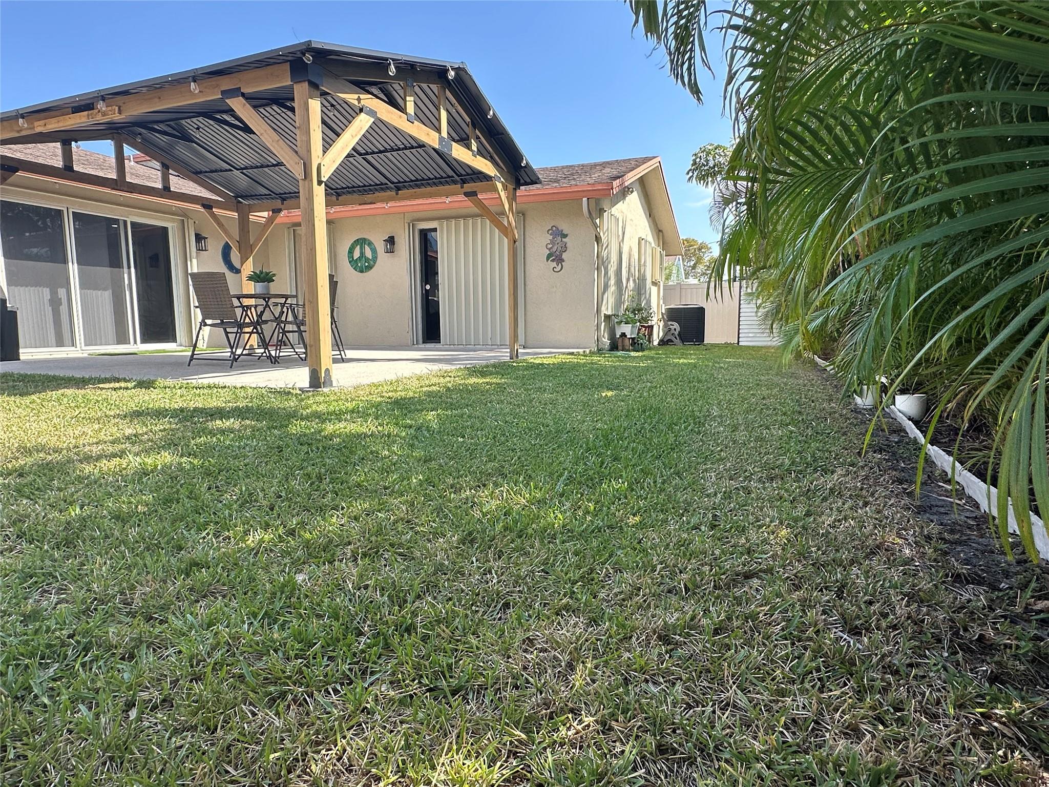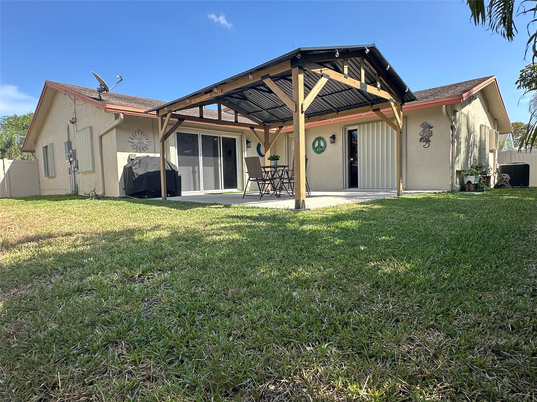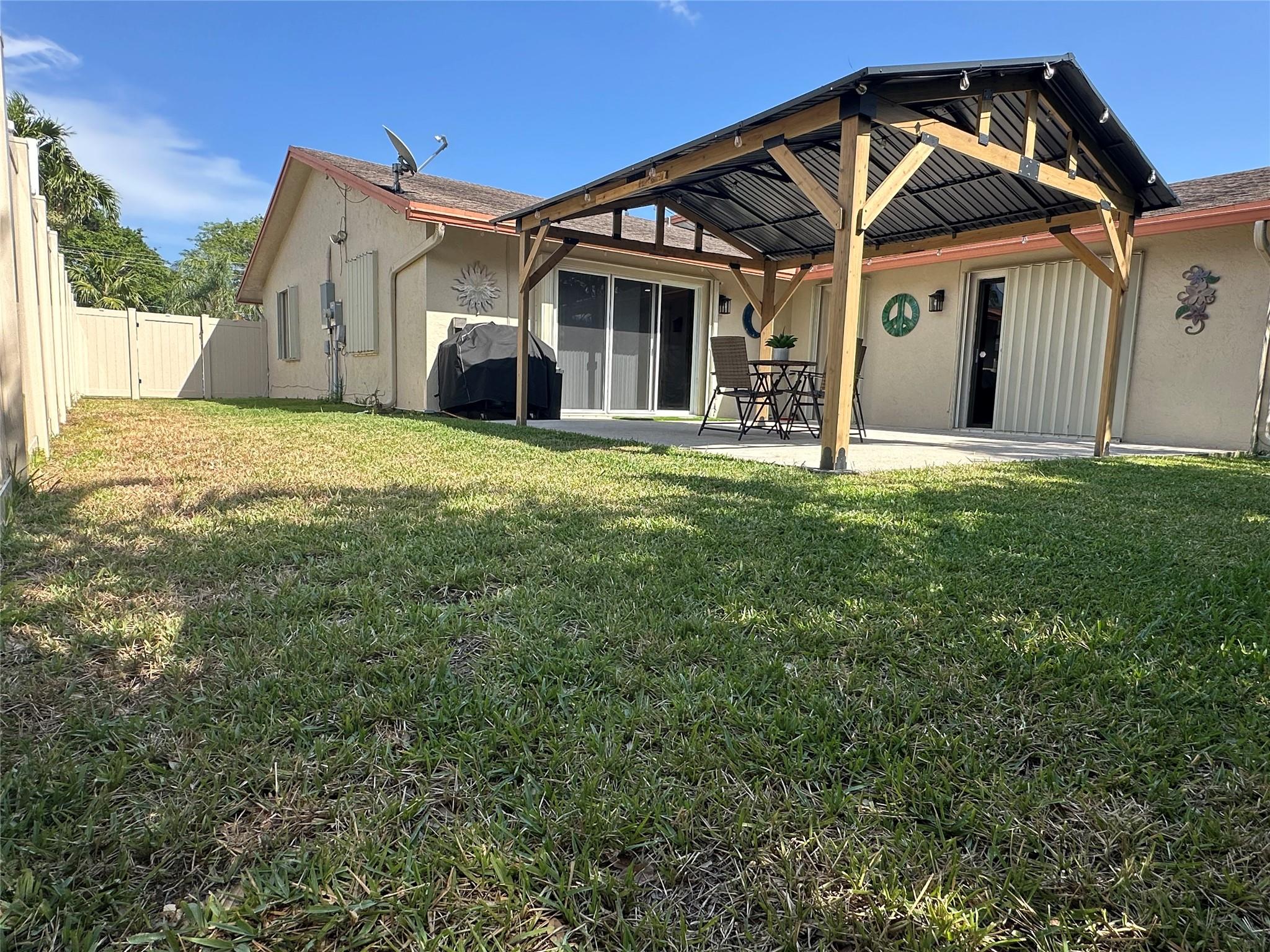 Step outside from your living room and relax in the beautifully shaded backyard under a brand-new gazebo. Plus, enjoy extra storage with the included shed.
