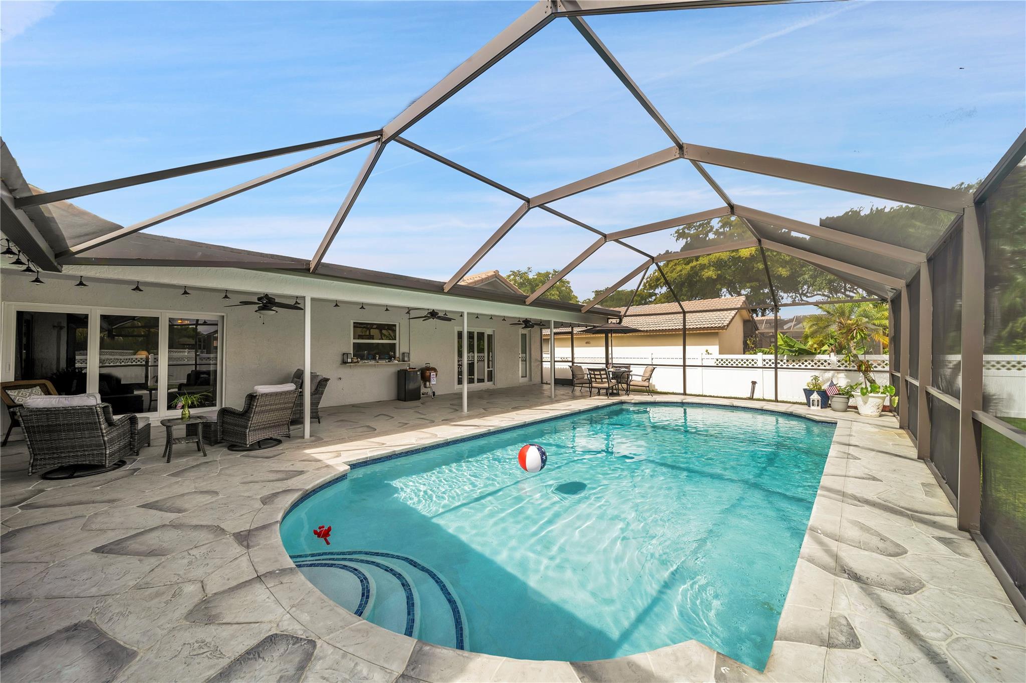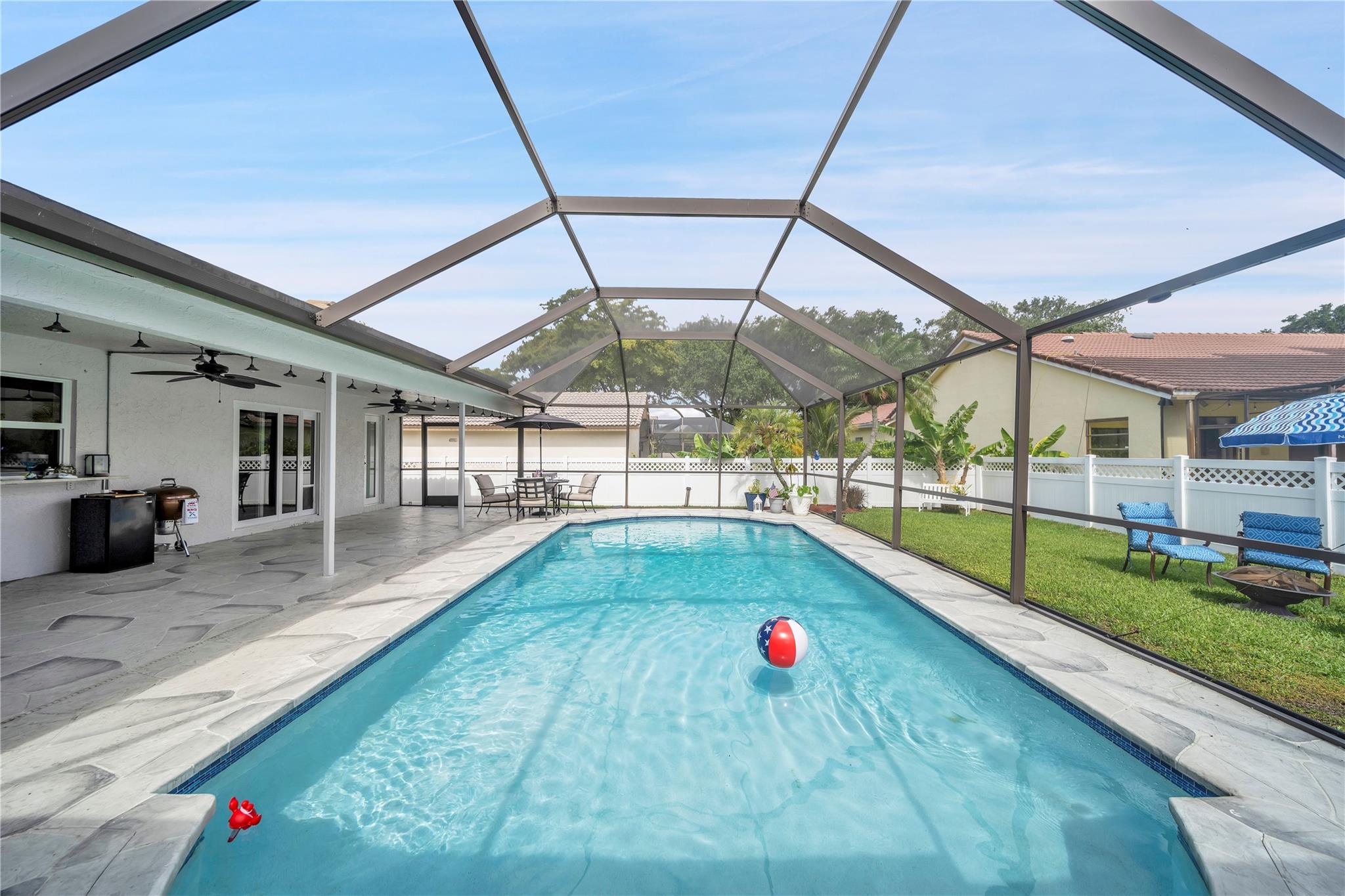 MOTIVATED TO SELL! This Stunning 4 BR/2.5 BA home offers 2,437 sq ft of living space w/MODERN UPGRADES & charming features in highly DESIRED PINE RIDGE COMMUNITY w/Low HOA! Enjoy year-round relaxation in your private screened pool. The RENOVATED KITCHEN features Granite countertops, Double stainless steel wall ovens & huge pull out pantry! Cozy up by the fireplace & rest easy w/HIGH IMPACT SAFETY GLASS THROUGH-OUT! FENCED BACKYARD has lots of space for outdoor fun & Lg Shed has XTRA storage for all your recreational toys! Recent updates incl: BRAND NEW AC & expanded Driveway 2023. Durable Tile Roof 2012! Located in TOP SCHOOL DISTRICT! Close to Shopping, Entertainment, Hwys, Parks, Sports, Hospital, Intl Airports. Discover the best of Coral Springs living! SCHEDULE A SHOWING TODAY!