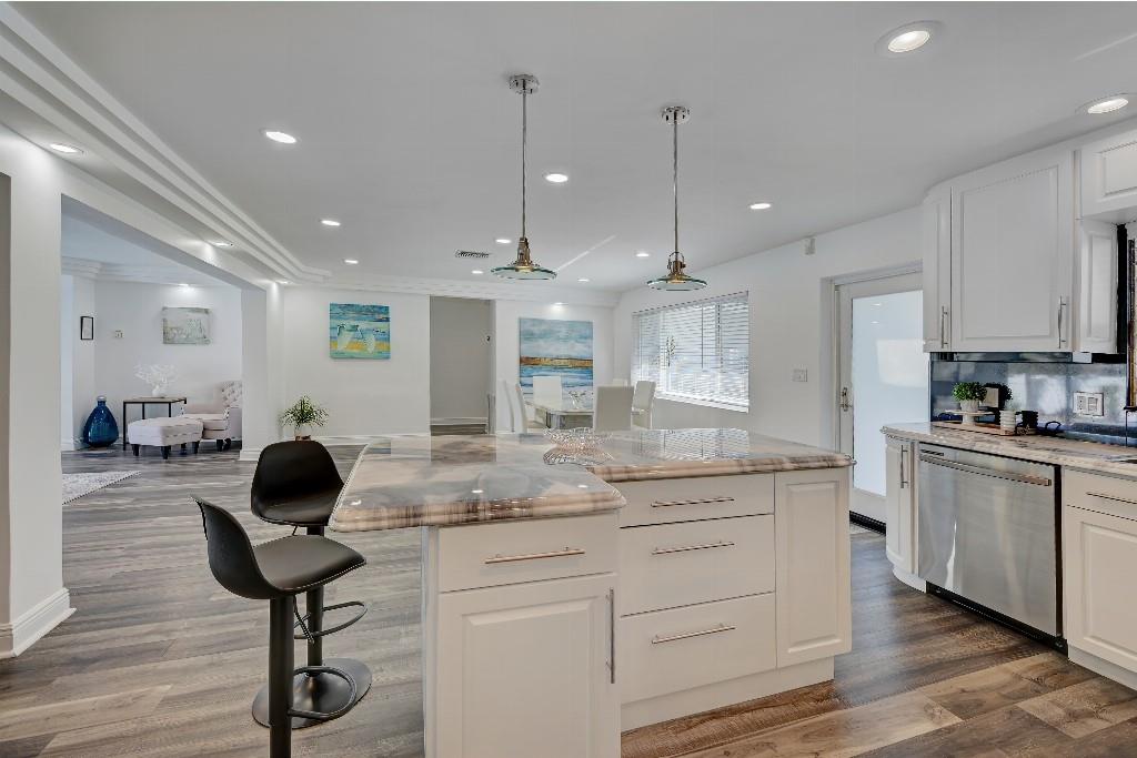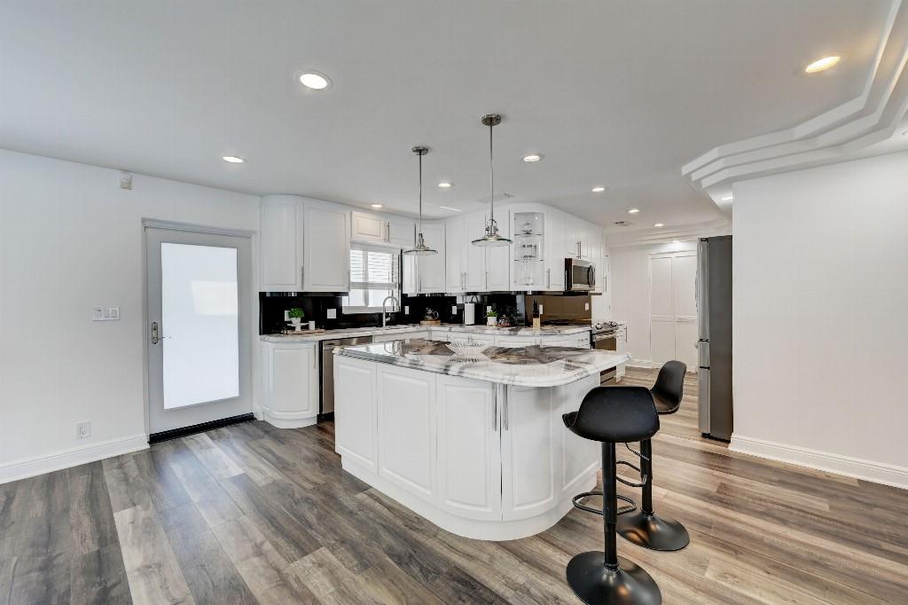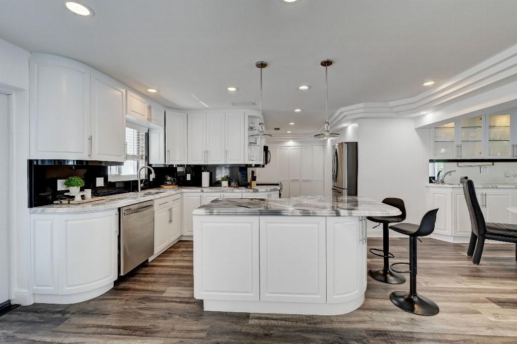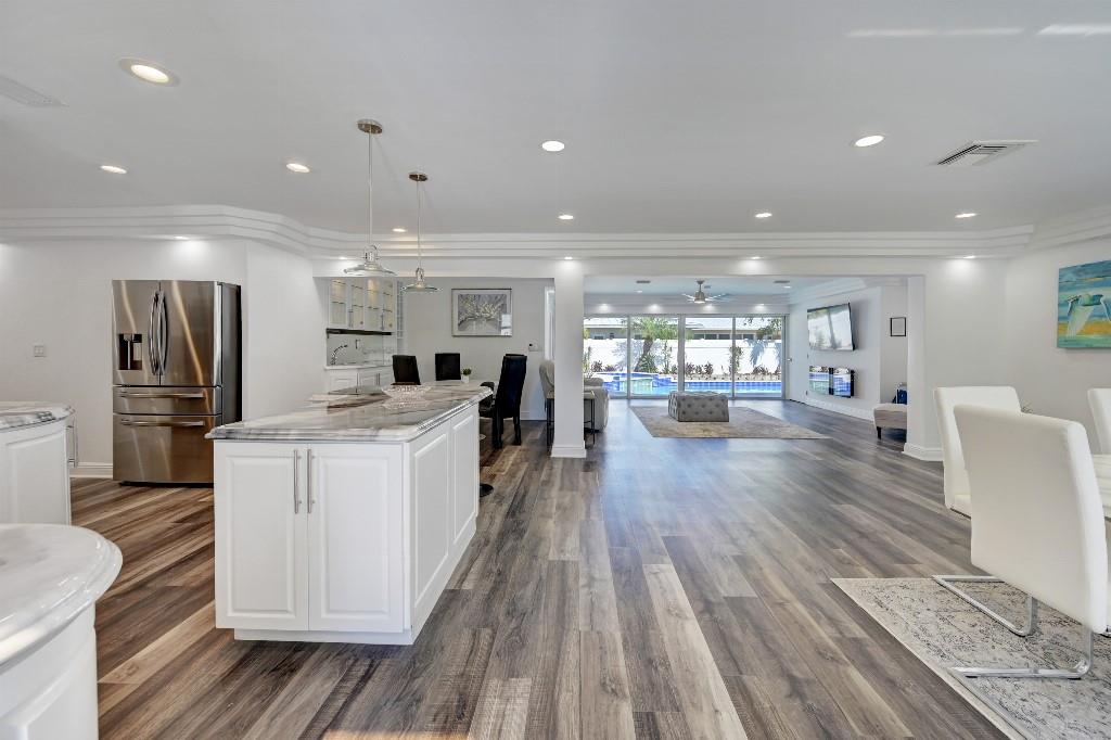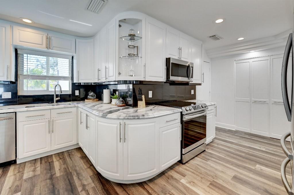 Home completely updated with new quartz counter tops and island, new laundry area, huge quartz folding area and new cabinetry for storage, all new porcelain plank flooring, all new interior doors and hardware, baseboard and casing throughout, updated bathrooms with custom vanities, master bath beautiful with led lighted vanity mirrors, open concept shower and free standing tub. Pool completely redone: with custom clear tiles, and new pool automation equipment. Modern barn doors on closets, and master bedroom has large new custom closet.