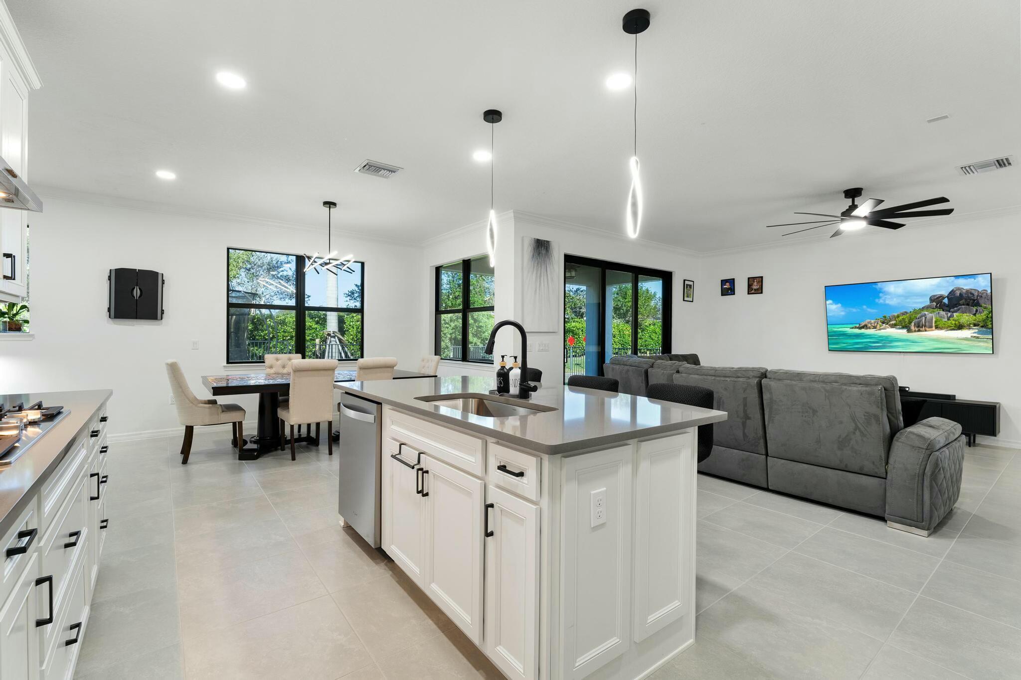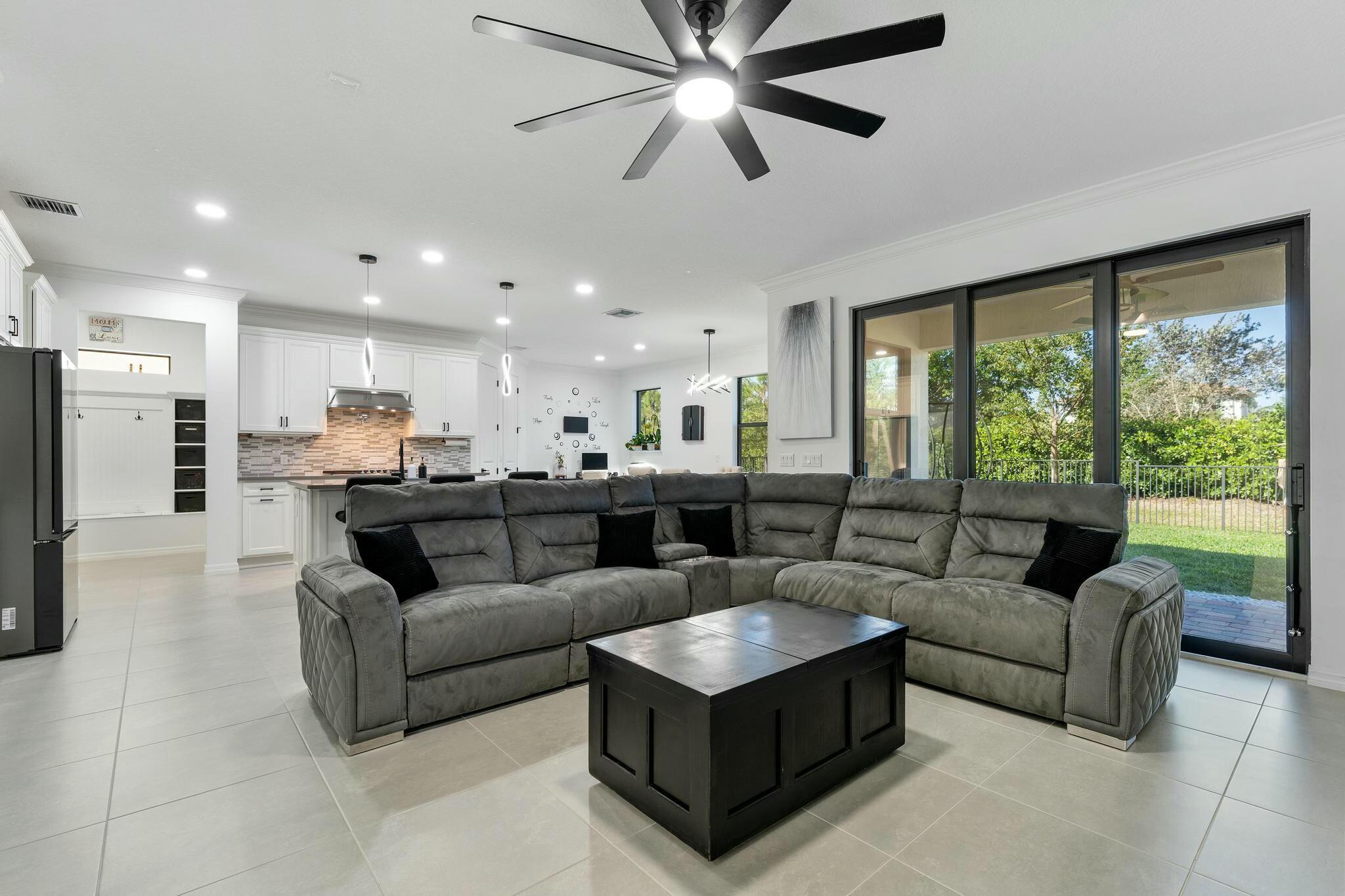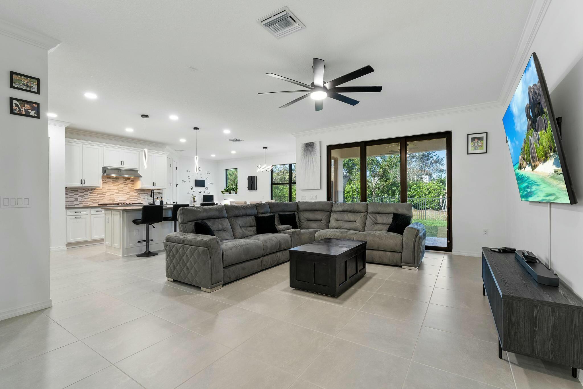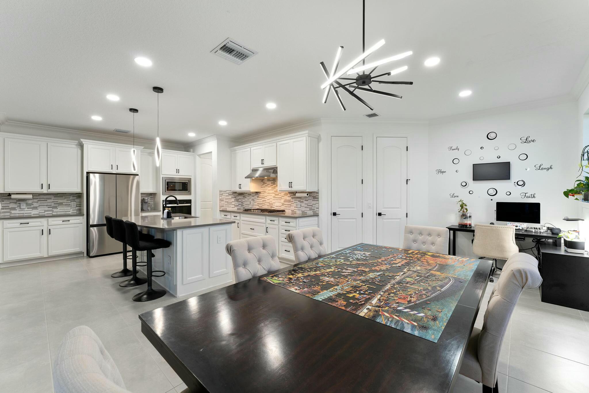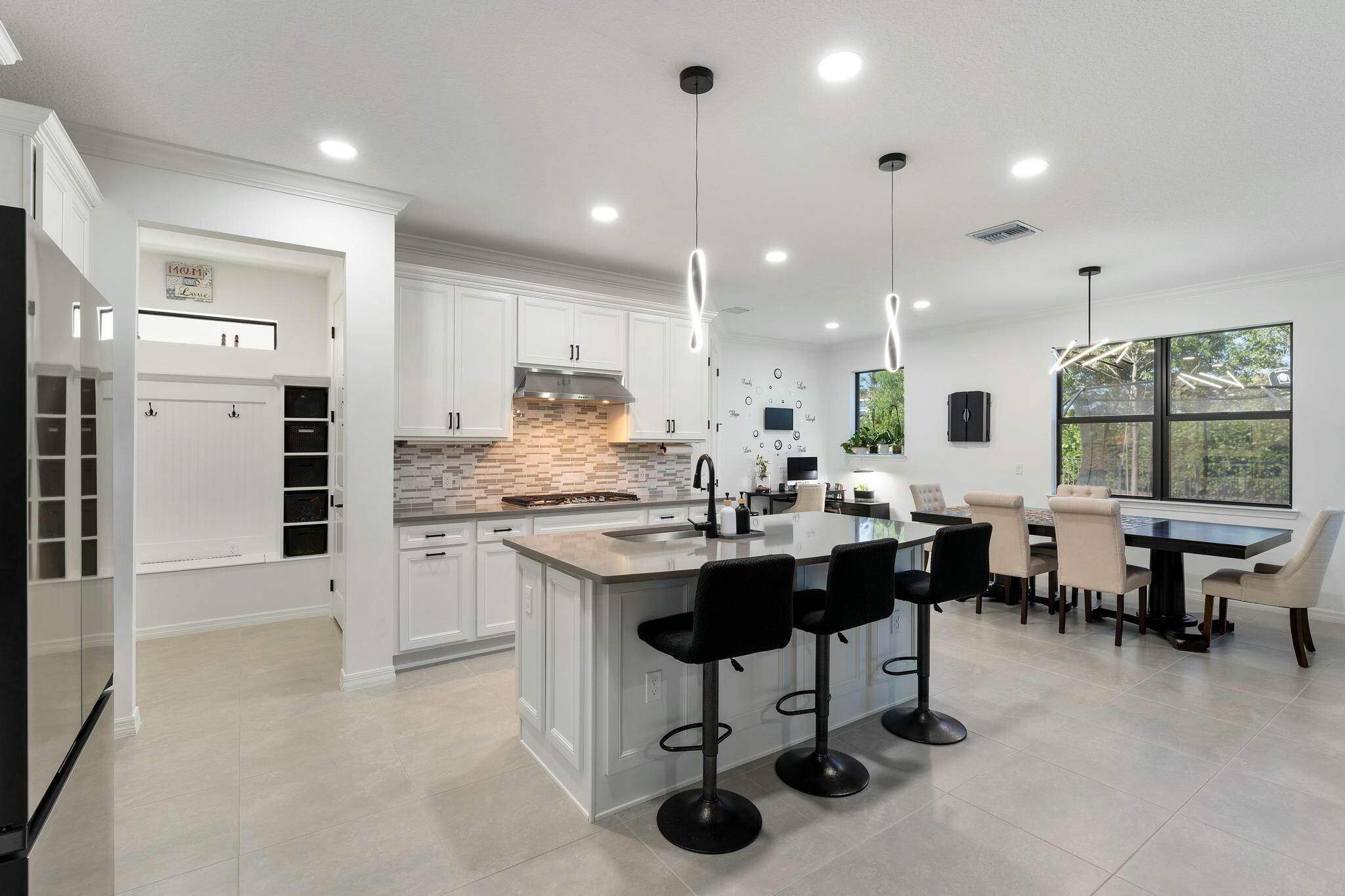 Stunning, modern 2023-Built home in the sought-after gated community of The Fields. This beautifully designed home offers 5 spacious bedrooms and 4 full bathrooms, including a convenient first-floor bedroom and bath. Situated on a desirable corner lot, this residence features impact windows, gas appliances, solid wood kitchen cabinets and elegant quartz countertops. The chef’s kitchen boasts a double pantry for ample storage. Enjoy energy efficiency with a tankless water heater and an alkaline water filtration system for the entire home. Outdoors, relax in a permanently installed outdoor trim lighting within the fenced yard. Additional perks include a 2-car garage with ceiling storage racks. Don’t miss this modern masterpiece!