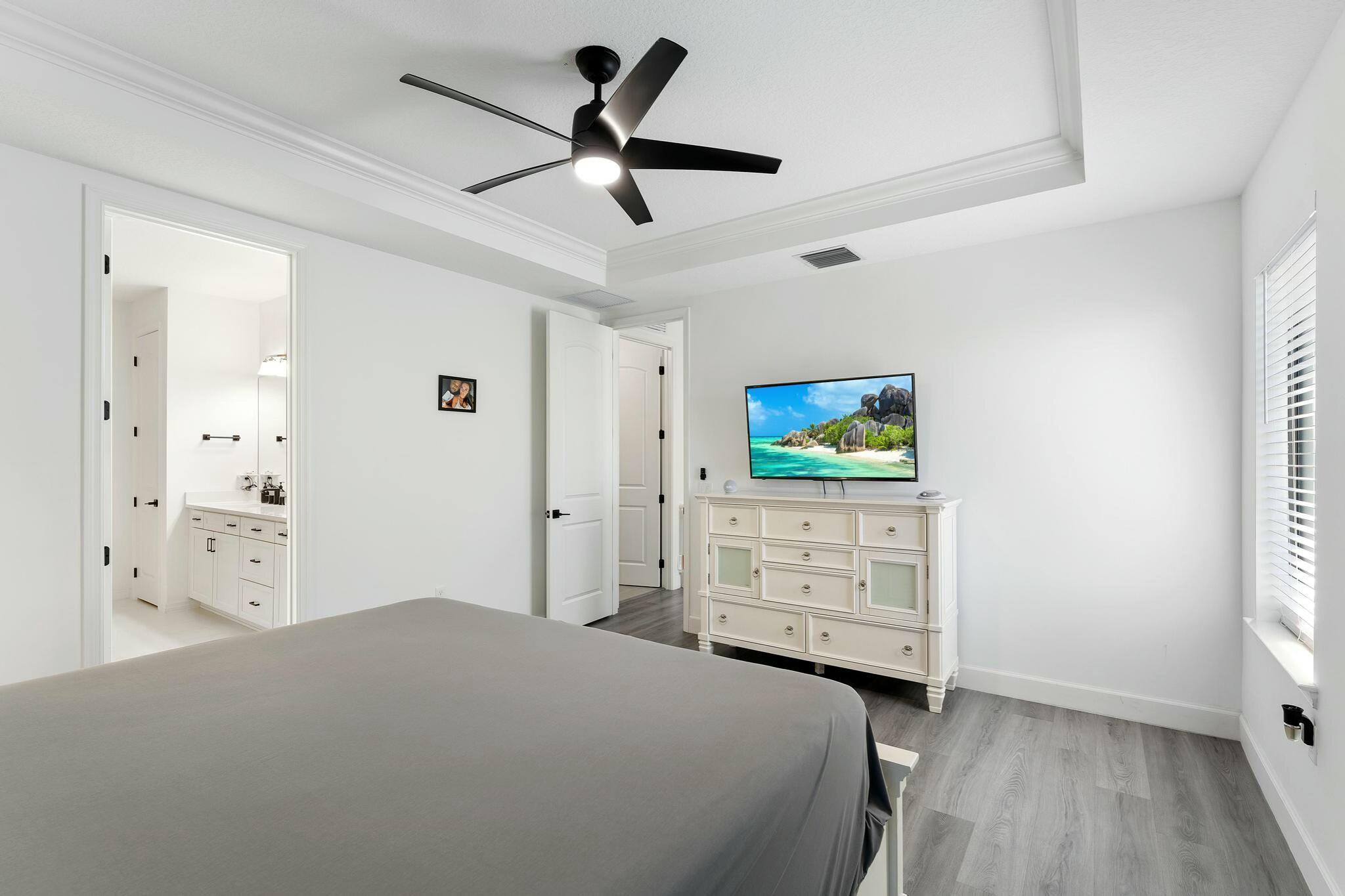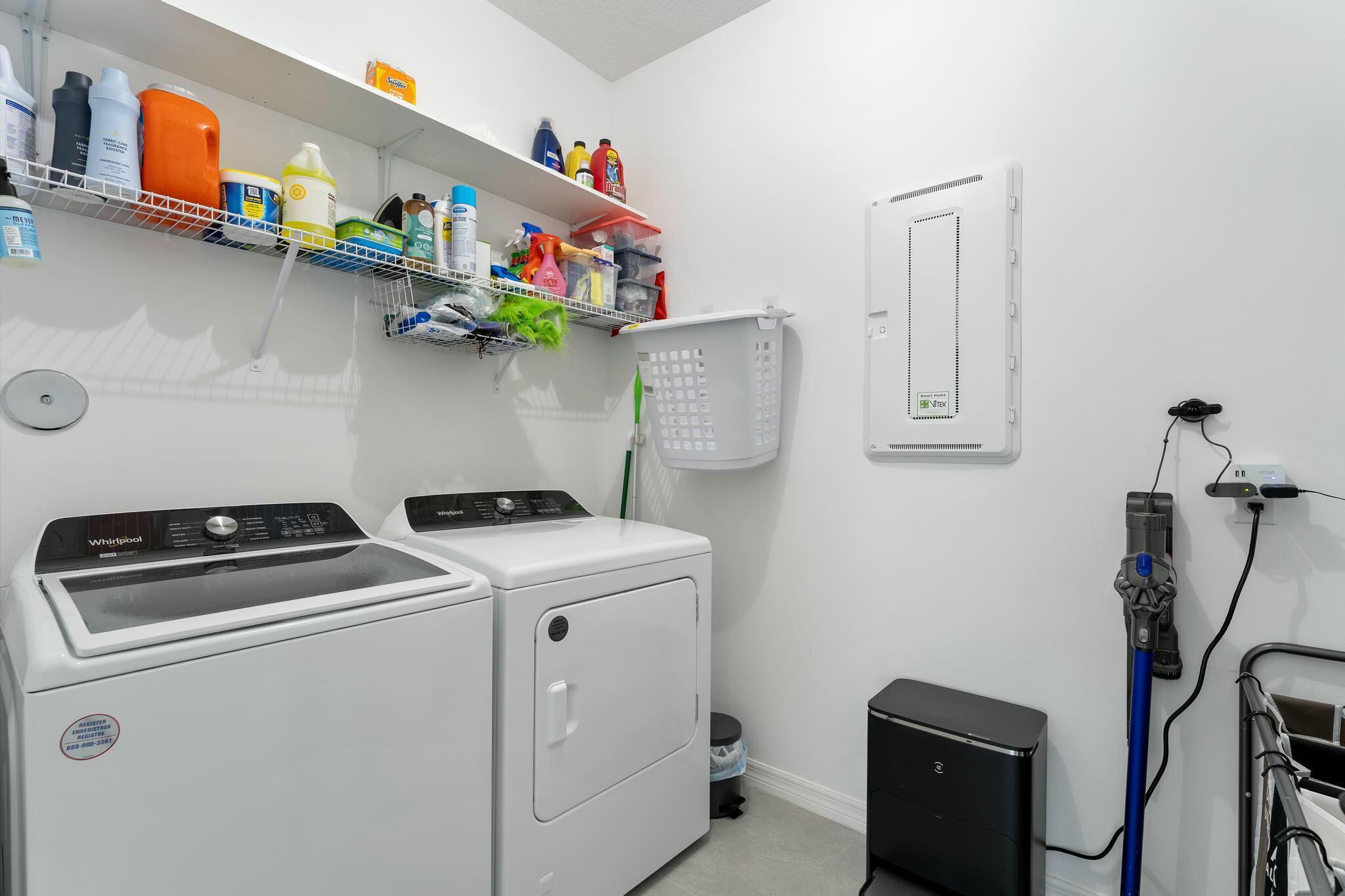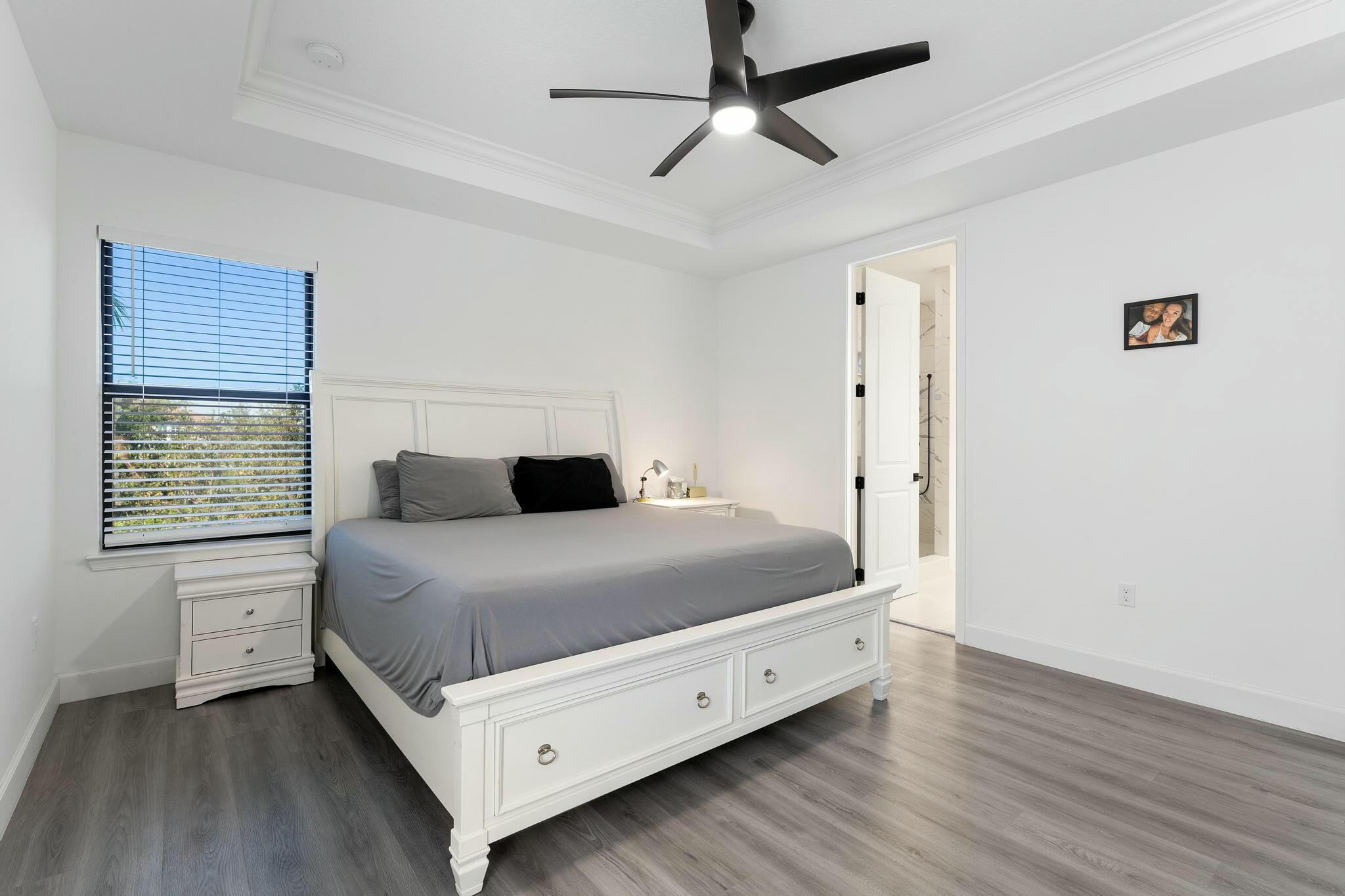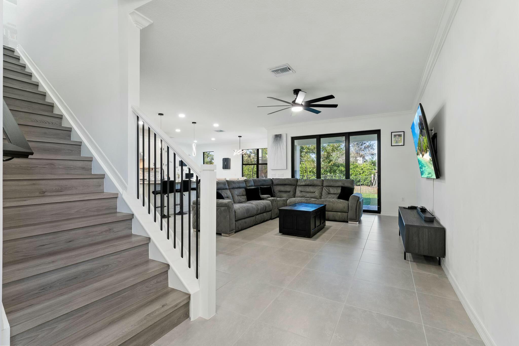 Stunning, modern 2023-Built home in the sought-after gated community of The Fields. This beautifully designed home offers 5 spacious bedrooms and 4 full bathrooms, including a convenient first-floor bedroom and bath. Situated on a desirable corner lot, this residence features impact windows, gas appliances, solid wood kitchen cabinets and elegant quartz countertops. The chef’s kitchen boasts a double pantry for ample storage. Enjoy energy efficiency with a tankless water heater and an alkaline water filtration system for the entire home. Outdoors, relax in a permanently installed outdoor trim lighting within the fenced yard. Additional perks include a 2-car garage with ceiling storage racks. Don’t miss this modern masterpiece!