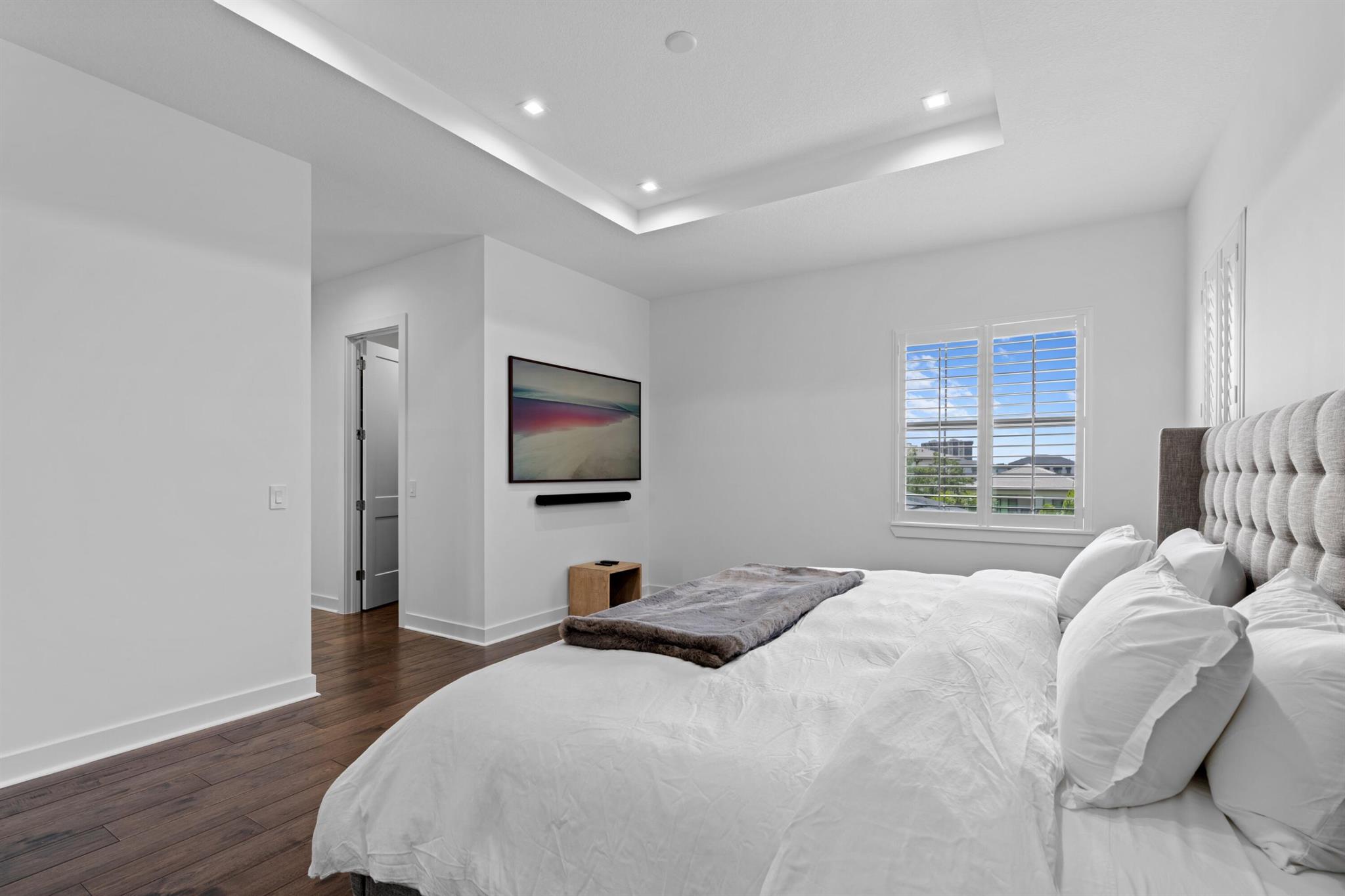 NEW CONSTRUCTION, OFFERED FULLY FURNISHED – 4,000+ square feet, 3 bed / 3.5 bath + Den + Theatre Room with ‘cloud couch’ seating 16 people, 85” Samsung 8K TV and Sonos surround sound system. Master Suite has custom bed spanning 10 feet wide, 75” Samsung ‘The Frame’ TV, his & hers walk-in closets, and oversized shower with floor to ceiling marble. Property is full of 100k+ in upgrades: tray ceilings, flush-mount LED lighting, Sonos in-ceiling speakers, remote controlled Lutron electric window shades, extra-wide hardwood floors, Calcutta Gold quartz countertops w/ ‘waterfall’ island, and MUCH MORE. Located on cul-de-sac, heated swimming pool, hot tub, covered loggia, and lake view. Neighborhood is private, gated, and security-guard protected. more…