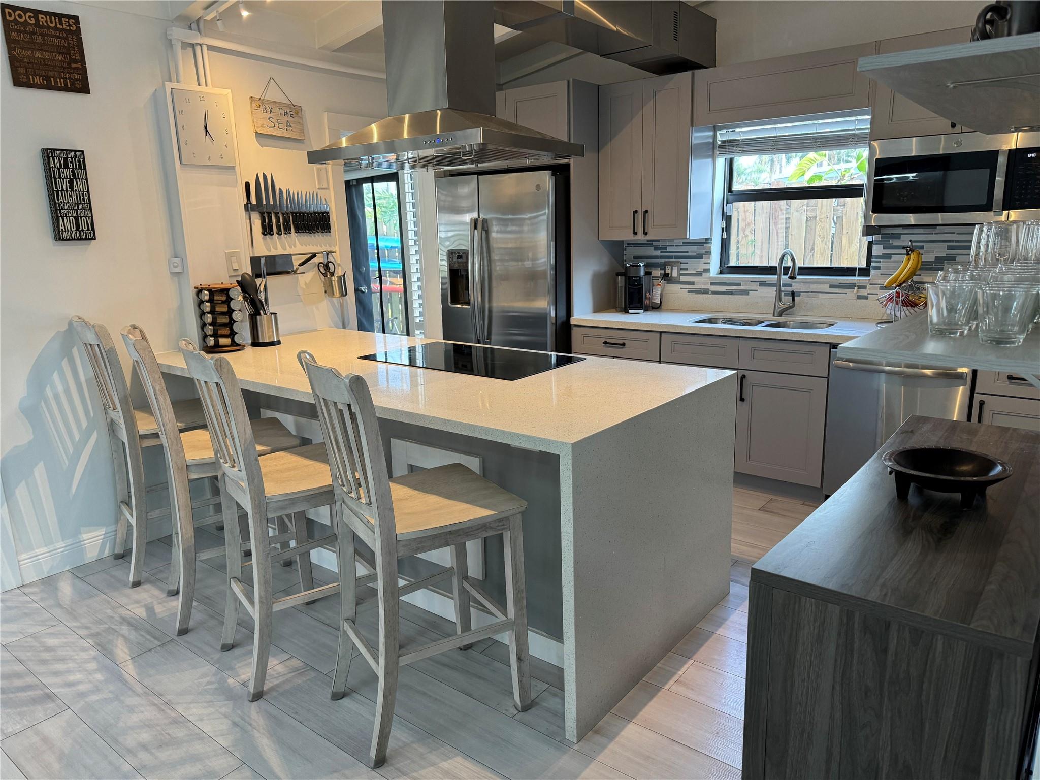 Realtors bring your clients, Private buyers come negotiate a great deal! 65′ deep water ocean access no fixed bridges. Property is NOT in a FLOOD ZONE! Sought-after ‘safe haven’ area for boaters. Seawall well-maintained and 40′ private dock with electricity and water. Fenced tropical backyard with Chiki Hut and a mango tree. Room for pool; spa/hot tub stays. ALL IMPACT WINDOWS and DOORS. Interior design features including Chef’s kitchen with gorgeous quartz waterfall countertop, 5 burner stove with stainless steel professional hood, Sono waterproof whitewash wood look flooring throughout. Newer HVAC, Newer roof! NO HOA:RV Parking Ok and RV 30 amp hook-up..