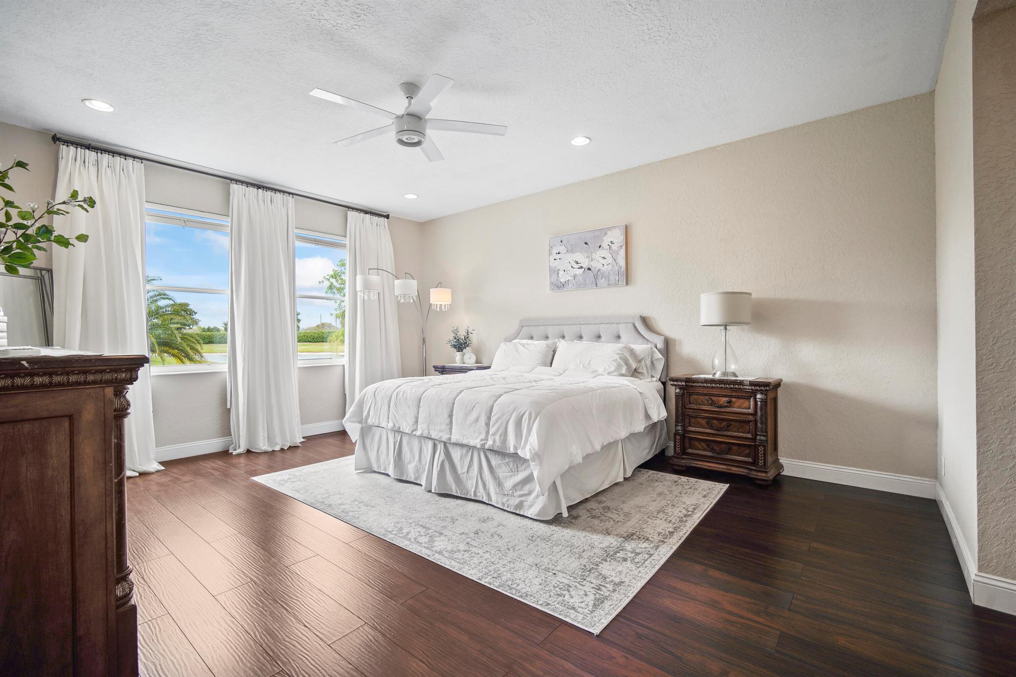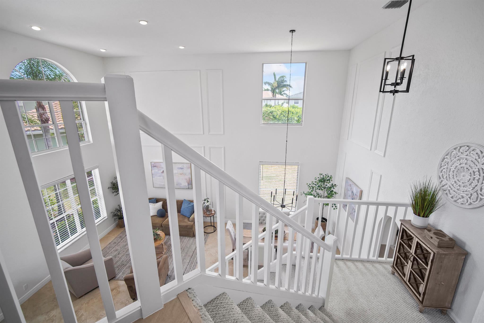 Brand New roof coming!!! Extraordinary home on one of the best cul-de-sac waterfront lots in Boca Falls. This particular model boast of 5 bedrooms 3.5 baths, 3 car garage is perfect for family and ideal for entertaining. Master Bedroom and bath on main floor and 4 bedrooms 2 baths plus large loft upstairs, double staircase, open concept kitchen with island, laundry room on main floor, impressive 19 ft ceilings in living room, foyer and dining room. Screened lanai overlooks oversized back year with a serene water view. Excellent A rated schools within 5 minute walking distance. State of the art fitness center, locker room and showers. Brand new pickle courts , 6 tennis courts, basketball courts, heated adult pool and kiddie pool, playground. 24 hr security and 2 manned guard gate