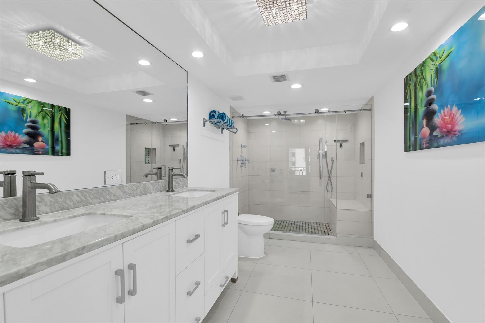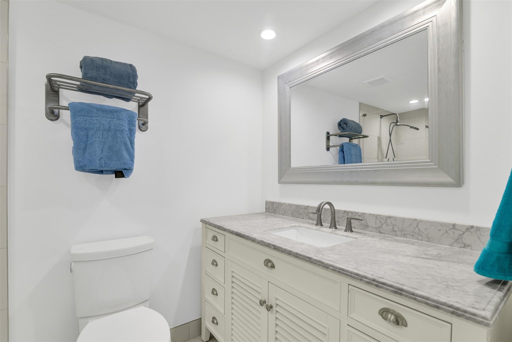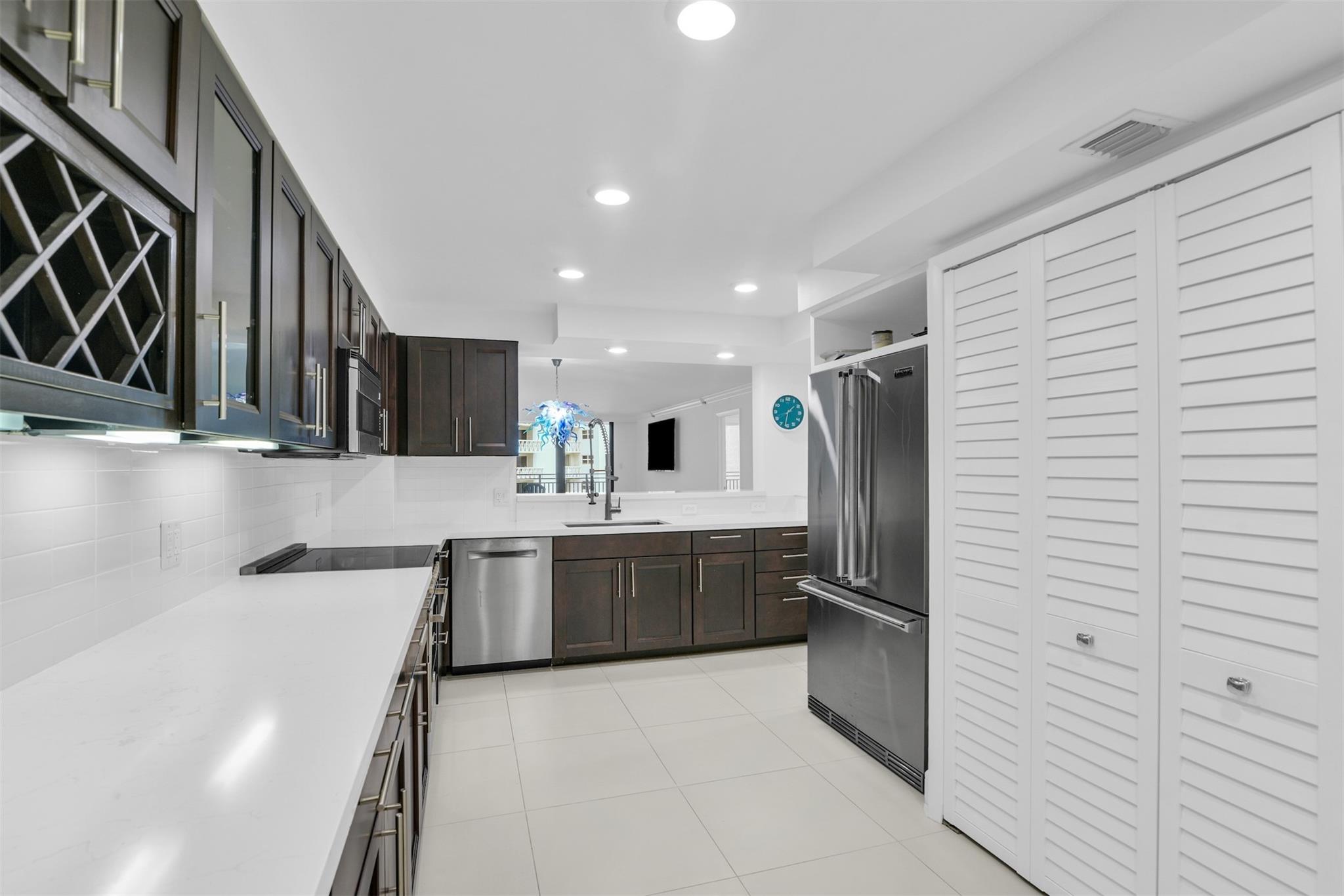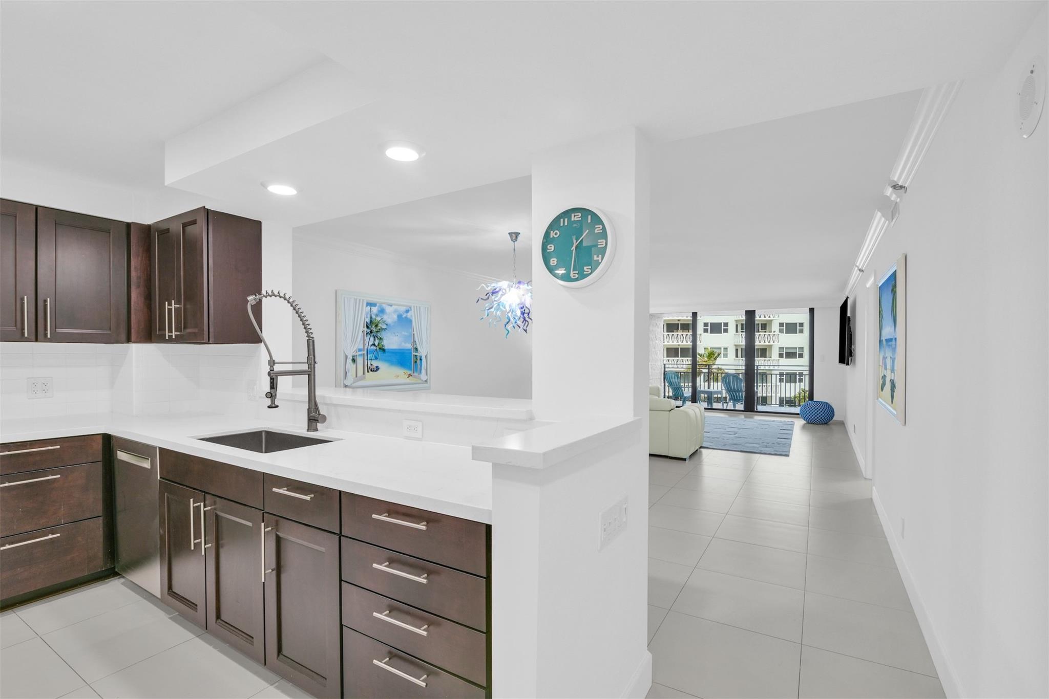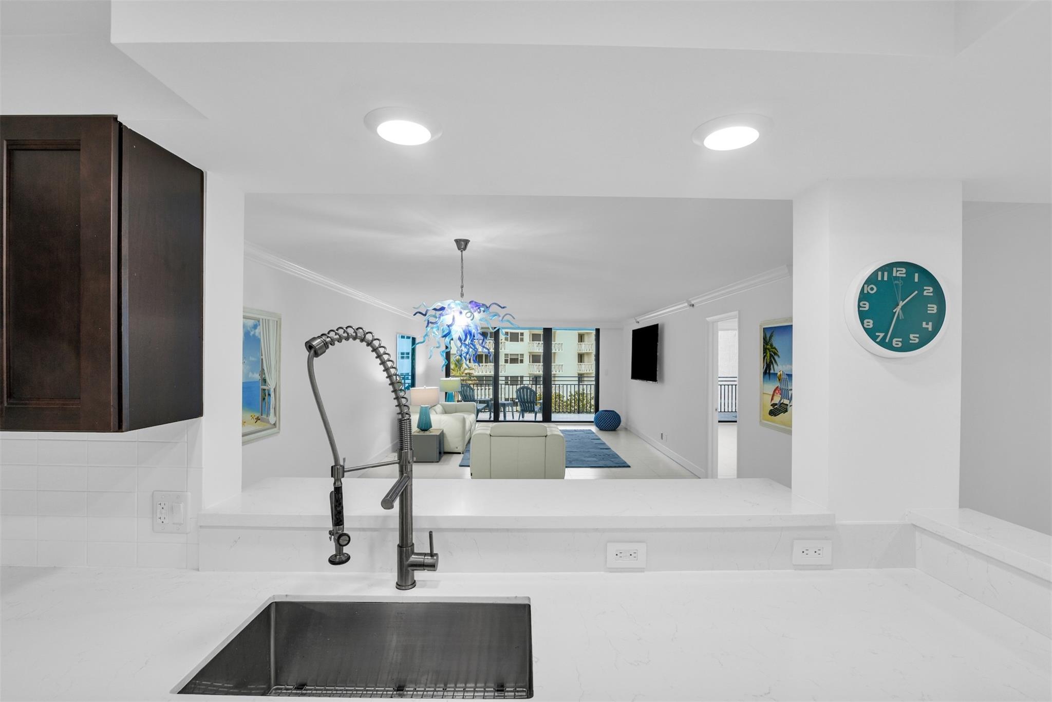 Ocean views captivate your attention in this fully remodeled 2 bedroom 2.5 bathroom condominium. Gorgeous, ample kitchen looks out to your spacious dining + family room. Mint condition property, impeccably clean throughout + presents a light, airy feel. Furniture negotiable. Pets welcome. Bedrooms have built out, walk in closets. Sizable primary bedroom leads out to newly tiled balcony via hurricane impact sliding door. Pristine, fully remodeled bathrooms + powder room. Laundry inside unit. Endless amenities make Overlook Condominium ideal for those who love the outdoors. Beachfront pool, pickleball court, tennis court, waterfront gym, waterfront clubhouse, boat dock with opportunity to rent a slip. Step out of your unit into the elevator + reach the private beach access quickly + w/ ease.