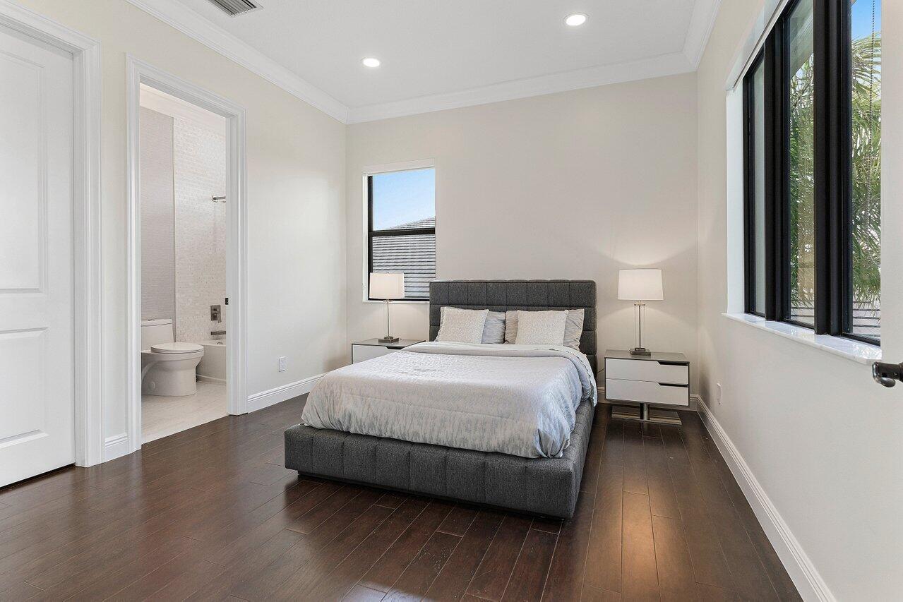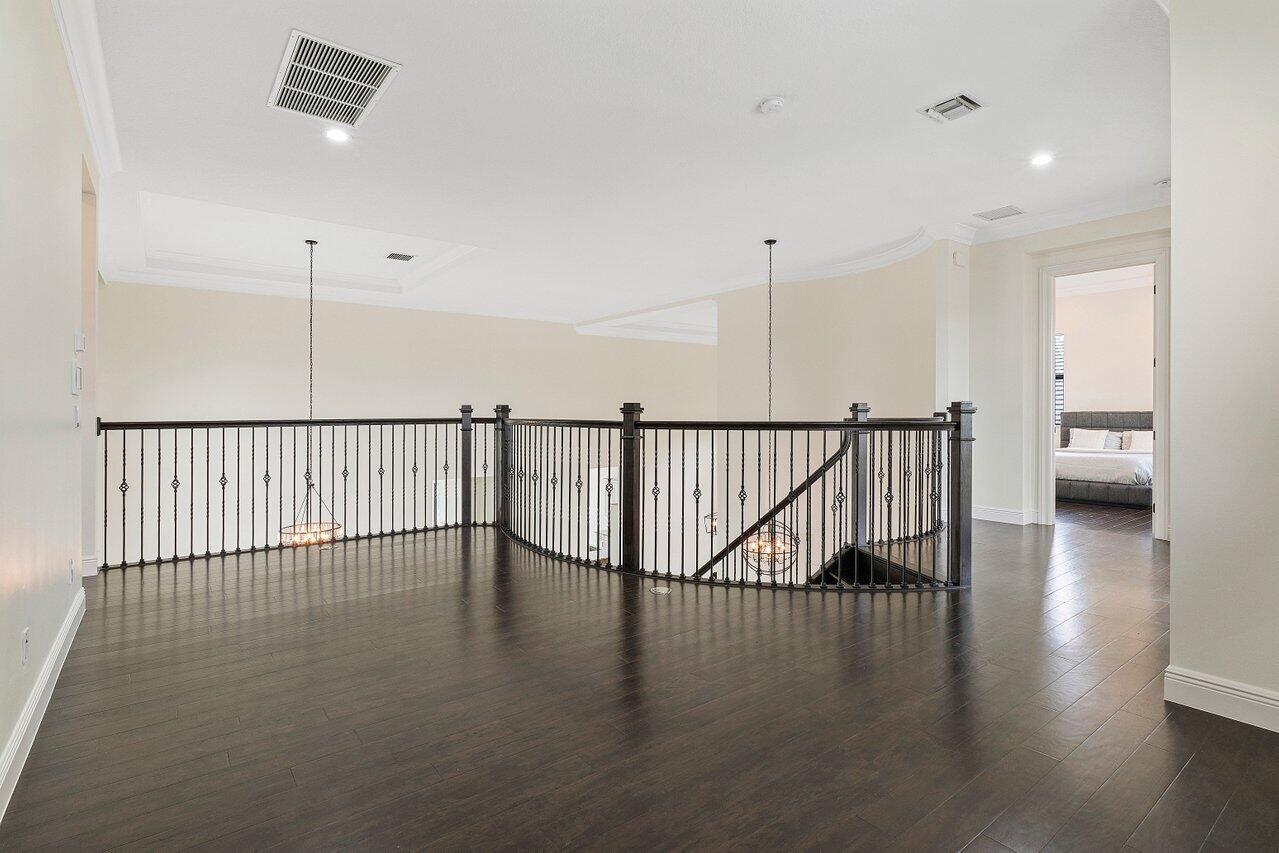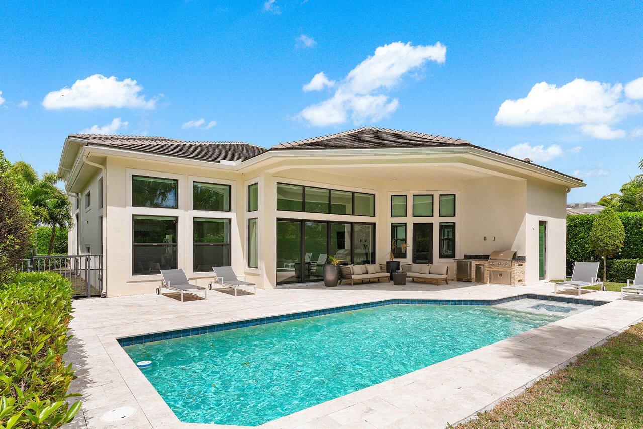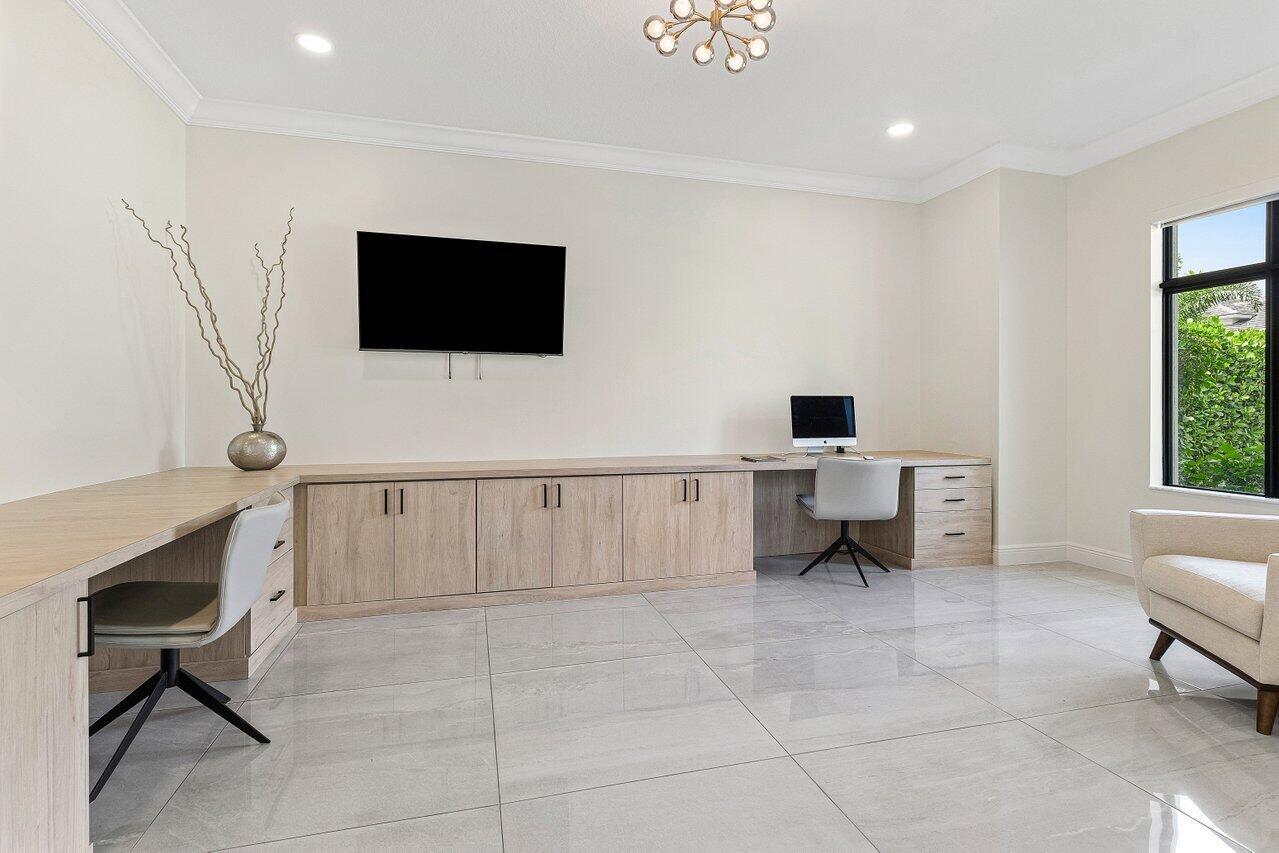 Step into this 5BD 6.5BA (plus office) in Royal Palm Polo to find a spacious and grand atmosphere, where soaring volume ceilings create an impressive sense of openness. Two living rooms provide ample space for both entertainment and relaxation, while large windows throughout the home invite abundant natural light, fostering an undeniably bright and welcoming ambiance. The stunning kitchen is the heart of the home, designed for both the avid home chef and the enthusiastic host. It features seating for six at its expansive central island, dual-tone cabinetry, a gas stove, and sleek stainless steel appliances. Adjacent to the kitchen, the breakfast area is surrounded by windows, offering a cheerful and inviting space to gather over coffee or a casual meal.