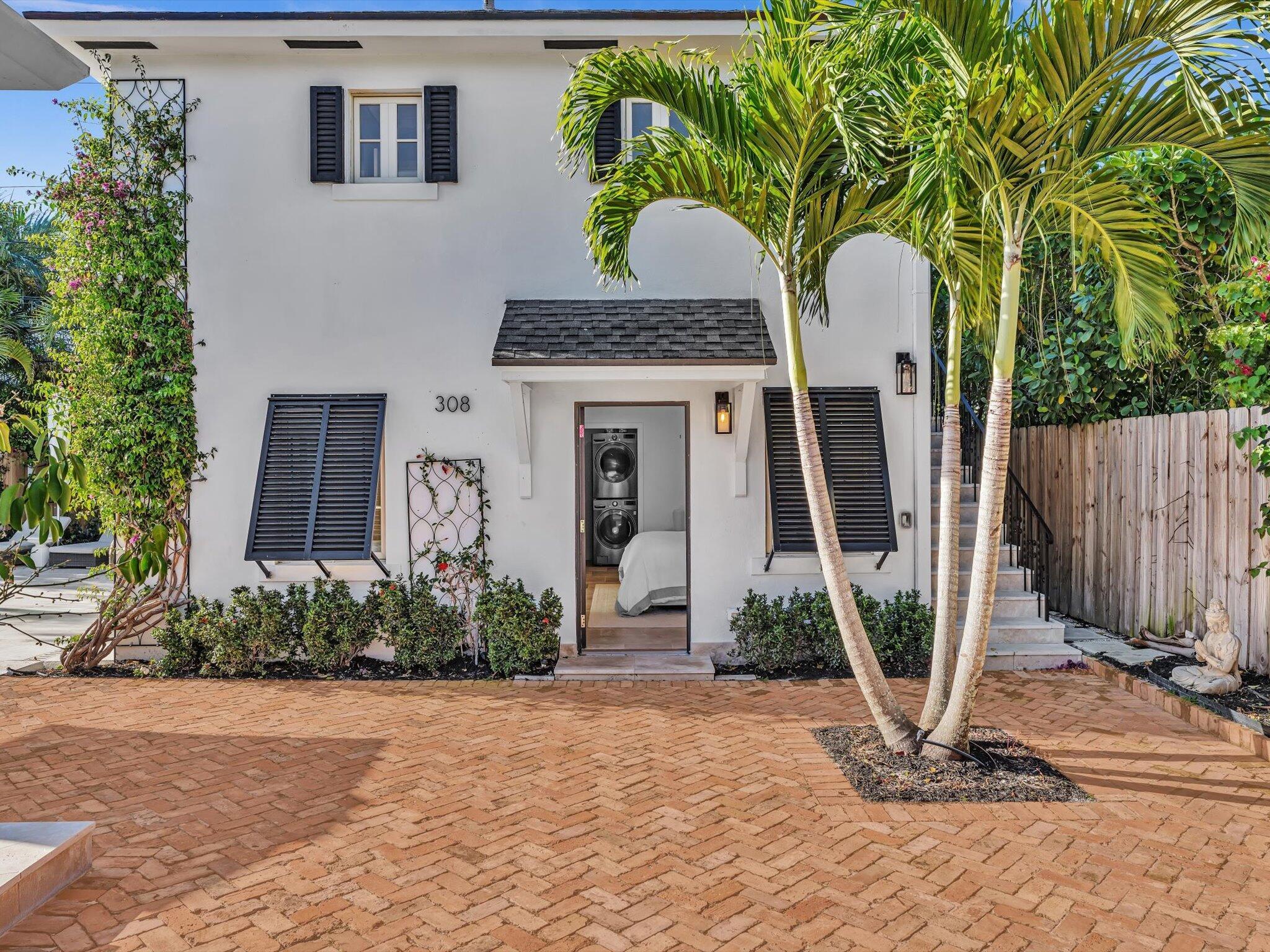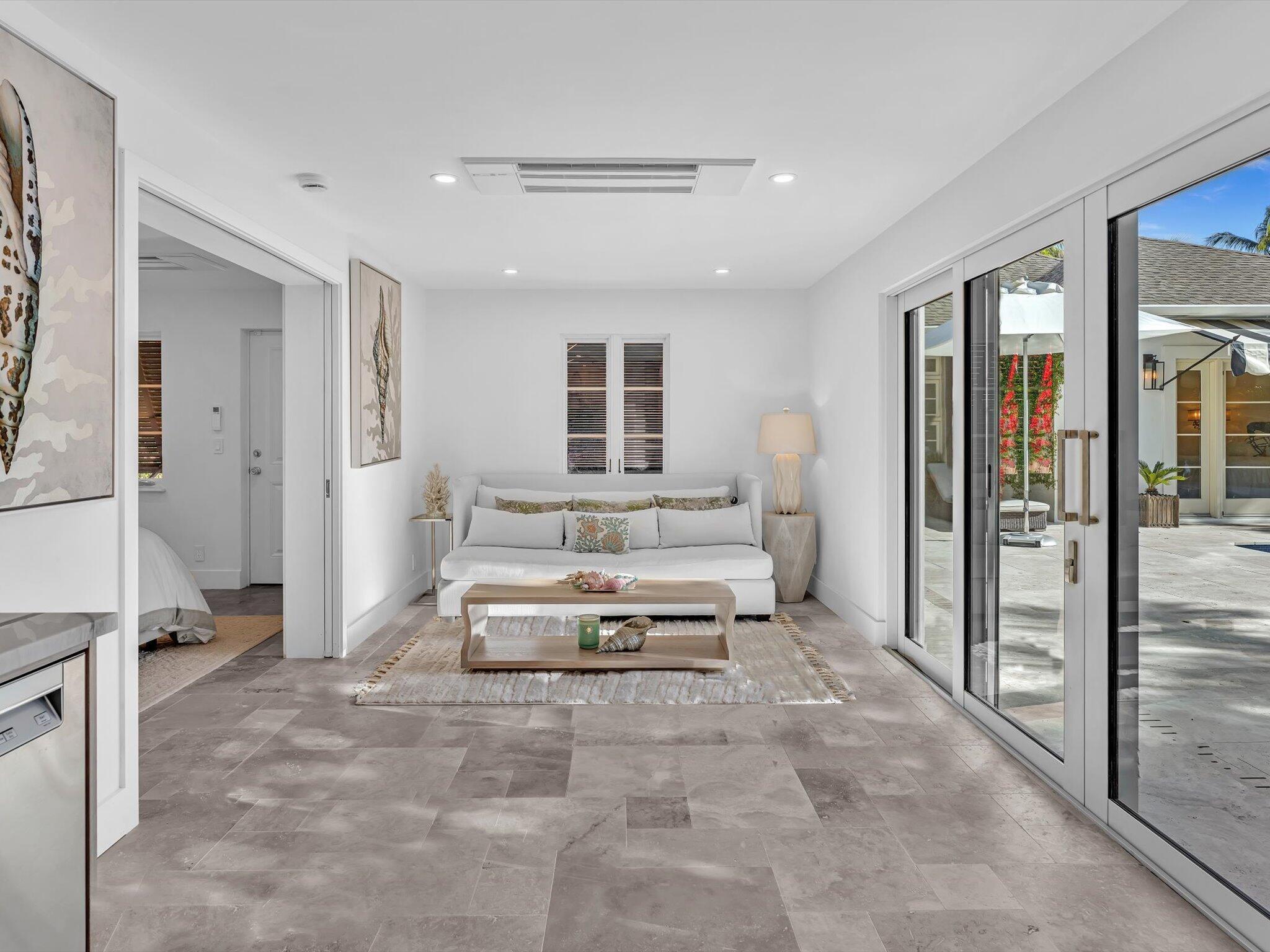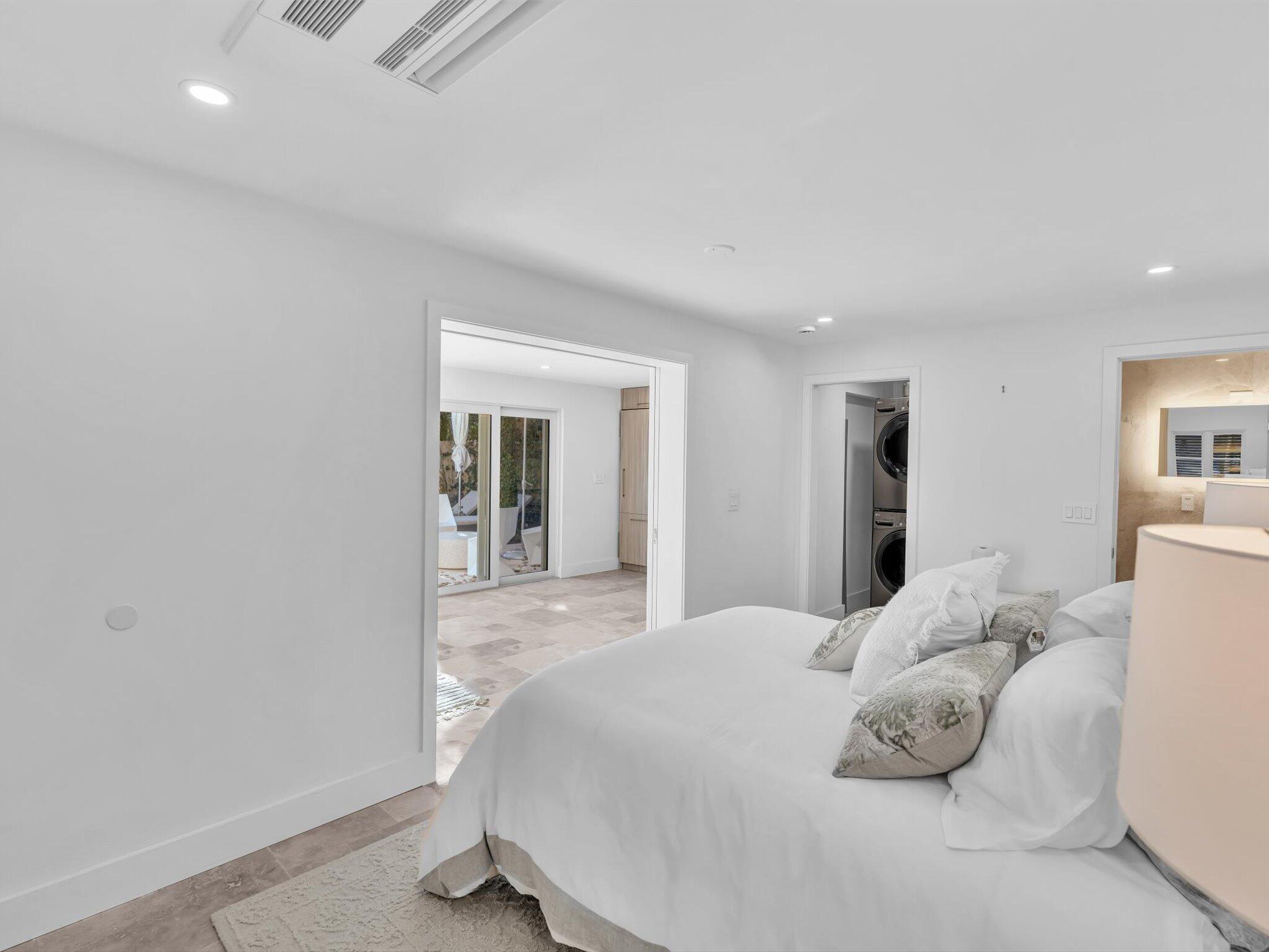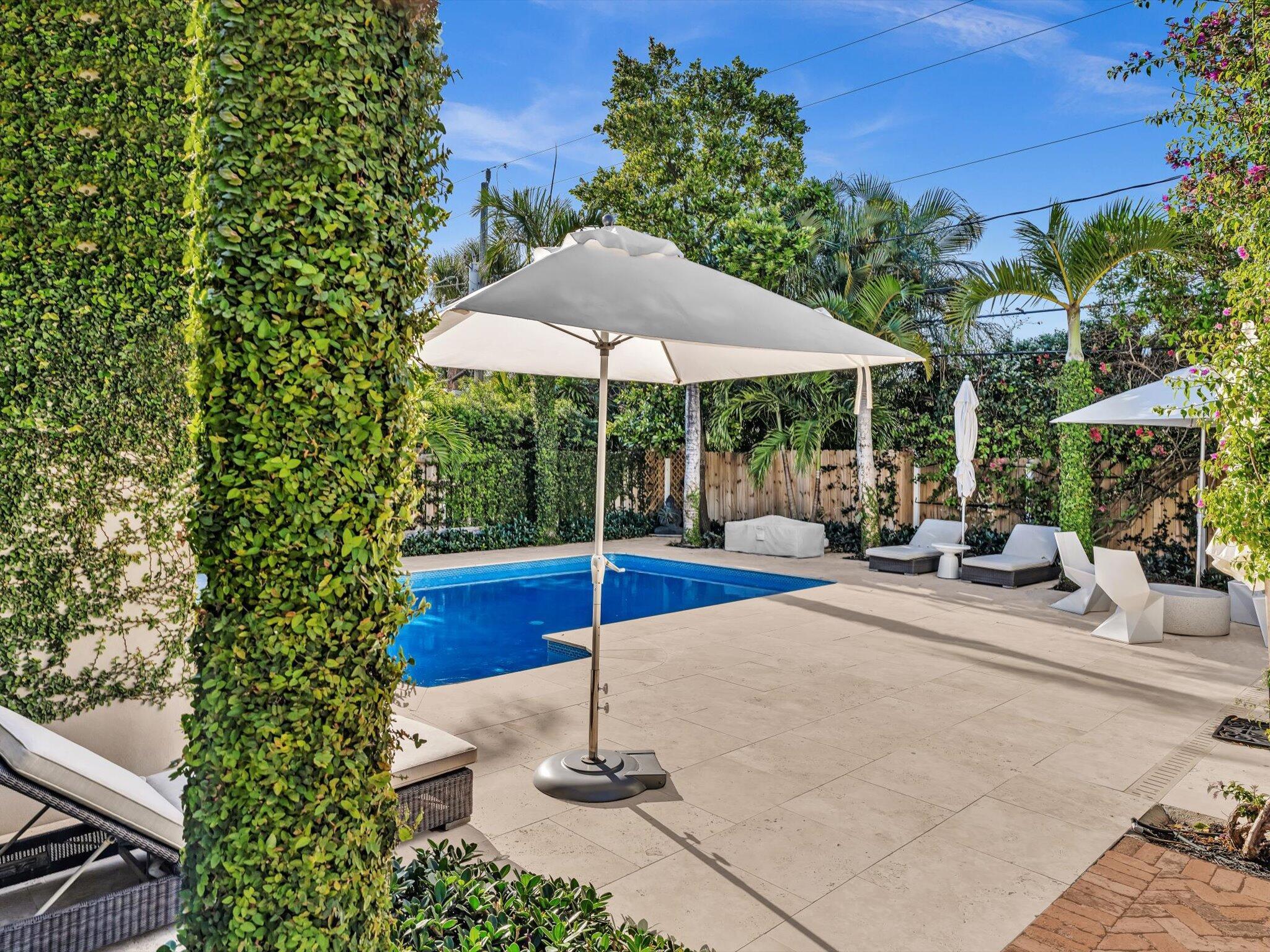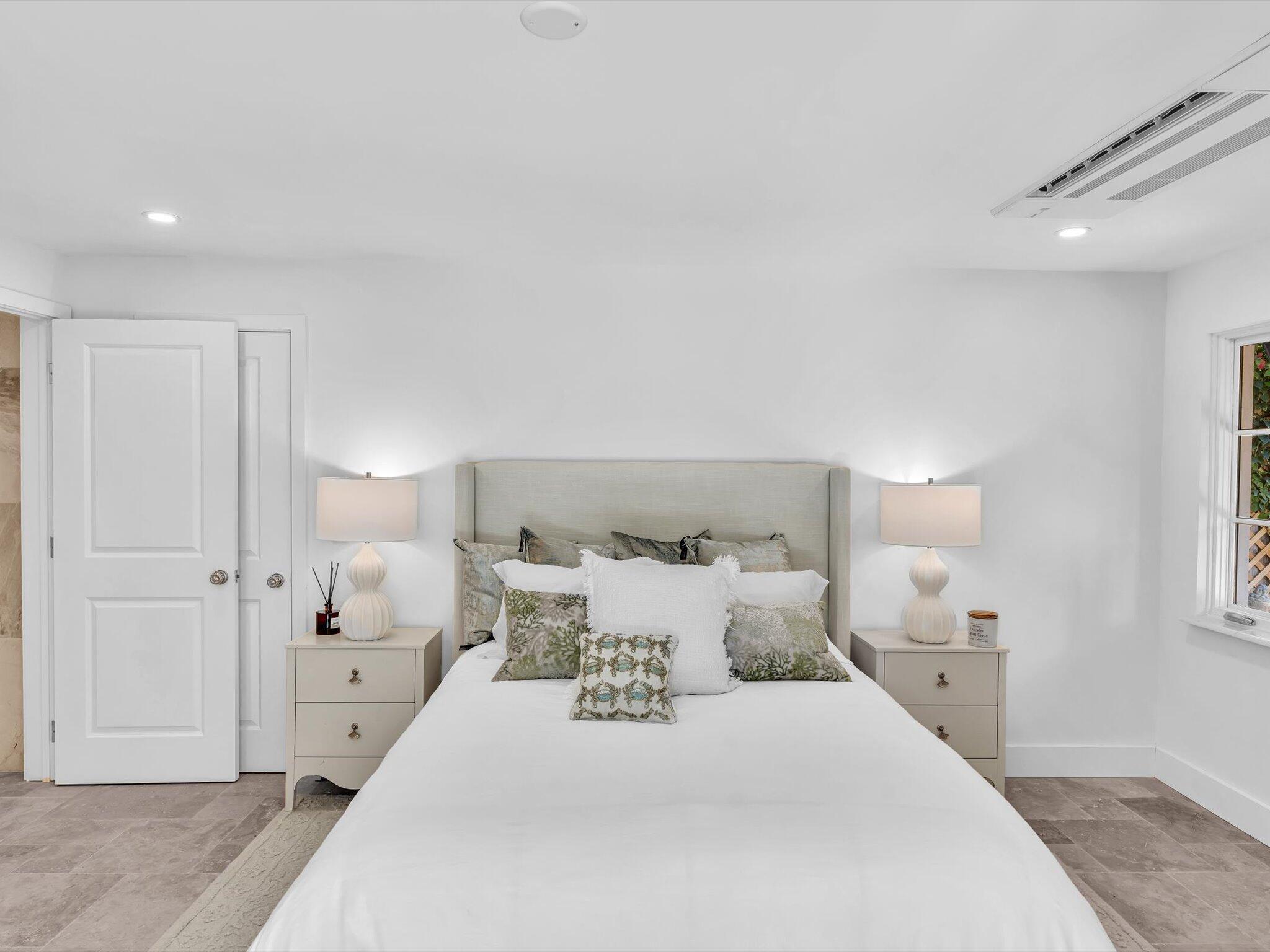 A rare offering in the heart of historic El Cid, this newly renovated estate exudes timeless sophistication and quiet luxury. Crafted with enduring CBS construction and reimagined with exquisite attention to detail, the 3BD/3.5BA main residence features bespoke white oak flooring, spa-inspired Botticino marble baths, and an oversized two-car garage. The separate guest house offers two fully appointed suites–each with its own kitchen and laundry–ideal for hosting or luxury rental income. Outdoor living shines with a 20×35 pool framed by travertine, manicured landscaping, and a Chicago brick courtyard perfect for serene entertaining. Just one block from Flagler Drive and minutes from the island, this is not just a home–it’s a statement. Own a legacy in El Cid.