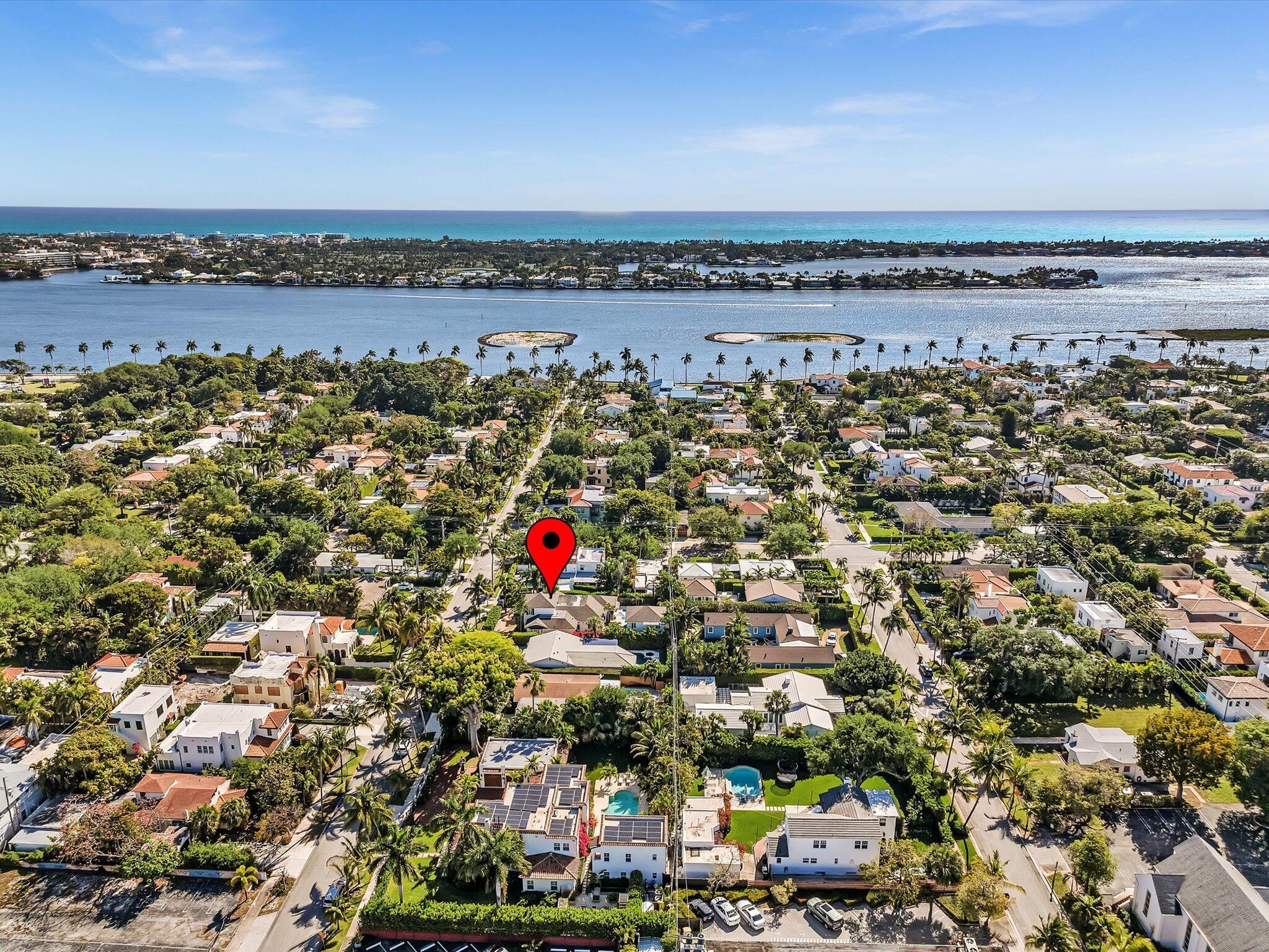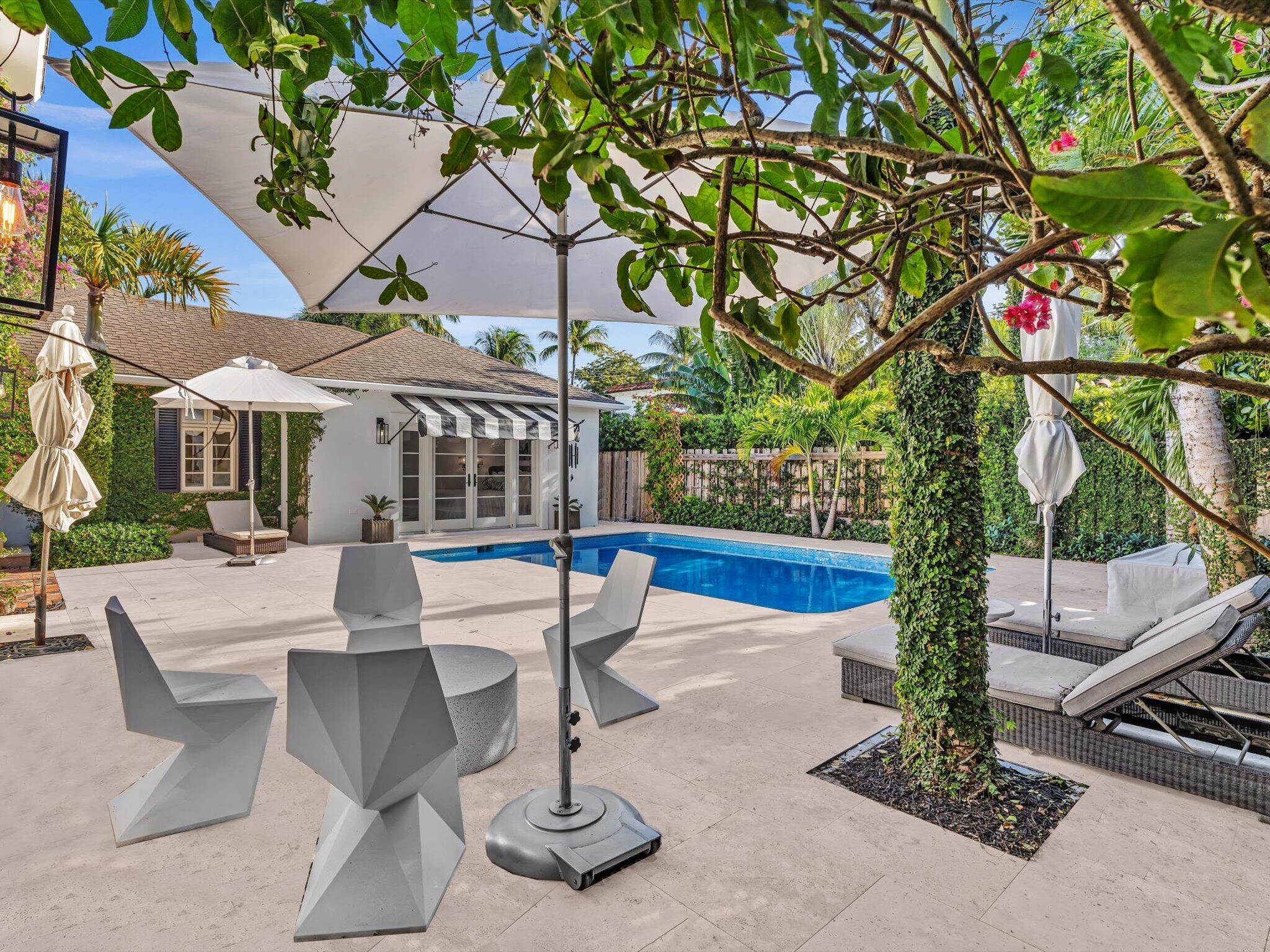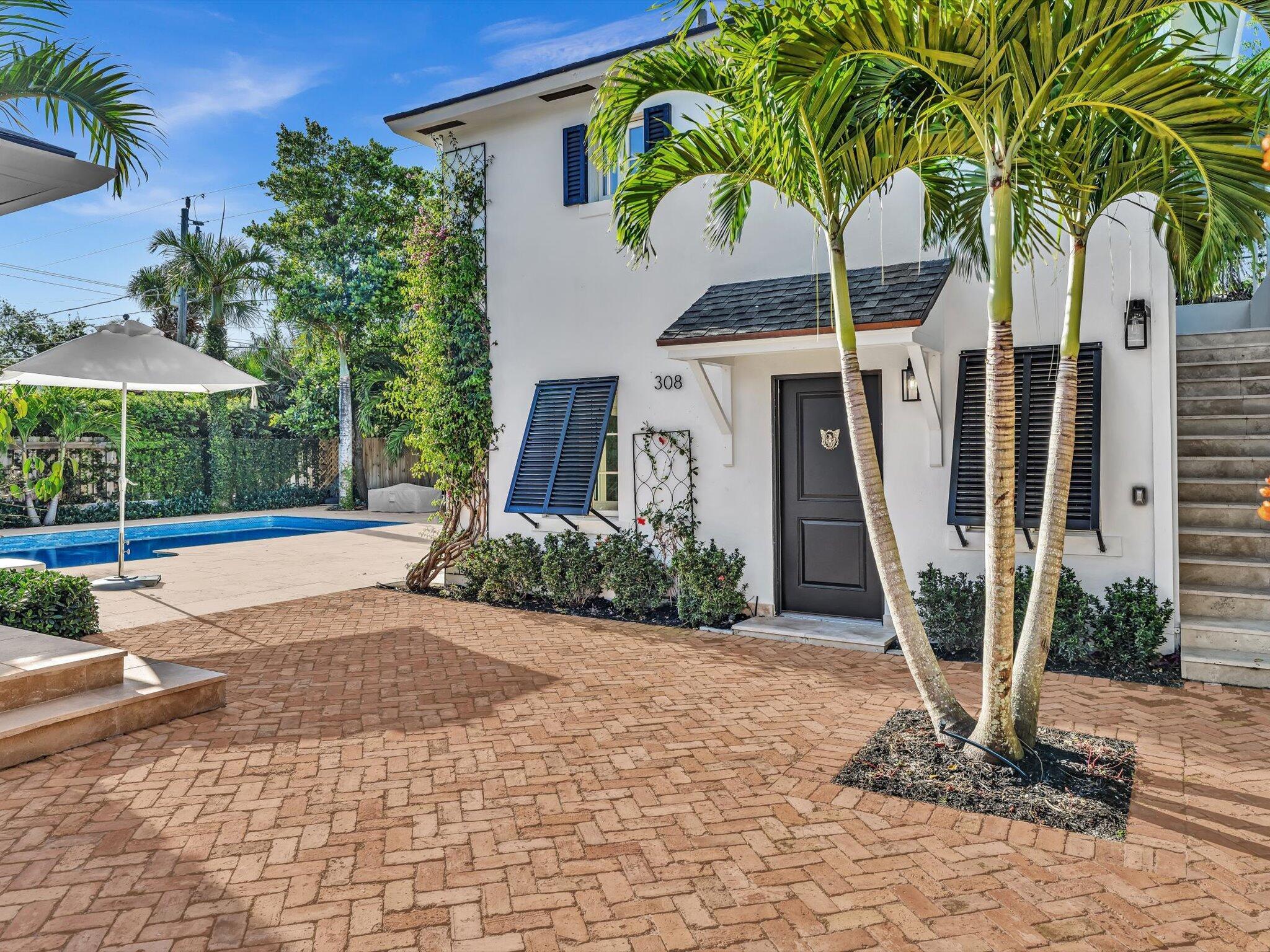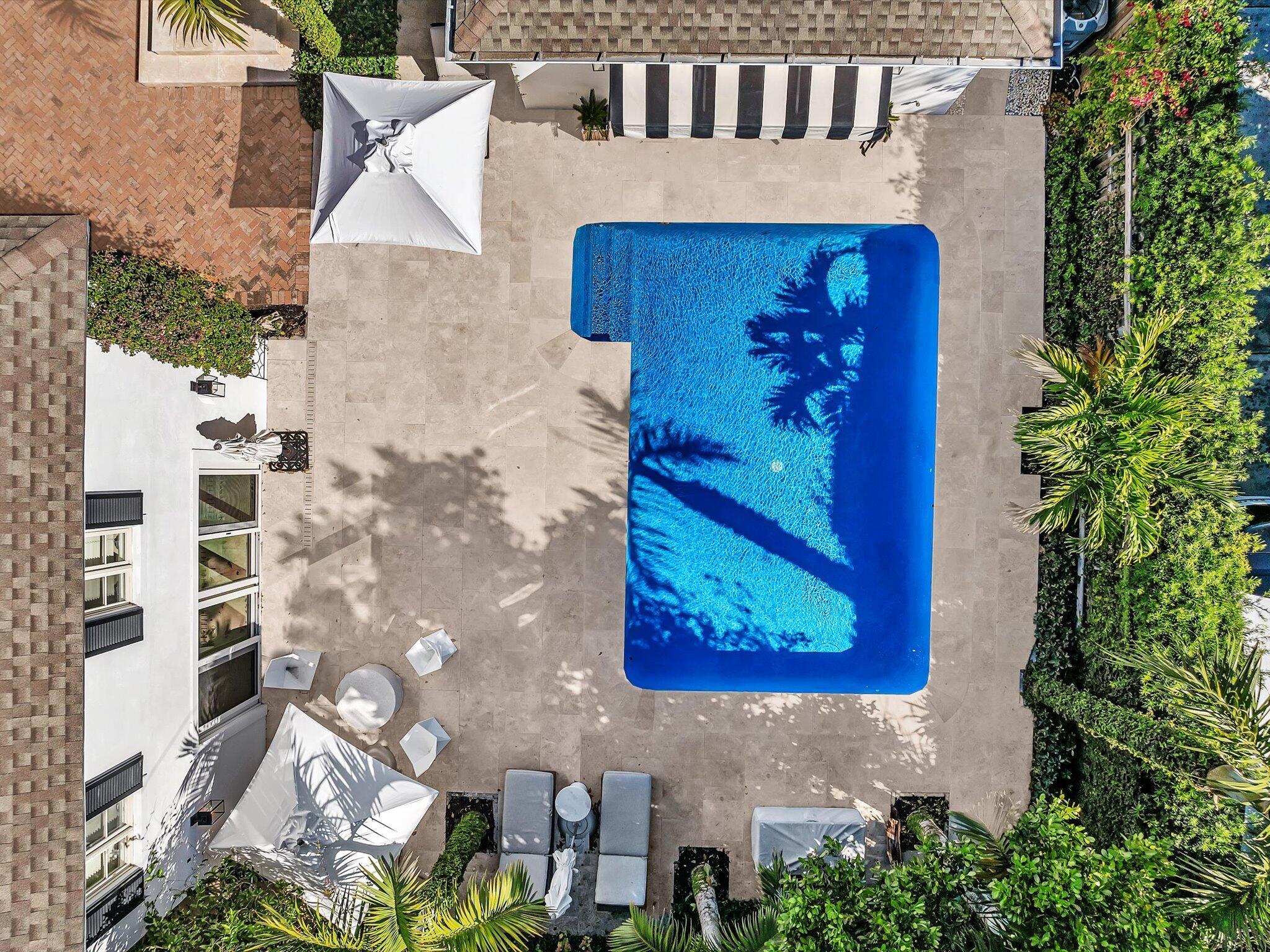 A rare offering in the heart of historic El Cid, this newly renovated estate exudes timeless sophistication and quiet luxury. Crafted with enduring CBS construction and reimagined with exquisite attention to detail, the 3BD/3.5BA main residence features bespoke white oak flooring, spa-inspired Botticino marble baths, and an oversized two-car garage. The separate guest house offers two fully appointed suites–each with its own kitchen and laundry–ideal for hosting or luxury rental income. Outdoor living shines with a 20×35 pool framed by travertine, manicured landscaping, and a Chicago brick courtyard perfect for serene entertaining. Just one block from Flagler Drive and minutes from the island, this is not just a home–it’s a statement. Own a legacy in El Cid.