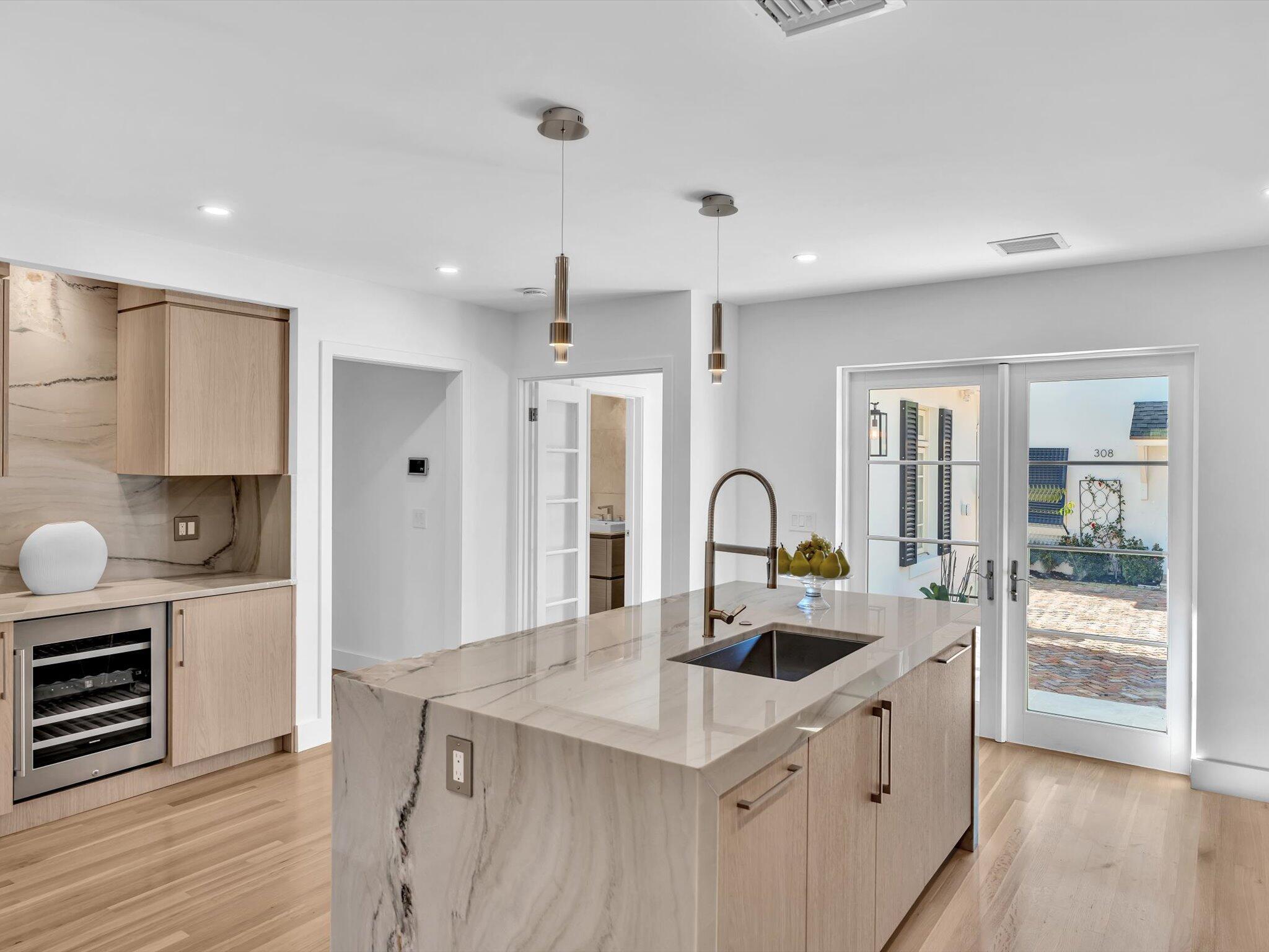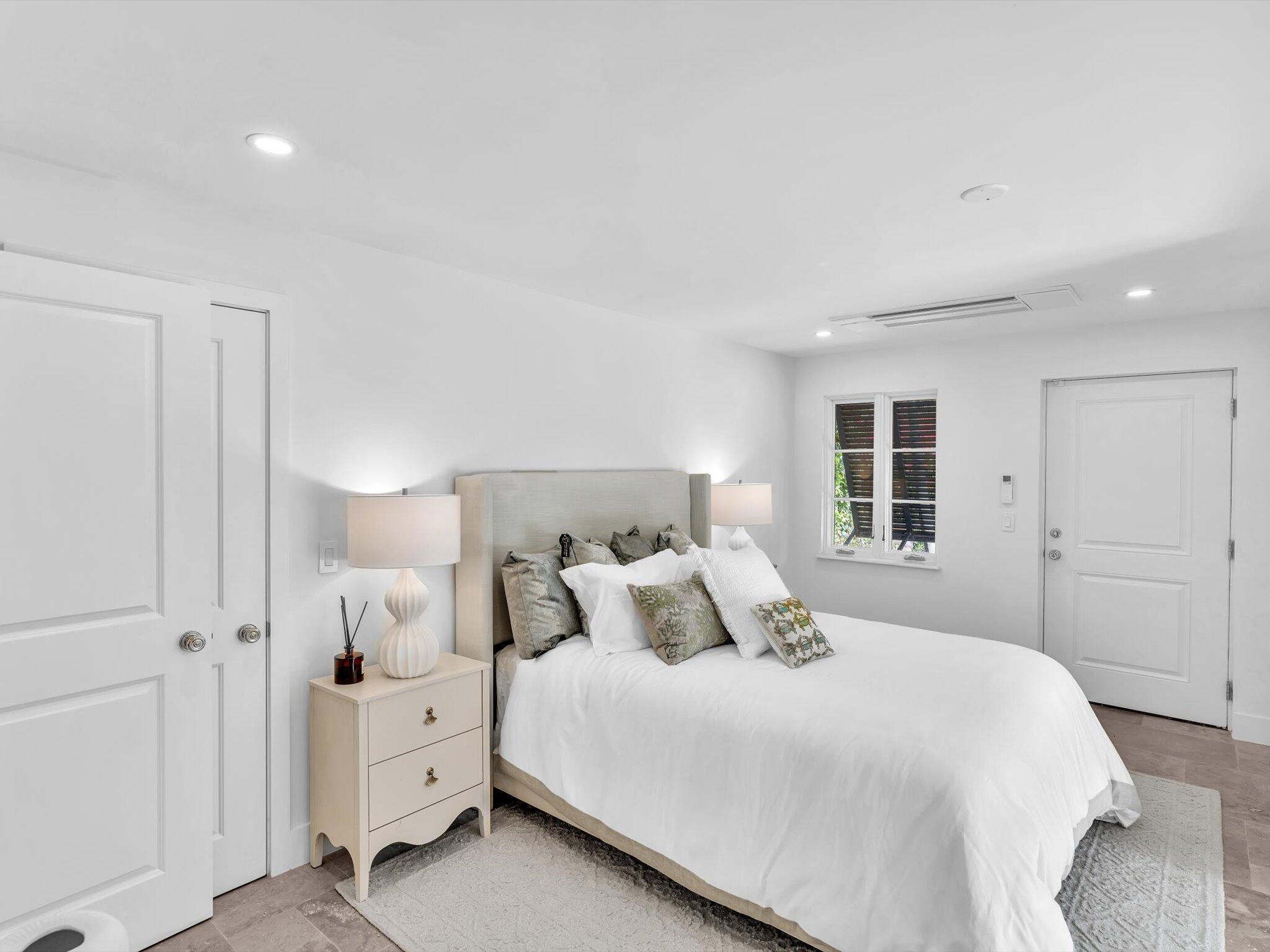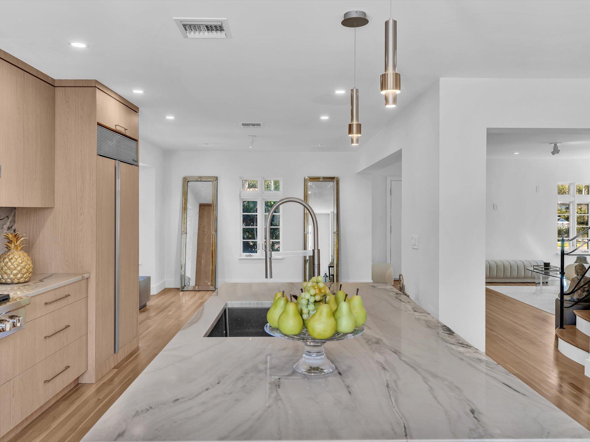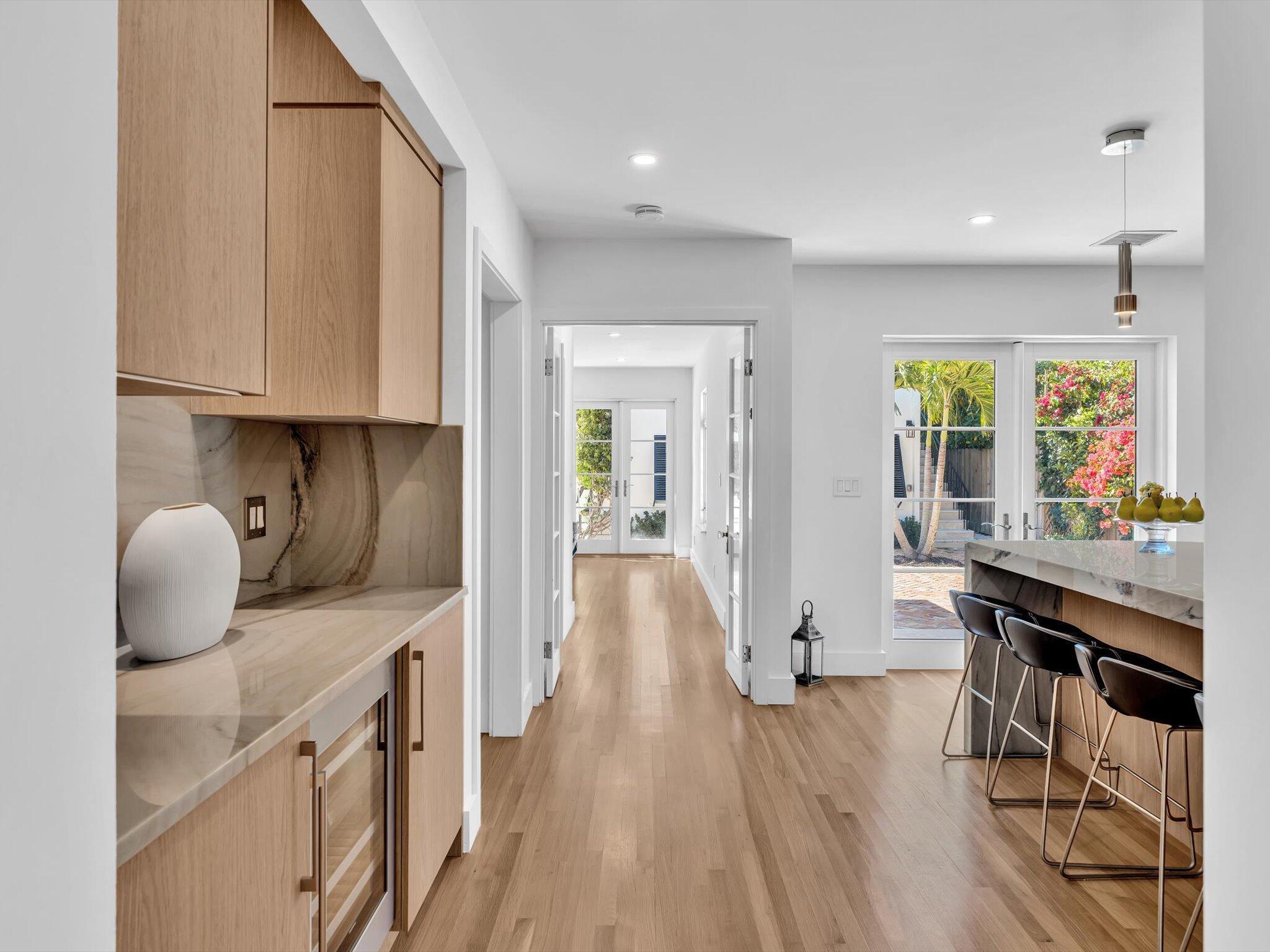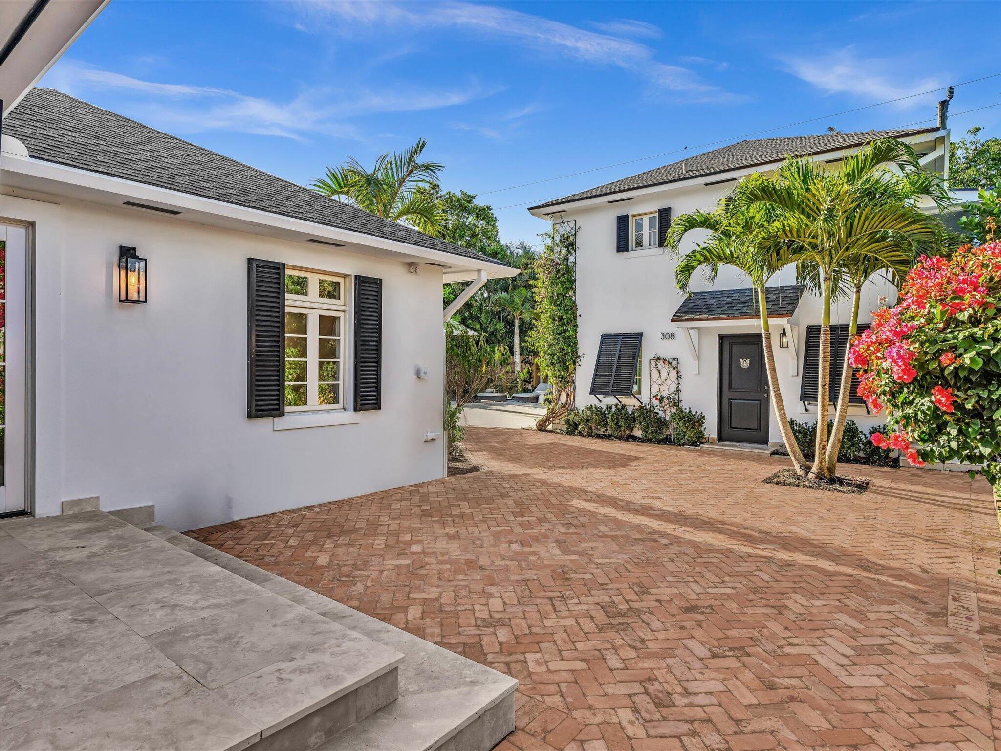 A rare offering in the heart of historic El Cid, this newly renovated estate exudes timeless sophistication and quiet luxury. Crafted with enduring CBS construction and reimagined with exquisite attention to detail, the 3BD/3.5BA main residence features bespoke white oak flooring, spa-inspired Botticino marble baths, and an oversized two-car garage. The separate guest house offers two fully appointed suites–each with its own kitchen and laundry–ideal for hosting or luxury rental income. Outdoor living shines with a 20×35 pool framed by travertine, manicured landscaping, and a Chicago brick courtyard perfect for serene entertaining. Just one block from Flagler Drive and minutes from the island, this is not just a home–it’s a statement. Own a legacy in El Cid.