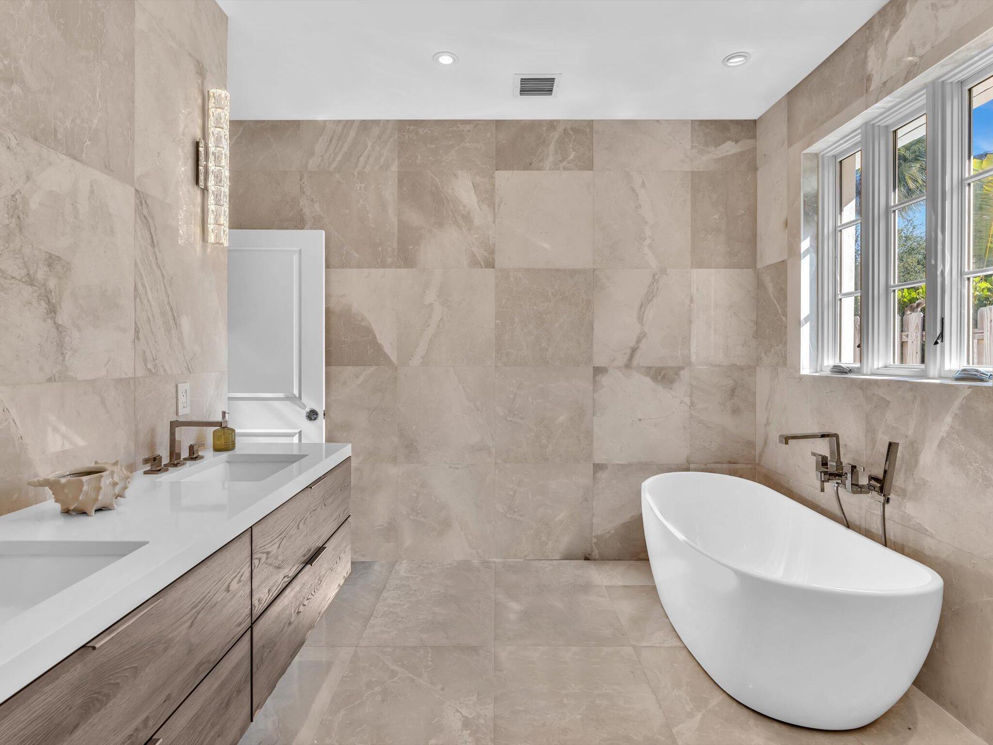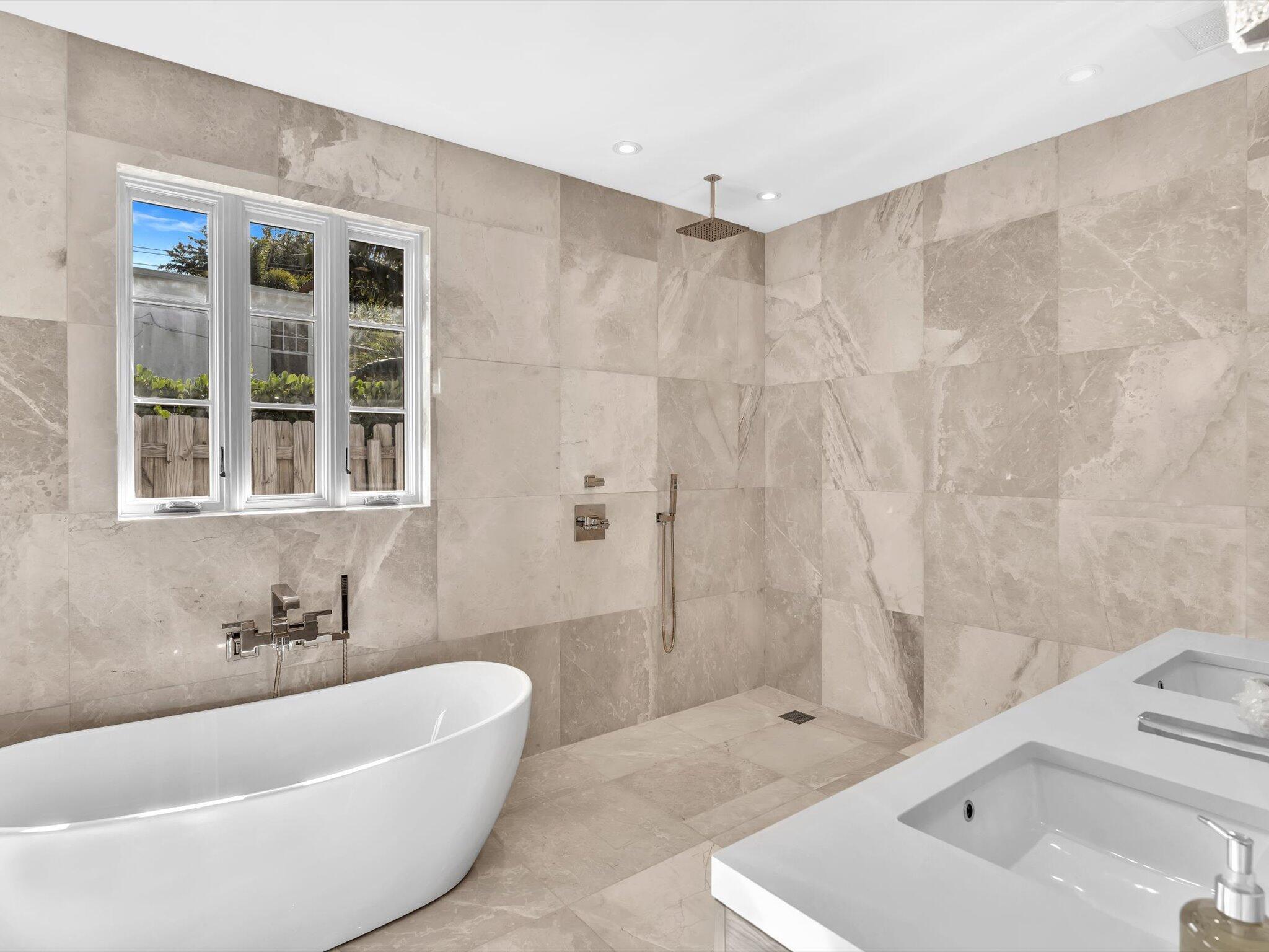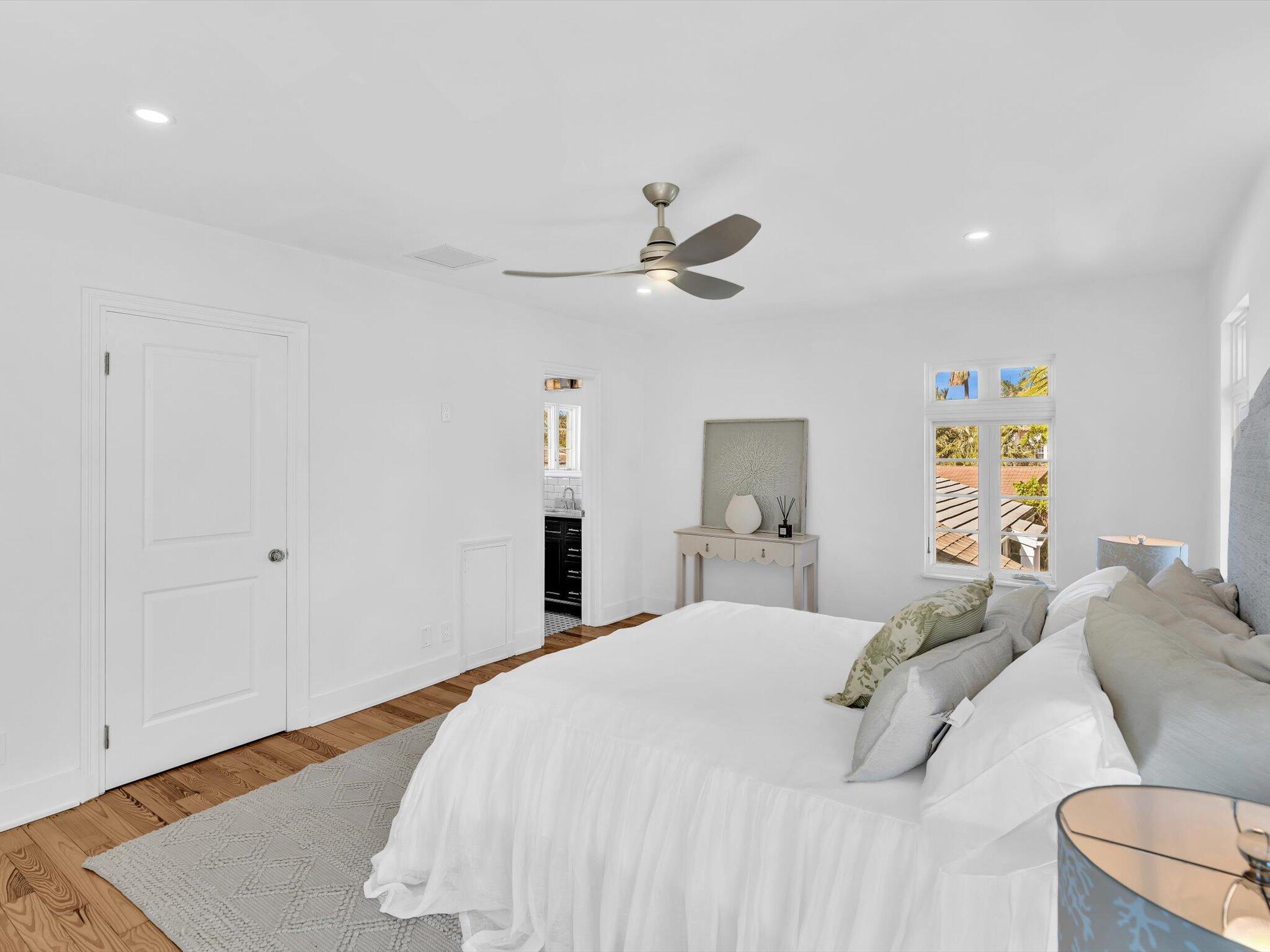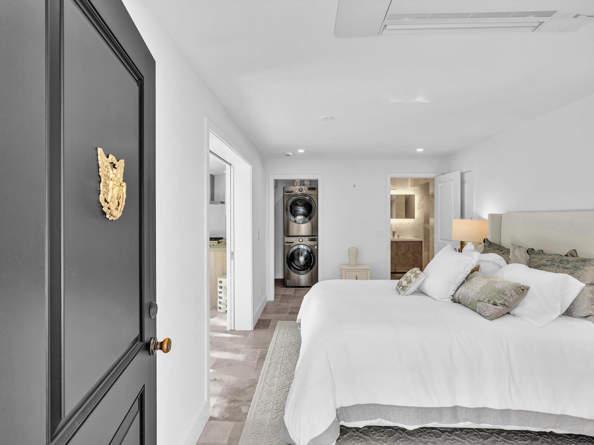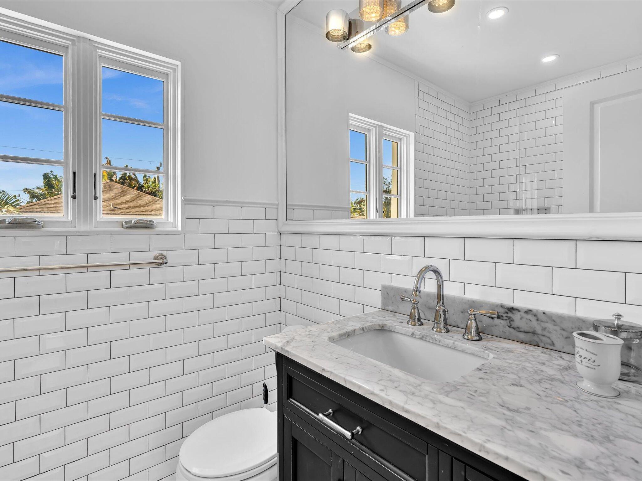 A rare offering in the heart of historic El Cid, this newly renovated estate exudes timeless sophistication and quiet luxury. Crafted with enduring CBS construction and reimagined with exquisite attention to detail, the 3BD/3.5BA main residence features bespoke white oak flooring, spa-inspired Botticino marble baths, and an oversized two-car garage. The separate guest house offers two fully appointed suites–each with its own kitchen and laundry–ideal for hosting or luxury rental income. Outdoor living shines with a 20×35 pool framed by travertine, manicured landscaping, and a Chicago brick courtyard perfect for serene entertaining. Just one block from Flagler Drive and minutes from the island, this is not just a home–it’s a statement. Own a legacy in El Cid.