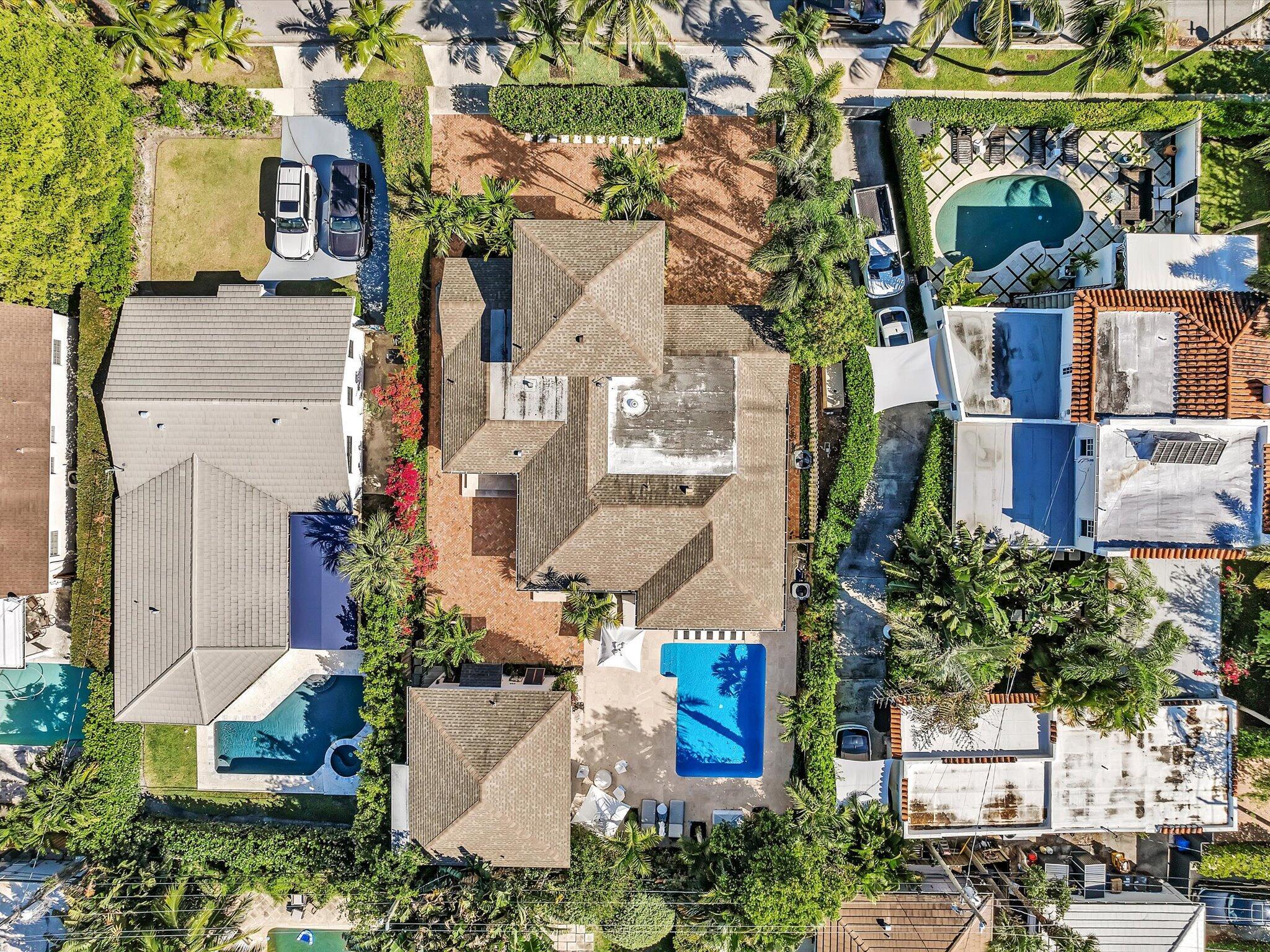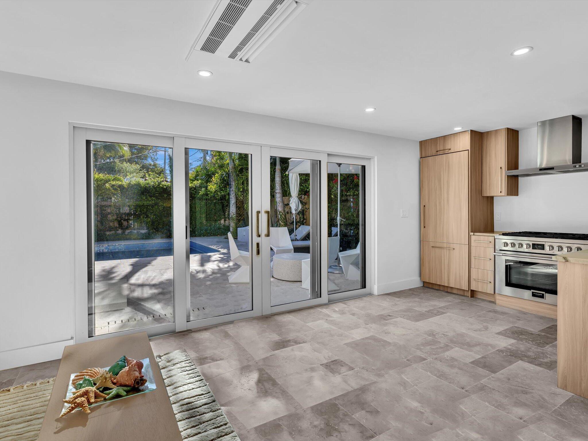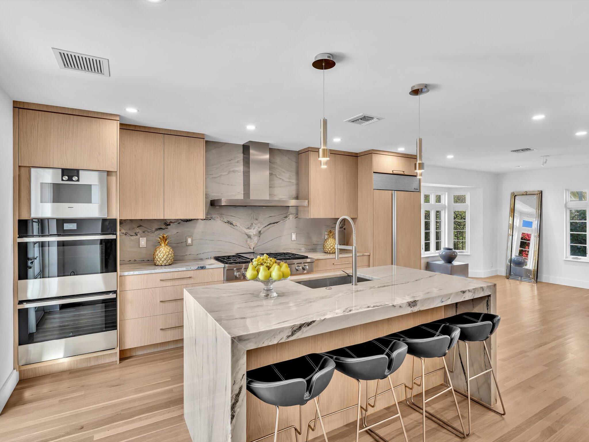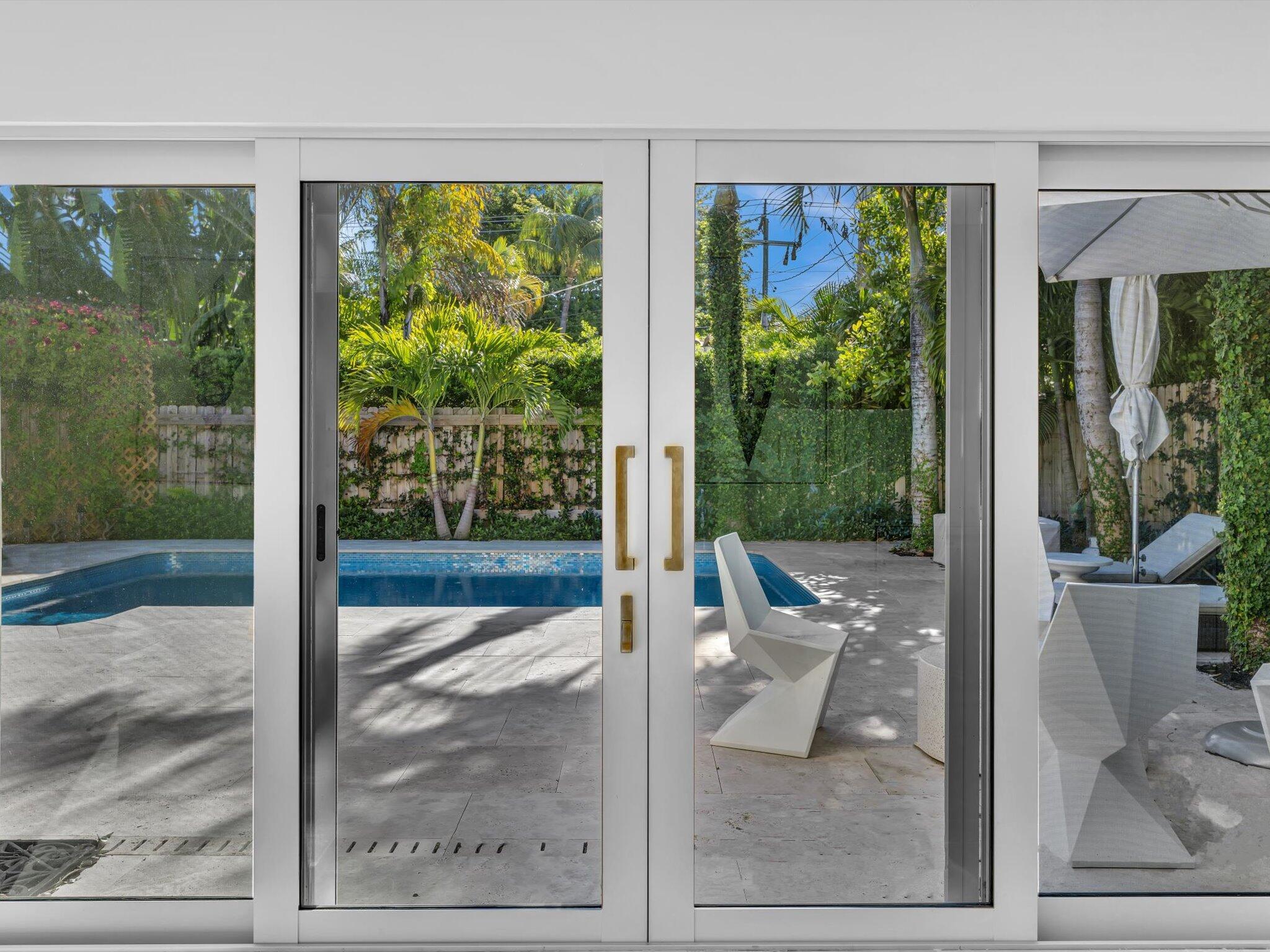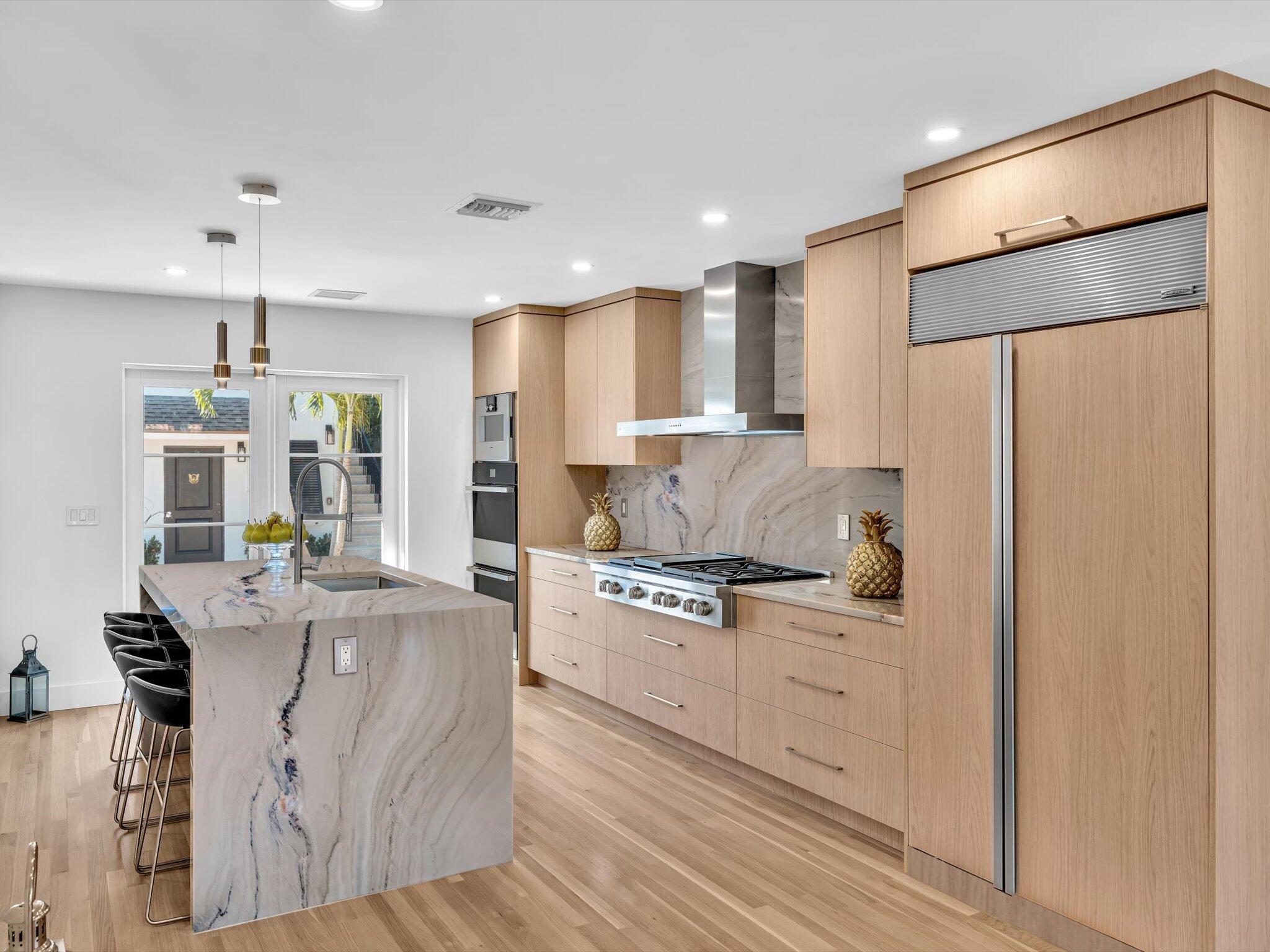 A rare offering in the heart of historic El Cid, this newly renovated estate exudes timeless sophistication and quiet luxury. Crafted with enduring CBS construction and reimagined with exquisite attention to detail, the 3BD/3.5BA main residence features bespoke white oak flooring, spa-inspired Botticino marble baths, and an oversized two-car garage. The separate guest house offers two fully appointed suites–each with its own kitchen and laundry–ideal for hosting or luxury rental income. Outdoor living shines with a 20×35 pool framed by travertine, manicured landscaping, and a Chicago brick courtyard perfect for serene entertaining. Just one block from Flagler Drive and minutes from the island, this is not just a home–it’s a statement. Own a legacy in El Cid.