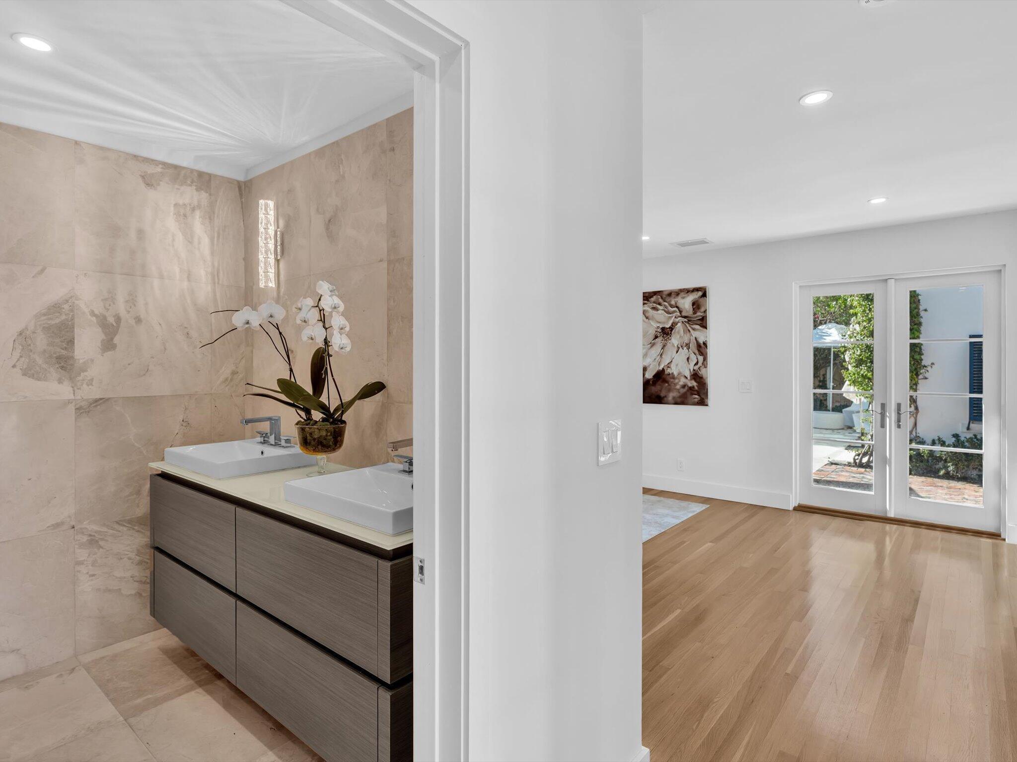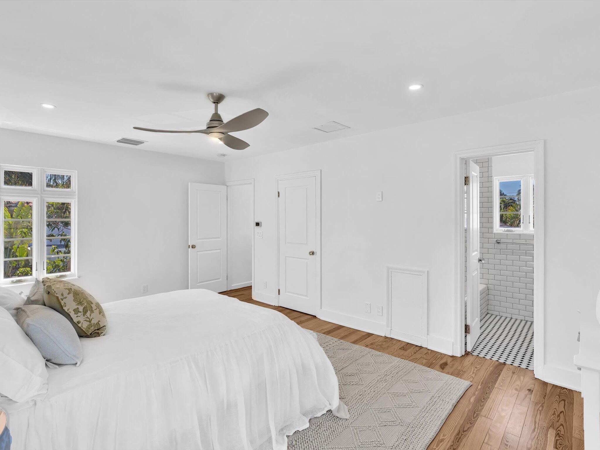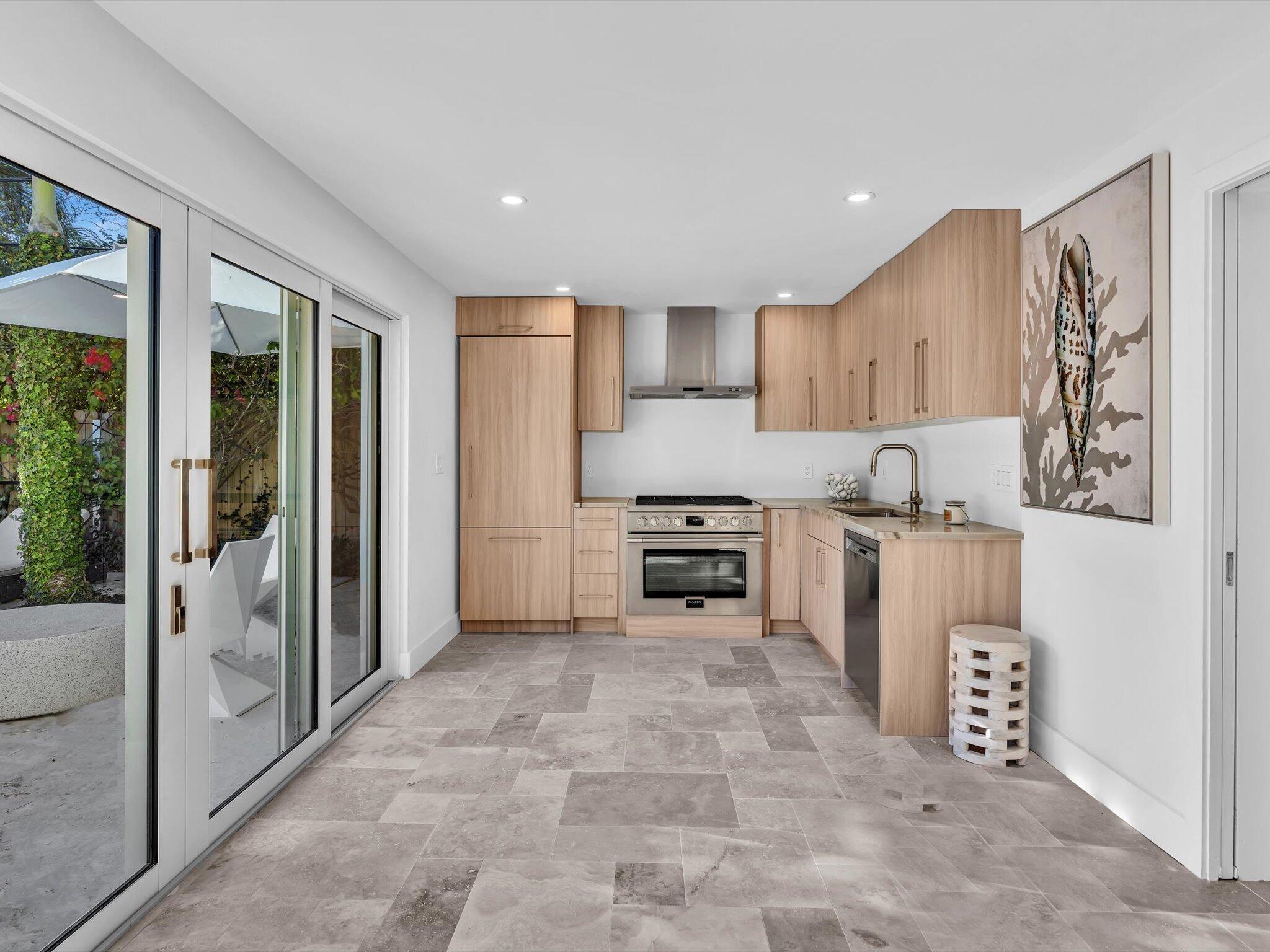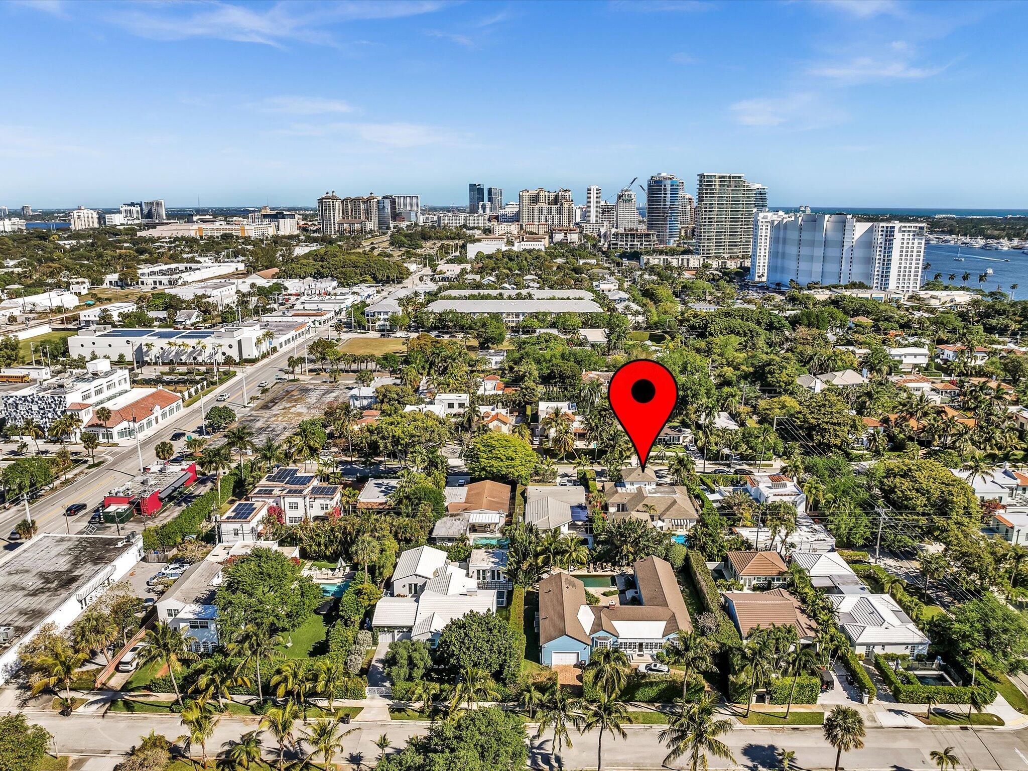 A rare offering in the heart of historic El Cid, this newly renovated estate exudes timeless sophistication and quiet luxury. Crafted with enduring CBS construction and reimagined with exquisite attention to detail, the 3BD/3.5BA main residence features bespoke white oak flooring, spa-inspired Botticino marble baths, and an oversized two-car garage. The separate guest house offers two fully appointed suites–each with its own kitchen and laundry–ideal for hosting or luxury rental income. Outdoor living shines with a 20×35 pool framed by travertine, manicured landscaping, and a Chicago brick courtyard perfect for serene entertaining. Just one block from Flagler Drive and minutes from the island, this is not just a home–it’s a statement. Own a legacy in El Cid.