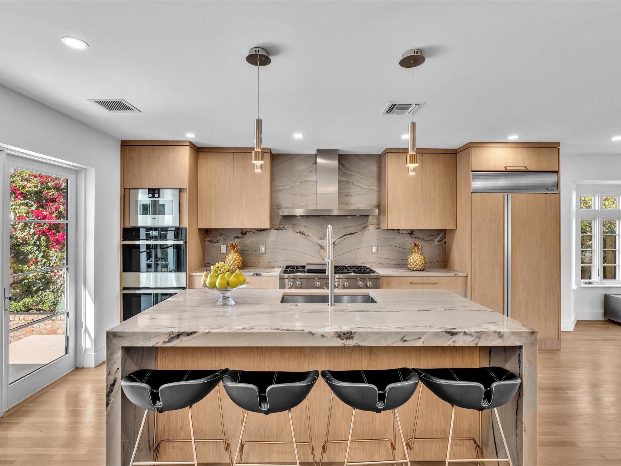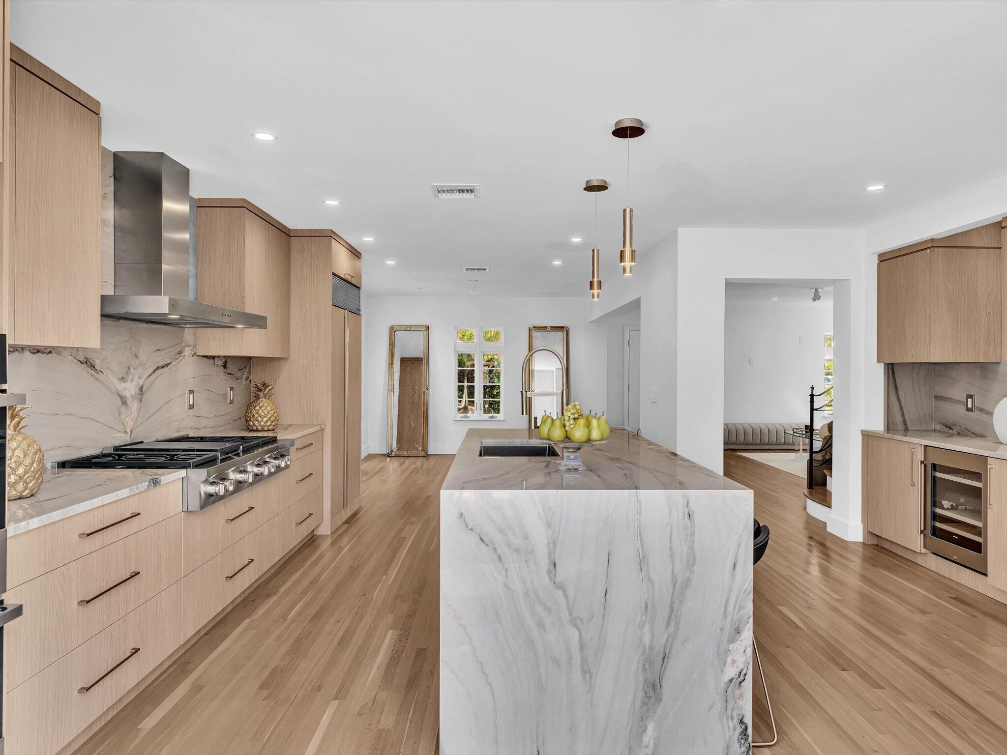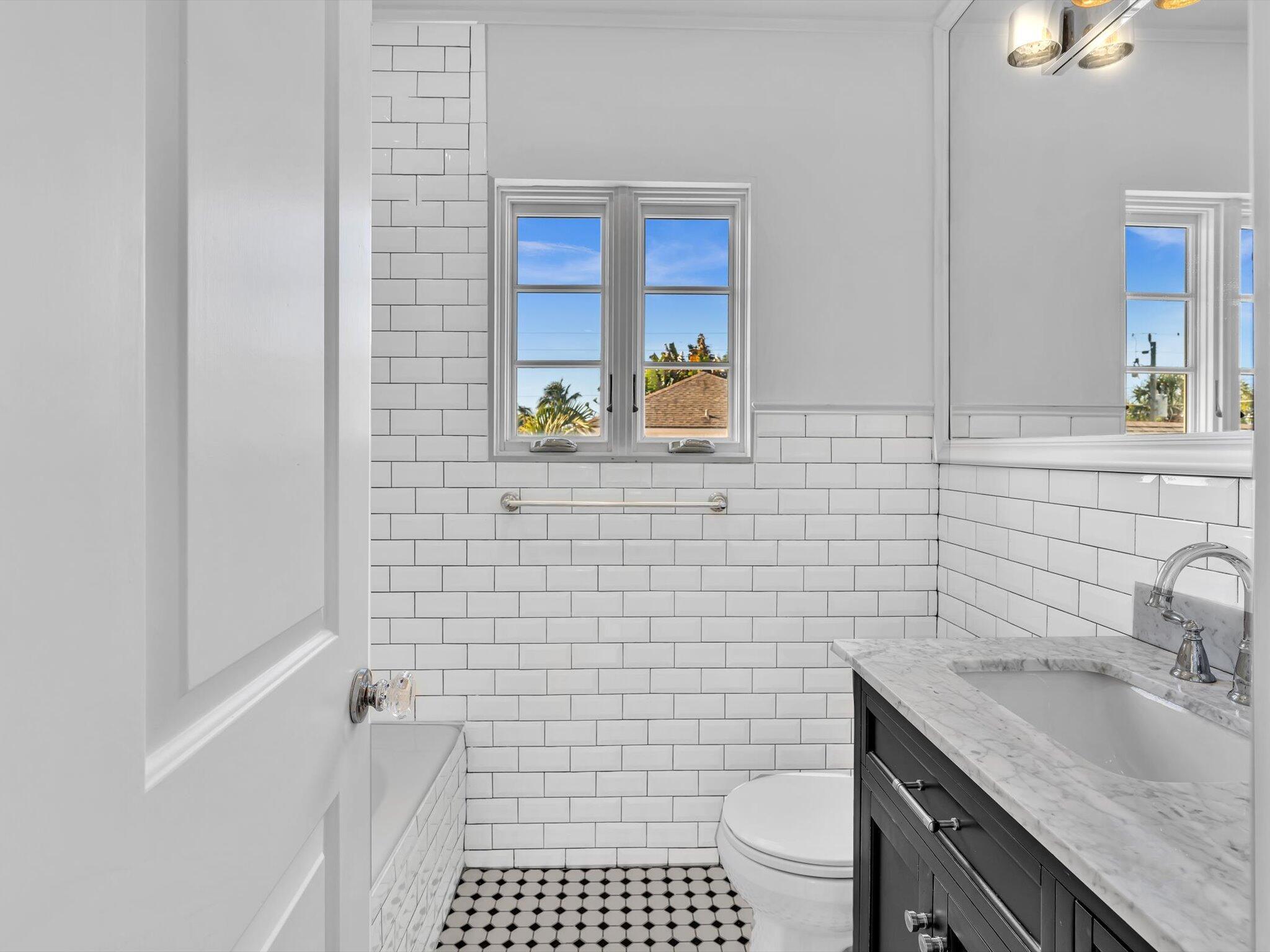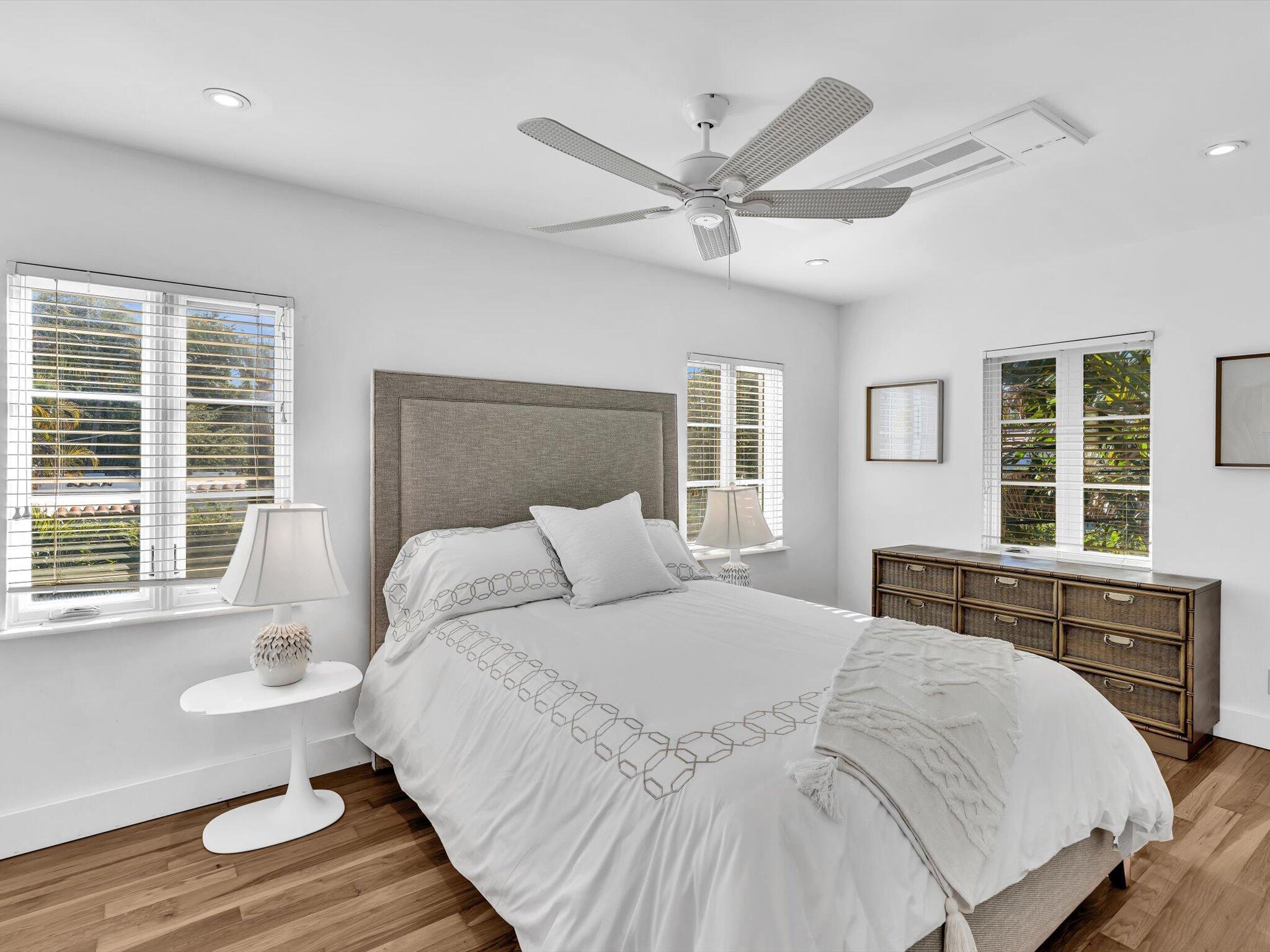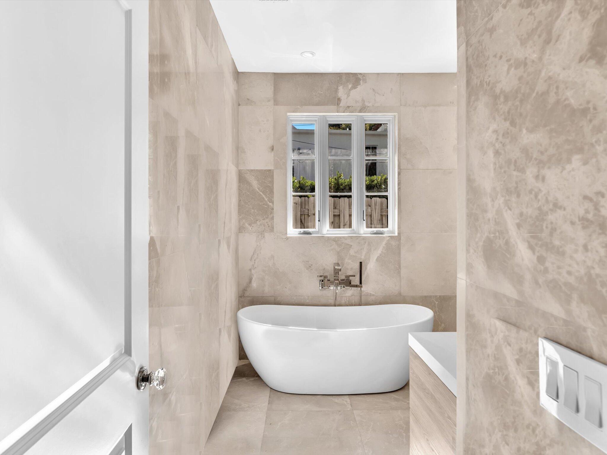 A rare offering in the heart of historic El Cid, this newly renovated estate exudes timeless sophistication and quiet luxury. Crafted with enduring CBS construction and reimagined with exquisite attention to detail, the 3BD/3.5BA main residence features bespoke white oak flooring, spa-inspired Botticino marble baths, and an oversized two-car garage. The separate guest house offers two fully appointed suites–each with its own kitchen and laundry–ideal for hosting or luxury rental income. Outdoor living shines with a 20×35 pool framed by travertine, manicured landscaping, and a Chicago brick courtyard perfect for serene entertaining. Just one block from Flagler Drive and minutes from the island, this is not just a home–it’s a statement. Own a legacy in El Cid.