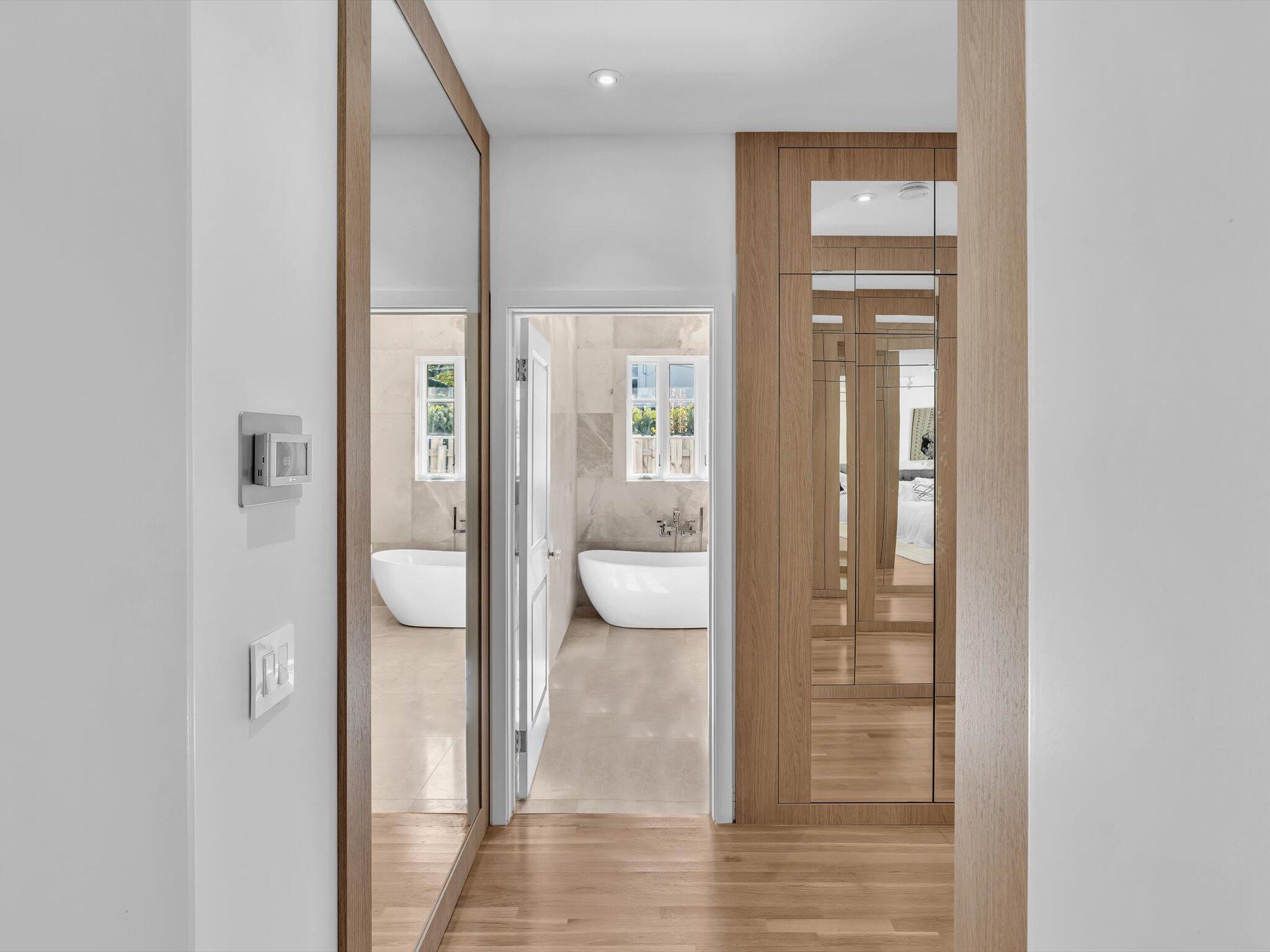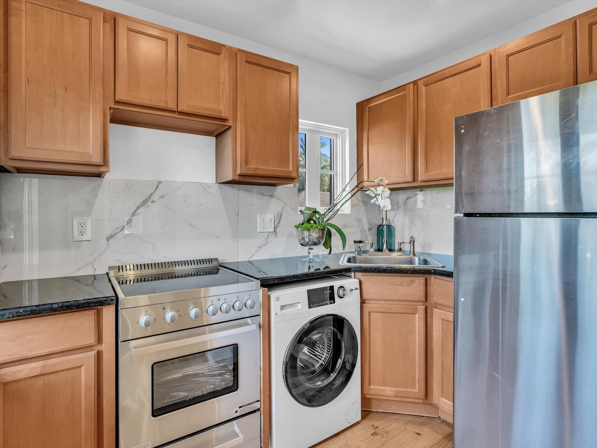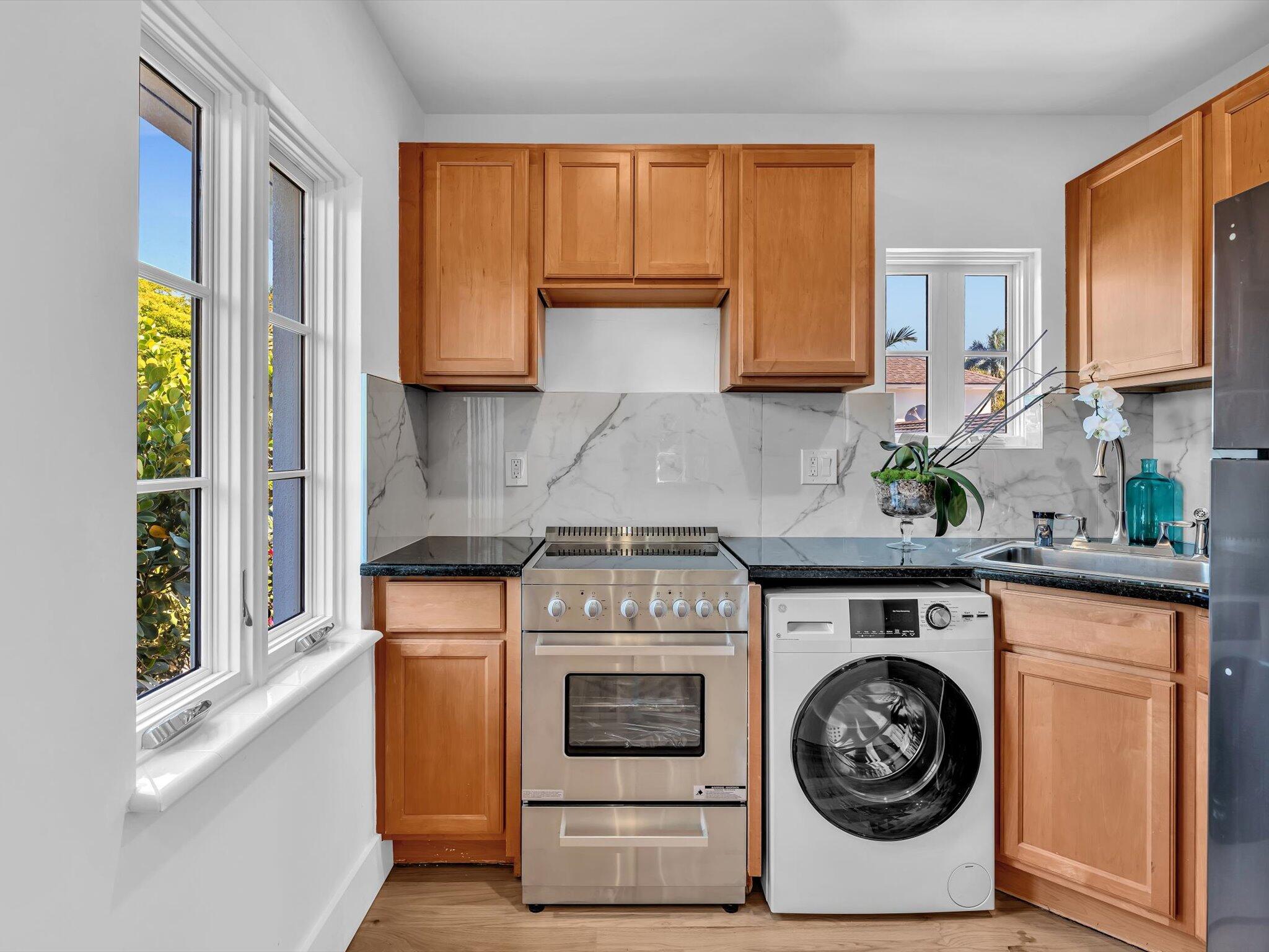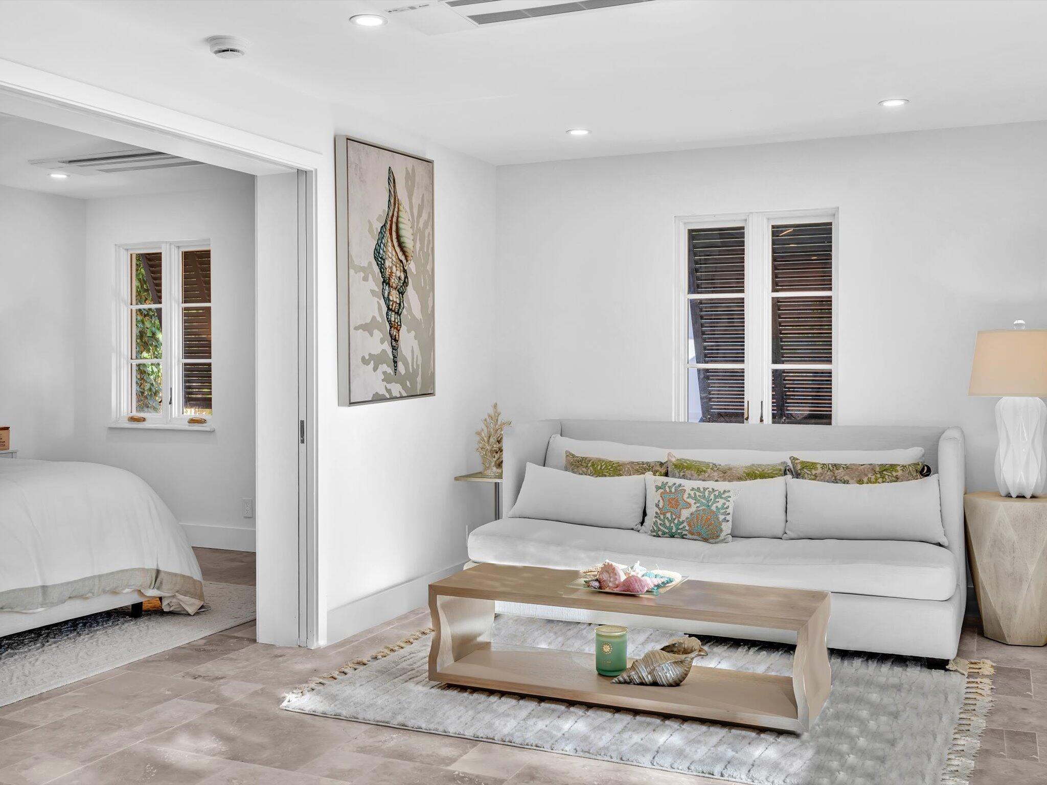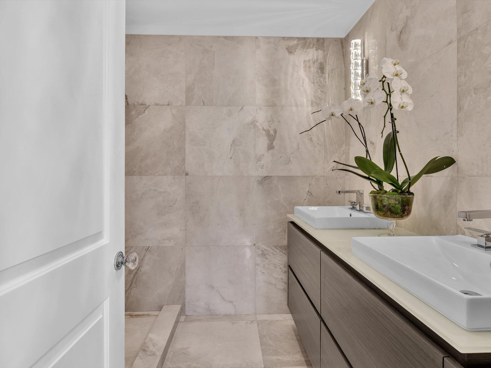 A rare offering in the heart of historic El Cid, this newly renovated estate exudes timeless sophistication and quiet luxury. Crafted with enduring CBS construction and reimagined with exquisite attention to detail, the 3BD/3.5BA main residence features bespoke white oak flooring, spa-inspired Botticino marble baths, and an oversized two-car garage. The separate guest house offers two fully appointed suites–each with its own kitchen and laundry–ideal for hosting or luxury rental income. Outdoor living shines with a 20×35 pool framed by travertine, manicured landscaping, and a Chicago brick courtyard perfect for serene entertaining. Just one block from Flagler Drive and minutes from the island, this is not just a home–it’s a statement. Own a legacy in El Cid.