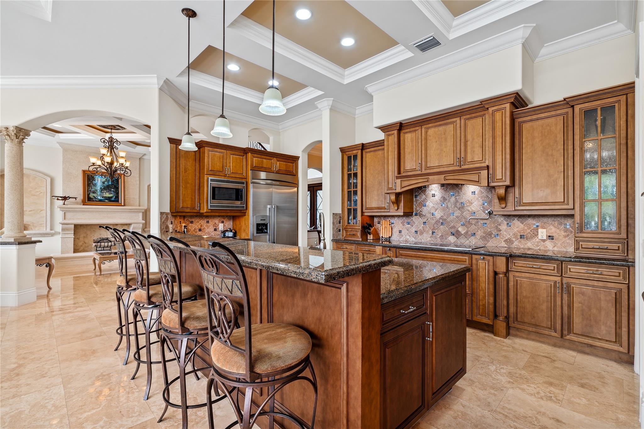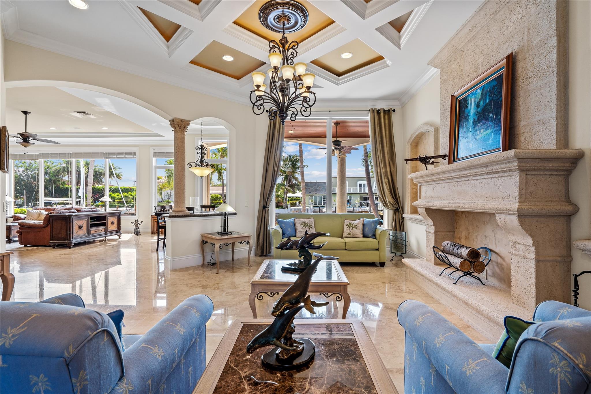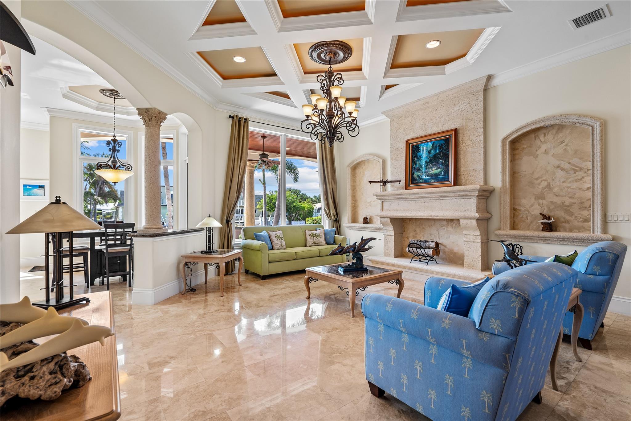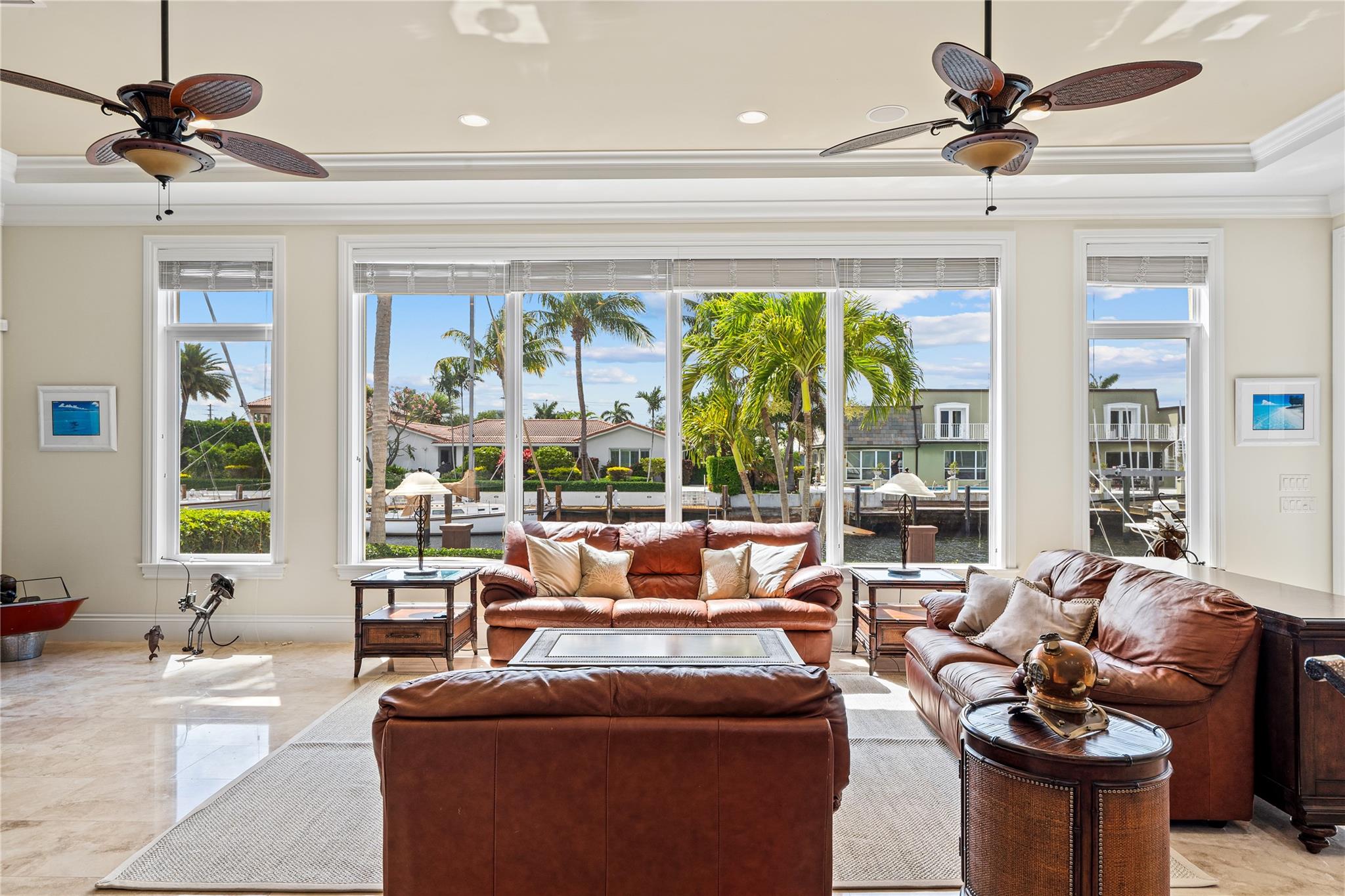 Exceptional Deepwater Estate sited on 90’ +/- of waterfrontage on a wide canal in sought-after Lighthouse Point. This custom estate reveals 7 beds, 4.1 baths & 6,100+/- Total SqFt. Transcend through lavish light-filled interiors comprised of a formal living room, family room and gourmet island kitchen with luxe appliances and walk in pantry. Two bedrooms function as a gym and office. Upstairs there is a spacious primary suite complete with dual closets and a spa-like bath. Other amenities include impact windows, new 3 zone A/C, 3 bay garage, security cameras, and more. Outdoor entertainment is enjoyed at the resort style pool and covered loggia all ensconced in lush landscaping. Avid boaters will enjoy the full-Service yacht dock just minutes to the Hillsboro Inlet and ocean beyond.