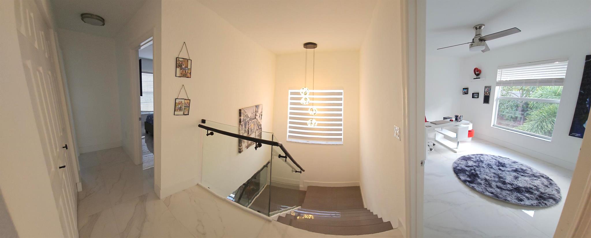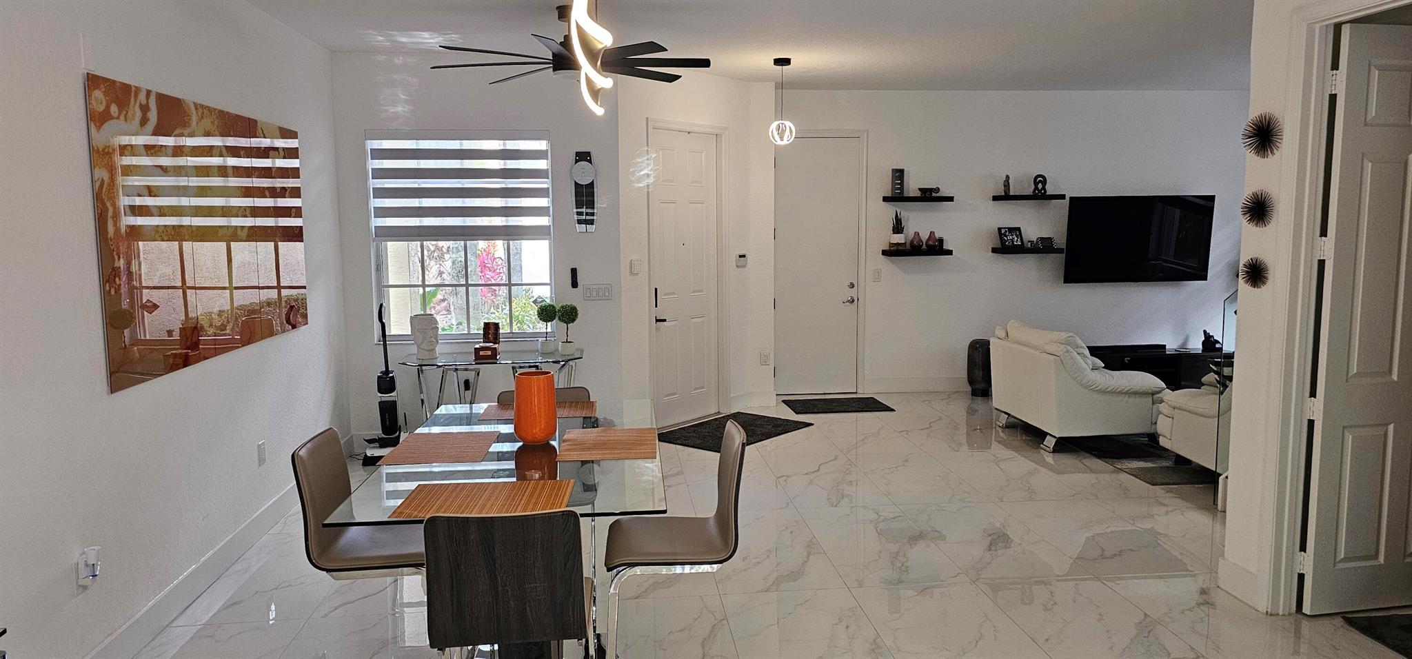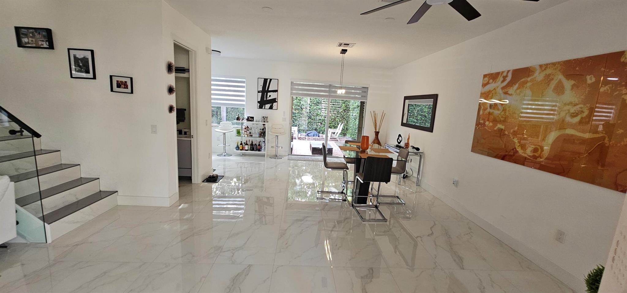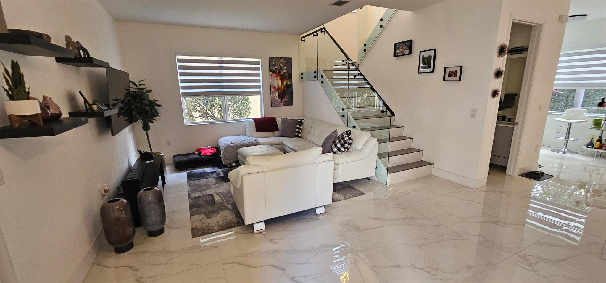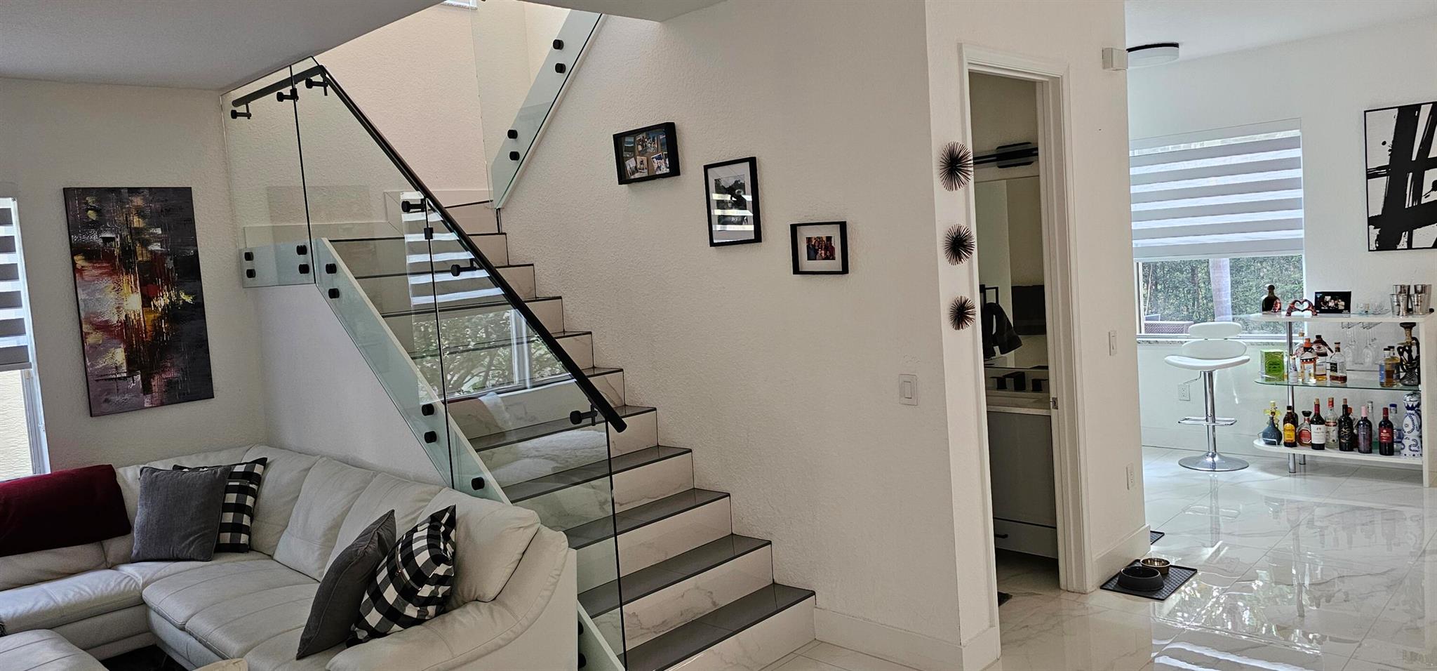 This beautifully updated 3-bedroom, 2.5-bath home offers the ideal blend of style, comfort, and peace of mind. Located in a highly sought-after, guard-gated community known for its family-friendly atmosphere and top-rated schools, this residence has been thoughtfully renovated from top to bottom.Enjoy major upgrades including a new roof, new A/C, fresh interior and exterior paint, and new flooring throughout. A sleek glass staircase and fully renovated kitchen and bathrooms bring a clean, modern elegance to the home. The open-concept layout flows effortlessly into a private enclosed patio with a natural green wall–a serene space perfect for relaxing or entertaining.