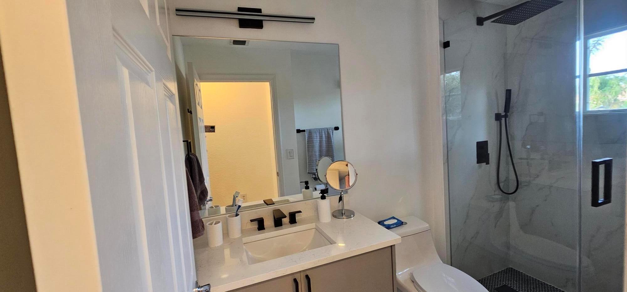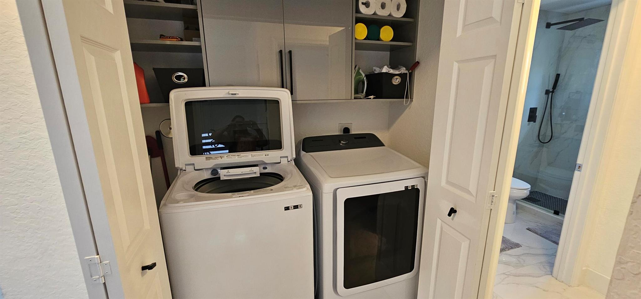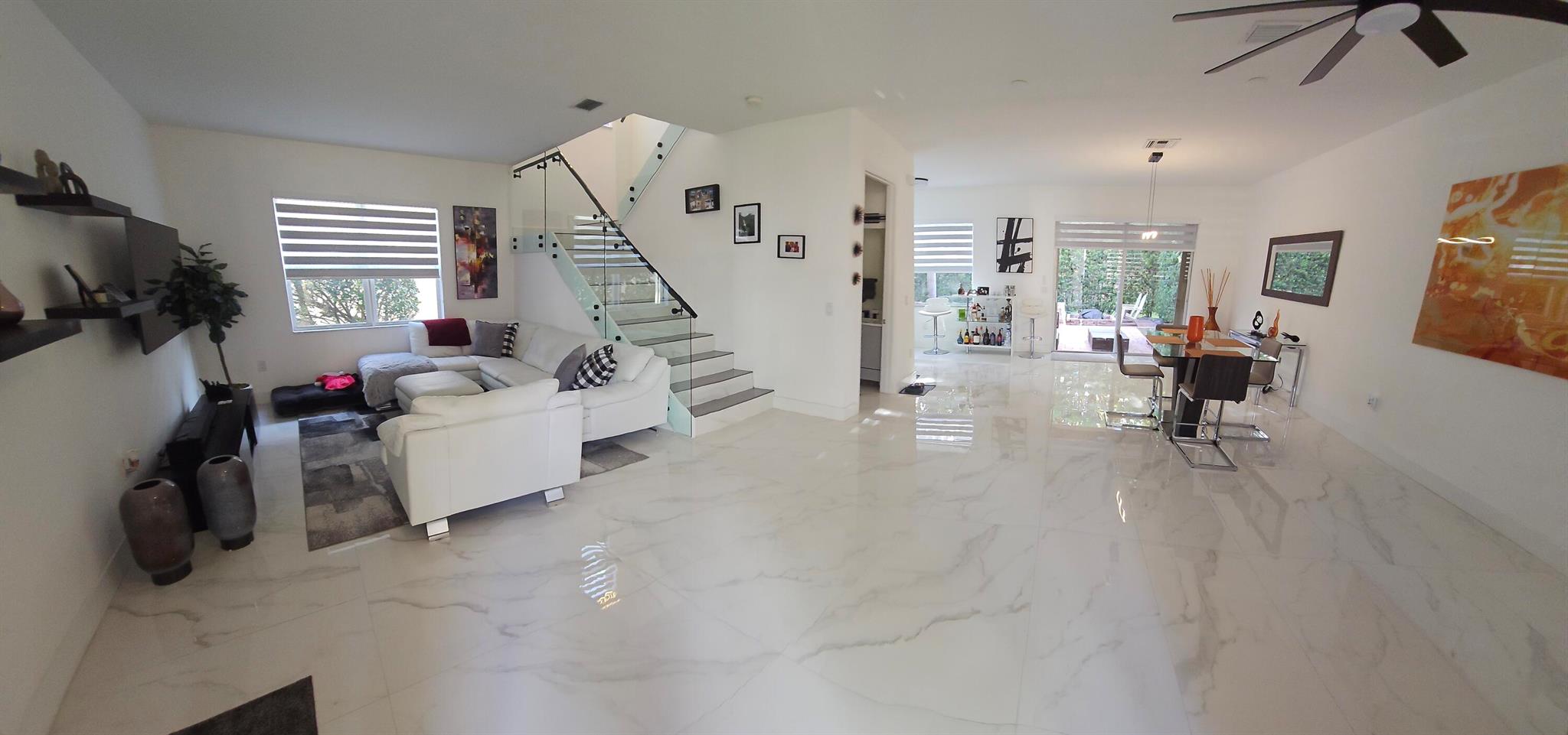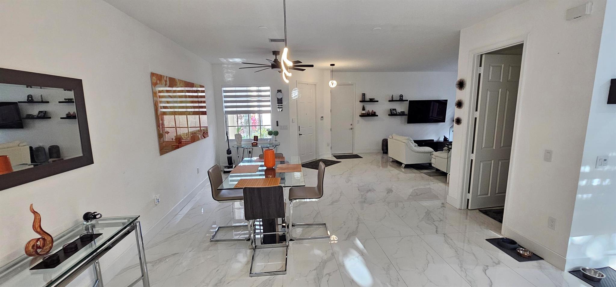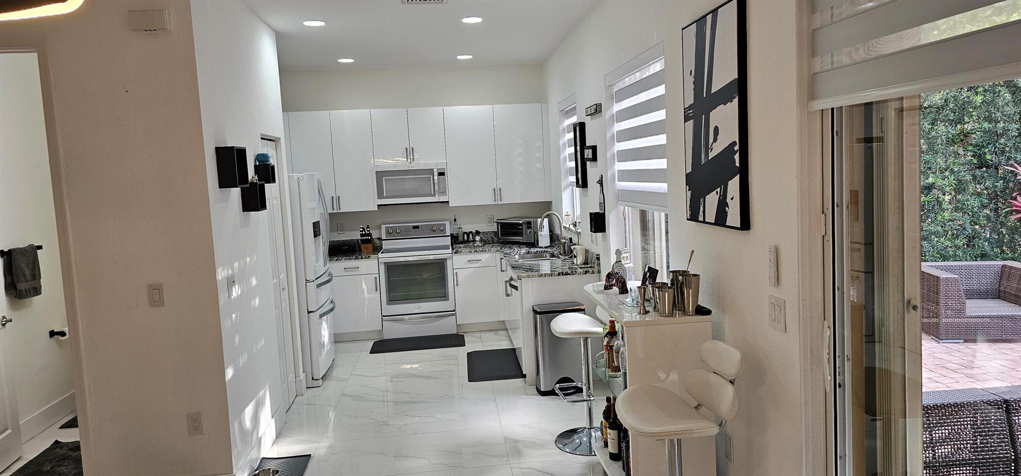 This beautifully updated 3-bedroom, 2.5-bath home offers the ideal blend of style, comfort, and peace of mind. Located in a highly sought-after, guard-gated community known for its family-friendly atmosphere and top-rated schools, this residence has been thoughtfully renovated from top to bottom.Enjoy major upgrades including a new roof, new A/C, fresh interior and exterior paint, and new flooring throughout. A sleek glass staircase and fully renovated kitchen and bathrooms bring a clean, modern elegance to the home. The open-concept layout flows effortlessly into a private enclosed patio with a natural green wall–a serene space perfect for relaxing or entertaining.
