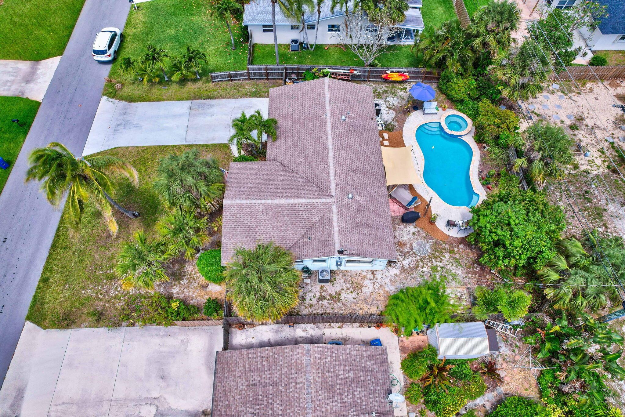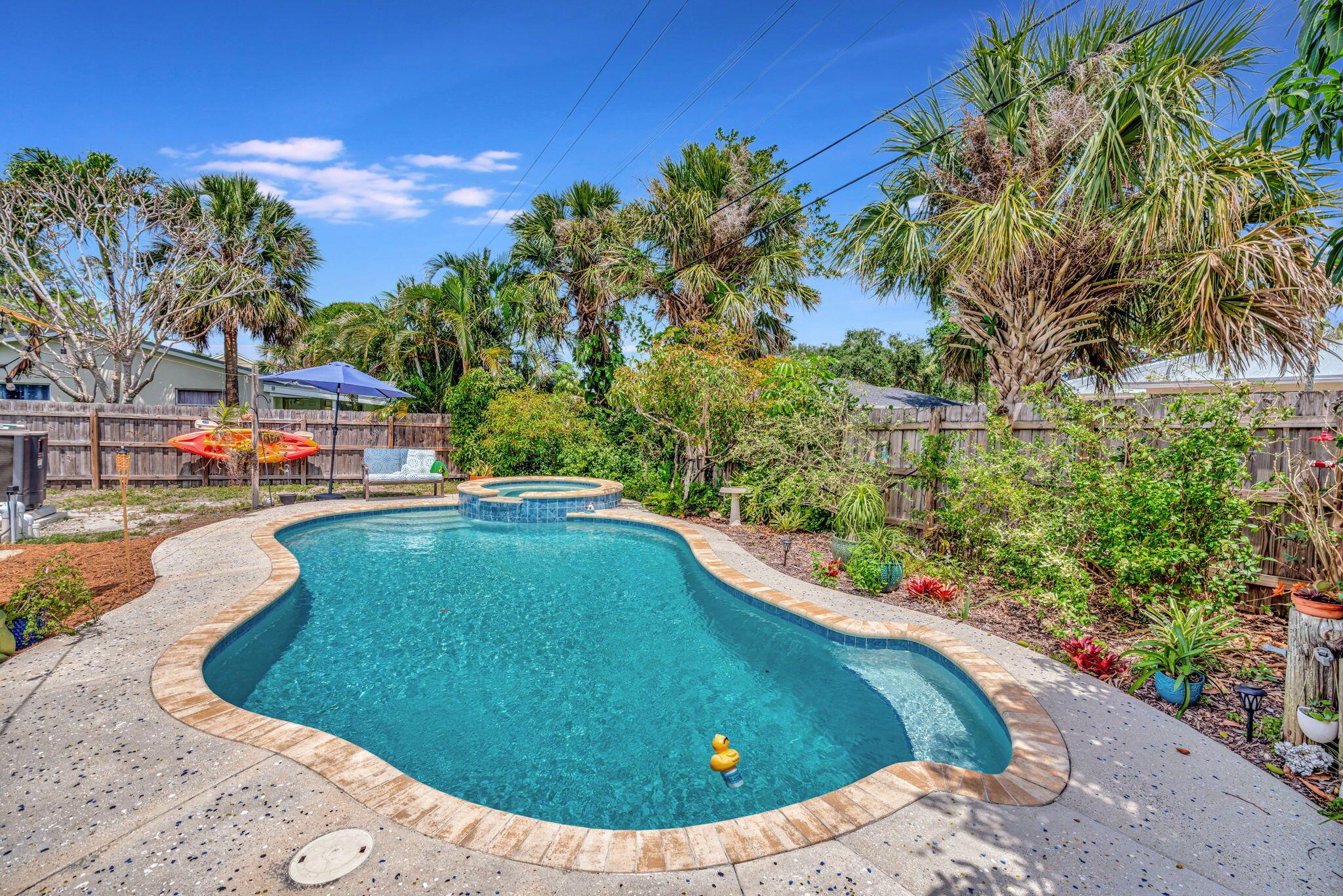 Welcome to Jupiter in the Pines! Come see this Tropical Oasis boasting a 2023 Heated Pool and Spa. Pick a Mango from your very own tree, and have a Mango Smoothie pool side. The CBS home offers 3 bedrooms, 2 bathrooms and a 1 car Garage. The Beautiful New Waterproof Flooring flows with the Coastal Vibe of this Charming home. The Kitchen has Granite Countertops, Beautiful Wood Cabinets, and opens to the dining area. Additional Updates include a New AC and Electric Meter/Panel. The Oversized Driveway has room for 4 vehicles. There are Gates on either side of the property providing Plenty of Parking for a Boat, Trailer and Golf Cart. The Yard is Fenced. There is Kayak Access to the Loxahatchee River a short distance down the road. This Fantastic Jupiter/Tequesta Location is Close to