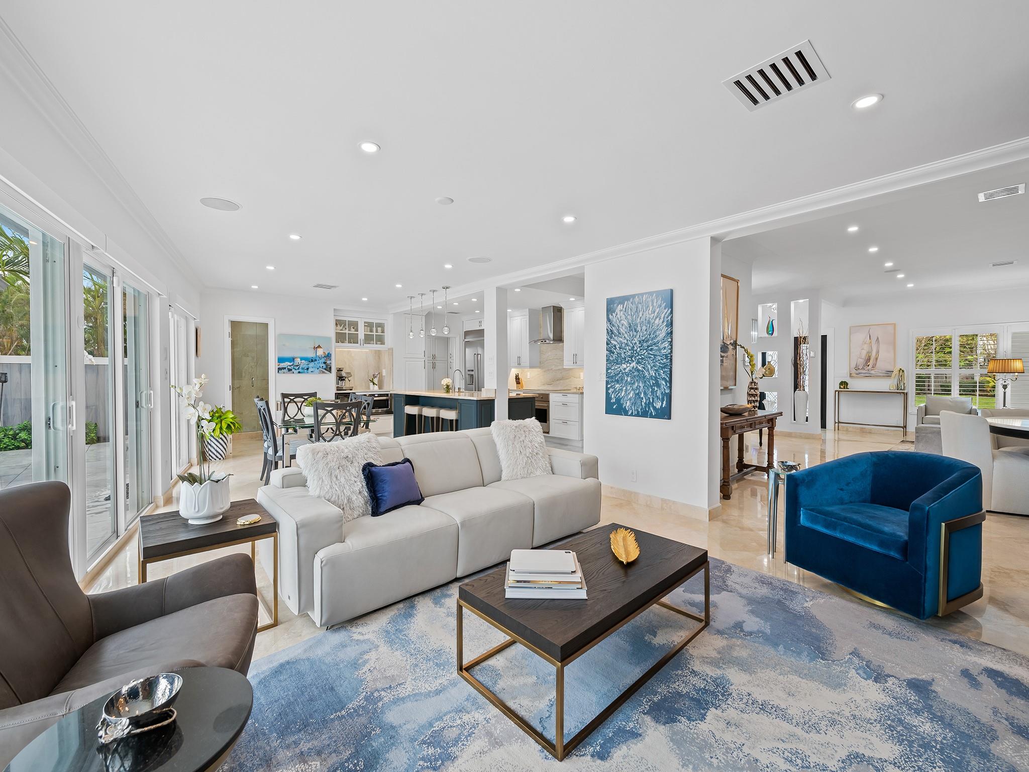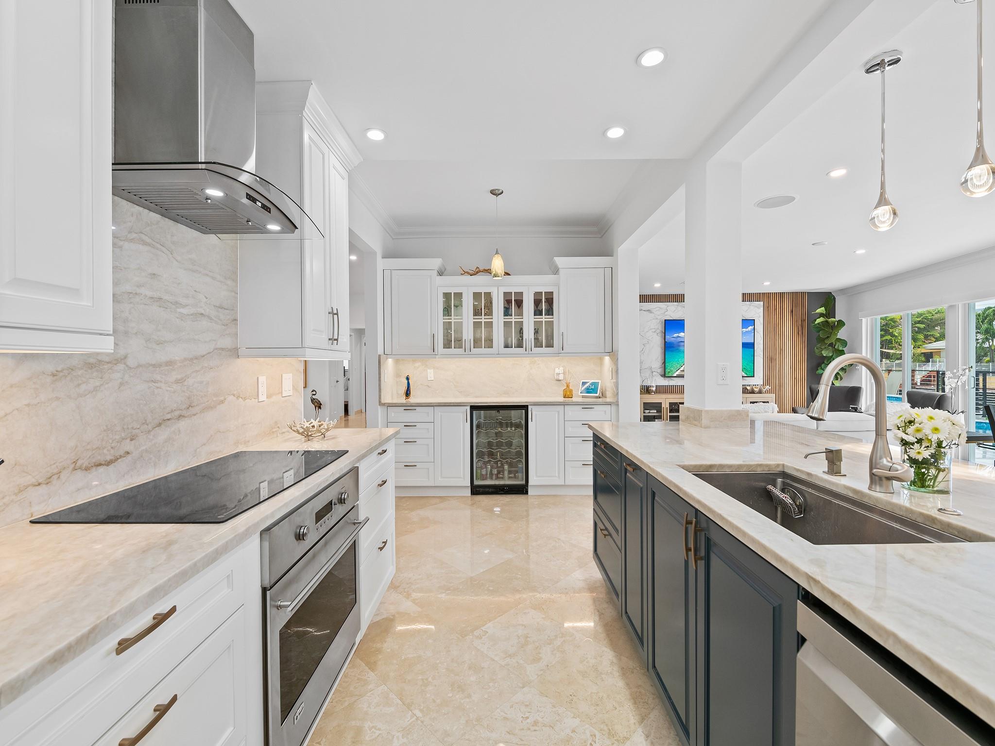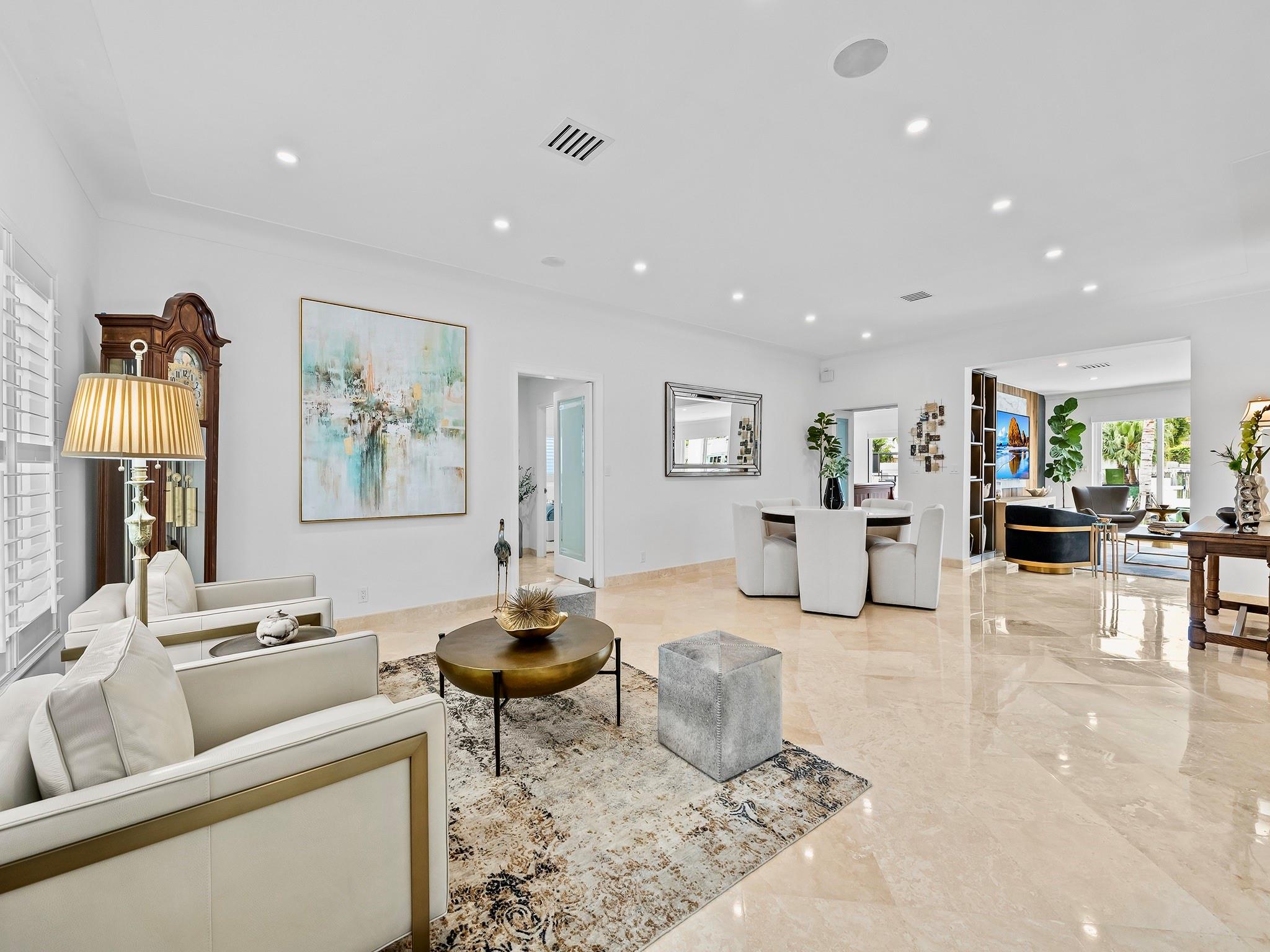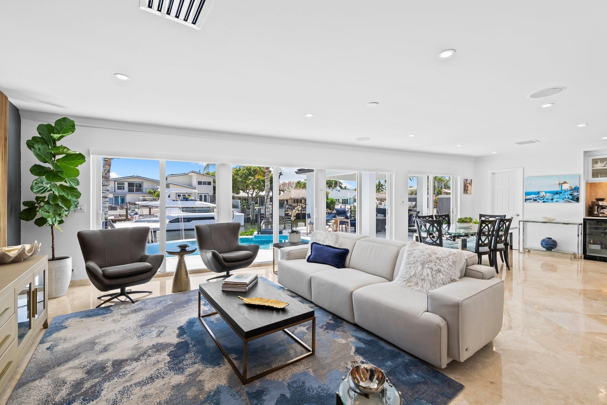 Welcome to this stunning renovated coastal retreat located in the prestigious Bermuda Riviera neighborhood of Ft. Lauderdale, 5min walk to the beach! This open-concept home seamlessly blends modern luxury w/ timeless elegance, perfect for indoor-outdoor living. Inside, you’ll find bright areas with high-impact windows enhancing natural light and energy efficiency. Elegant finishes, including a coffee & wine bar, motorized shades and air-conditioned garage with storage. The outdoor area is an entertainer dream—featuring a newly designed entrance, lush landscaping, new lighting, heated saltwater pool & spa, gazebo, outdoor kitchen & circular driveway enhanced w/ artificial grass. Boaters will love the brand-new dock w/ 80 feet on a wide deepwater canal w/ direct ocean access no fixed bridges