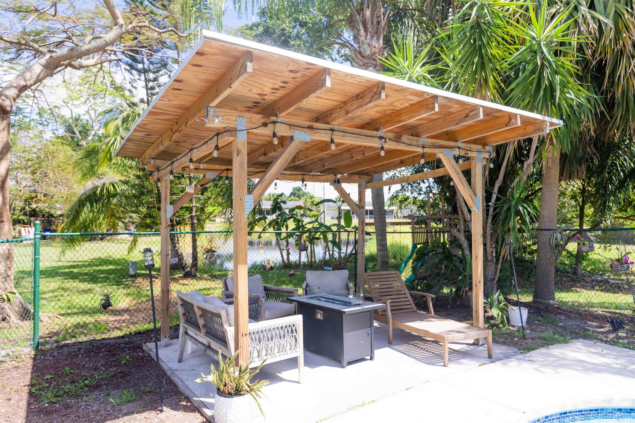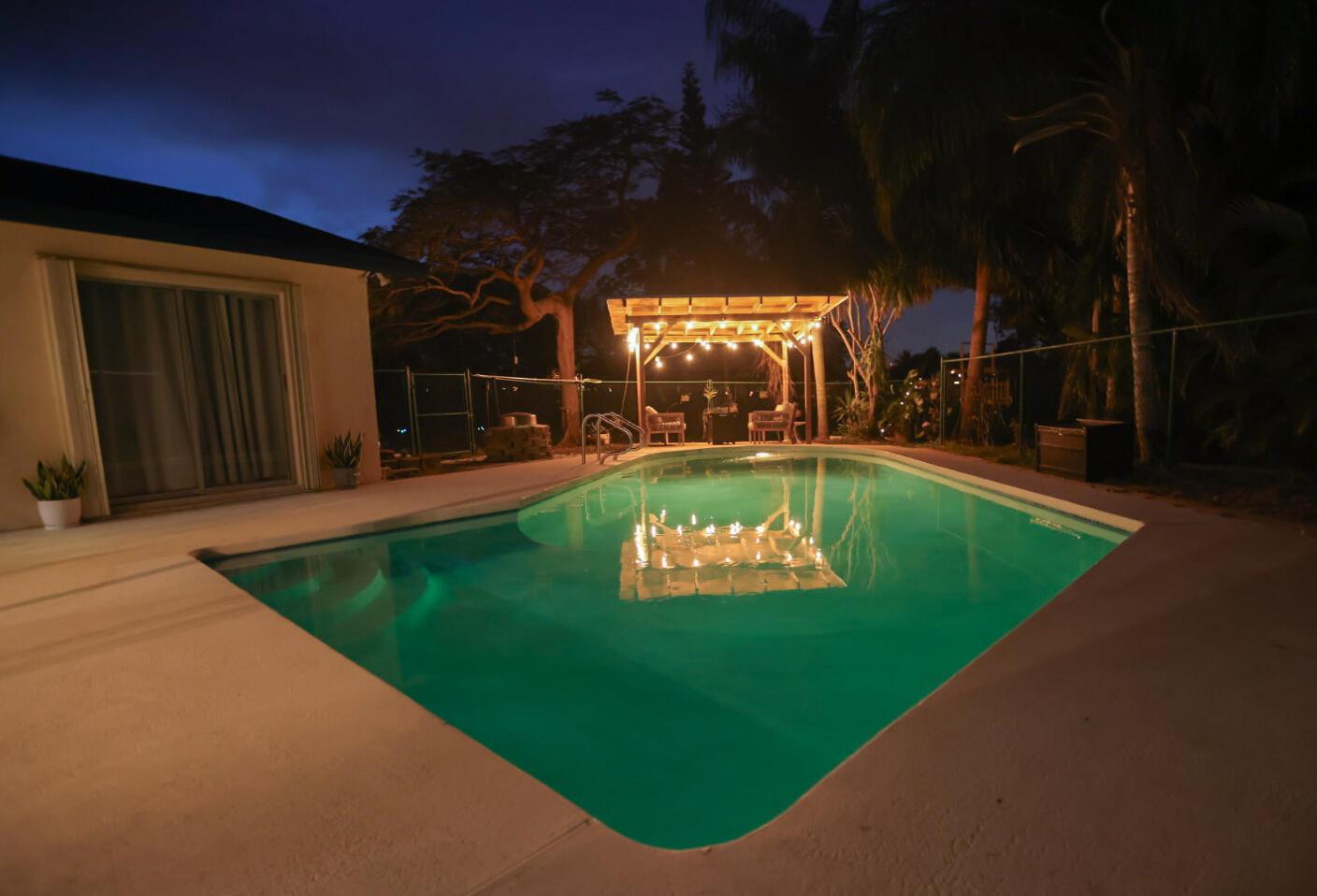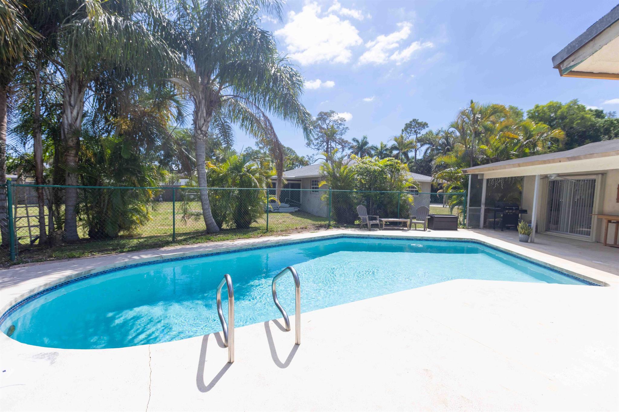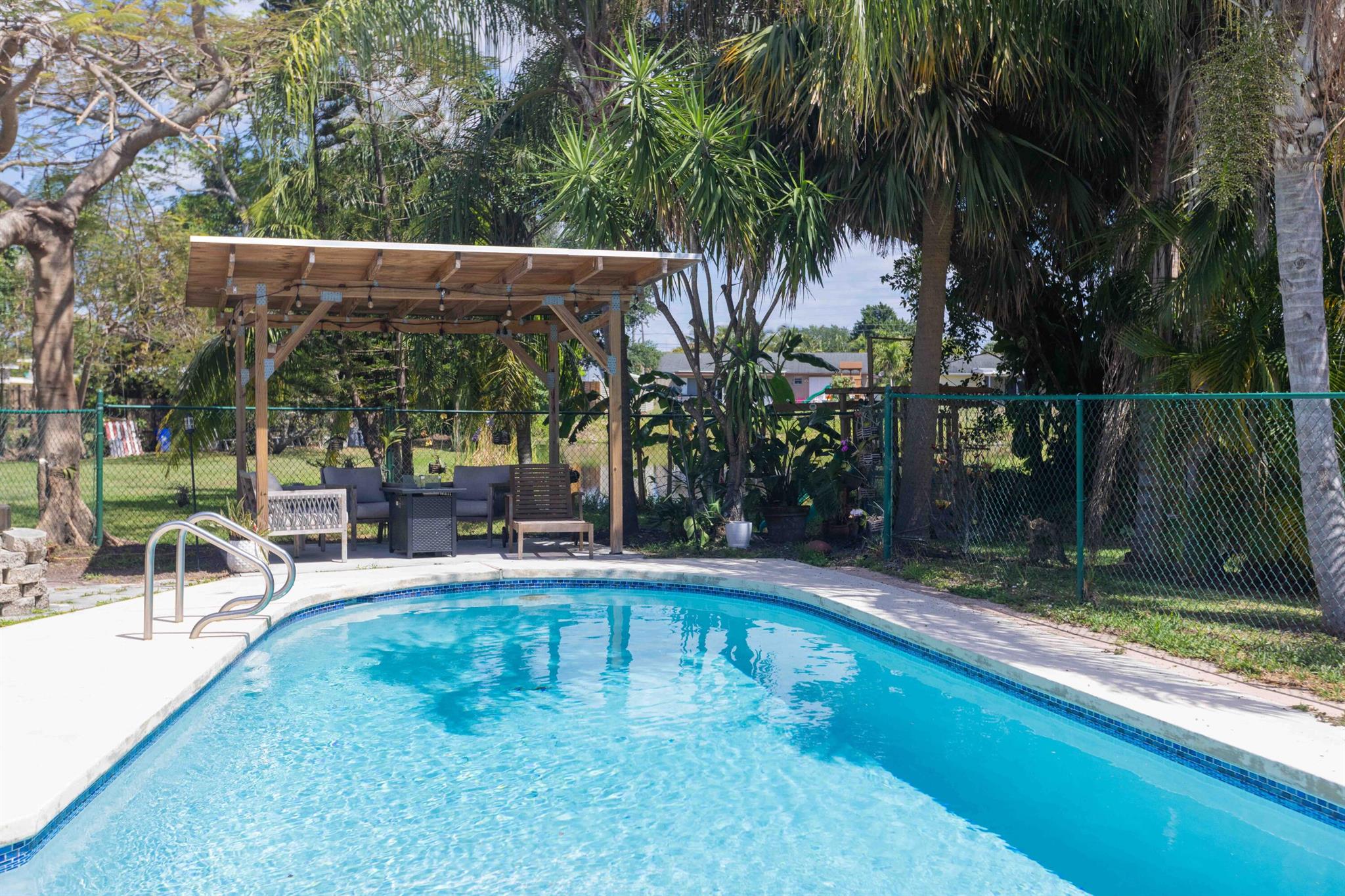 Welcome to Paradise!3/2/2 pool home in tropical paradise on just under a half an acre with NO HOA in Florida Gardens!!! There is a smaller additional 4th room with a closet being used as a bedroom for a small child, would work great as a nursery, playroom, office, or anything else you’d need extra room for. Beautiful tile floor throughout with tons of natural light. Brand new resurfaced pool with energy efficient programable pump, new filter housing, new skimmer and main drain, new jets, fresh paint coming this week, granite and stainless steel appliances in the kitchen. Dishwasher less than 1 year old, Washer, Dryer, and refrigerator are less than 2 years old. Banana and Palm trees overlooking the pond in the back yard. Pool and water views from kitchen, dining room, and bedrooms.