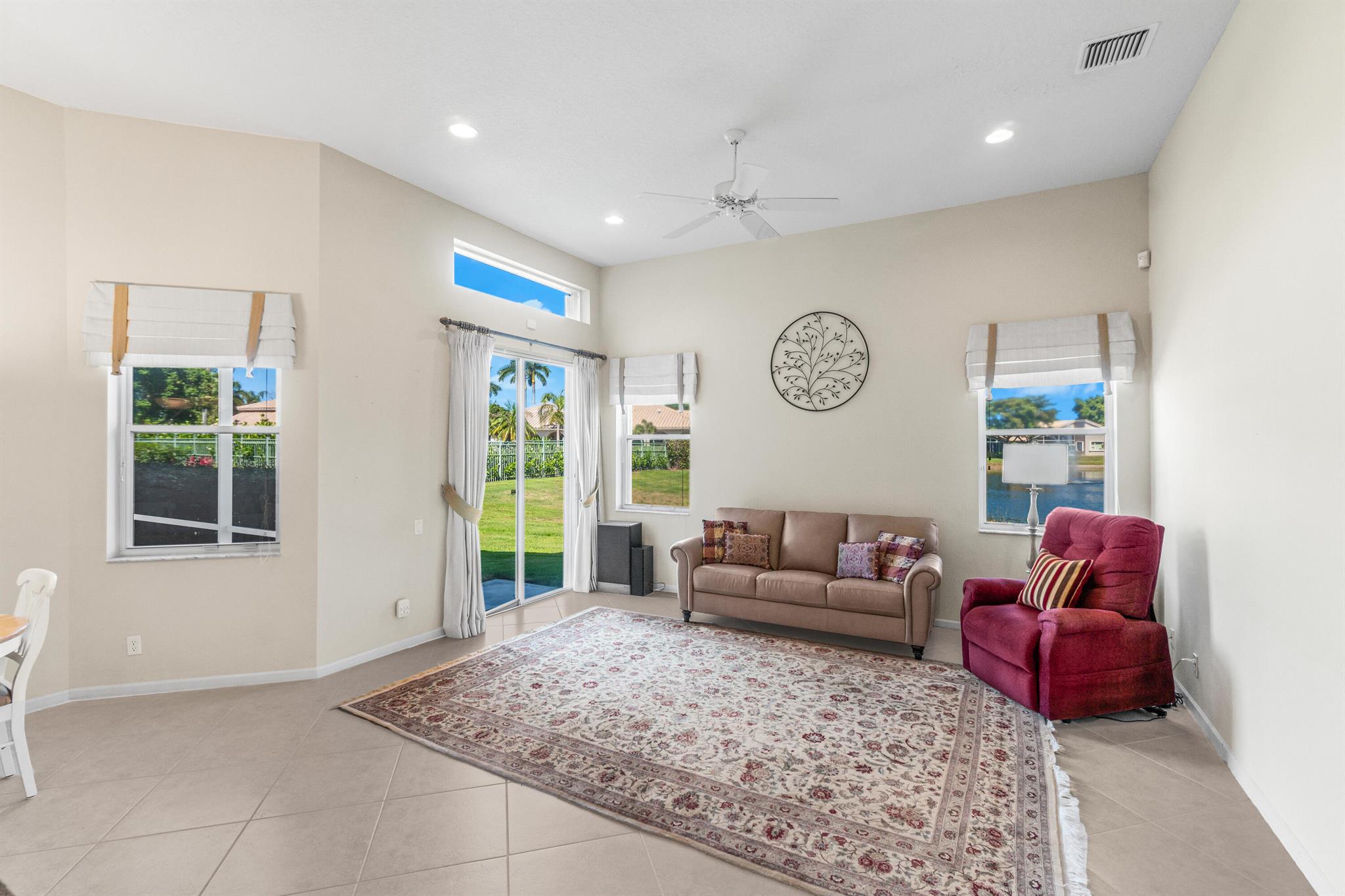 Natural light floods this 3 bedroom PLUS DEN / 2 Bathroom home located in the Gated Community of Lakeridge Falls. An Eaton model, this home boasts a spacious open floorpan with an added den! Situated at the end of the lake, this house features: a split bedroom floorpan, spacious kitchen and guest rooms, beautiful long lake views from the master, guest room and living room! Enjoy the screen enclosed patio and quick walk to the clubhouse and its endless amenities!Lakeridge Falls is a 55+ community located in Central Boynton Beach. This community boasts a Beautiful Clubhouse, active Pickle Ball Community, and is adjacent to Westchester CC Public Golf Course. Enjoy living in Central Boynton with restaurants, shopping and entertainment just minutes away!