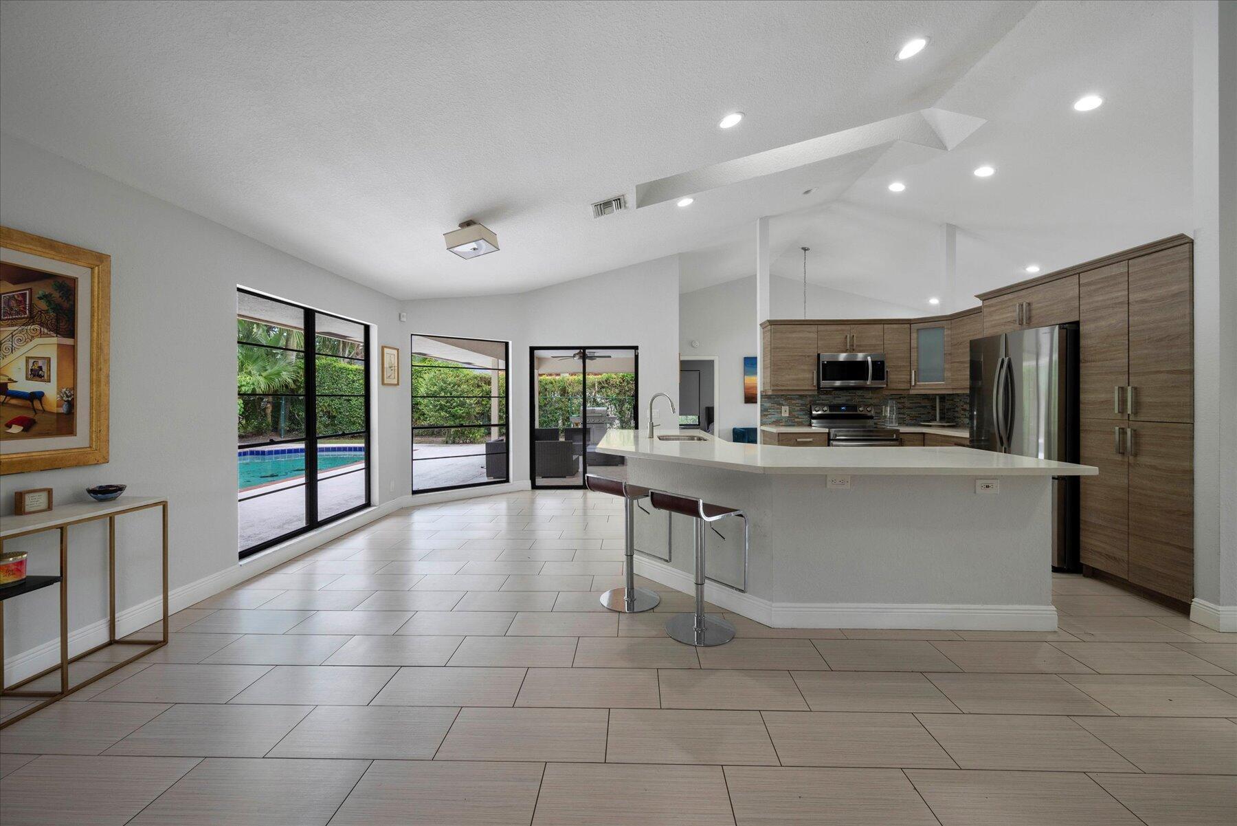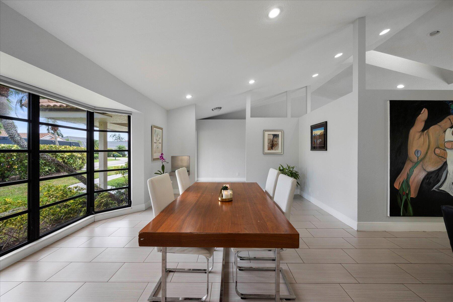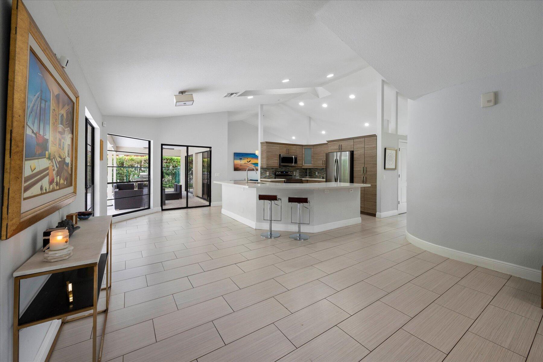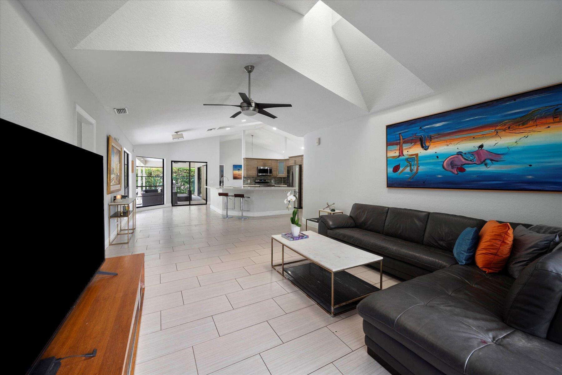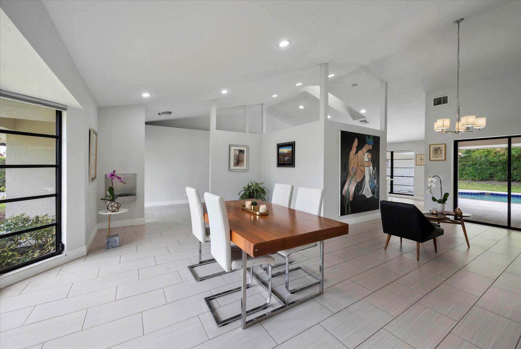 Seize the opportunity to own this stunning single-story pool home in the highly coveted Marlwood Estates section of PGA National community. You’ll be welcomed by soaring 14-foot vaulted ceilings and a sun-drenched living area, thanks to abundant windows and striking skylights. This 4-bed, 2-bath home offers ample space for both relaxation and entertaining. Delight in the picturesque views of your private pool, lush garden, and covered patio. The home features tile flooring throughout, with brand new luxury vinyl flooring in the bedrooms, and an oversized 2-car garage. Optional memberships are available at the award-winning PGA National Resort, PGA National offers access to resort pools, golf courses, a fitness center, fine dining, member activities, tennis, pickleball, and more.
