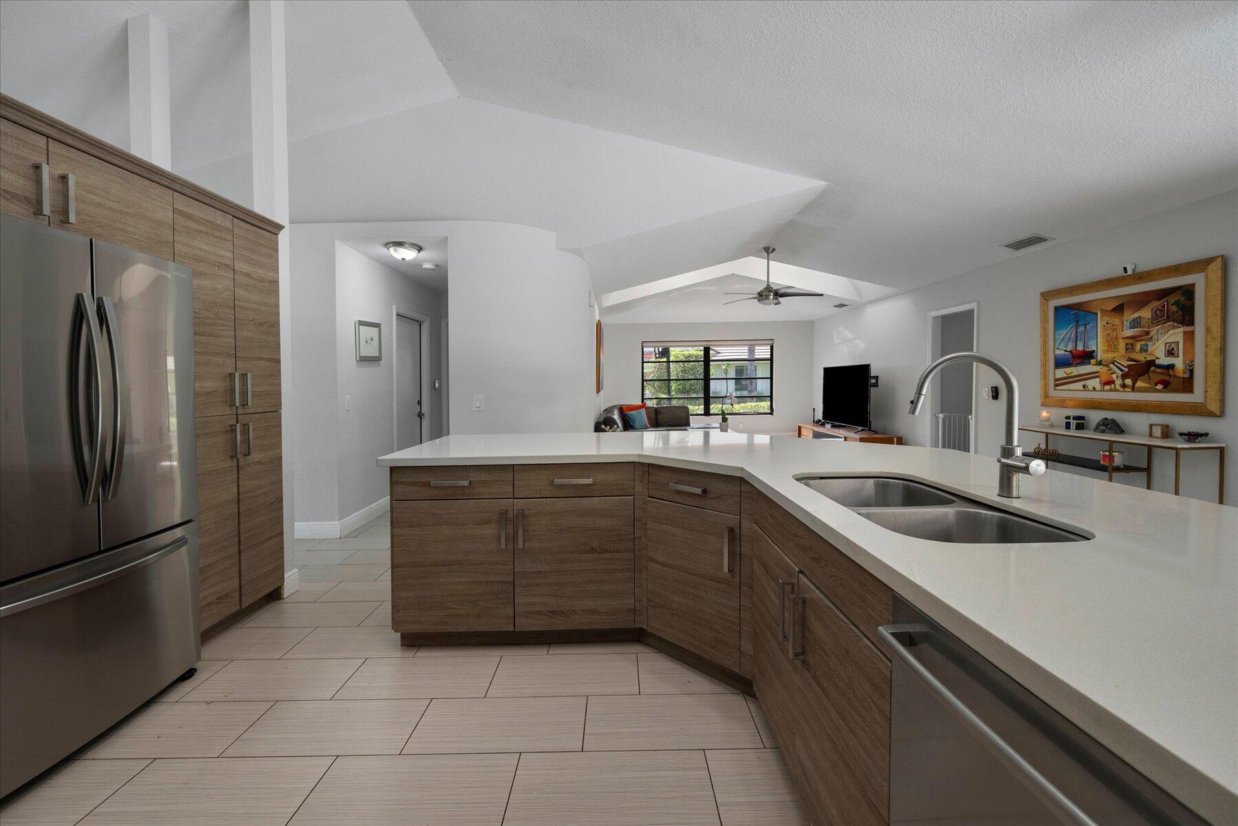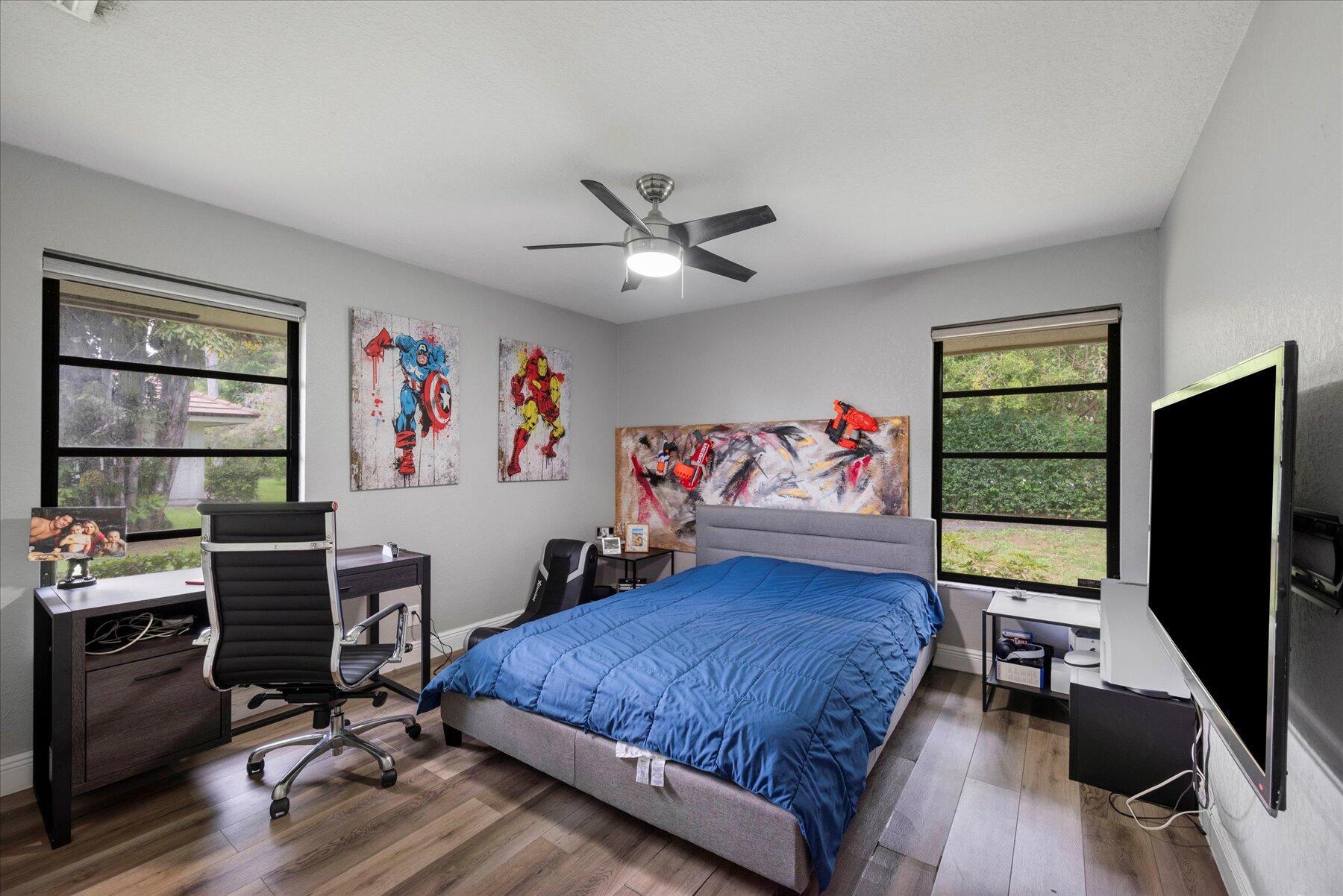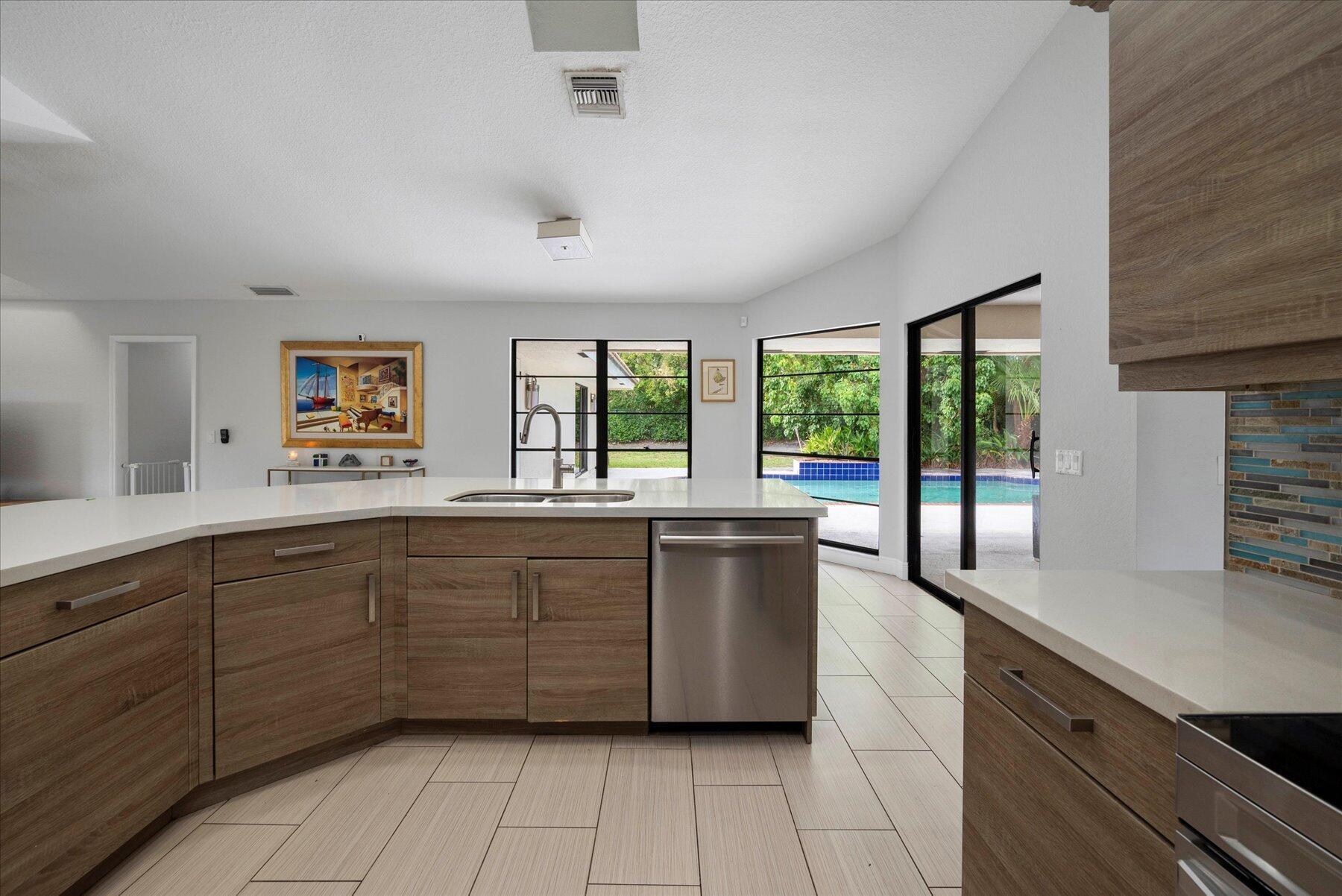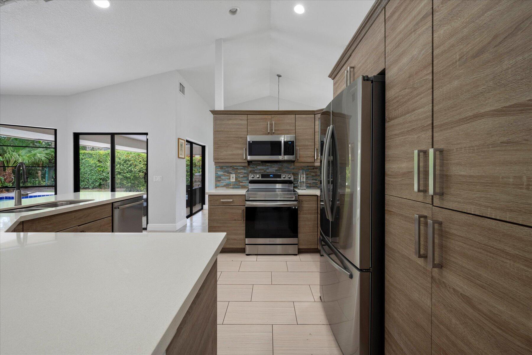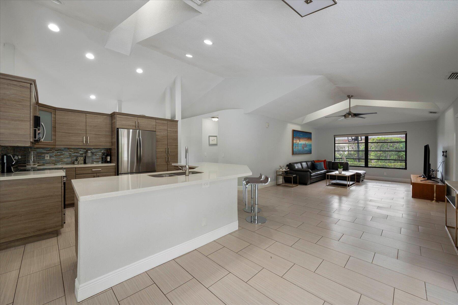 Seize the opportunity to own this stunning single-story pool home in the highly coveted Marlwood Estates section of PGA National community. You’ll be welcomed by soaring 14-foot vaulted ceilings and a sun-drenched living area, thanks to abundant windows and striking skylights. This 4-bed, 2-bath home offers ample space for both relaxation and entertaining. Delight in the picturesque views of your private pool, lush garden, and covered patio. The home features tile flooring throughout, with brand new luxury vinyl flooring in the bedrooms, and an oversized 2-car garage. Optional memberships are available at the award-winning PGA National Resort, PGA National offers access to resort pools, golf courses, a fitness center, fine dining, member activities, tennis, pickleball, and more.