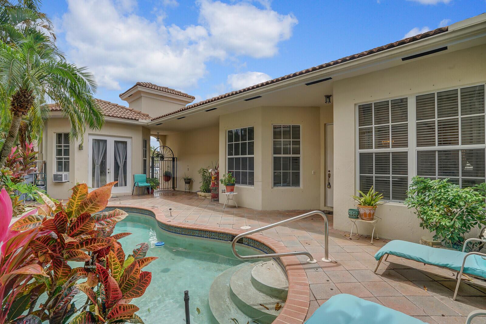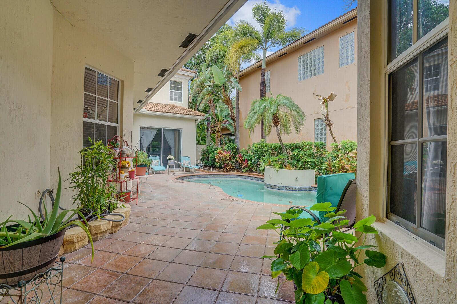 Welcome to this beautifully designed 4-bedroom, 3.5-bathroom residence located in the private, gated community of Addison Trace in Delray Beach, Florida.This well-maintained home offers a thoughtful layout, beginning with a convenient first-floor master suite. The heart of the home, the kitchen, is outfitted with sleek stone countertops and stainless steel appliances, perfect for both everyday living and entertaining. Just beyond, the private courtyard invites you to enjoy the Florida sunshine on your own patio and pool deck, with the added bonus of a separate 1BR/1BA guest house ideal for hosting visitors or creating a private home office. Upstairs, 2 spacious bedrooms share a full bathroom, providing a comfortable retreat for family or guests.