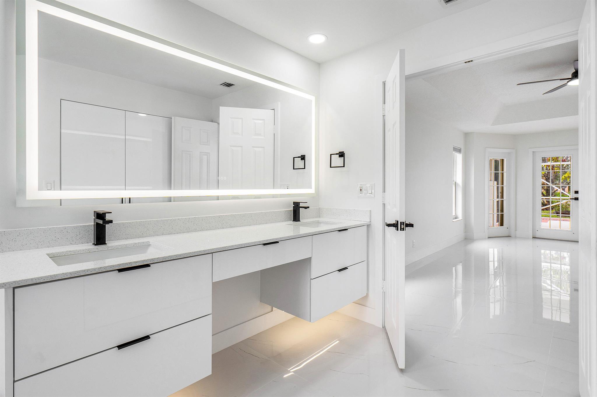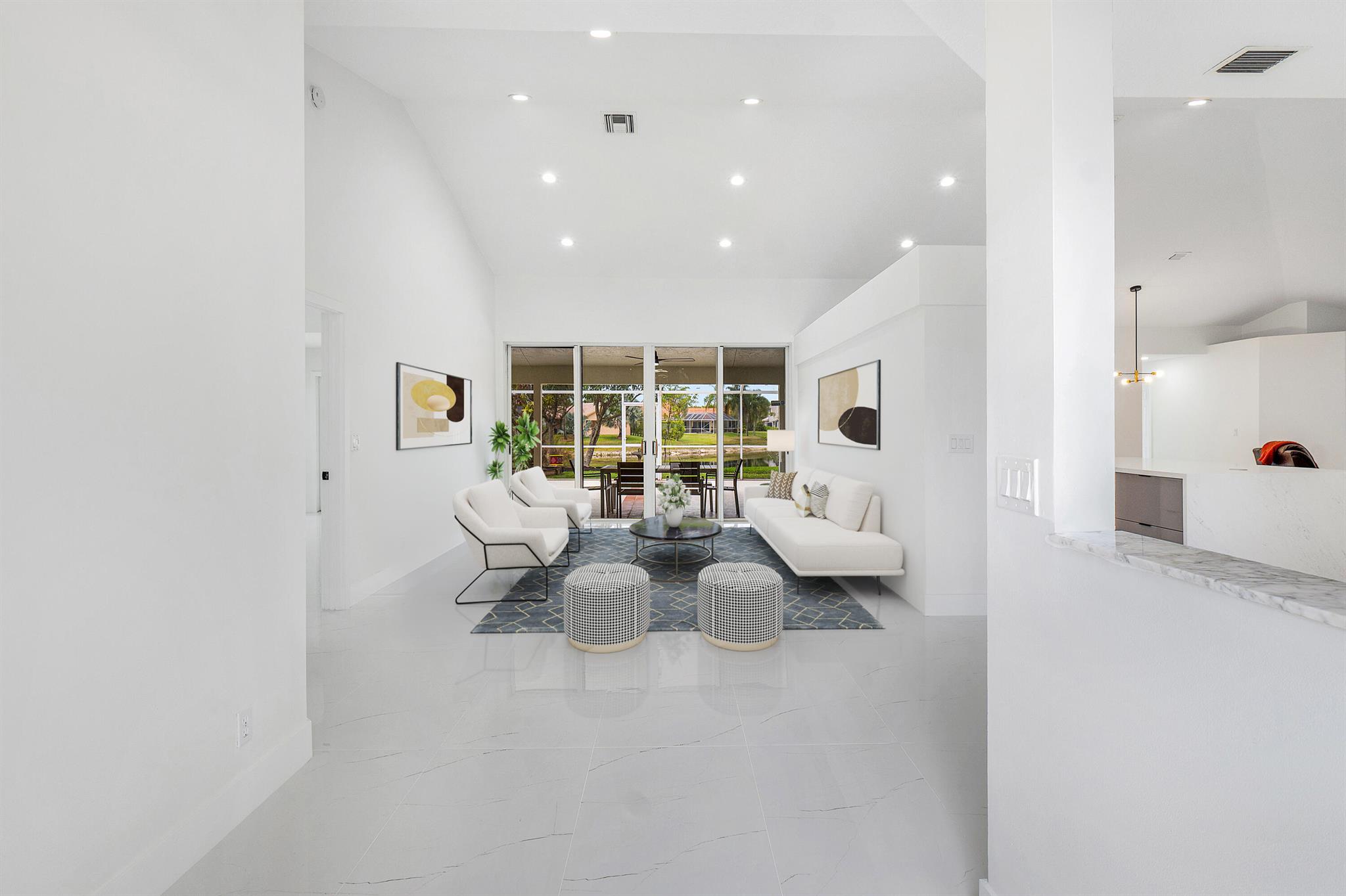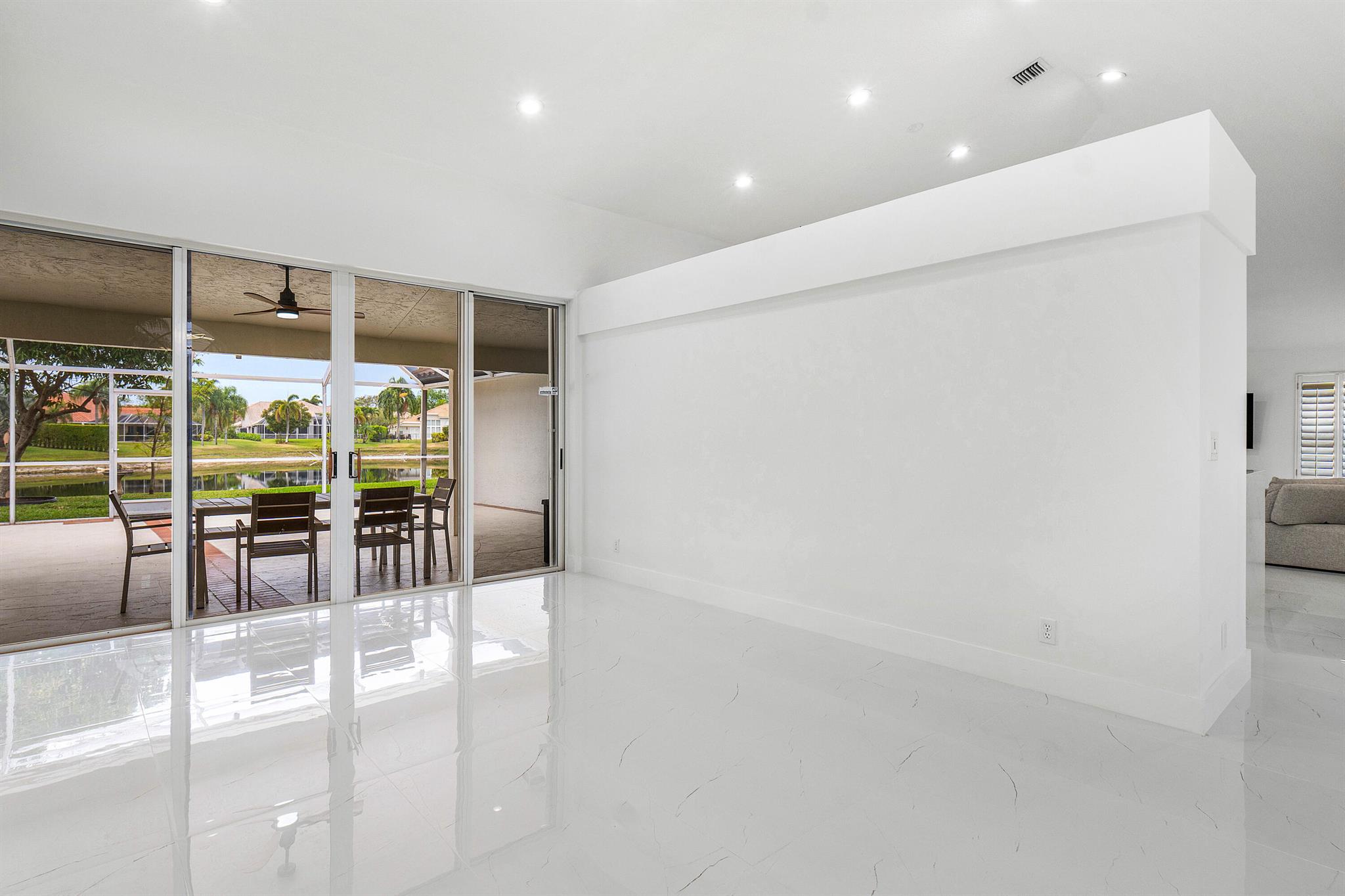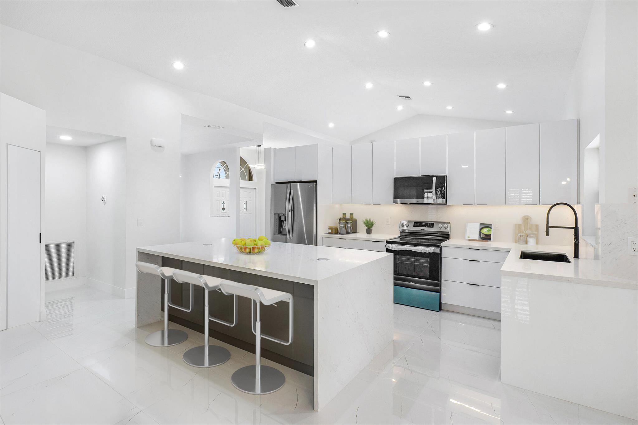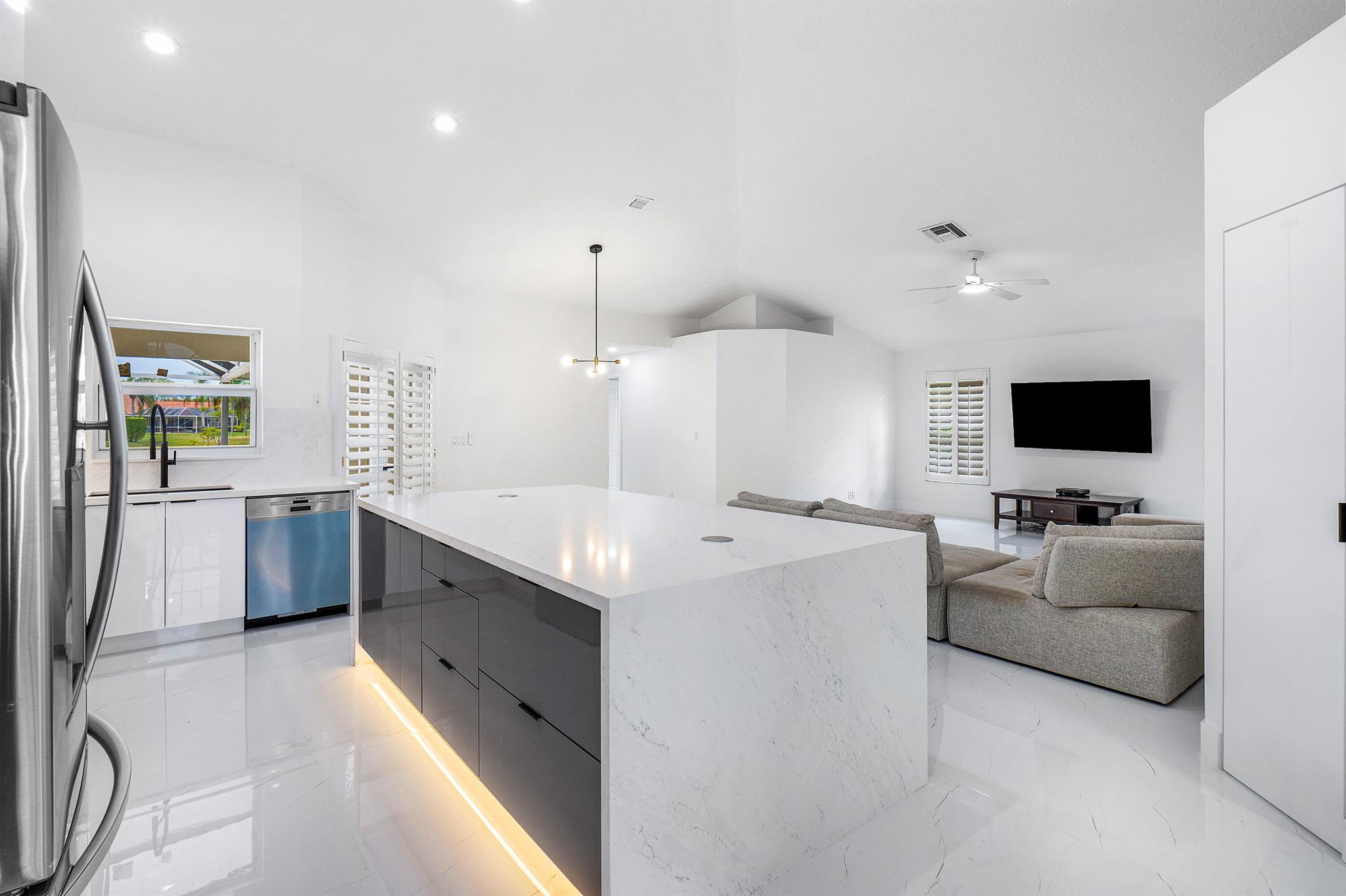 Newly renovated lakefront home in sought-after Cordova Estates of Mission Bay. Set on a 0.25-acre east-facing lot with expansive lake views, this 4-bed 2.5-bath, 2,561 sq ft one-floor home blends modern luxury and contemporary finishes with over $150,000 in high-end upgrades. The seller is offering a $10,000 credit to buyer with a full-price offer.The oversized screened-in patio is perfect for relaxing or entertaining, complemented by a beautifully landscaped backyard with room for a pool (owner has pool specs priced). The home features an open layout, imported porcelain tile throughout, high ceilings a brand-new kitchen with custom cabinetry, a waterfall island, stainless steel appliances, under-cabinet LED lighting, a custom pantry, and recessed lighting.