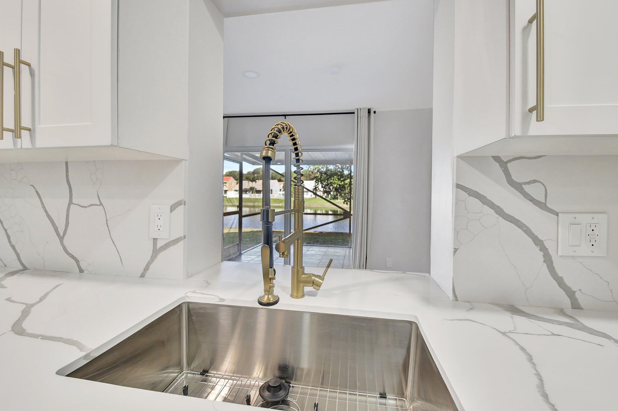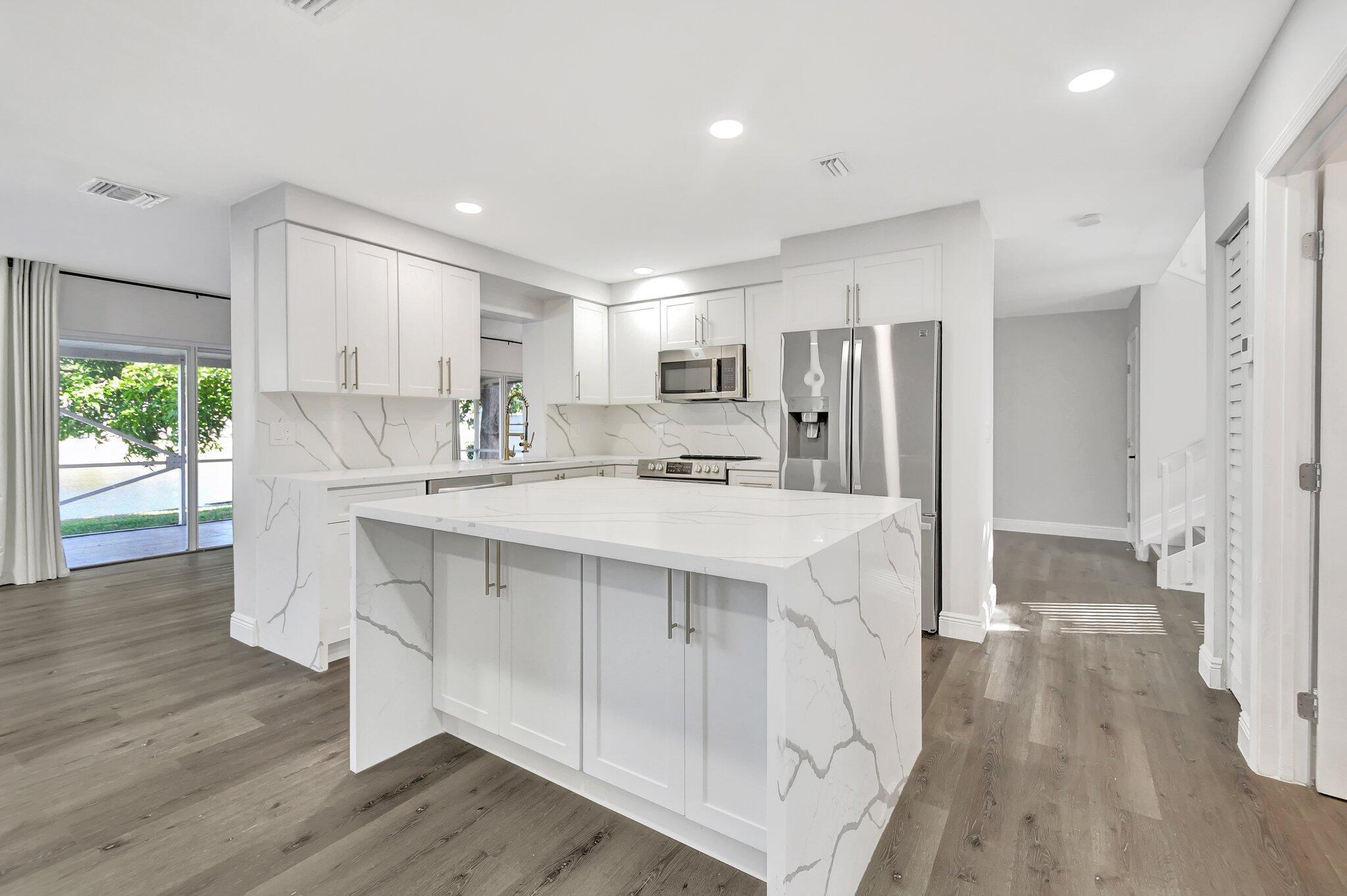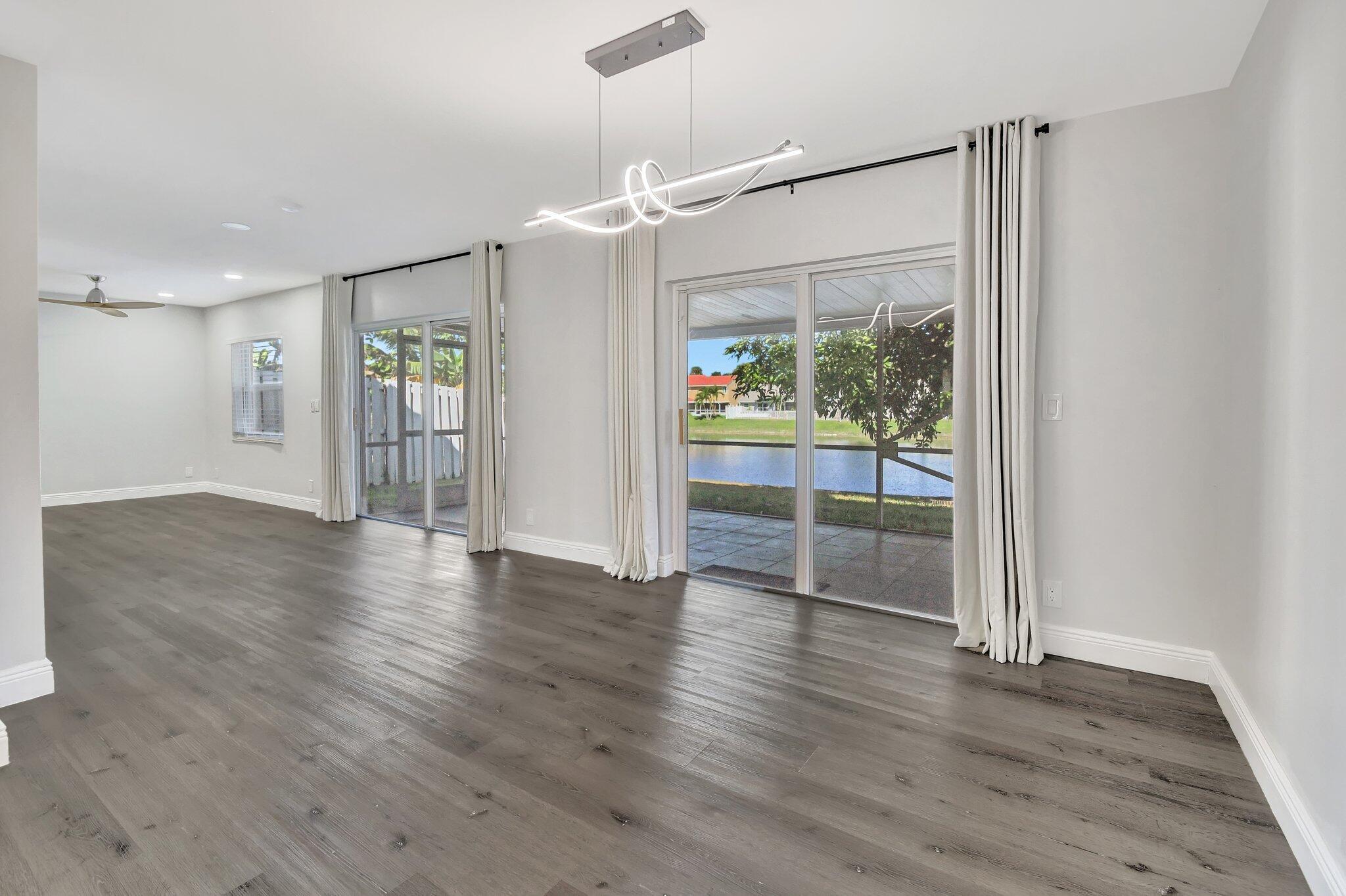 Gorgeous single family home in prestigious Boca Springs! Home sits on a private lot with direct lake views, fully upgraded with 4 bedrooms, 2.5 baths, brand new roof 2025, hurricane impact windows & doors, brand new kitchen & bathrooms, vaulted ceilings, ideal open floor plan – offering the perfect blend of privacy, luxury and entertainment! Beautiful gourmet kitchen w/ waterfall quartz countertops, eat in island with extra storage on both sides, brand new appliances all overlooking the lake from main living areas! Primary suite with vaulted ceilings, walk- in closet and 2nd closet space, full 2 car garage, bonus storage area underneath the stairs, private laundry room with ample space for extra storage, private screened in porch – perfect for BBQs, family gatherings, ideal