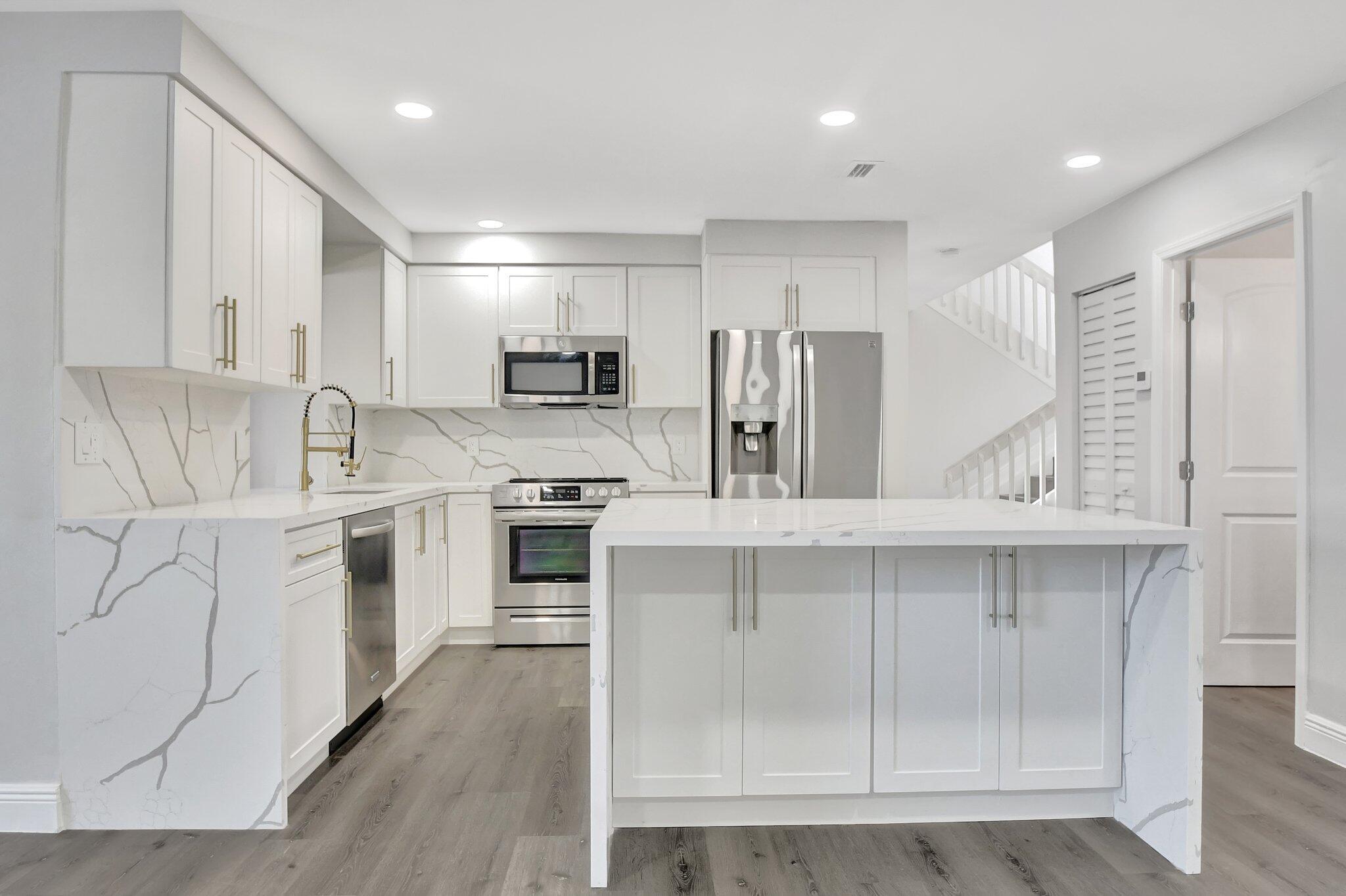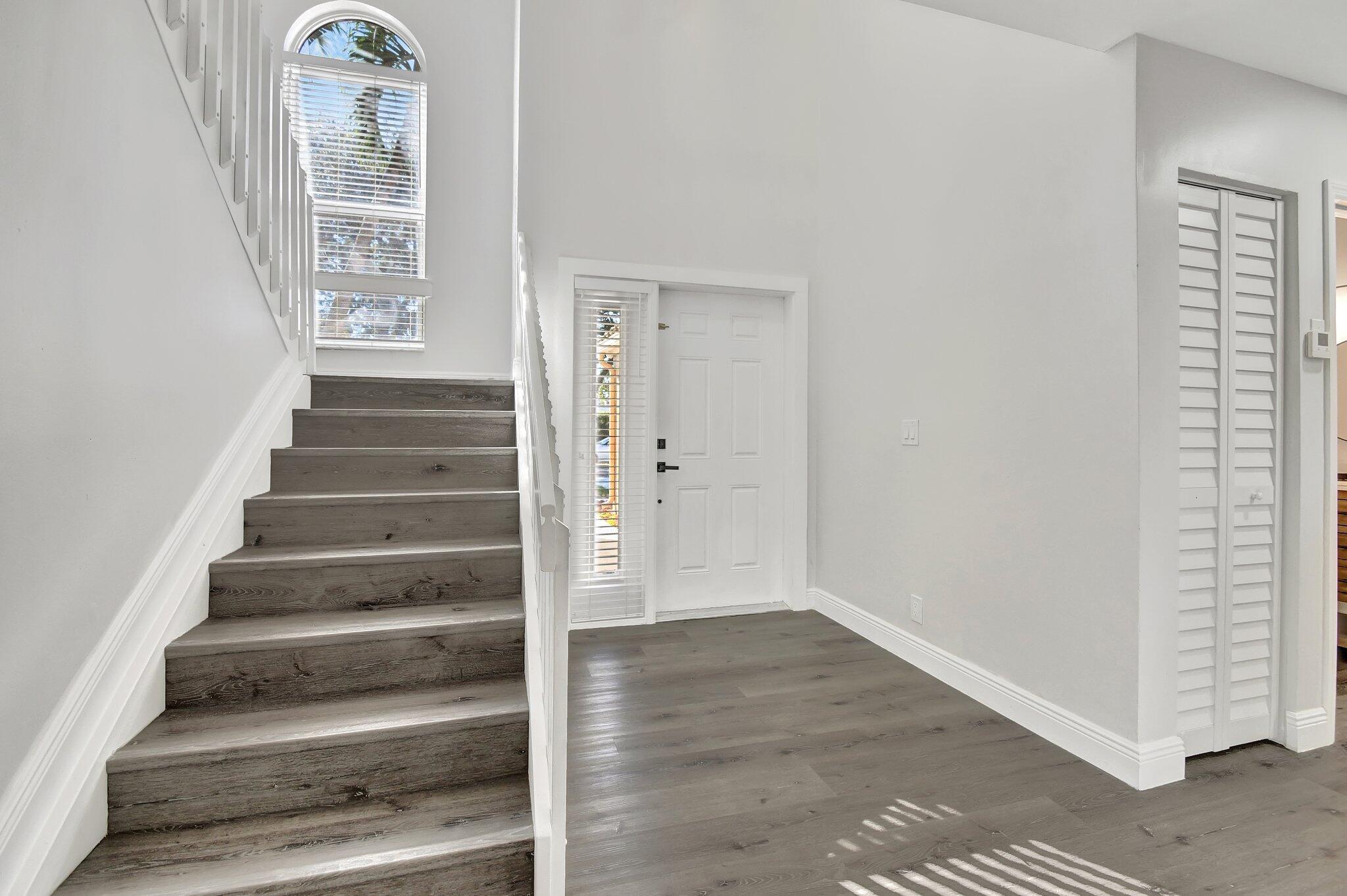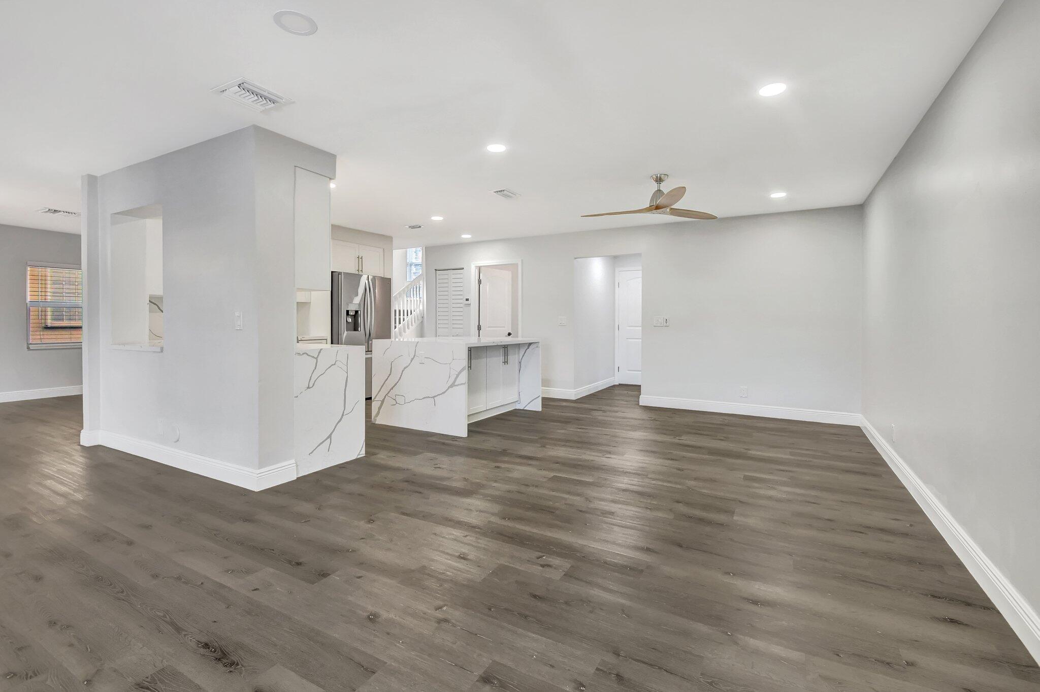 Gorgeous single family home in prestigious Boca Springs! Home sits on a private lot with direct lake views, fully upgraded with 4 bedrooms, 2.5 baths, brand new roof 2025, hurricane impact windows & doors, brand new kitchen & bathrooms, vaulted ceilings, ideal open floor plan – offering the perfect blend of privacy, luxury and entertainment! Beautiful gourmet kitchen w/ waterfall quartz countertops, eat in island with extra storage on both sides, brand new appliances all overlooking the lake from main living areas! Primary suite with vaulted ceilings, walk- in closet and 2nd closet space, full 2 car garage, bonus storage area underneath the stairs, private laundry room with ample space for extra storage, private screened in porch – perfect for BBQs, family gatherings, ideal