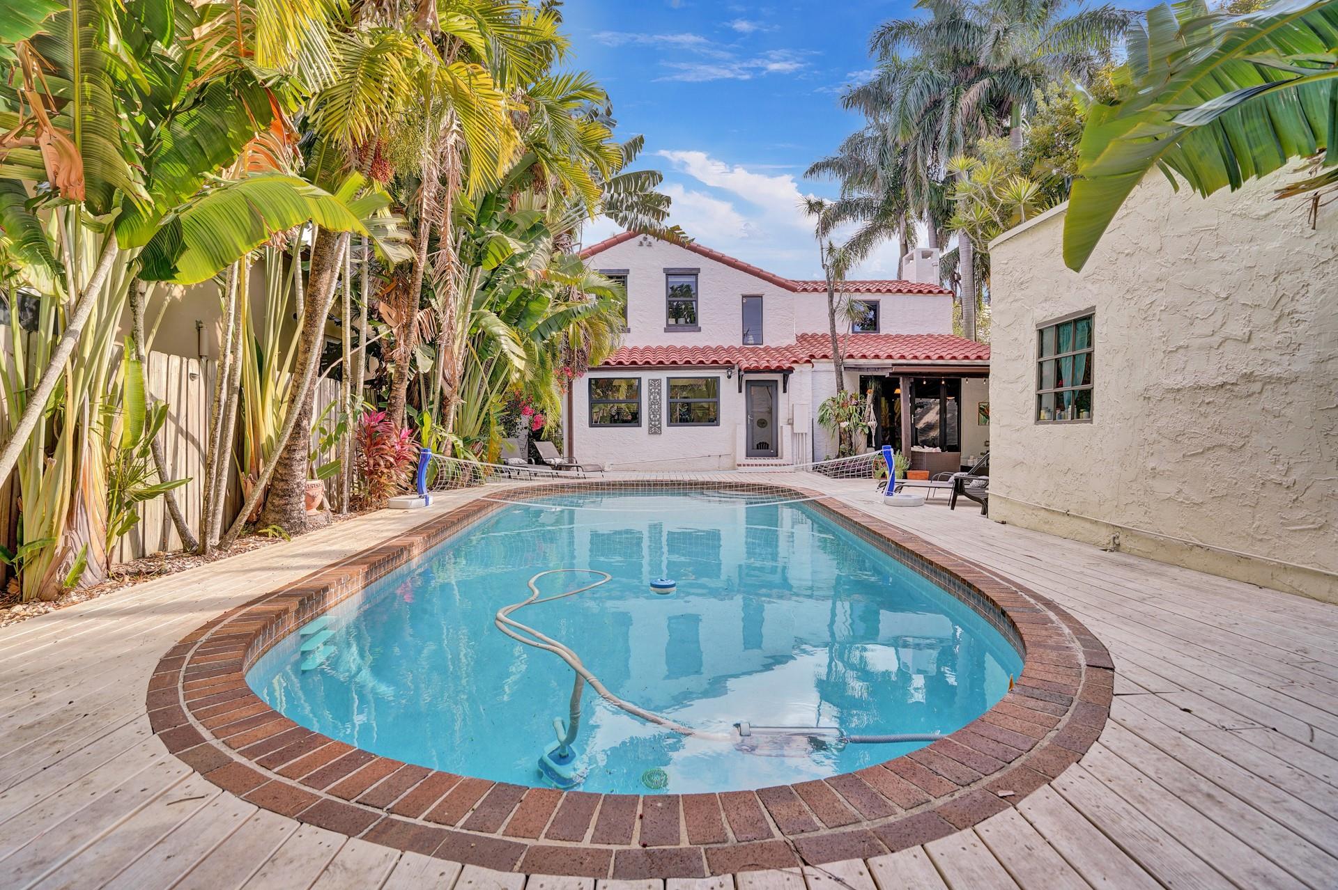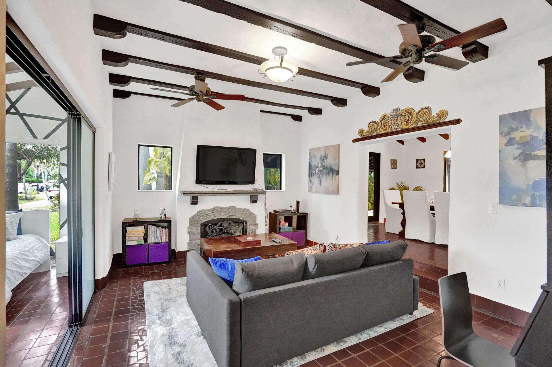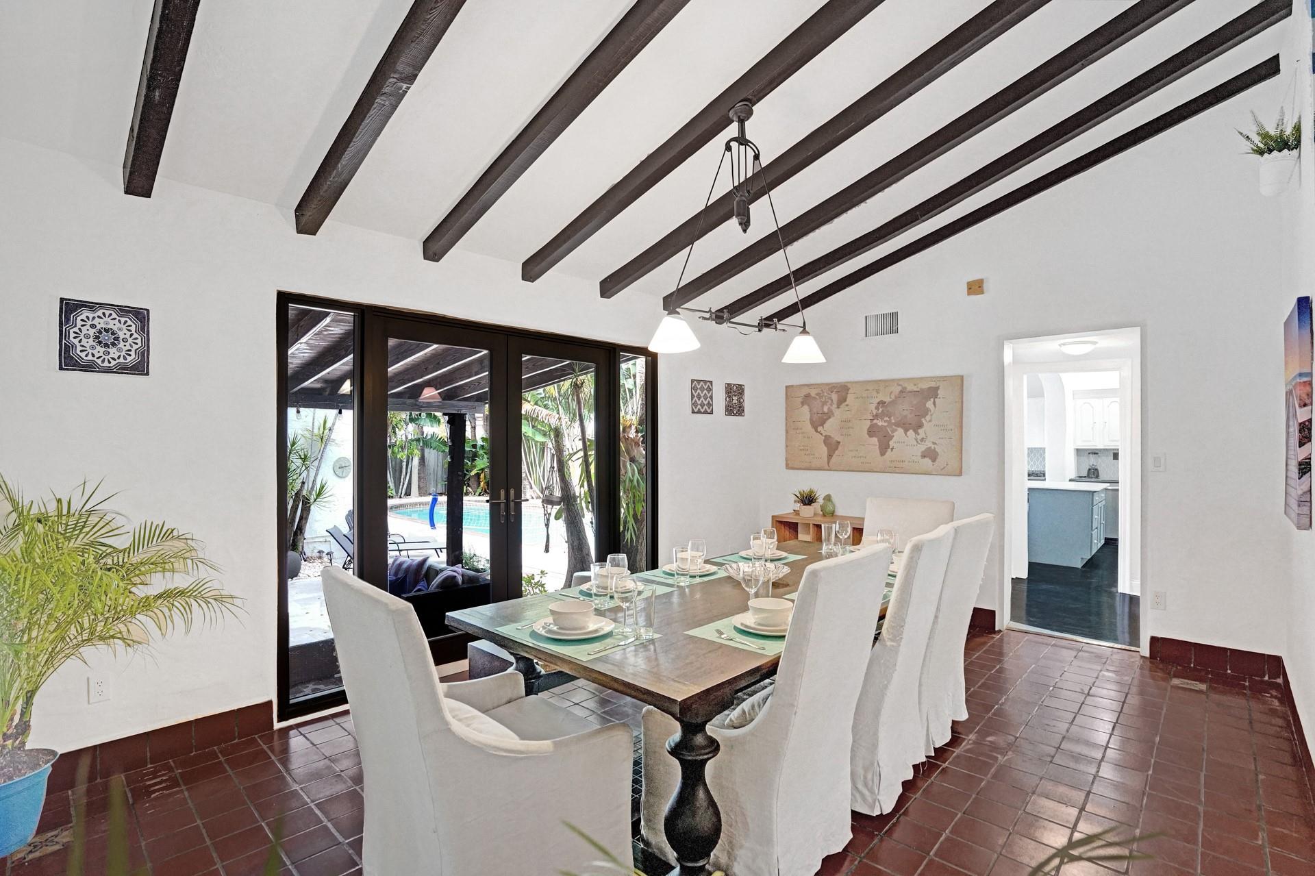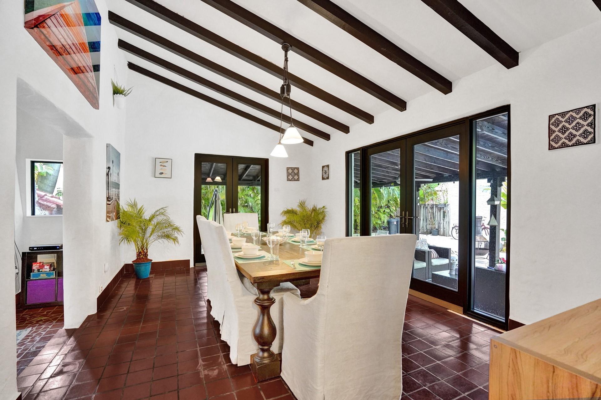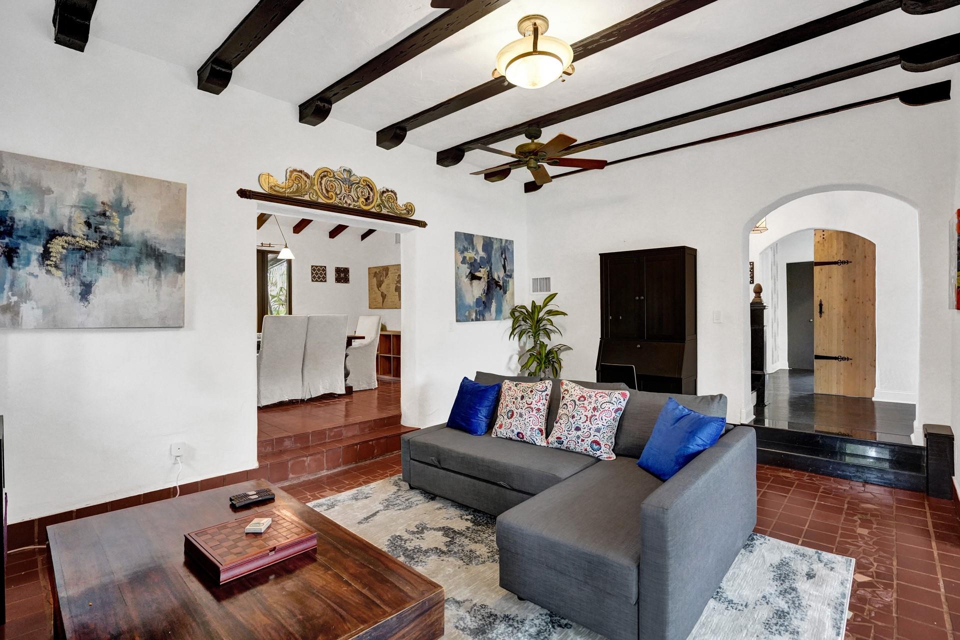 Luxuriously updated Spanish Colonial less than 1 mile from the beach AND vibrant downtown Hollywood! Main house is a 3BD/2BA, plus detached 1 car garage with Tesla supercharger, and 1 bed/1 bath w kitchenette w entrance from alley (currently rented M2M @ $1200, tenant can stay or go). Heated saltwater swimming pool surrounded by wood deck, travertine backyard w barbecue and terrace perfect for entertaining. Upscale kitchen w industrial gas range, Samsung Hub refrigerator, Bosch dishwasher. Inviting living room w gas fireplace and 12′ vaulted ceilings with gorgeous exposed beams. Beautiful dark wood floors in bedrooms and original Saltillo tile in living and dining room. Updated showers, master bath with Jacuzzi. Impact windows and doors throughout.