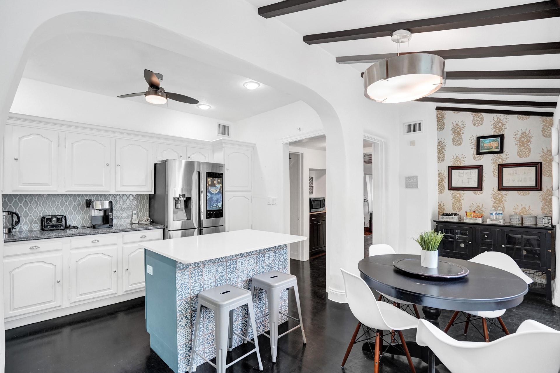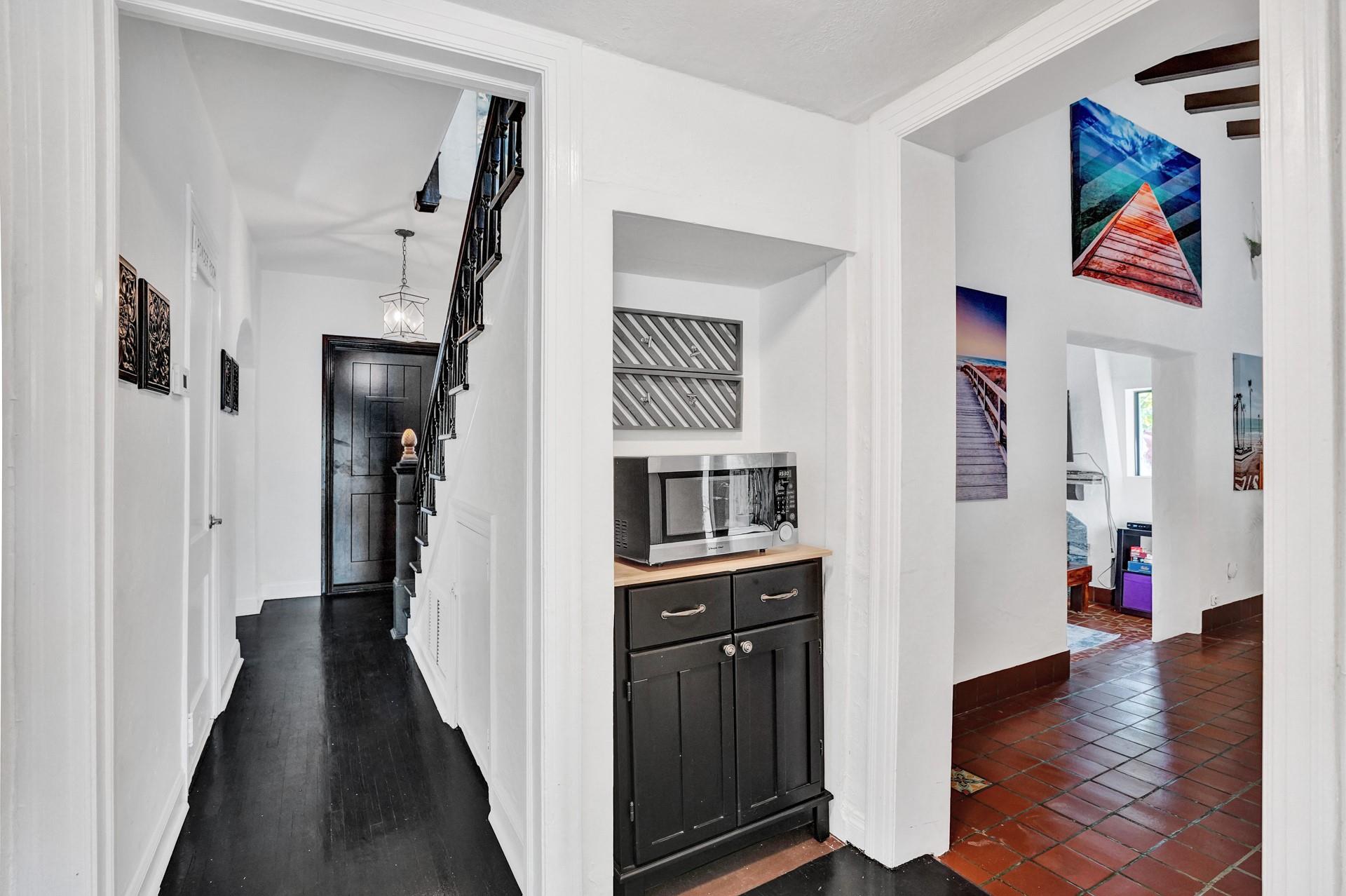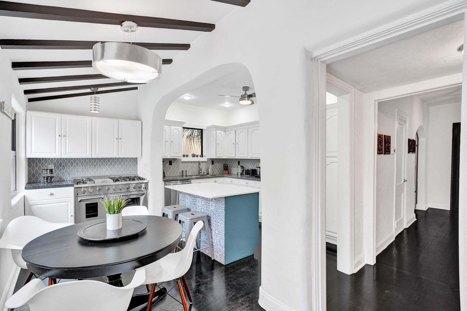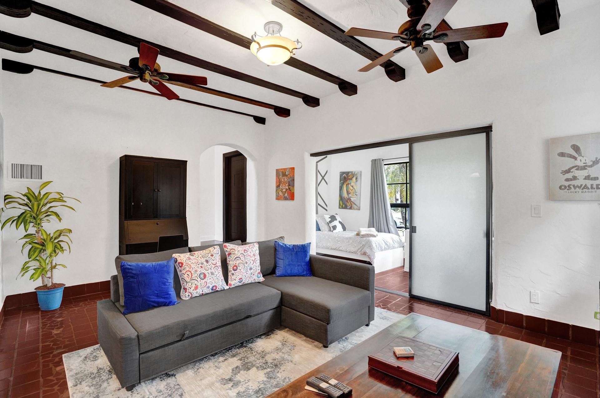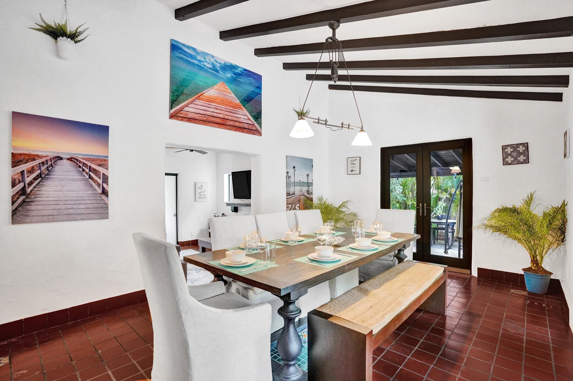 Luxuriously updated Spanish Colonial less than 1 mile from the beach AND vibrant downtown Hollywood! Main house is a 3BD/2BA, plus detached 1 car garage with Tesla supercharger, and 1 bed/1 bath w kitchenette w entrance from alley (currently rented M2M @ $1200, tenant can stay or go). Heated saltwater swimming pool surrounded by wood deck, travertine backyard w barbecue and terrace perfect for entertaining. Upscale kitchen w industrial gas range, Samsung Hub refrigerator, Bosch dishwasher. Inviting living room w gas fireplace and 12′ vaulted ceilings with gorgeous exposed beams. Beautiful dark wood floors in bedrooms and original Saltillo tile in living and dining room. Updated showers, master bath with Jacuzzi. Impact windows and doors throughout.